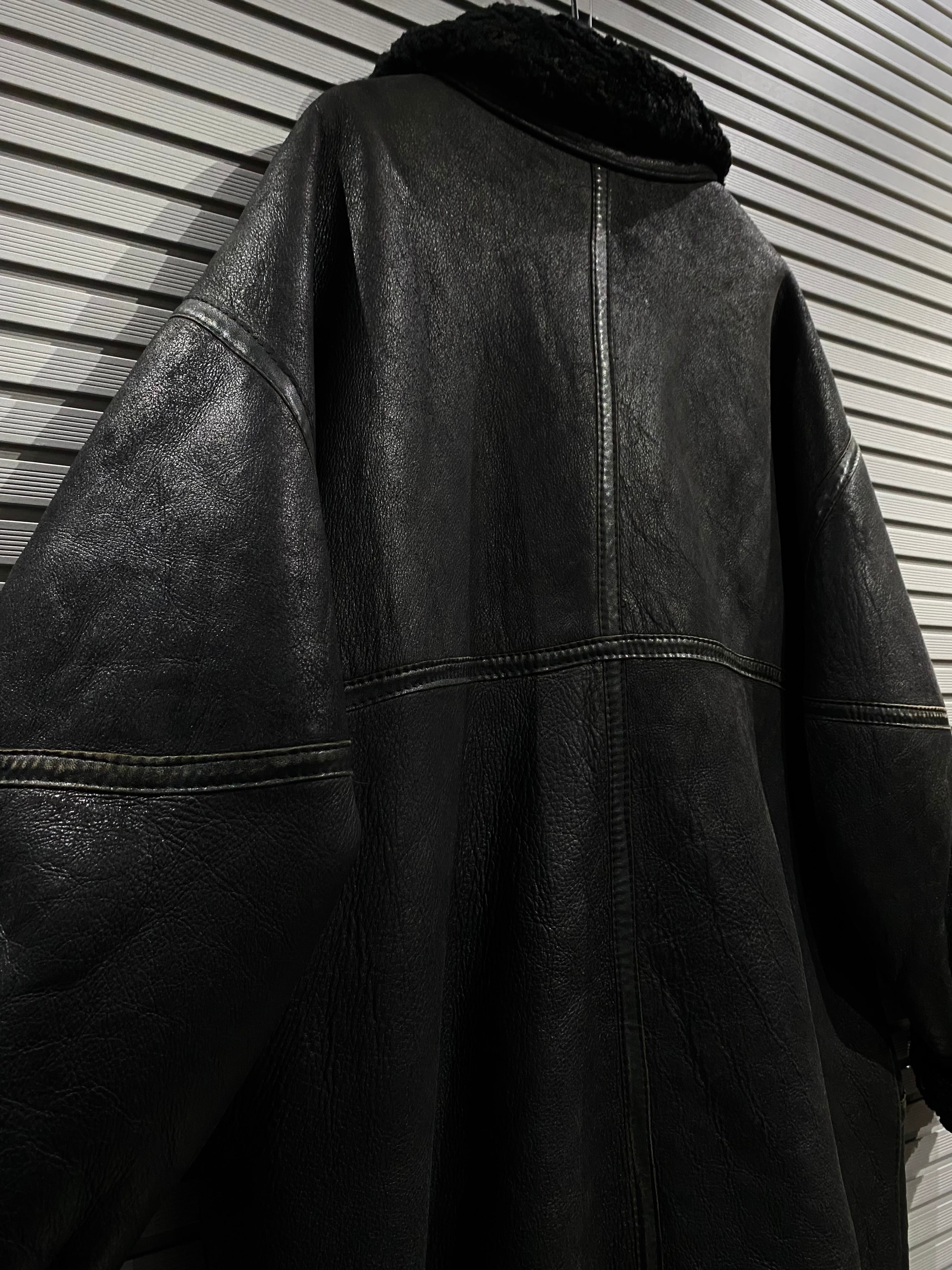 ムートン特有の重厚さと存在感を存分に味わえる、稀有なブラックカラーのムートンコート。