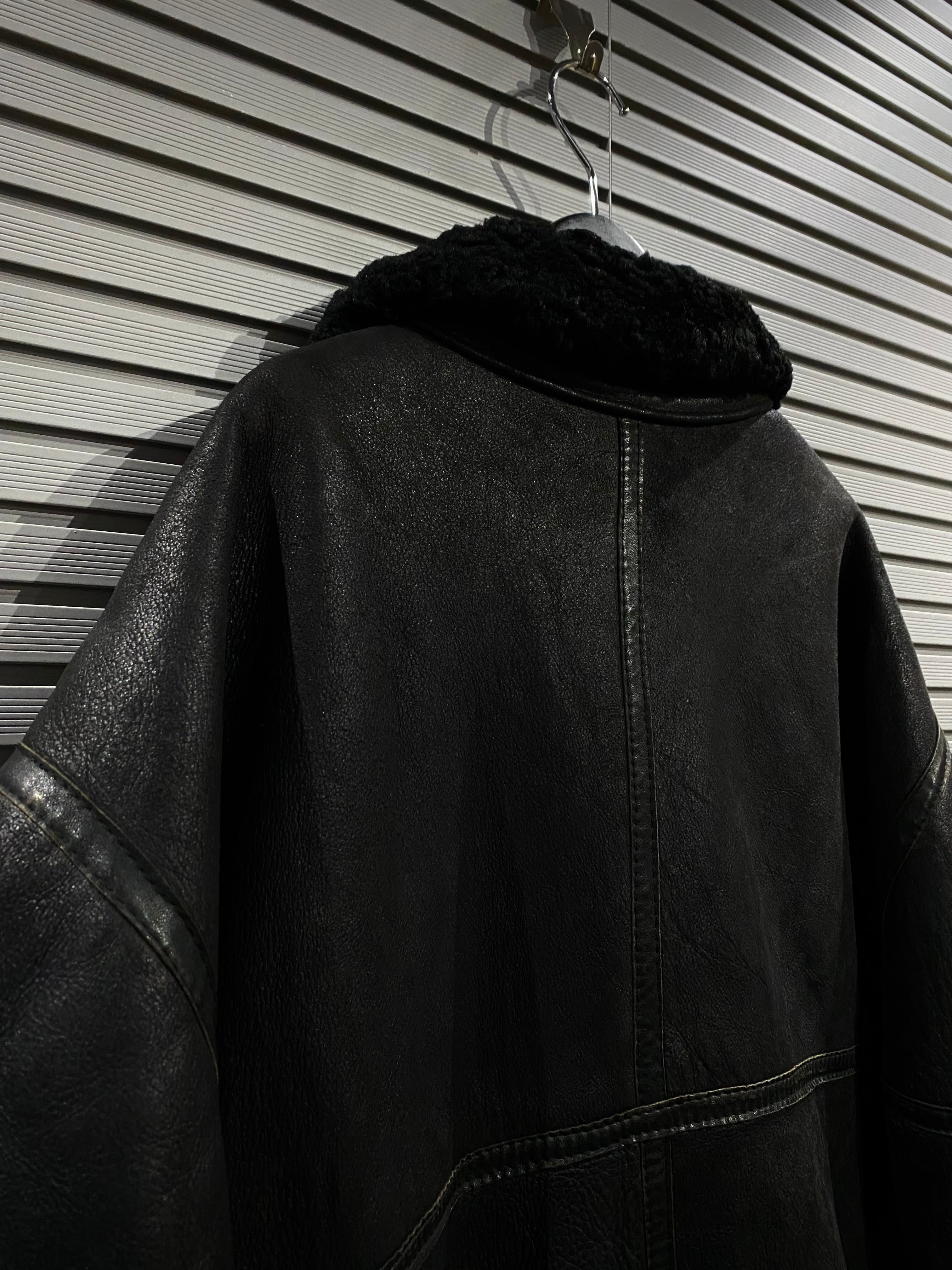 しっとりとした質感のムートンを使用し、鈍い艶を纏ったブラックボディが全体を引き締める印象。襟元から袖口にかけて覗くボアが視覚的にも防寒性の面でもしっかりとした説得力を持ち、アウターとしての完成度を高めています。