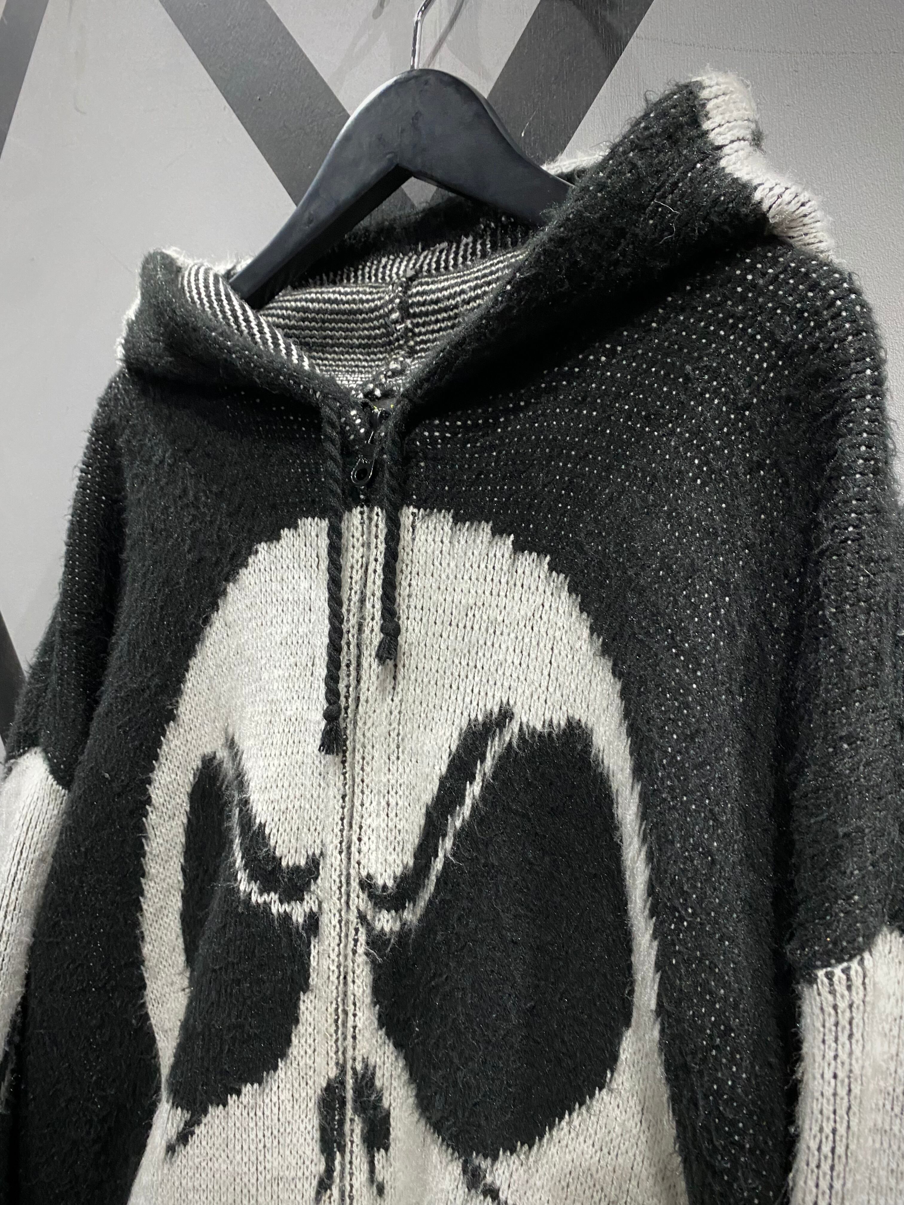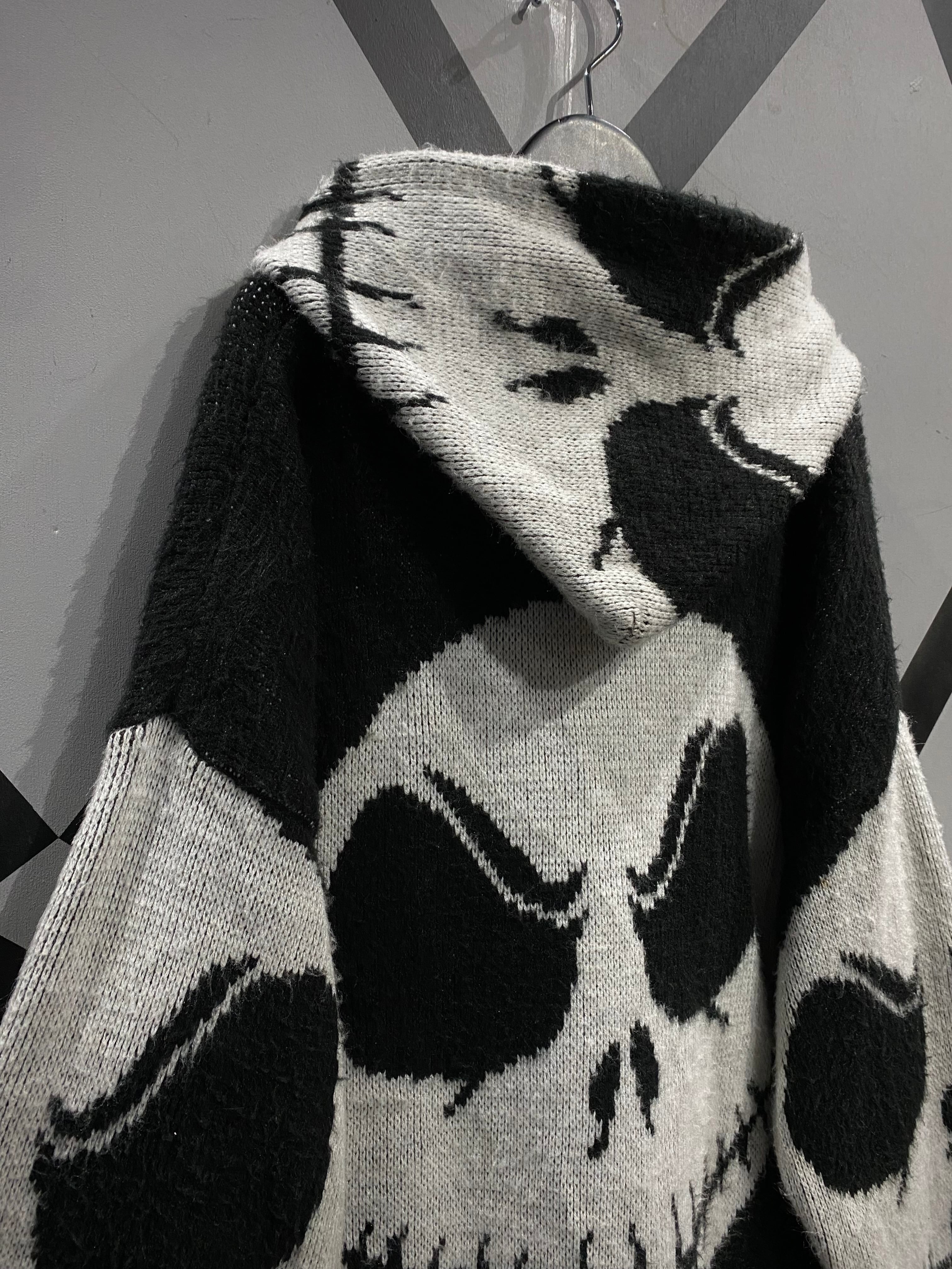 肉厚で温もりのあるニットを用い、フロント、バック、フード、スリーブに至るまで、ジャックの表情を大胆に編み立てたインパクト抜群の1着。