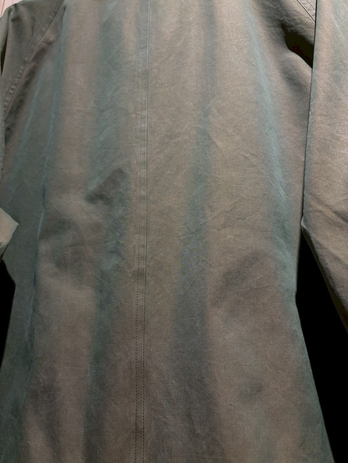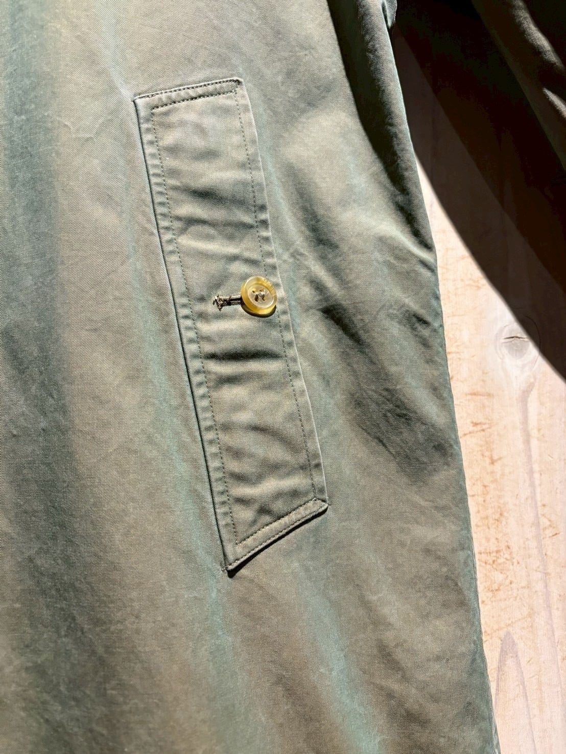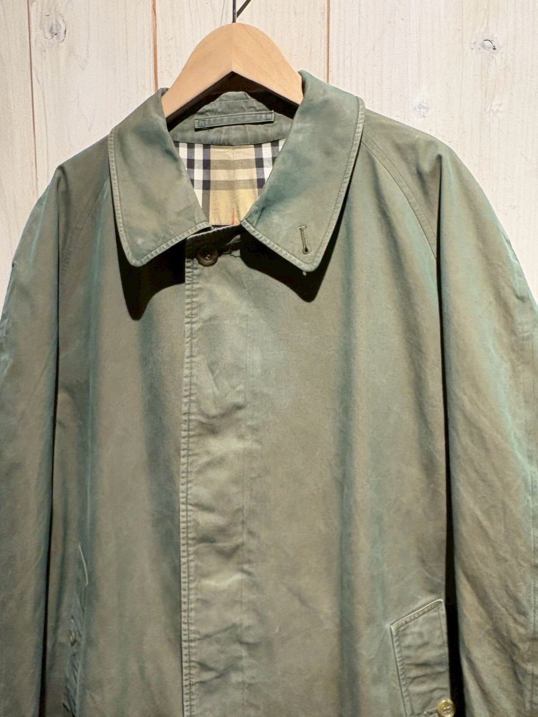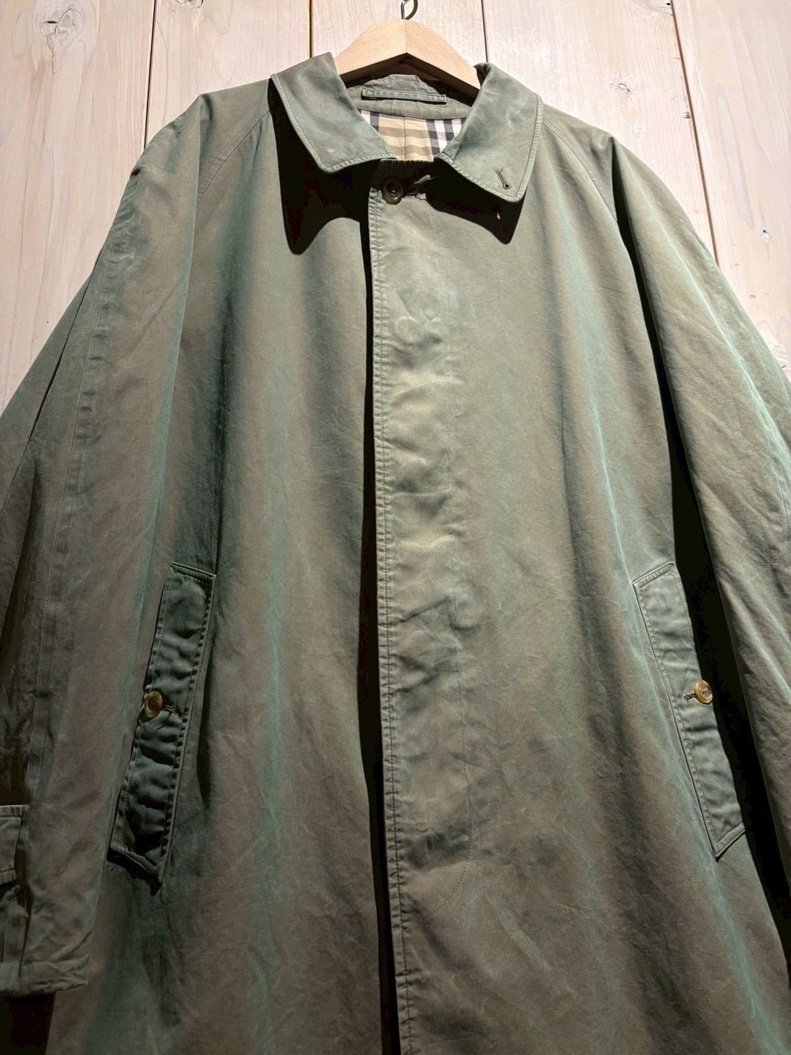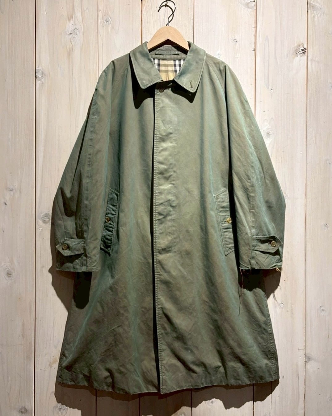 玉虫カラー、バルマカンという組み合わせが稀少なうえ、コンディション、雰囲気ともに申し分なし。ヴィンテージBurberryのスペシャルな1着です。