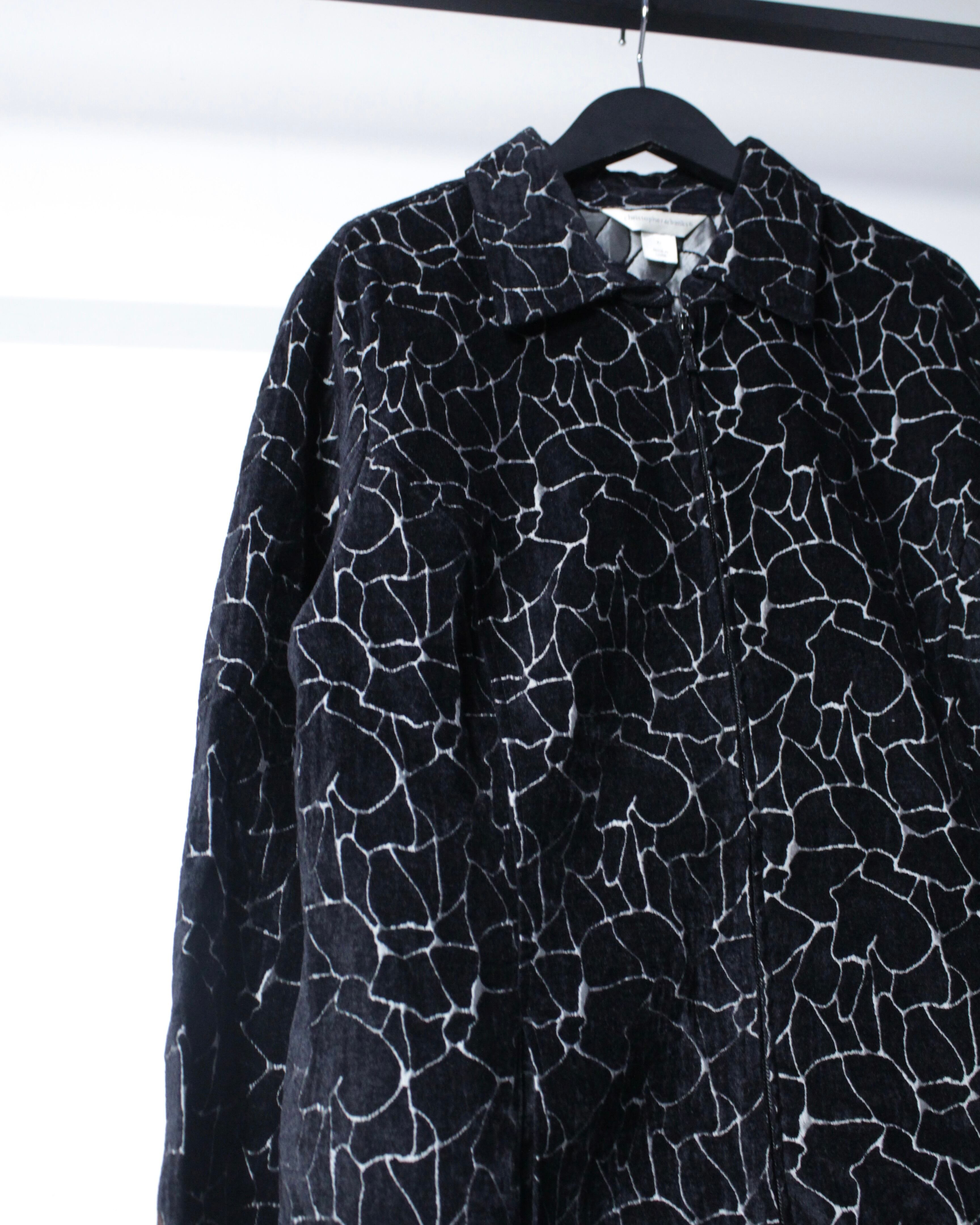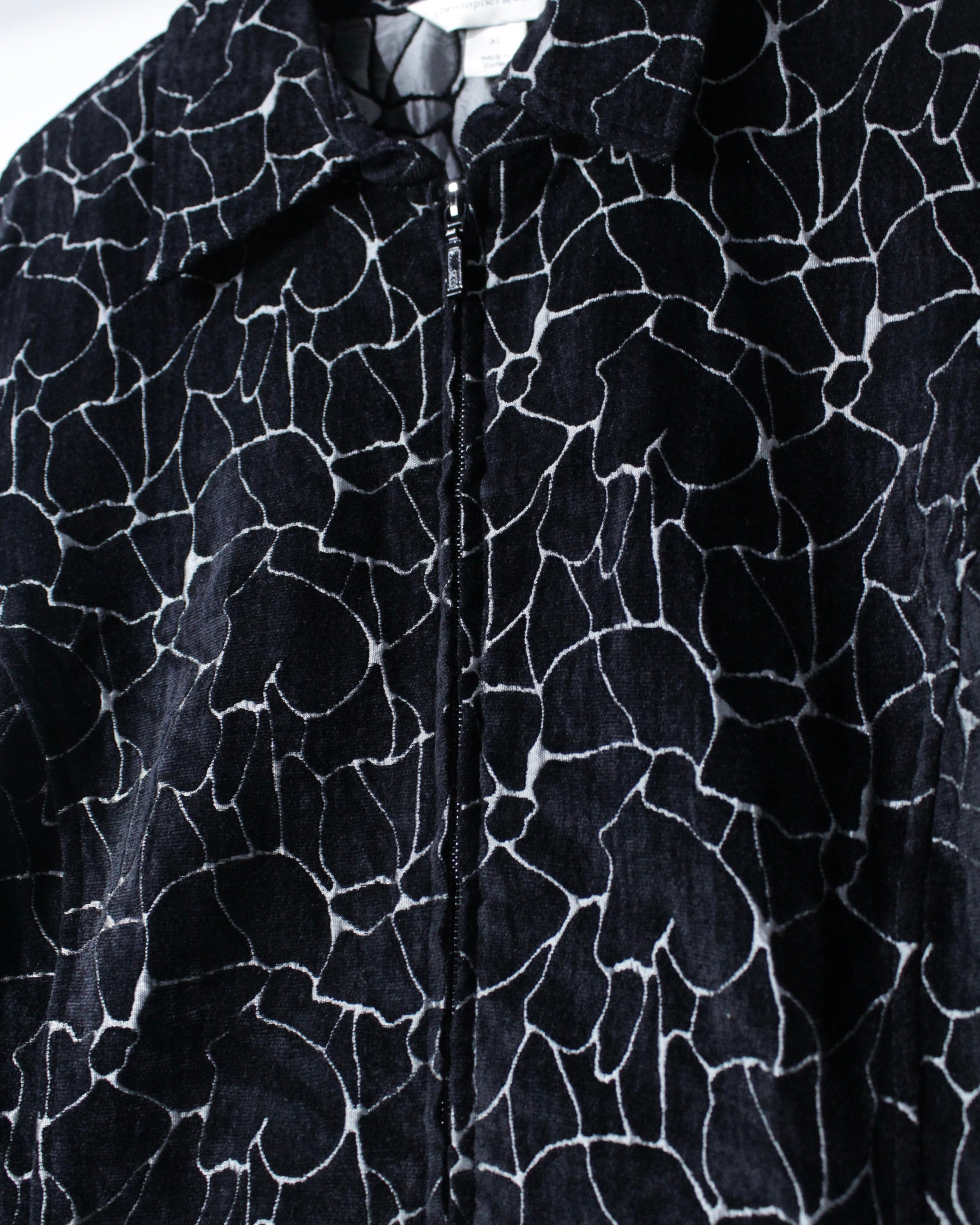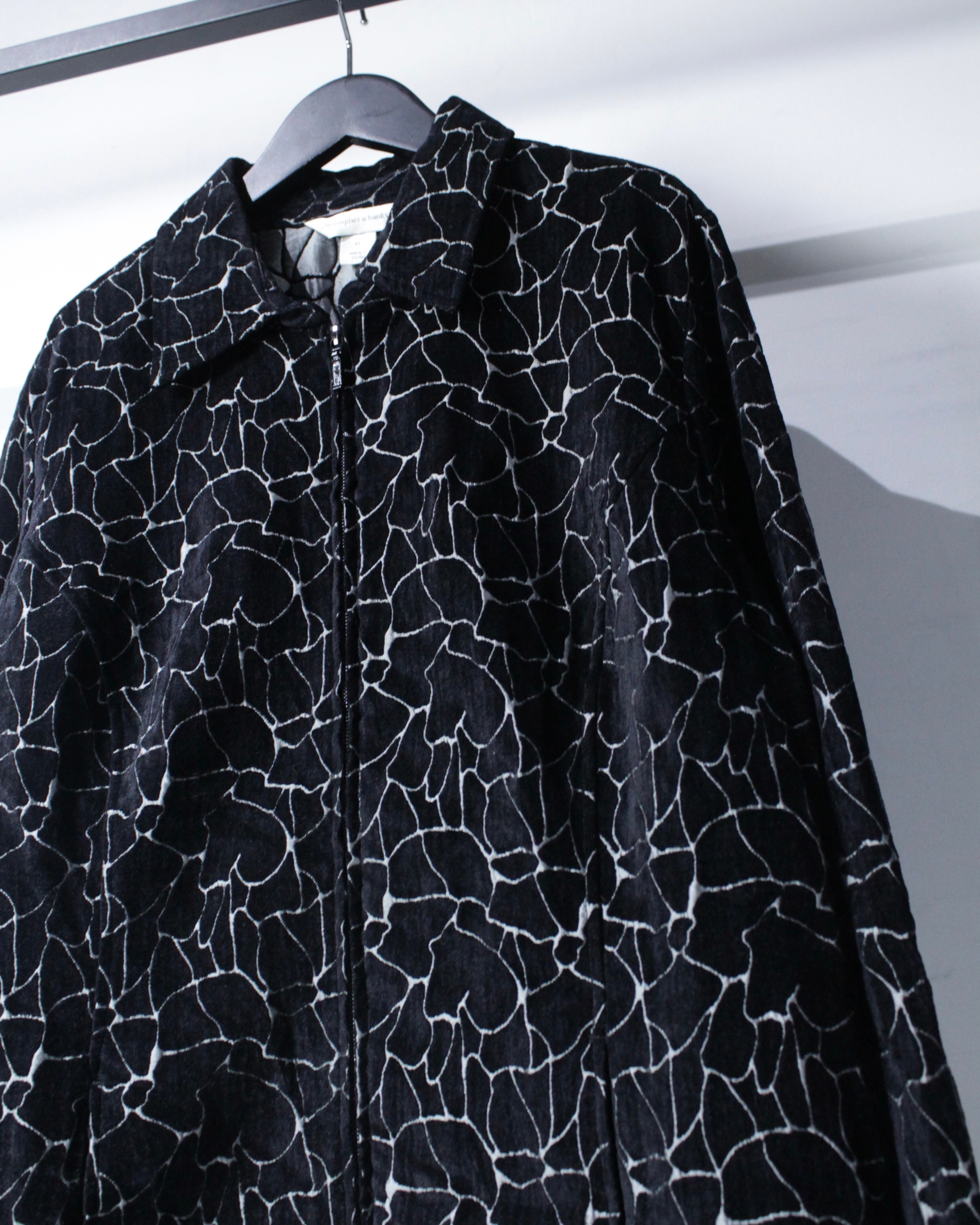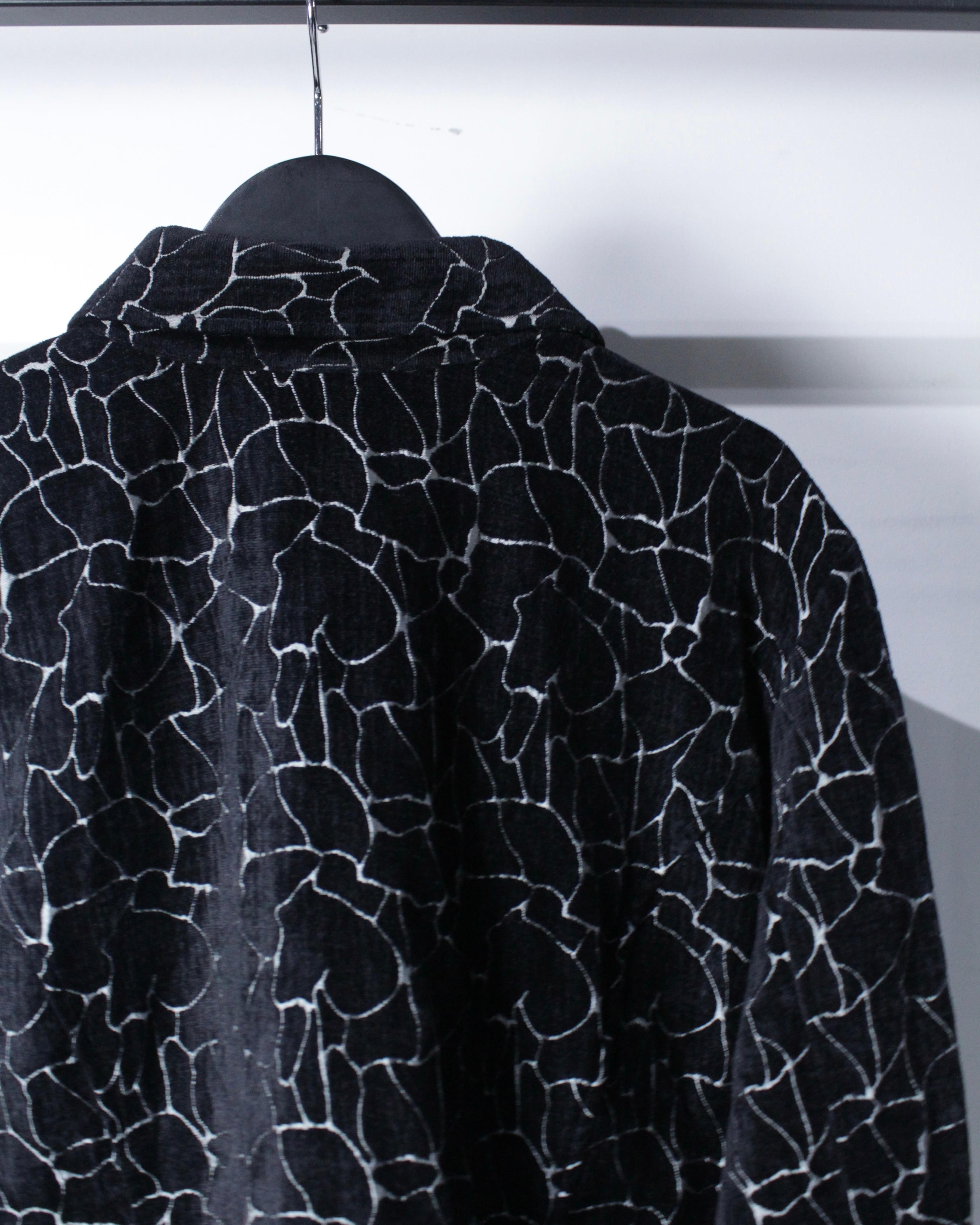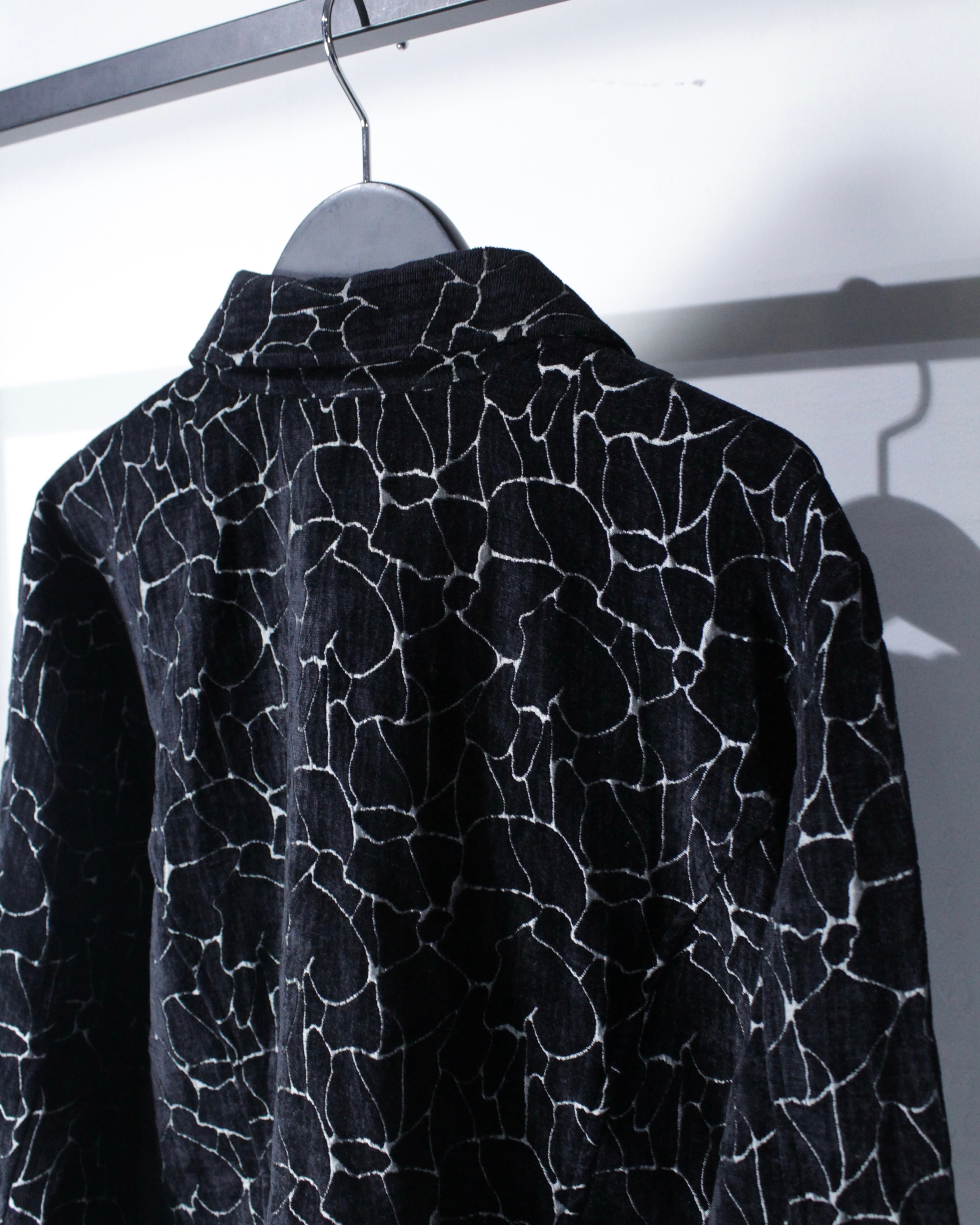 ベロアのように滑らかなタッチを持つシェニール素材を用い、セメント柄を表現。モードでありながら、ストリートな空気感も感じられるデザインバランスが◎