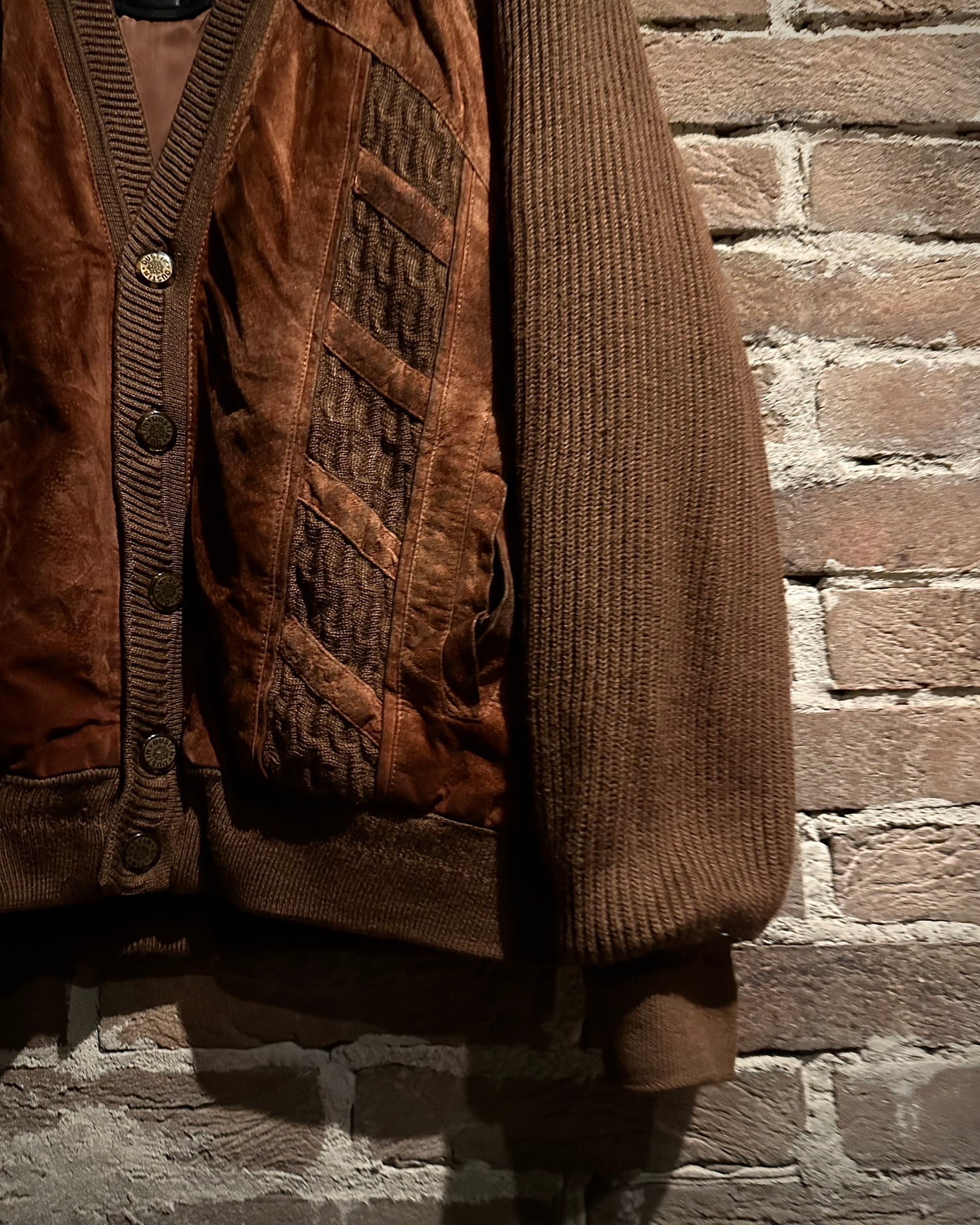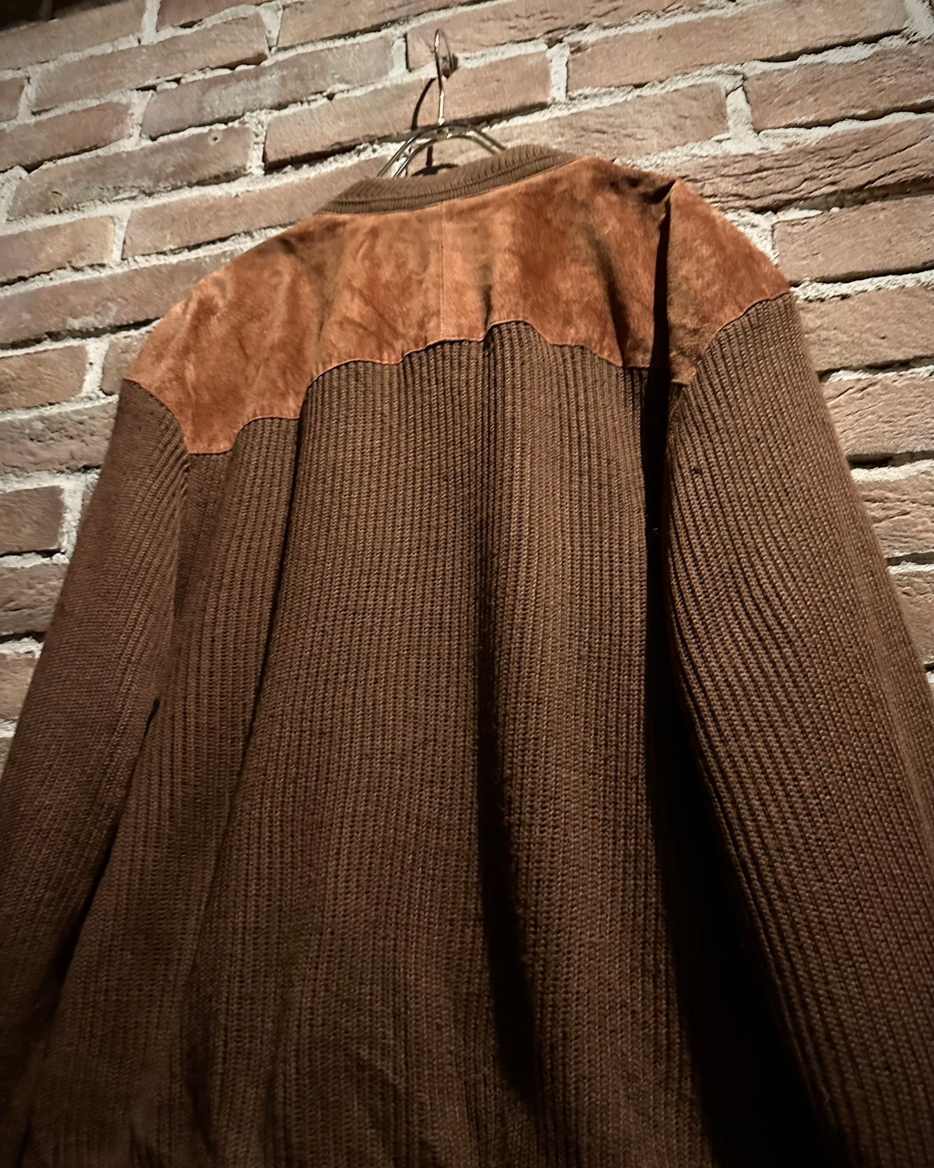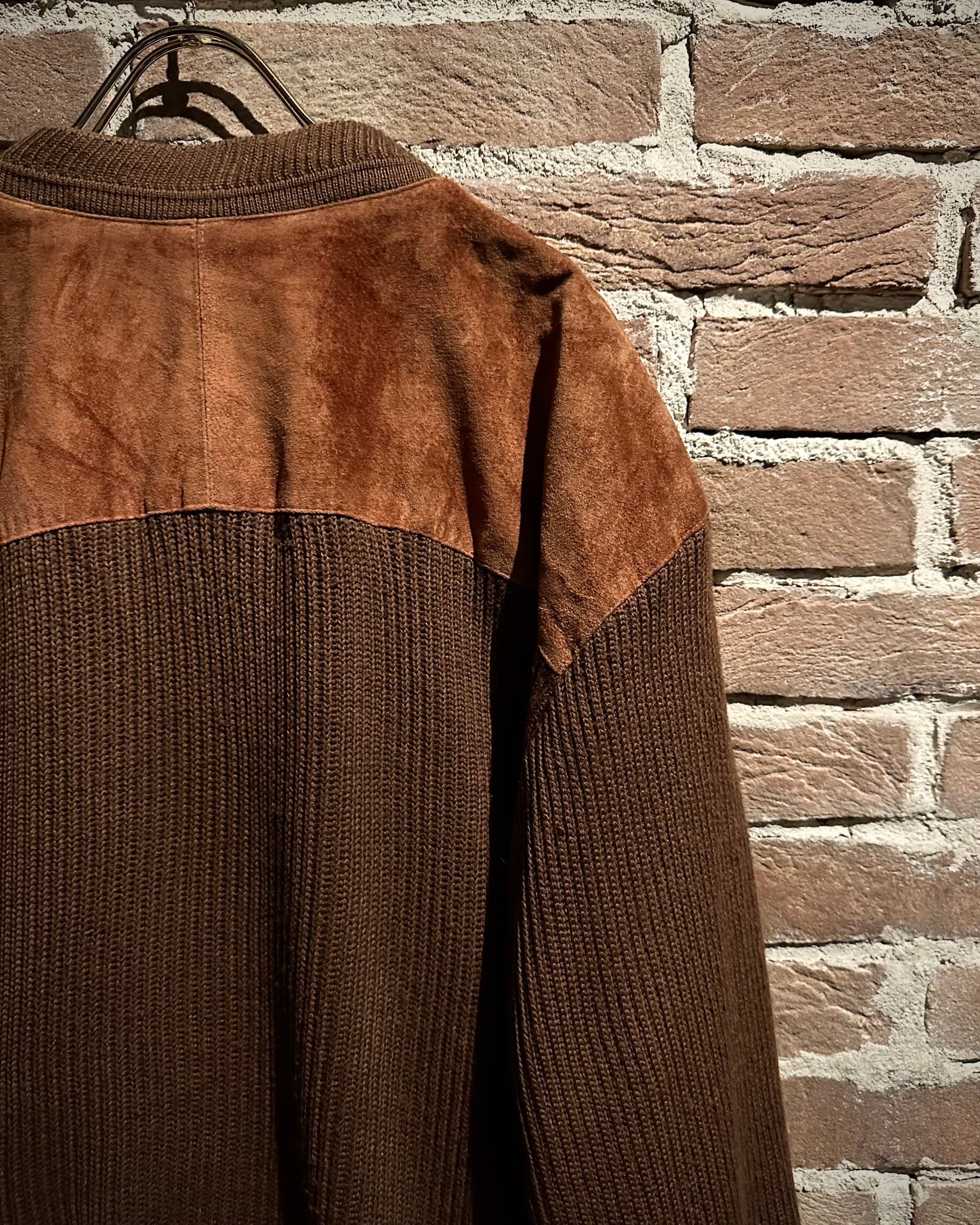温かみのあるブラウンを基調としたボディに、フロントと肩周りへスエードレザーを大胆に切り替えた1着です。