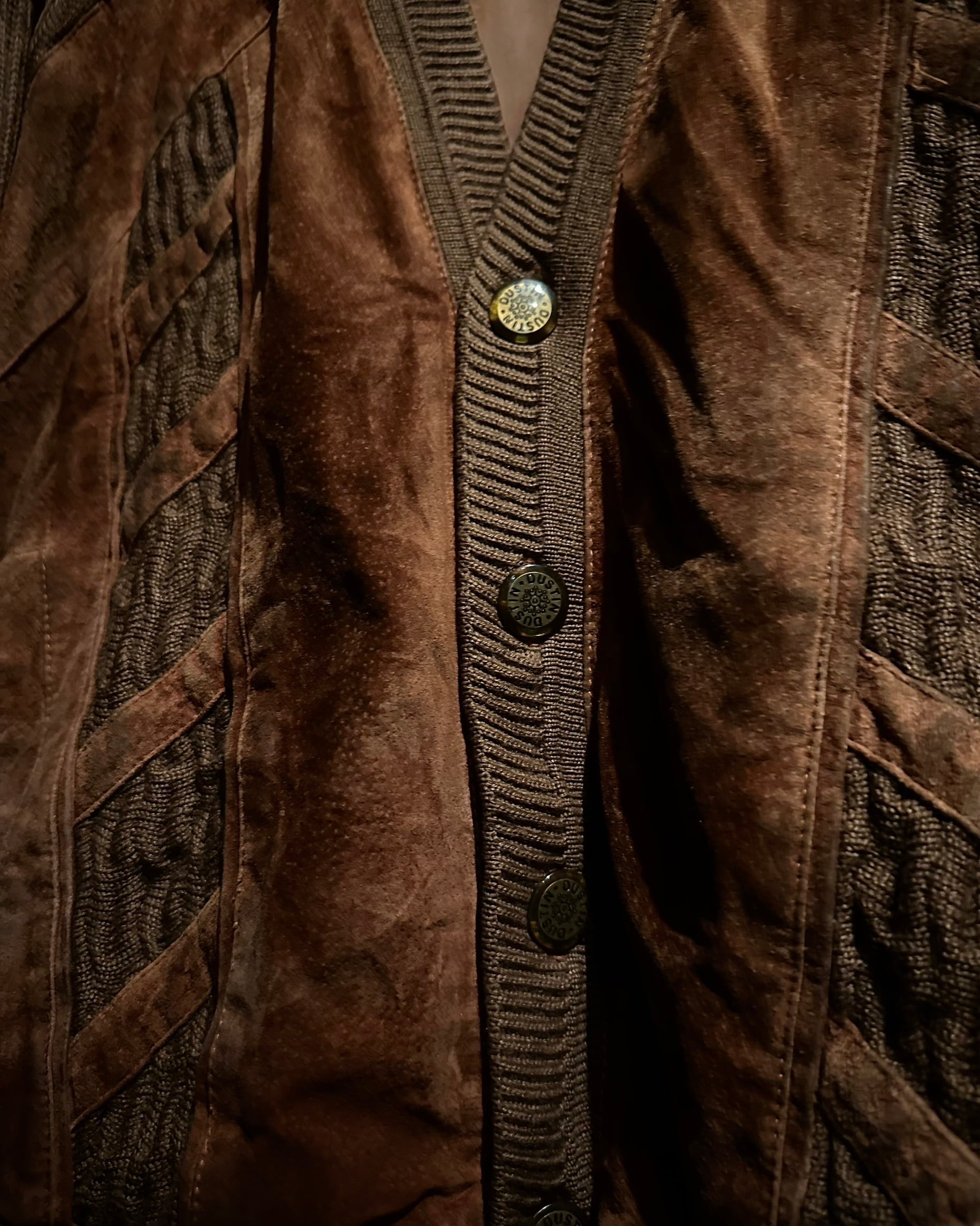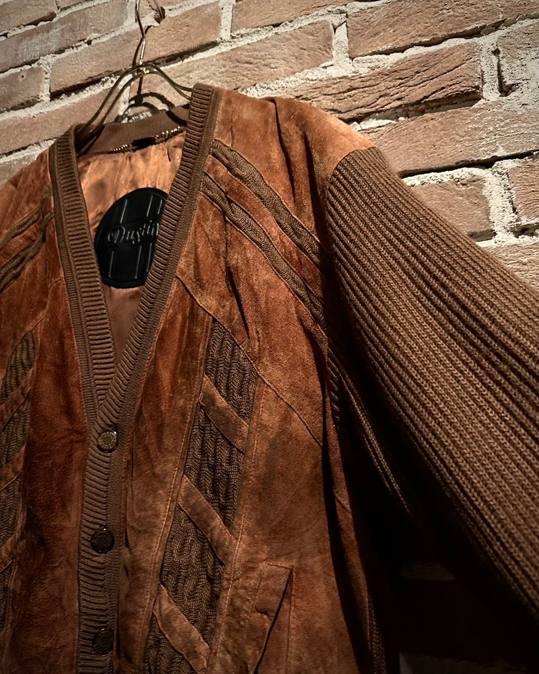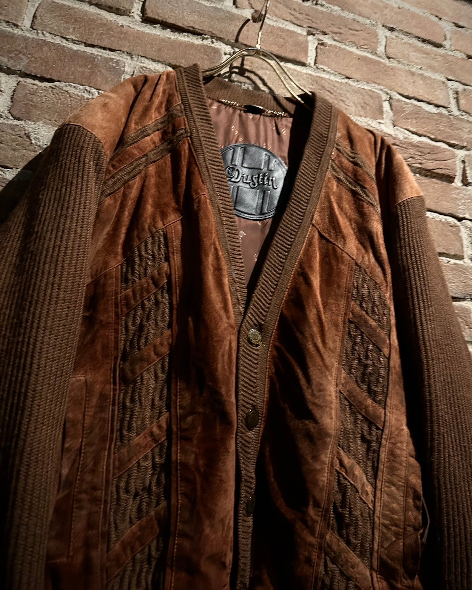 温かみのあるブラウンを基調としたボディに、フロントと肩周りへスエードレザーを大胆に切り替えた1着です。