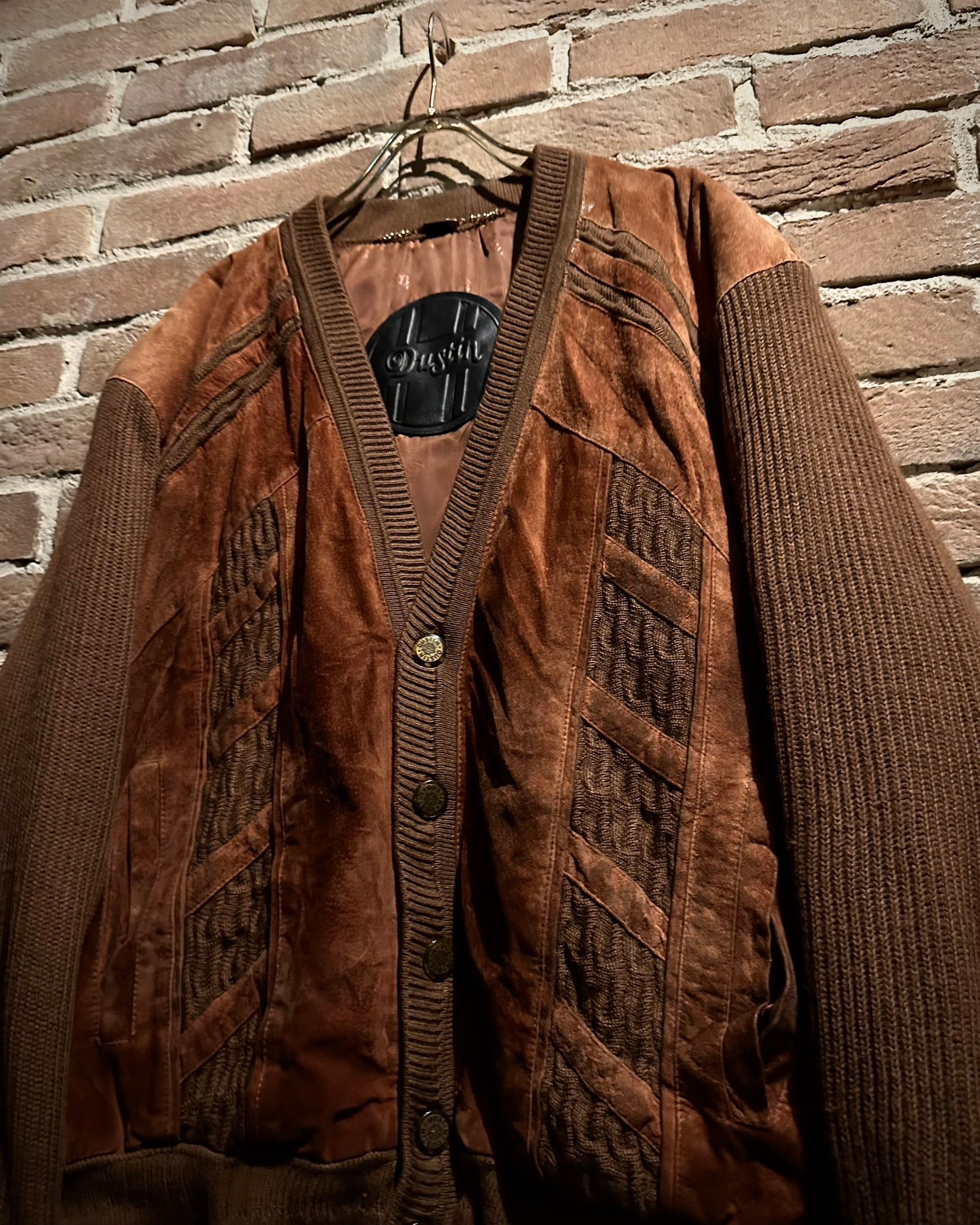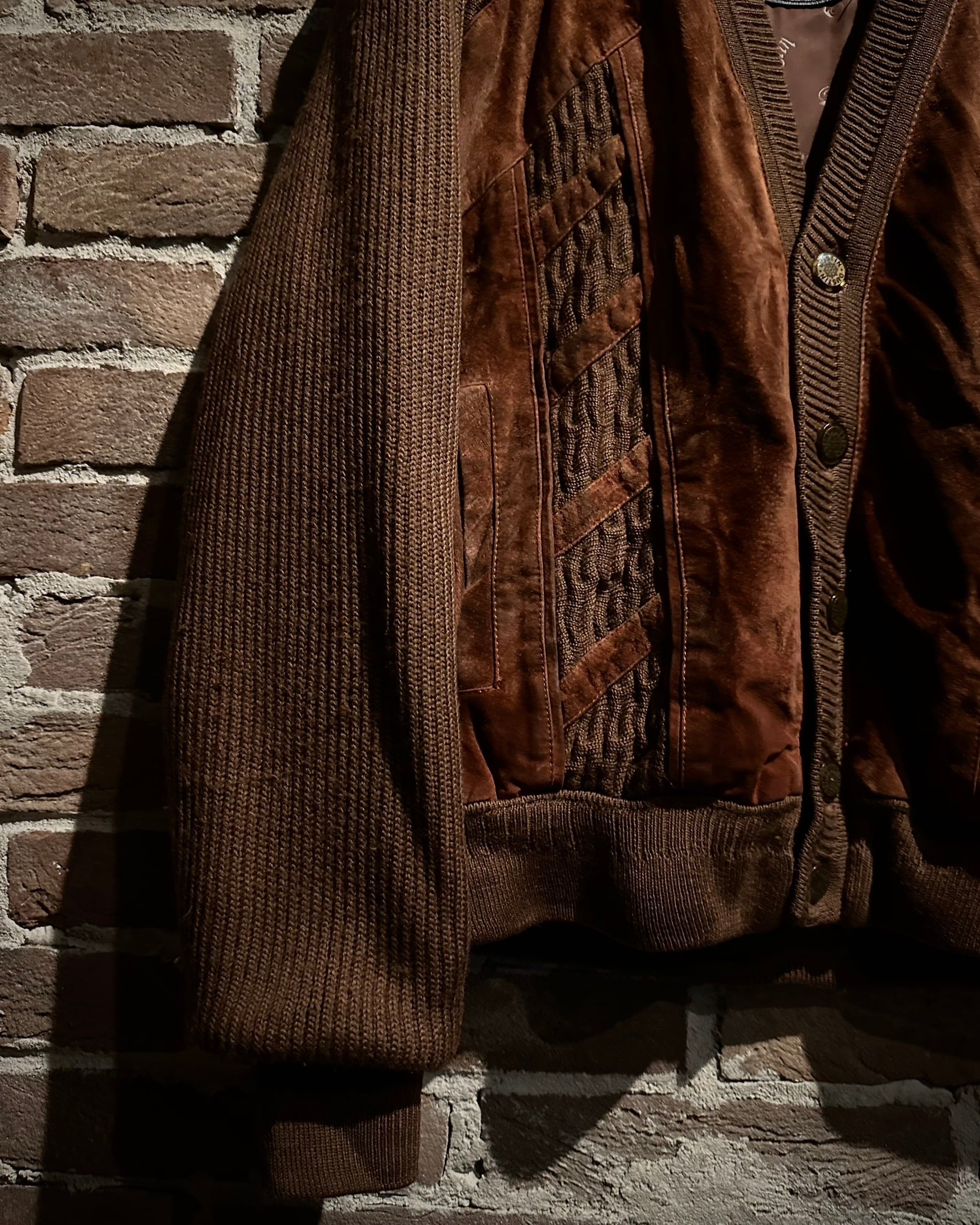ニットとレザー、それぞれの素材が持つ魅力を最大限に引き出した、完成度の高いカーディガンジャケットです。
