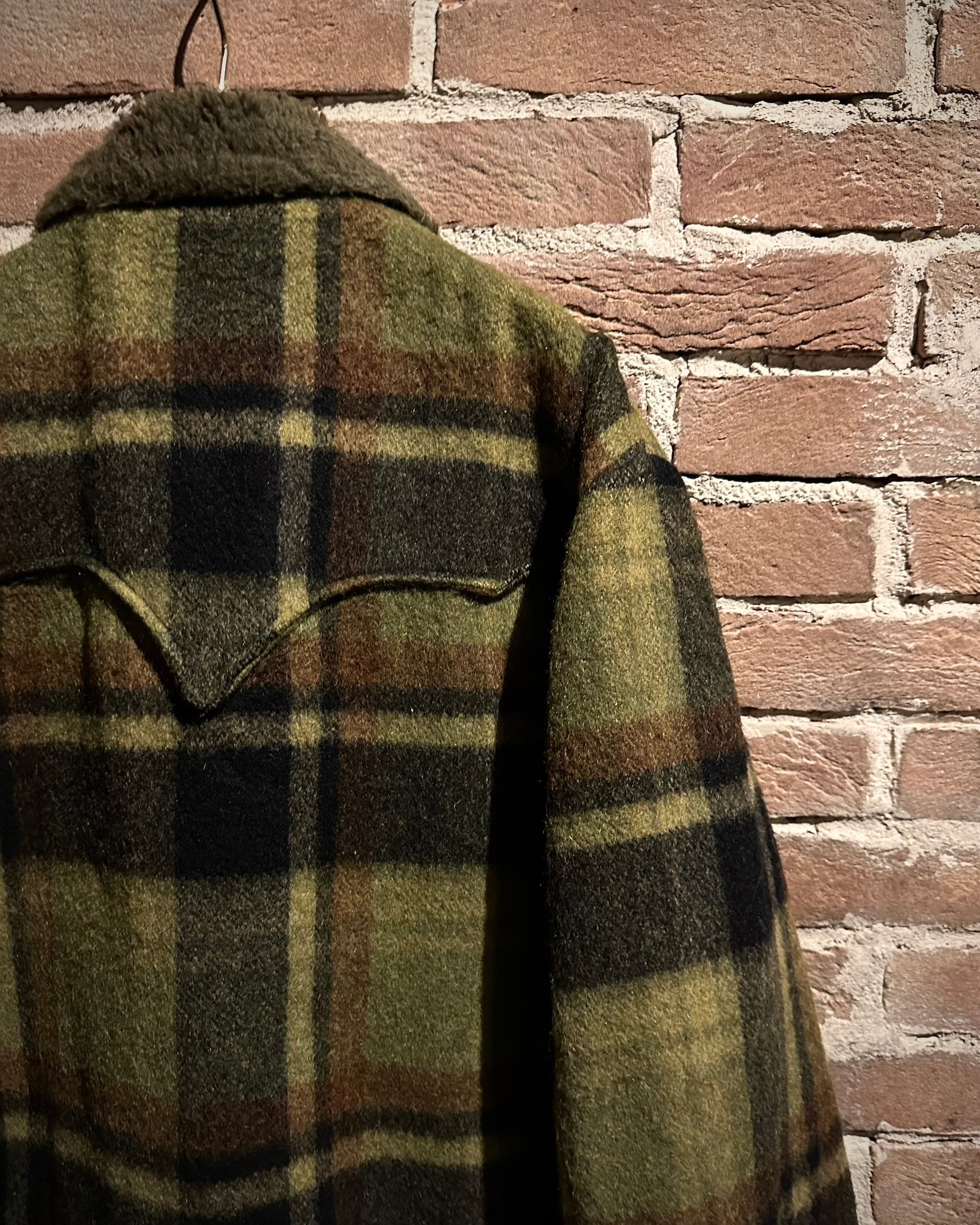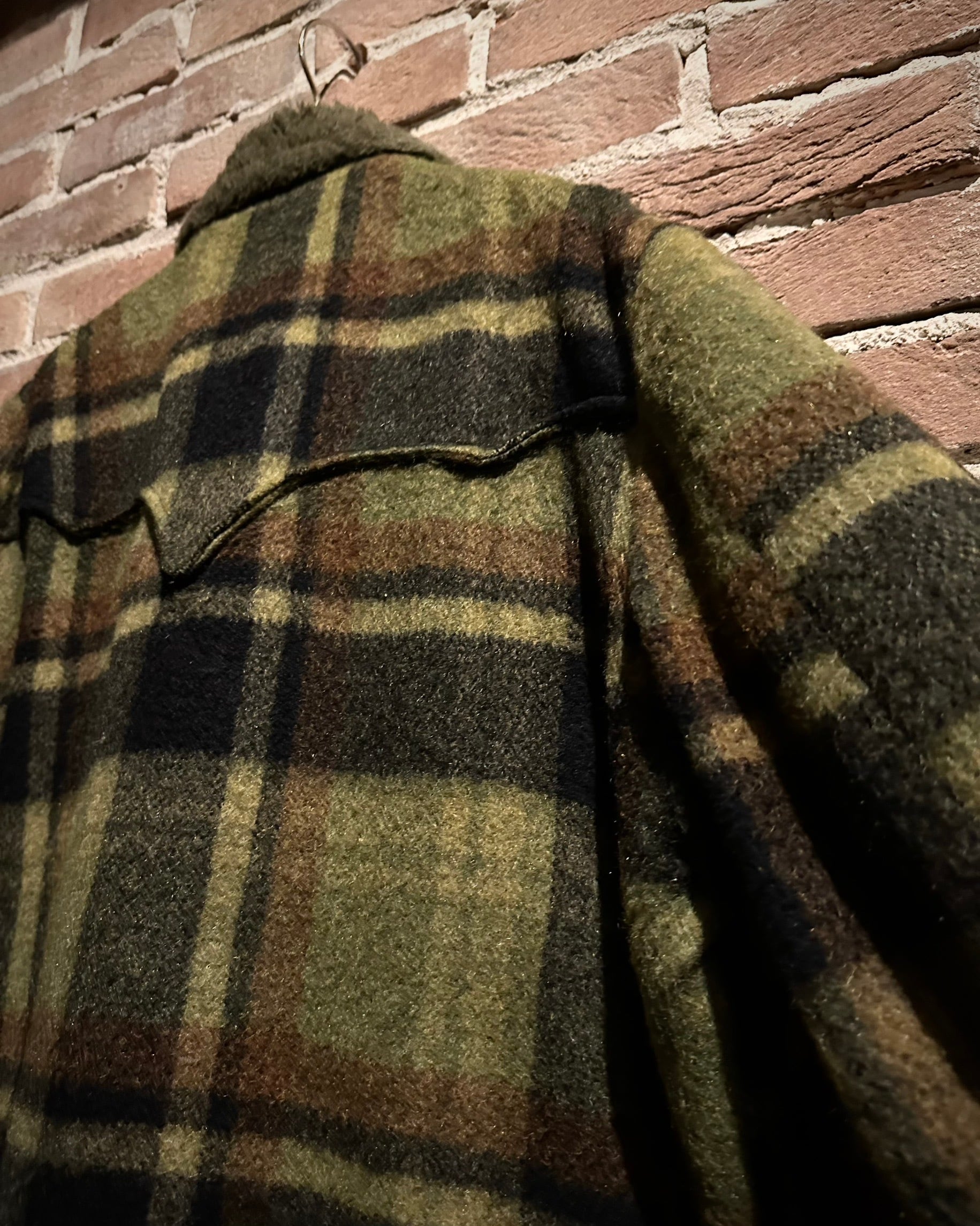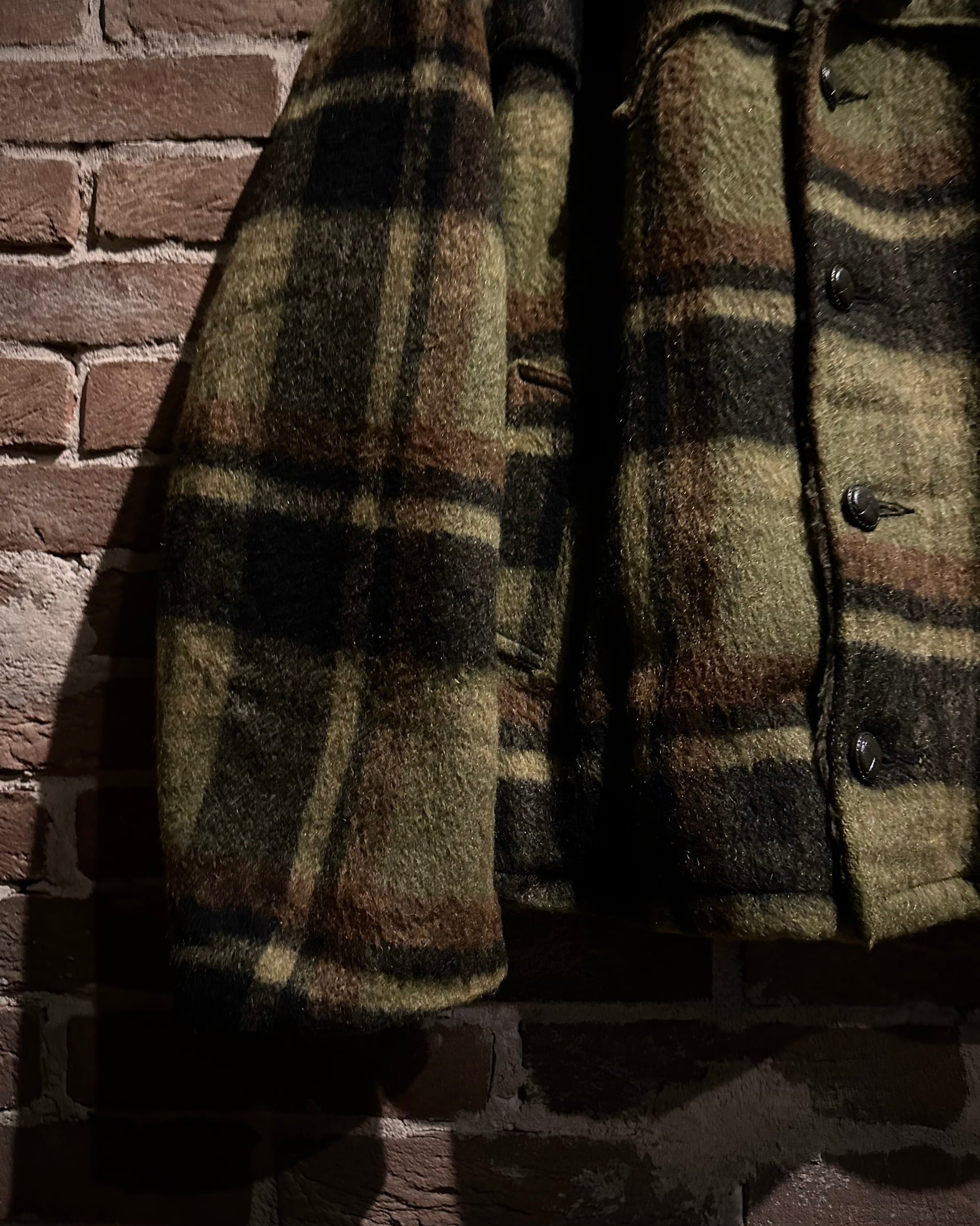 肉厚で温かみのあるウール素材を使用したボディに、深みのあるグリーンベースのチェックパターンを載せた1着です。