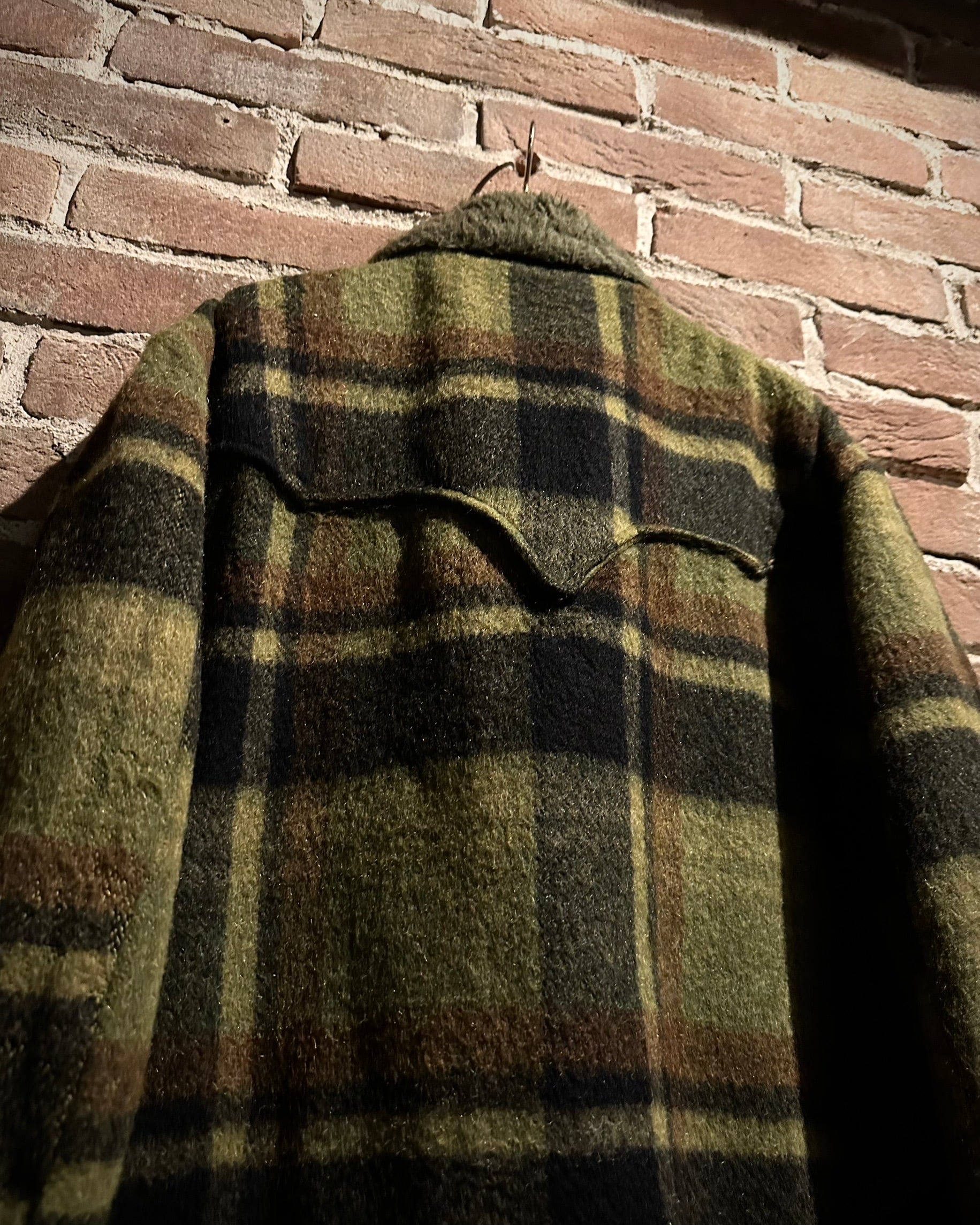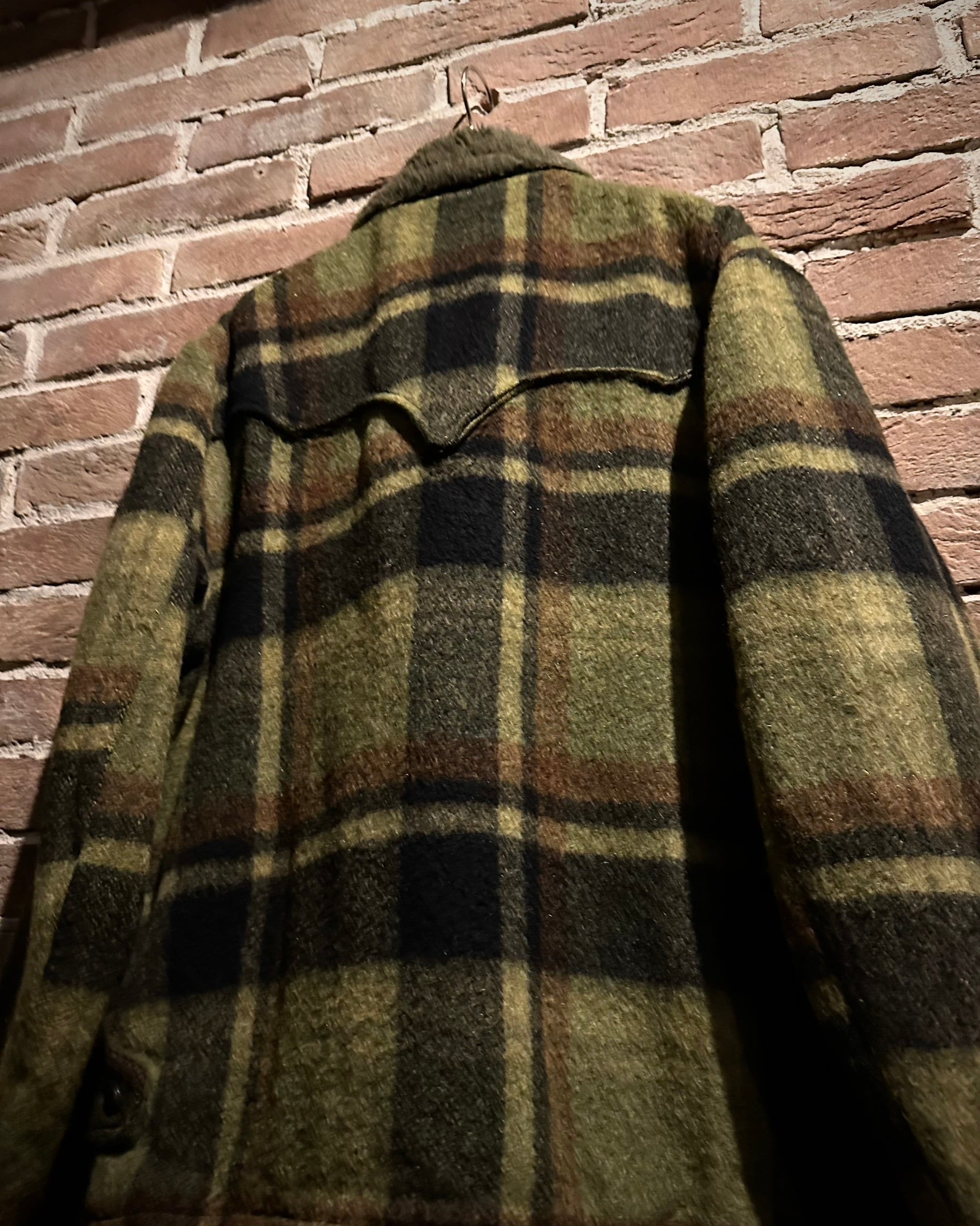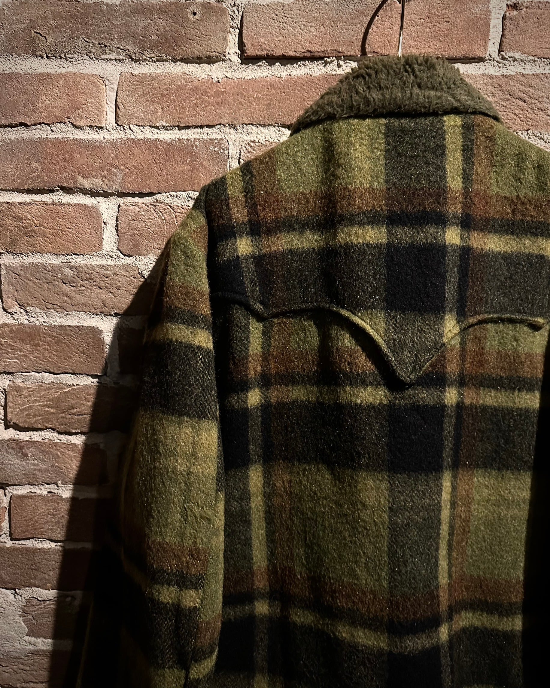 肉厚で温かみのあるウール素材を使用したボディに、深みのあるグリーンベースのチェックパターンを載せた1着です。