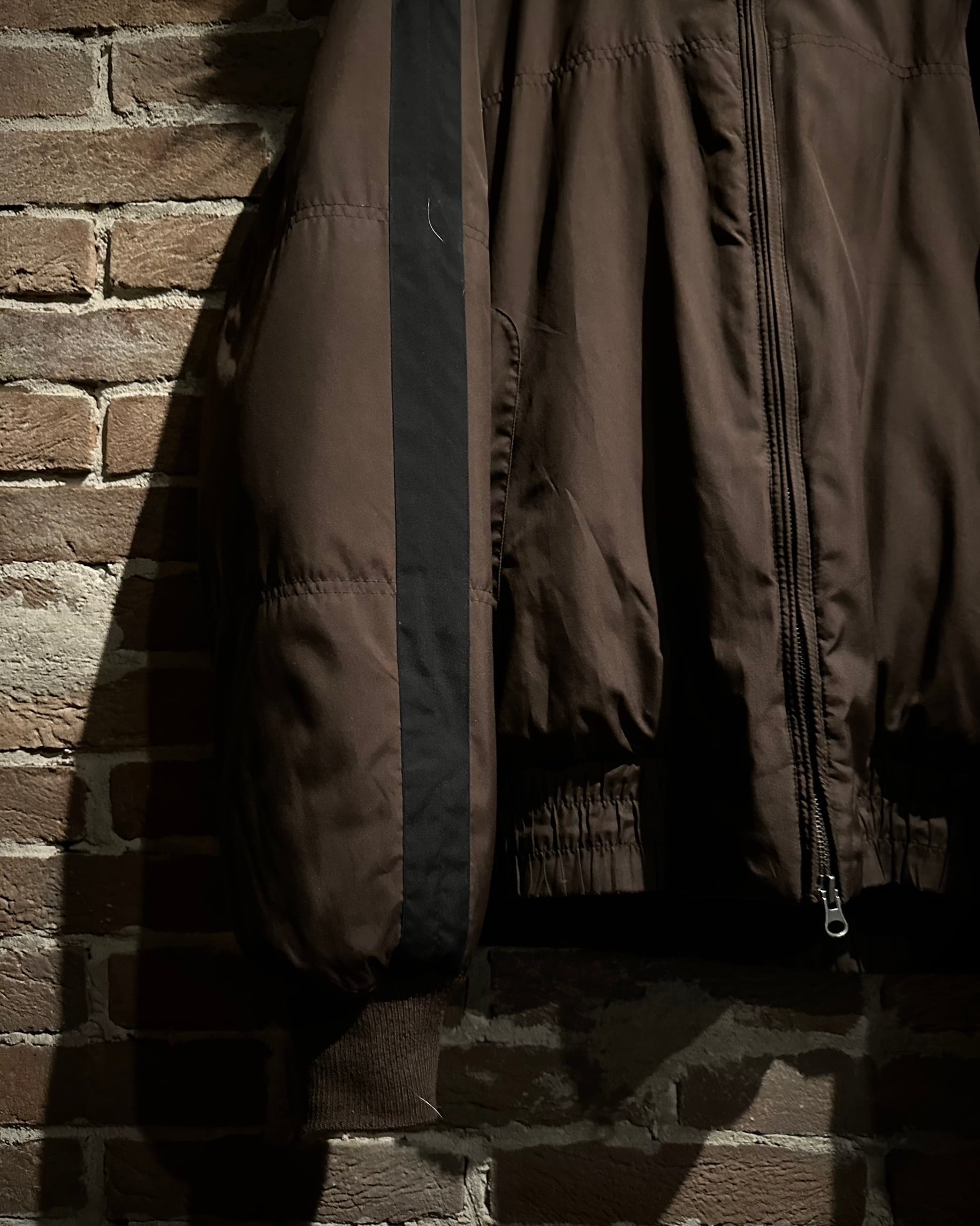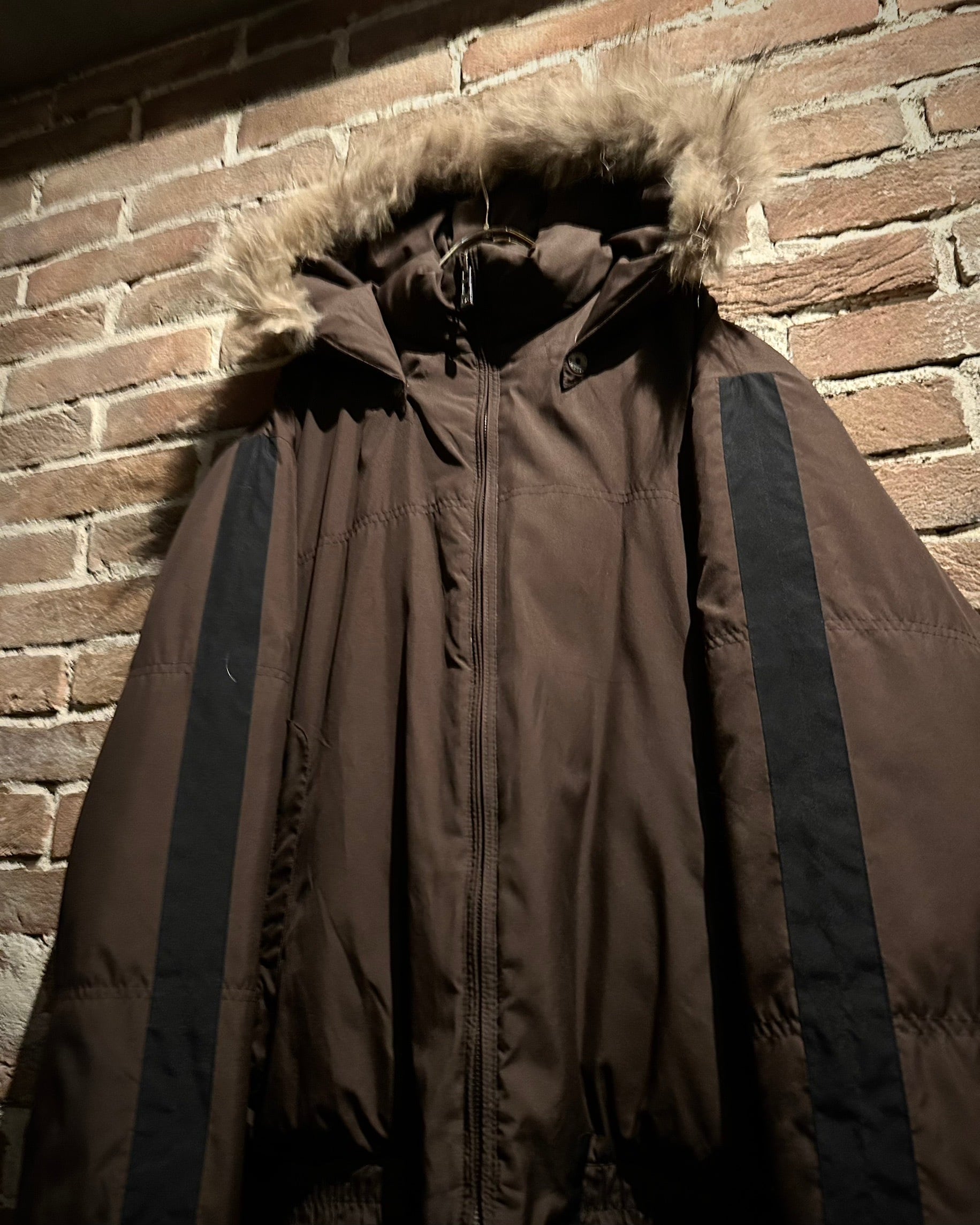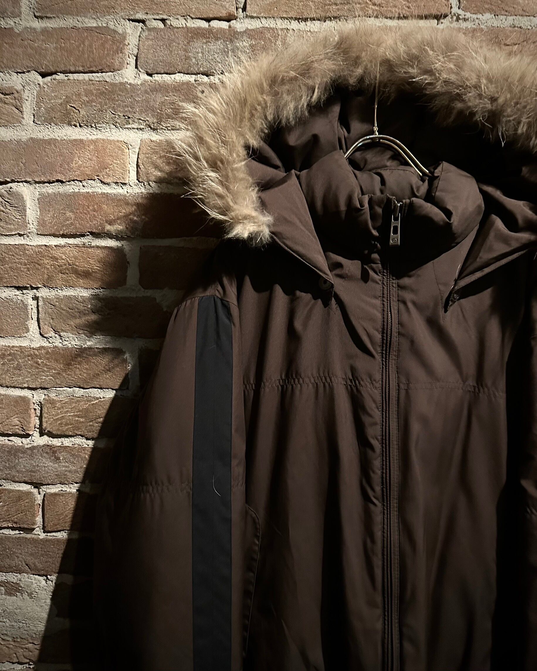 落ち着いたブラウンカラーのボディに、しっかりとボリュームを持たせたダウンを内包。表地はマットな質感で、スポーティーでありながらもどこか都会的な表情を感じさせます。