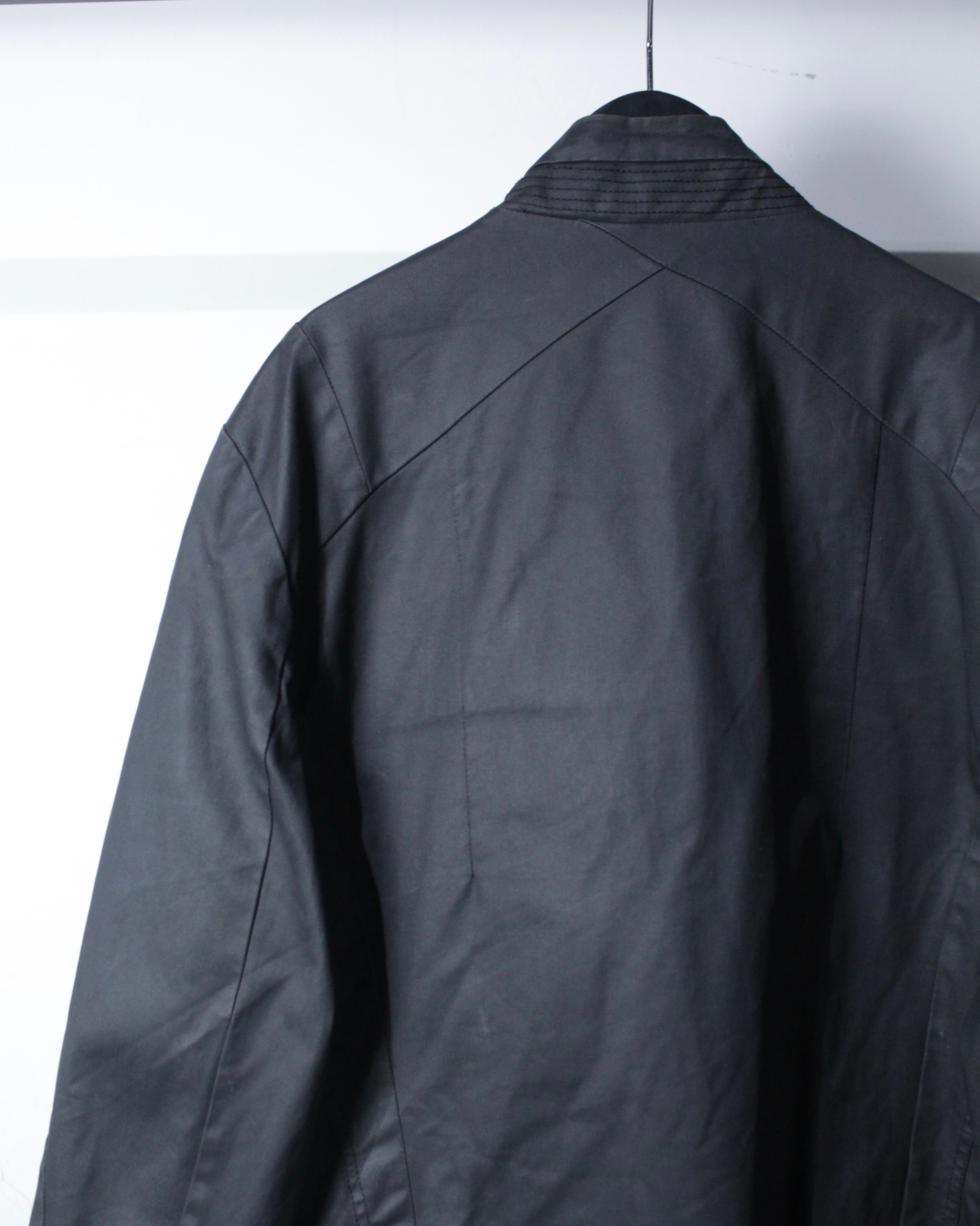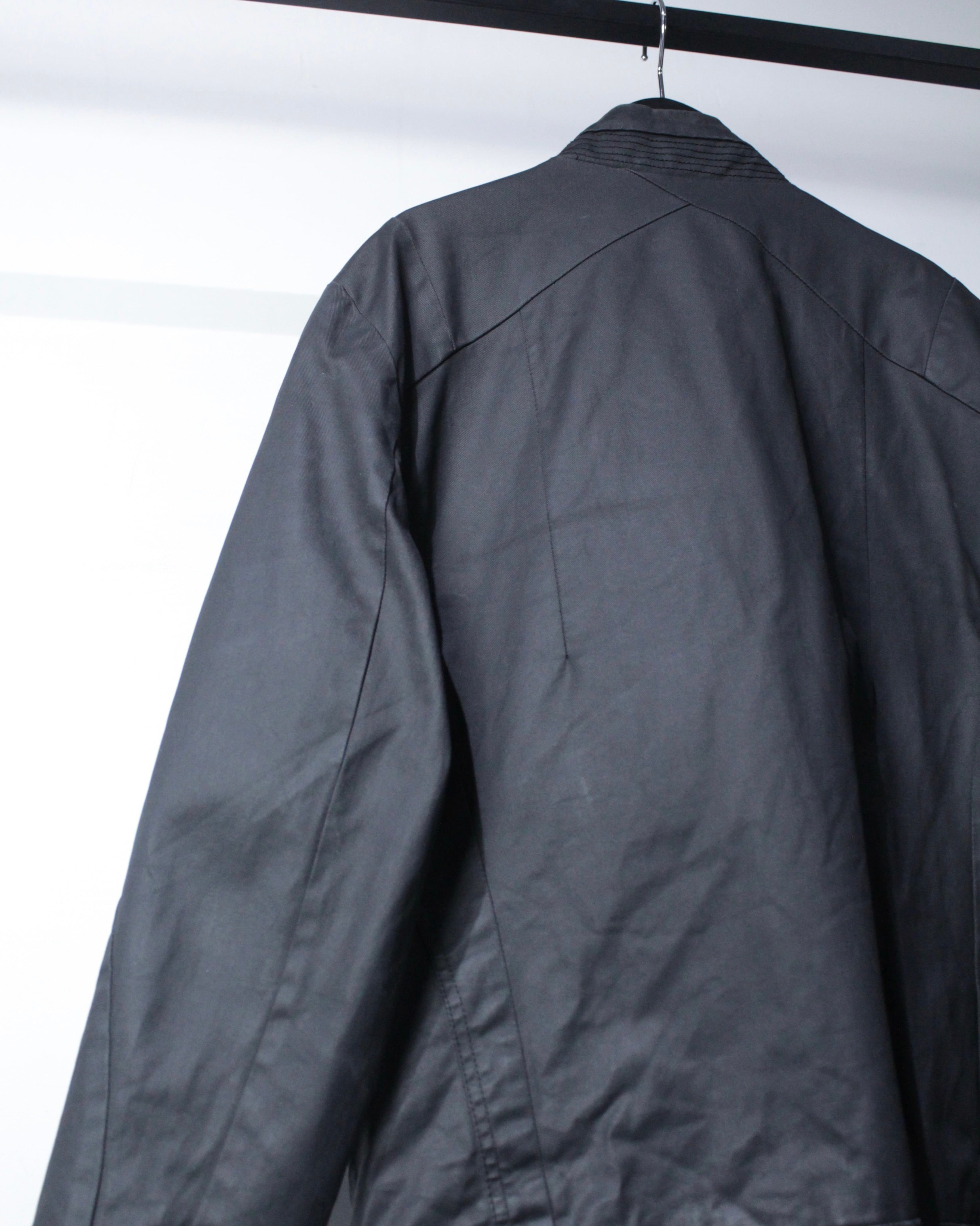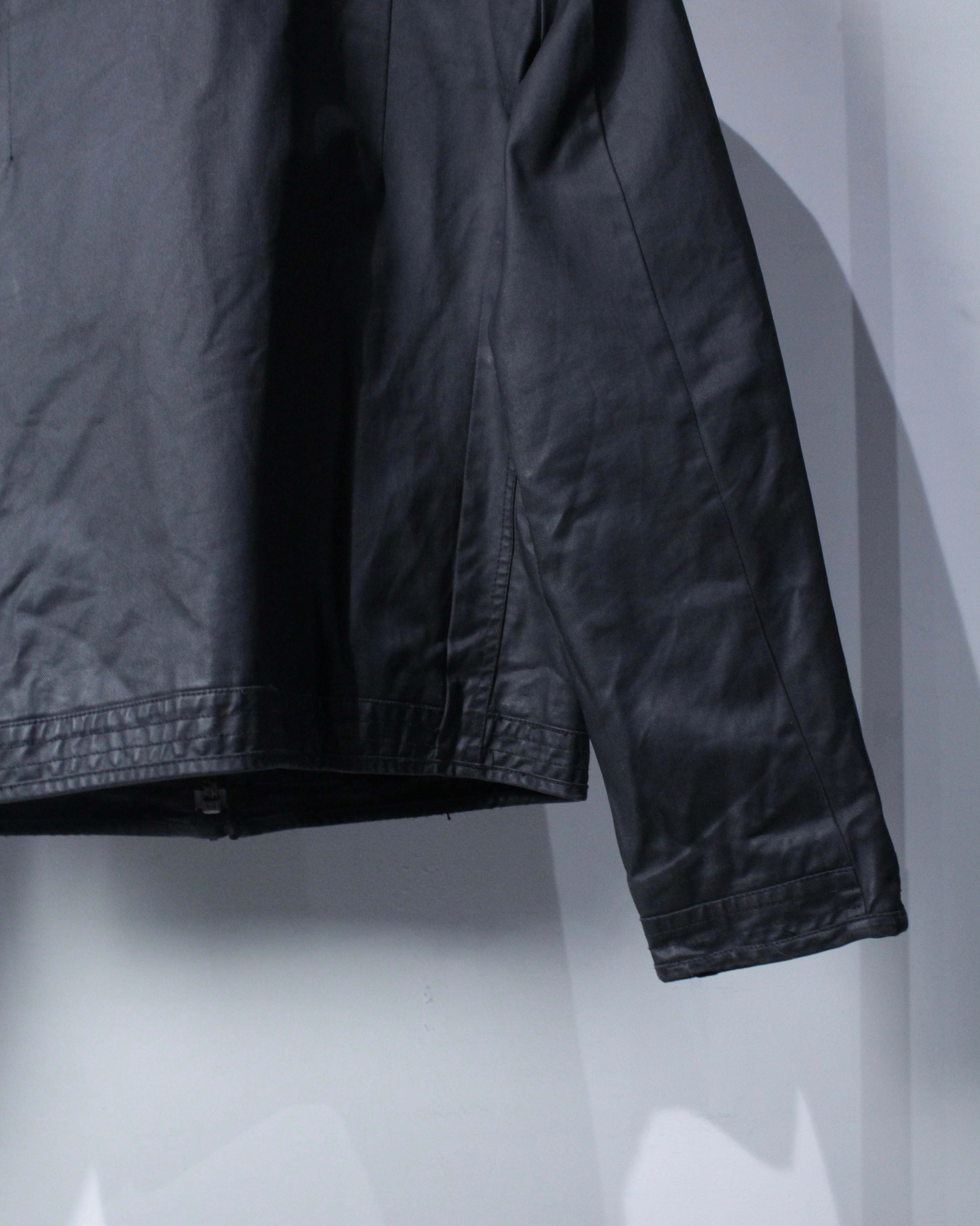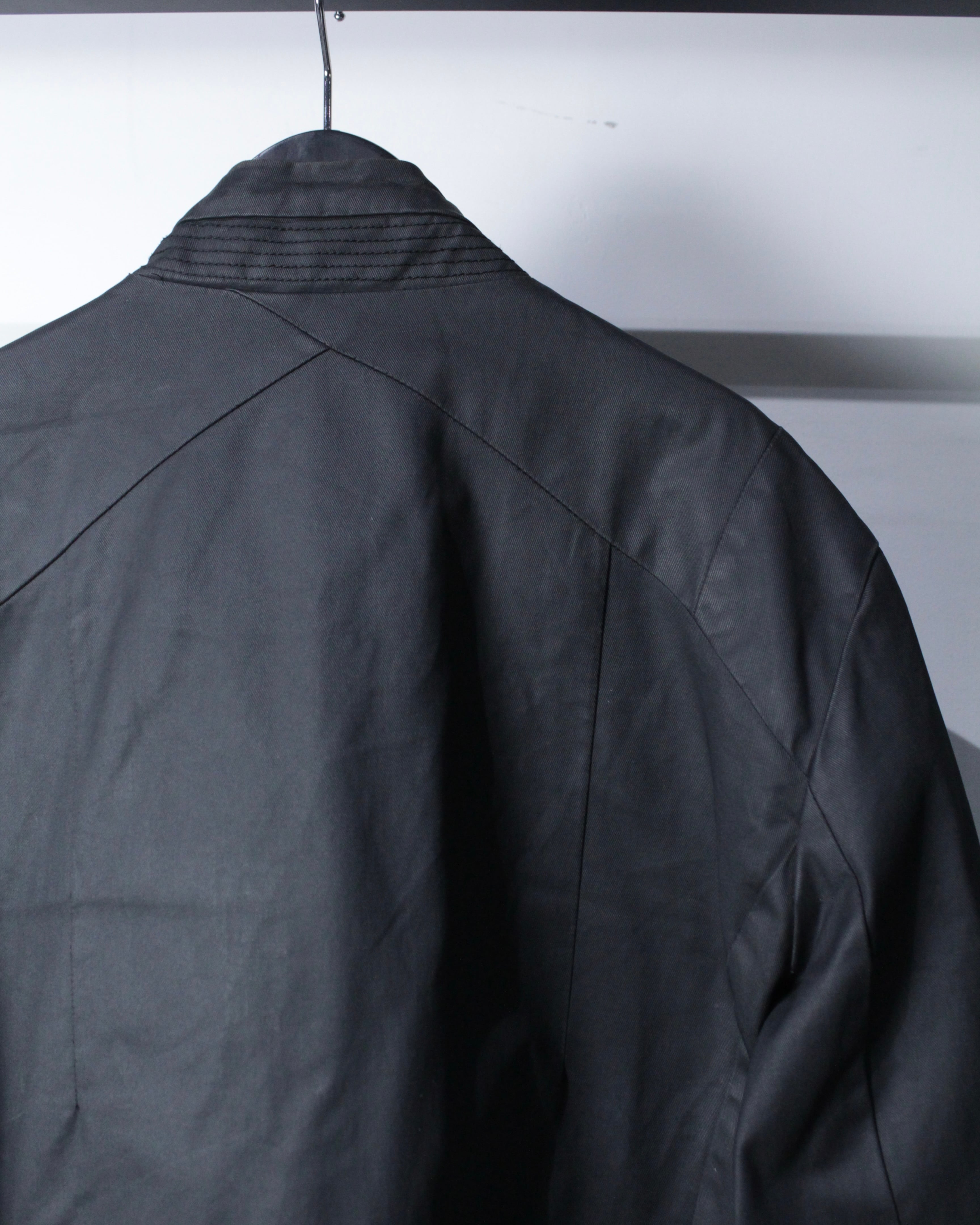 マットな質感のブラックボディにコーティング加工を施し、ナイロンとはまた異なる、しっとりとした鈍い艶感が際立つ1着。ミリタリーやワーク由来のディテールをベースにしながら、都会的でモードな表情へと昇華されています。