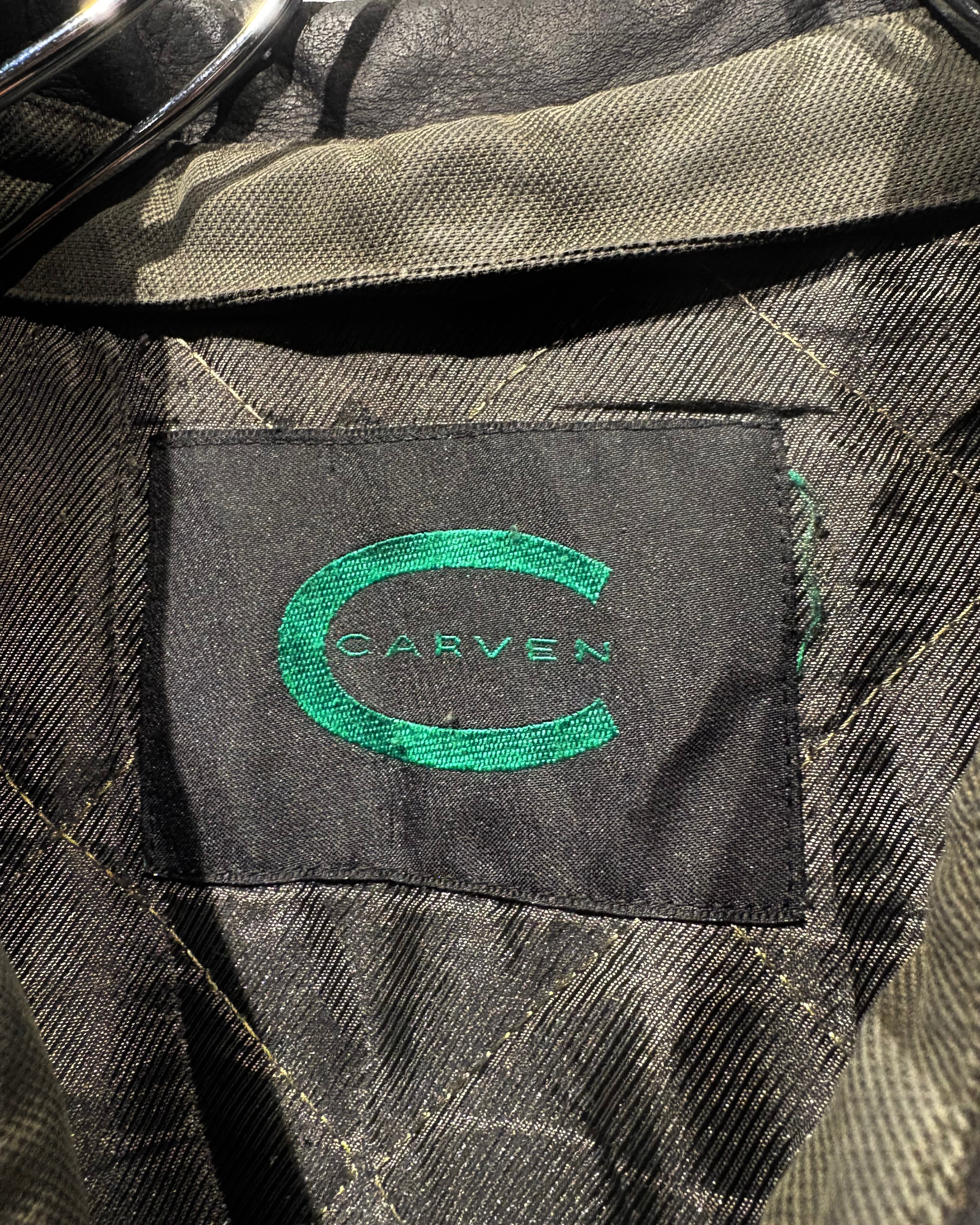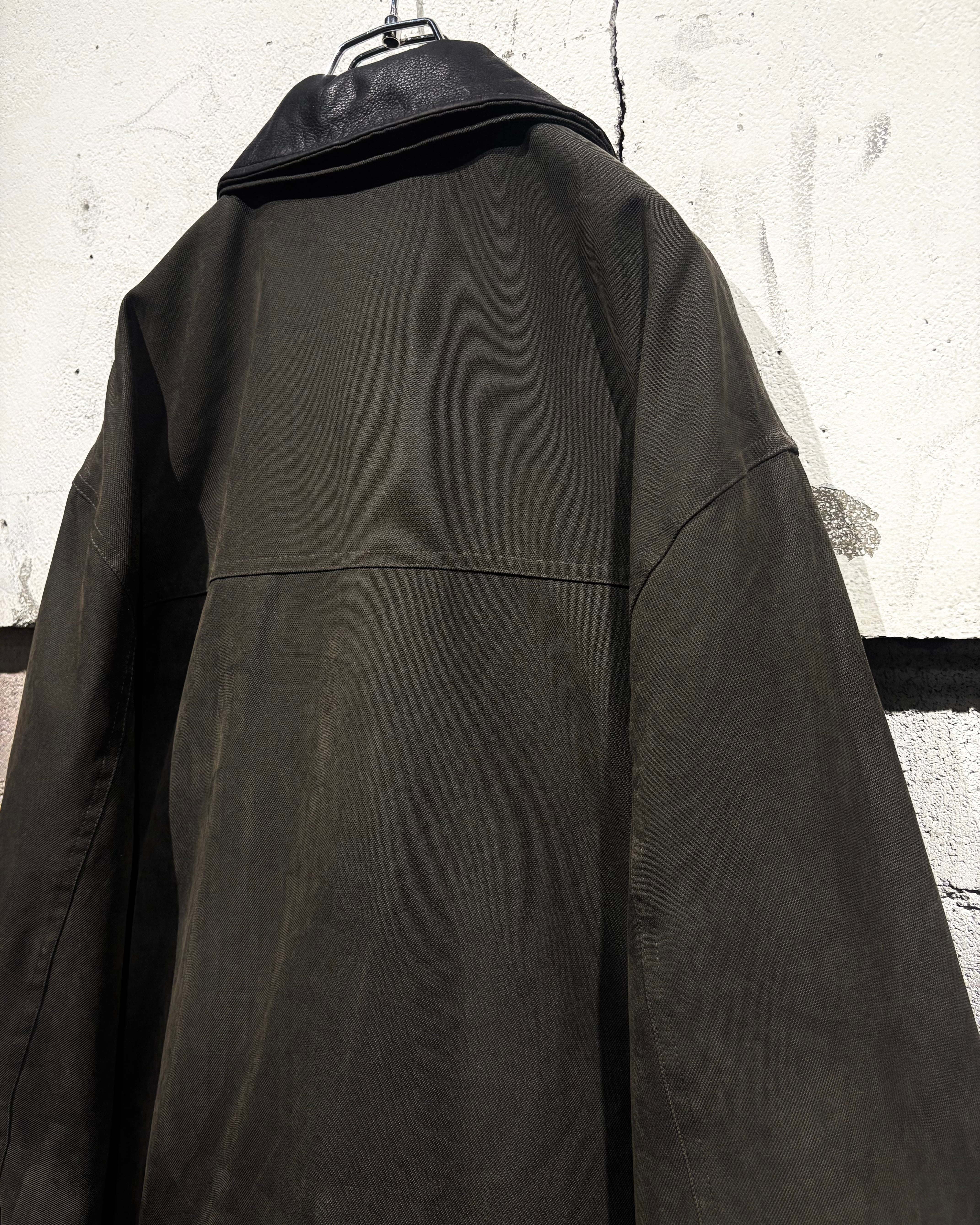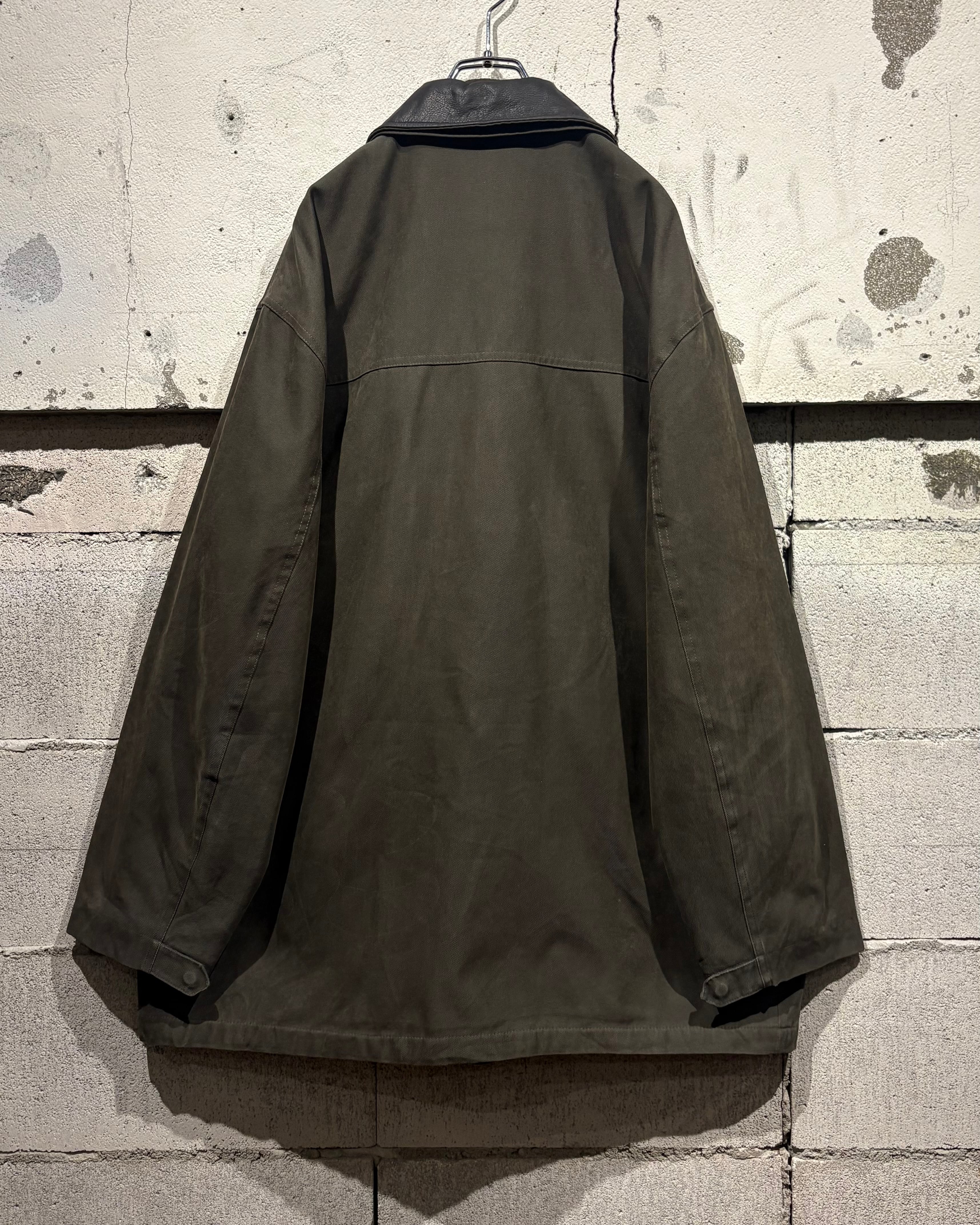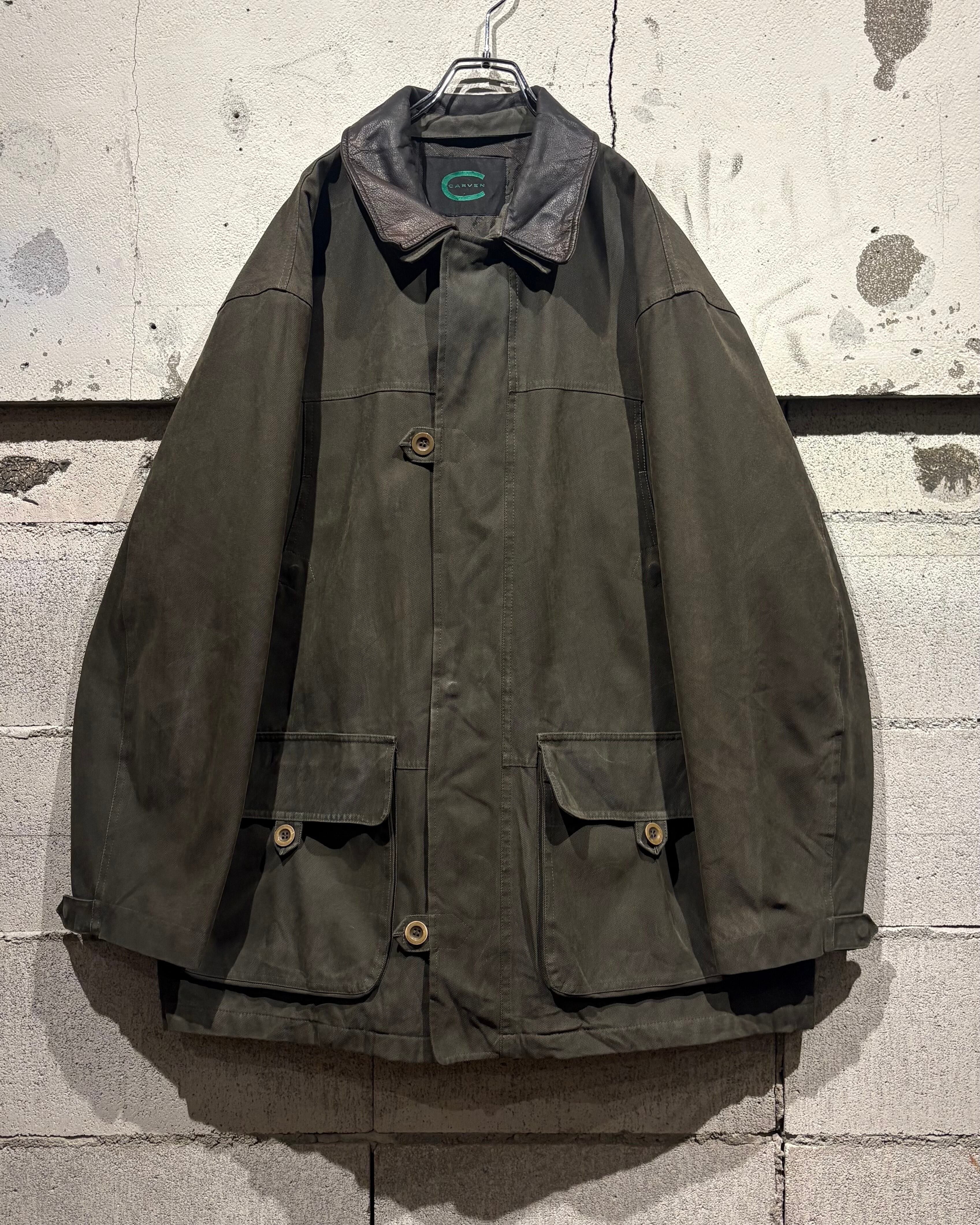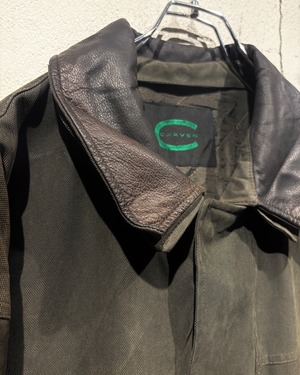 1945年フランス、パリで創業したラグジュアリーブランド"CARVEN"より、ハリのあるポリエステルのボディをベースに、襟にレザーを切り替えたカバーオールジャケットをご紹介いたします。