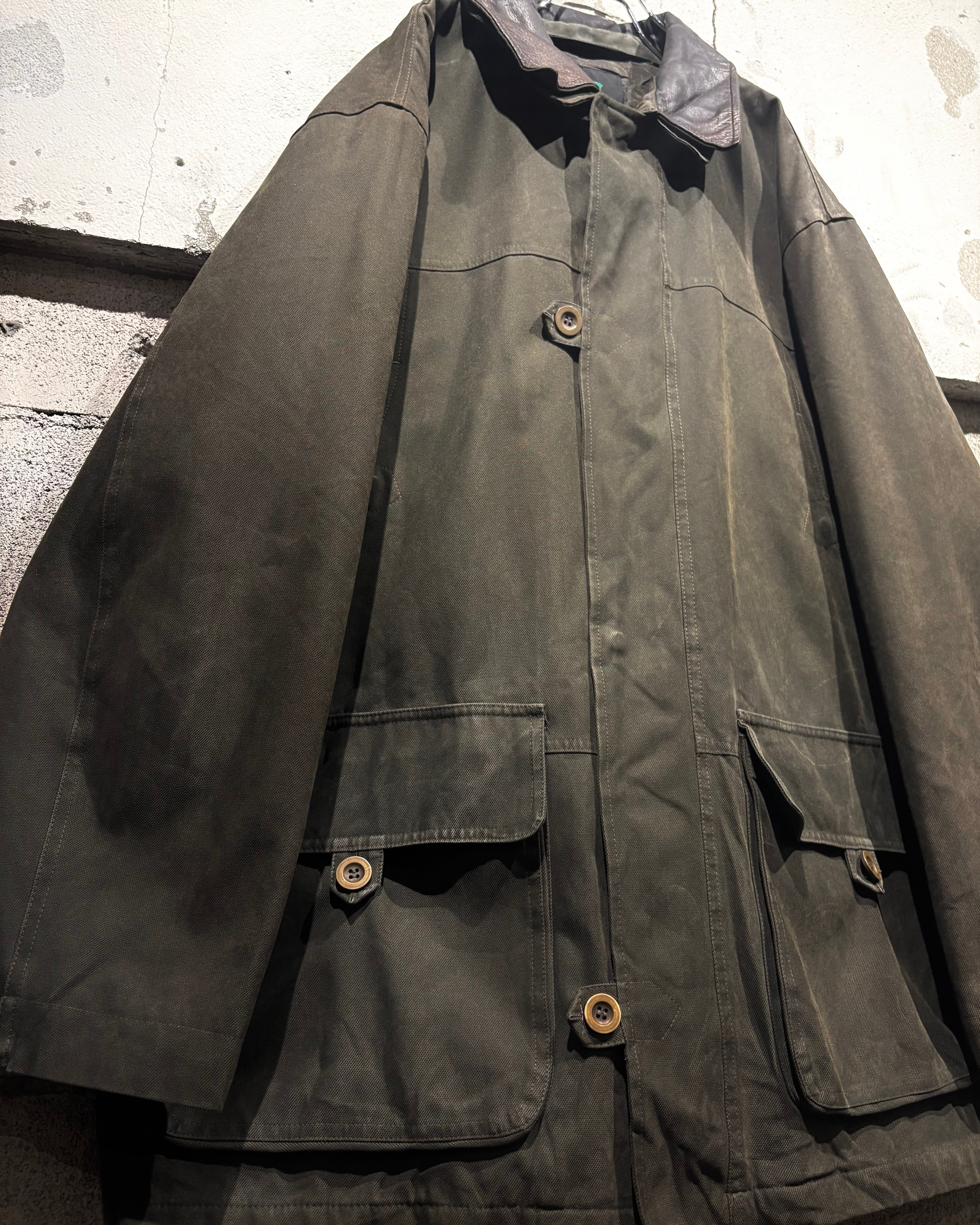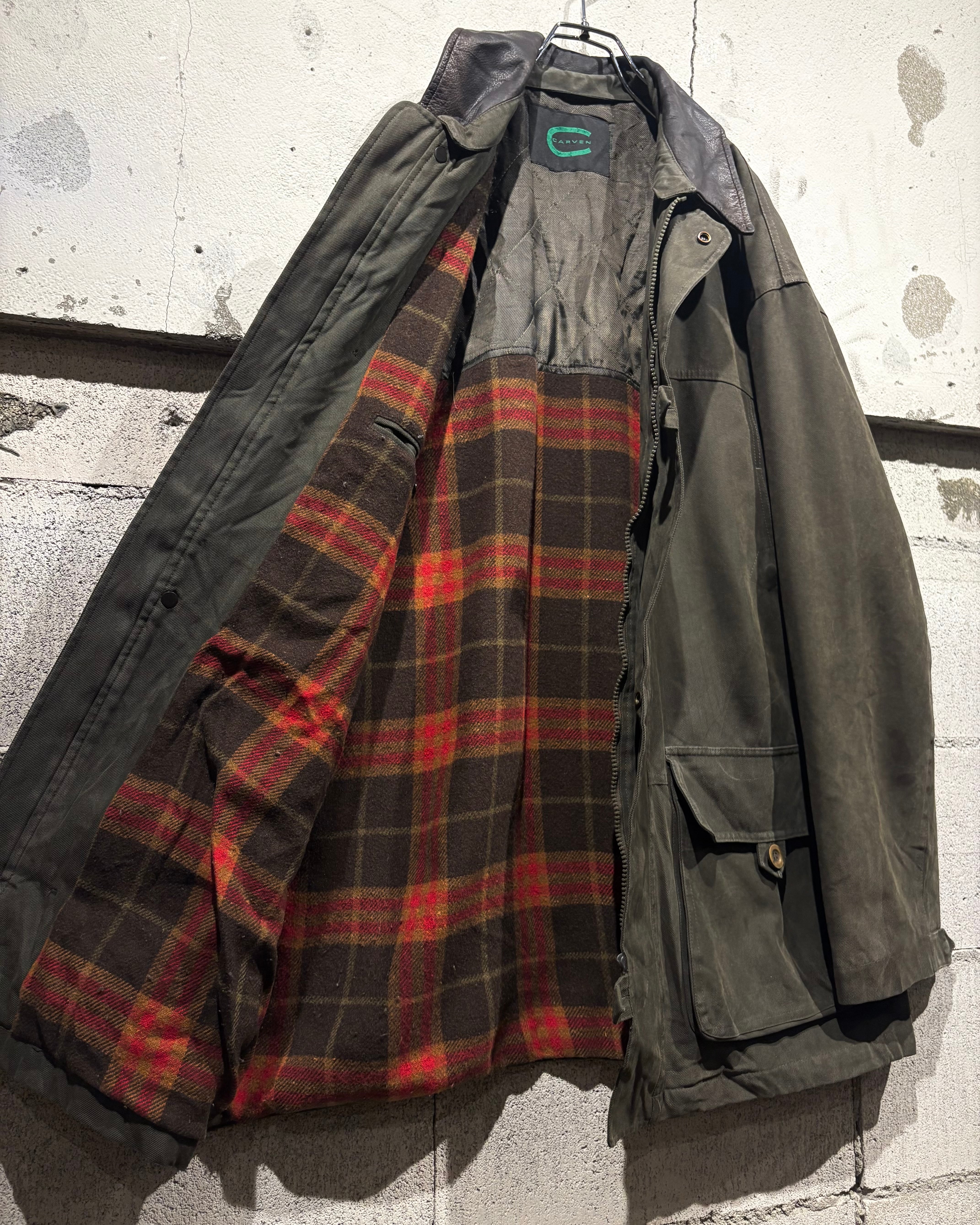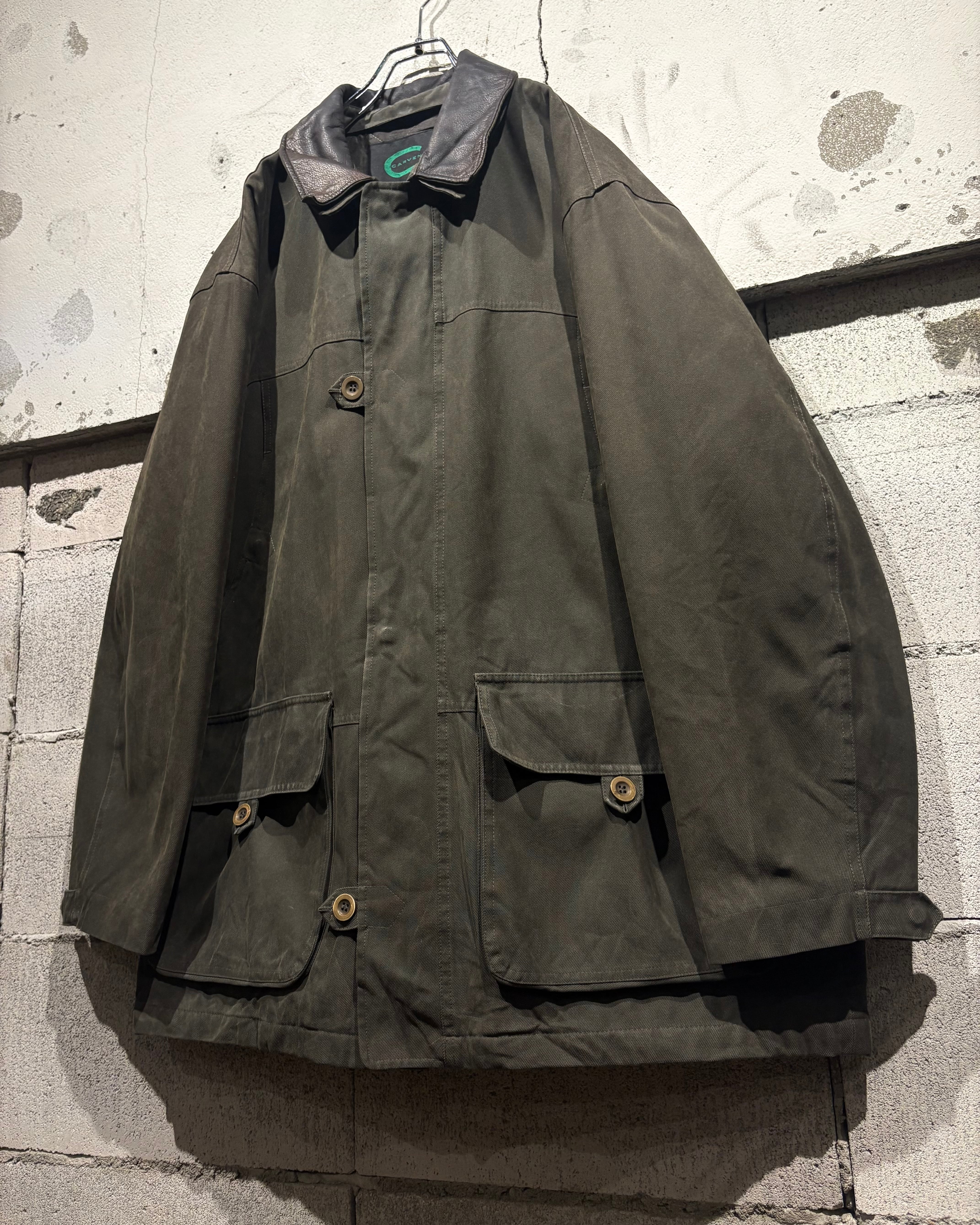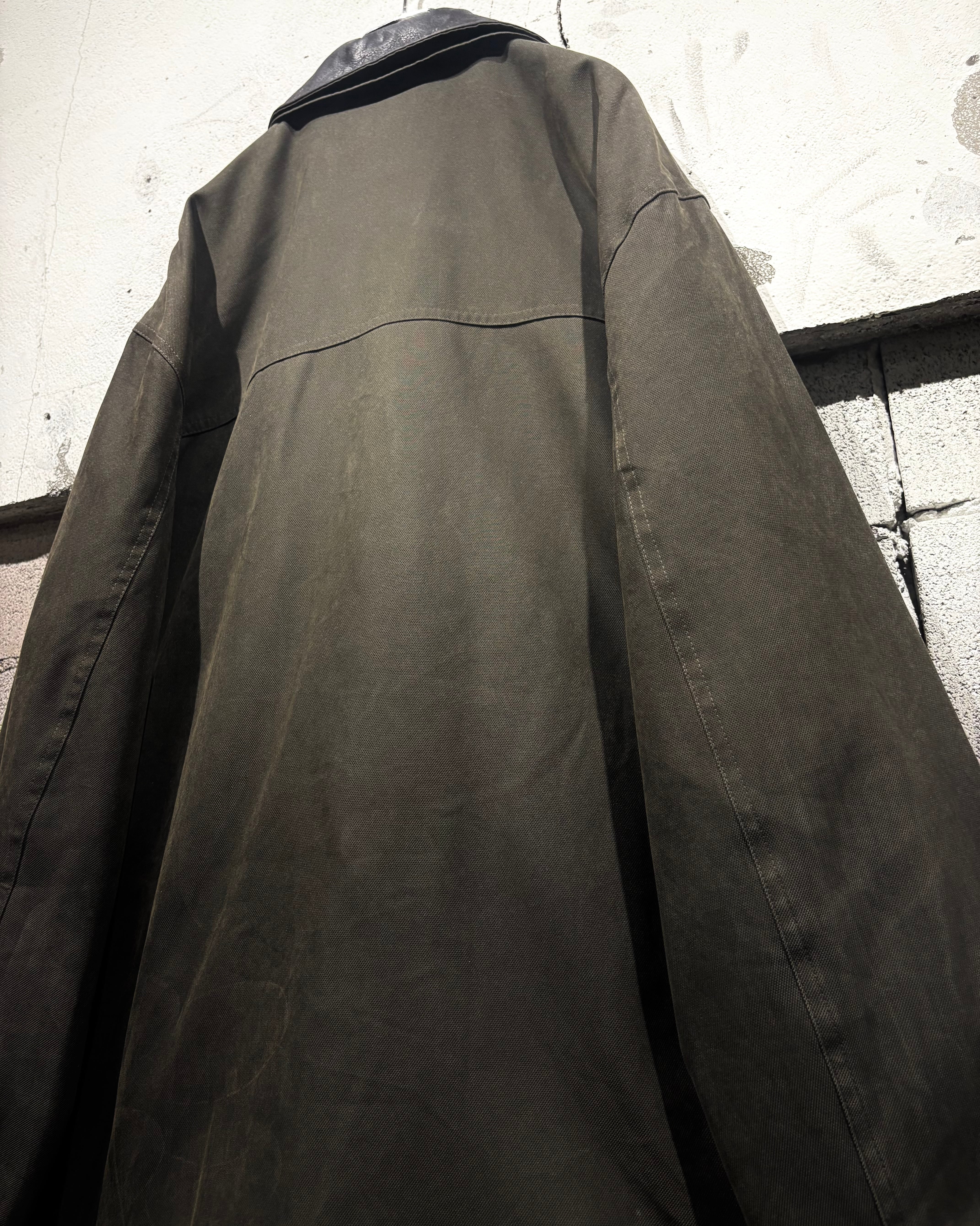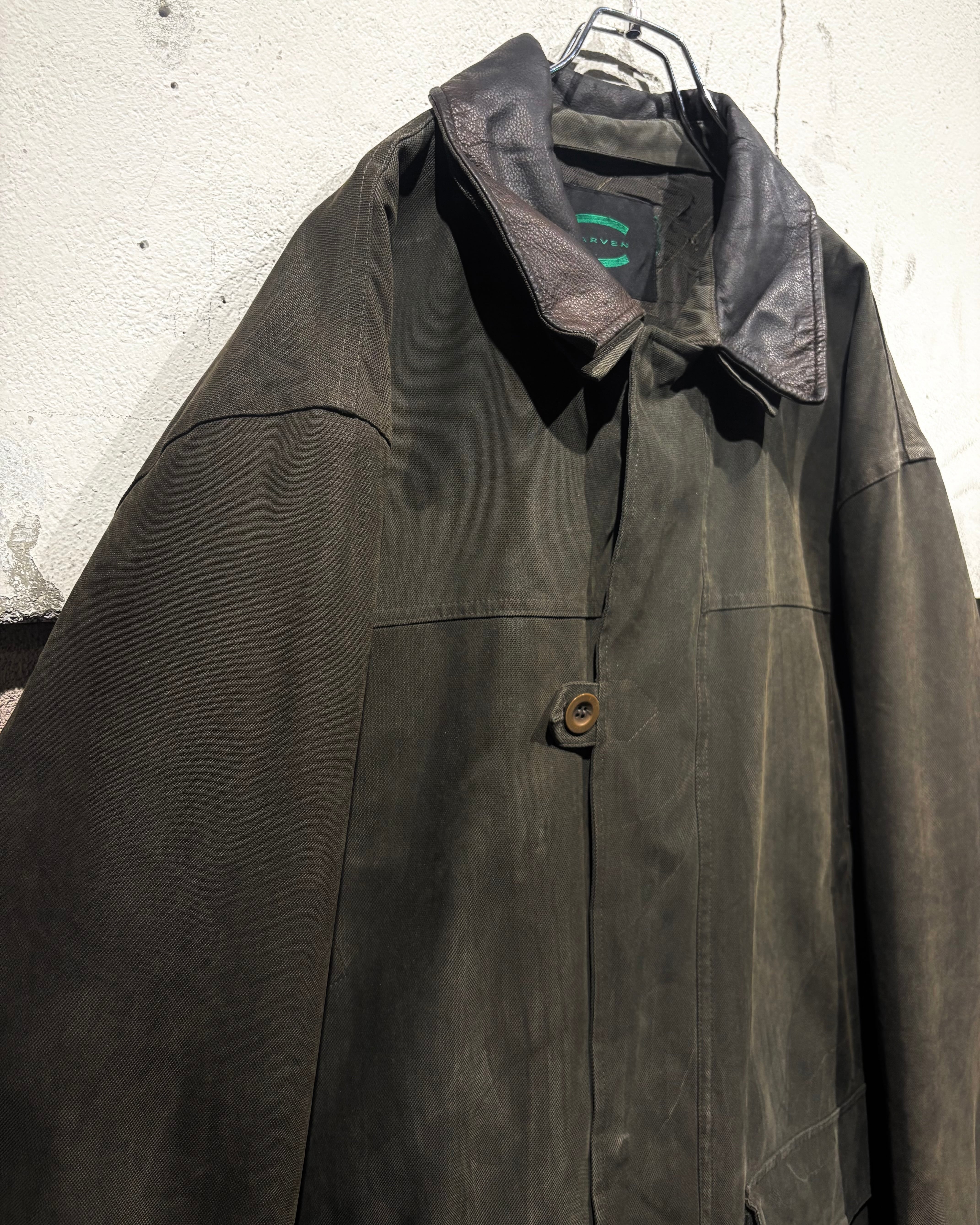 1945年フランス、パリで創業したラグジュアリーブランド"CARVEN"より、ハリのあるポリエステルのボディをベースに、襟にレザーを切り替えたカバーオールジャケットをご紹介いたします。