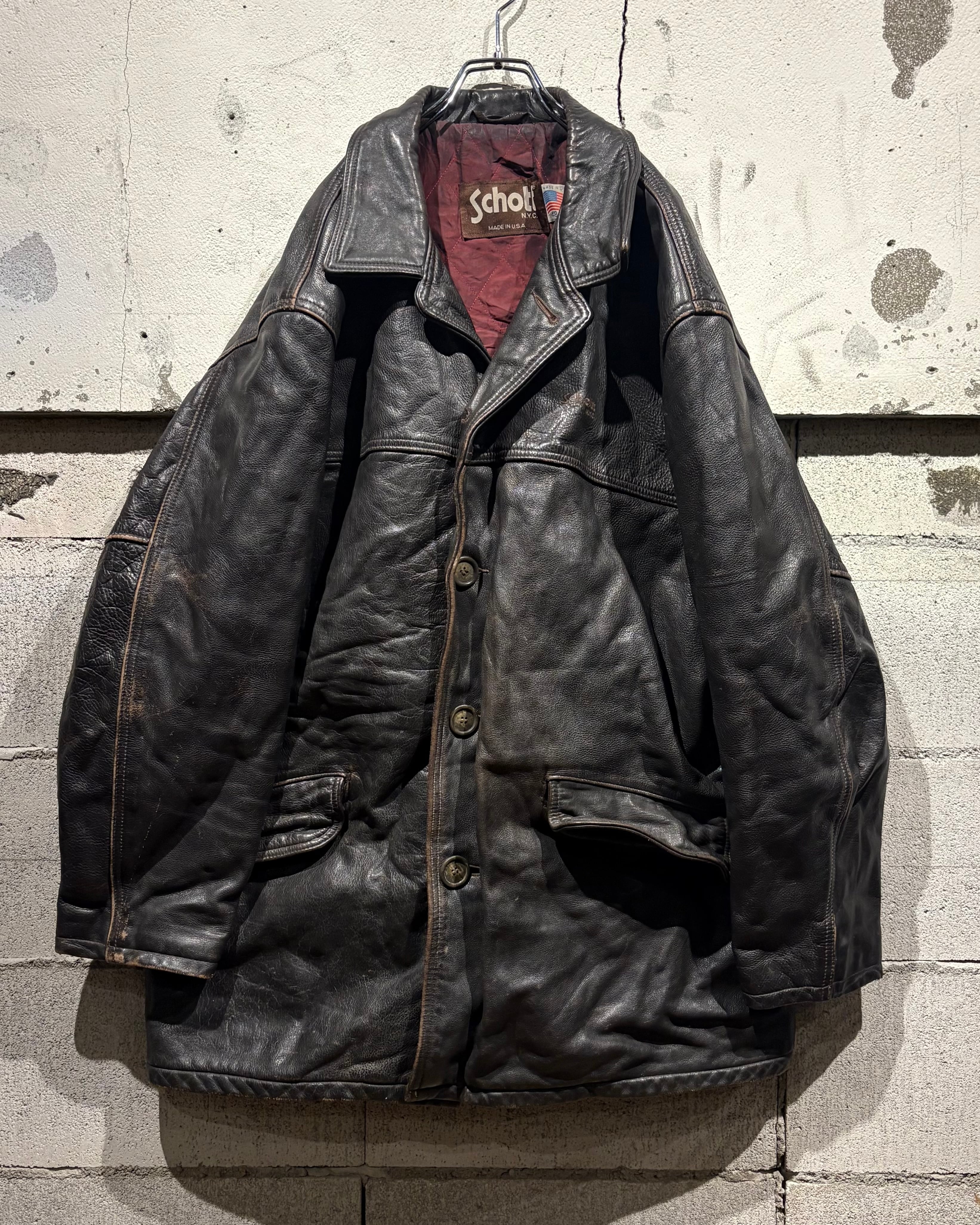 アメリカンレザージャケットの代名詞とも言える“Schott”より、重厚感と実用性を兼ね備えたカーコートタイプのレザージャケット。