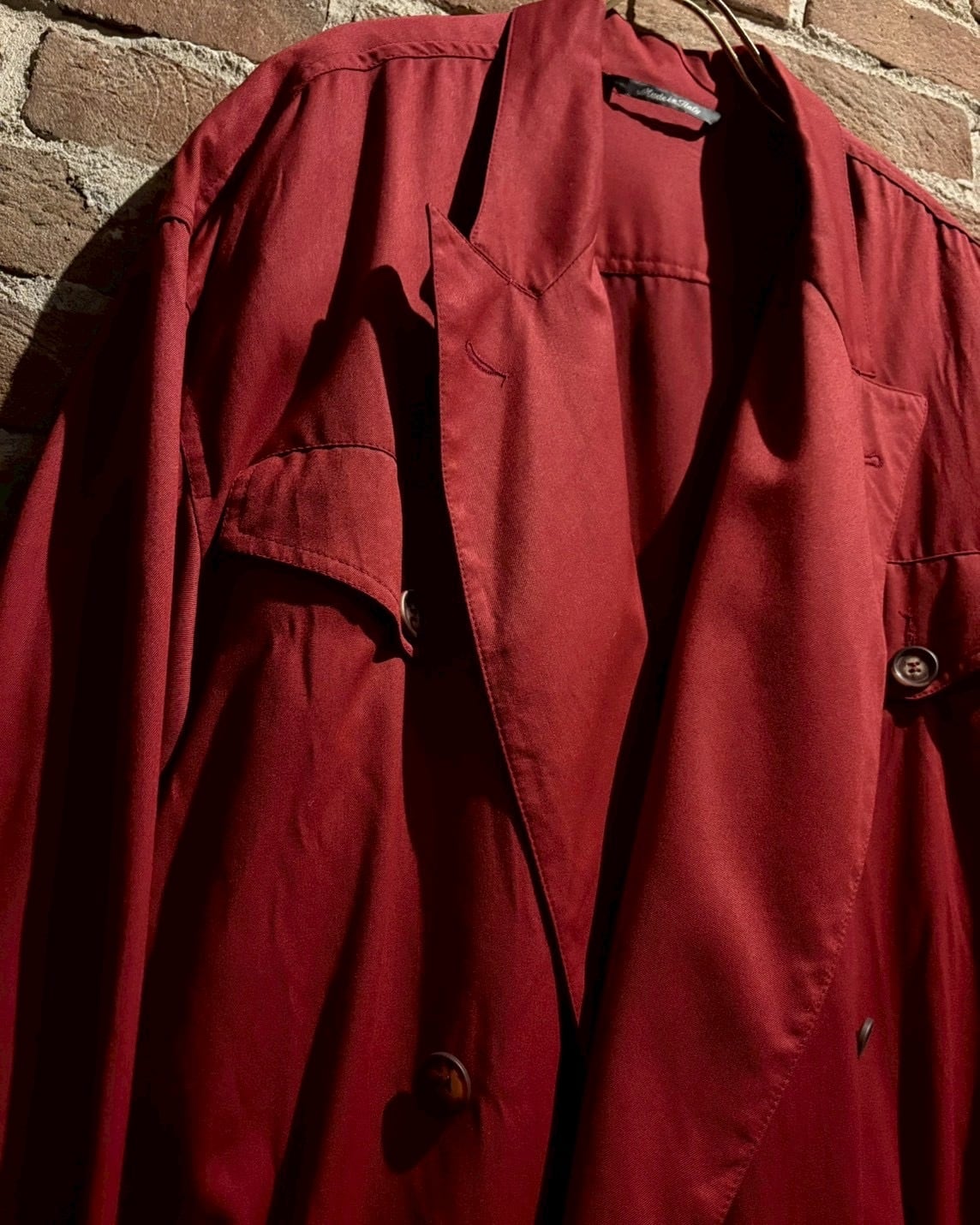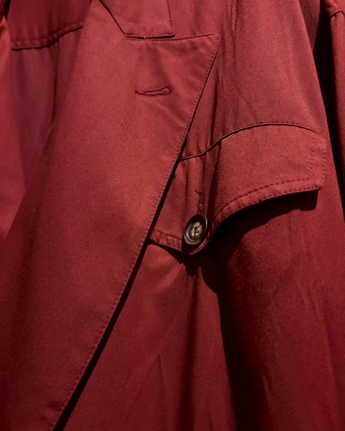 端正なピークドラペルと、ダブルブレスト特有の重なりが生み出す立体感が、ブルゾンながらも品のある佇まいを演出しています。