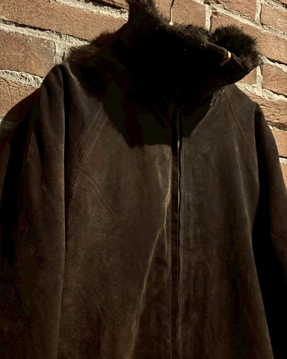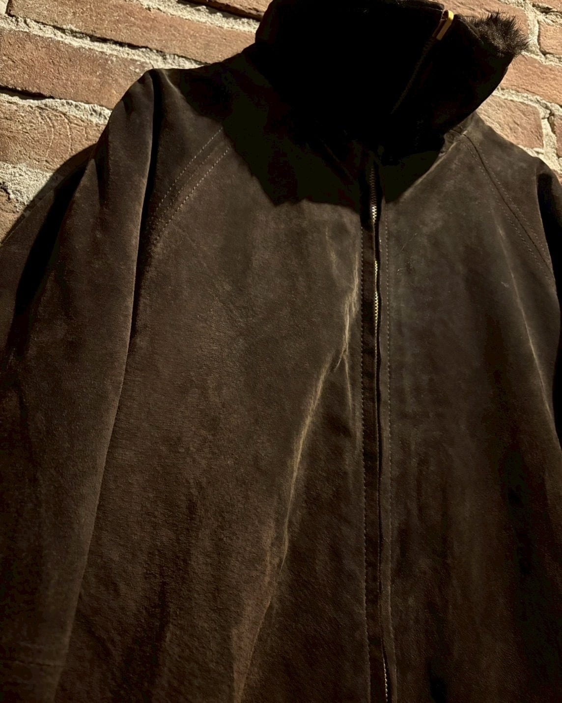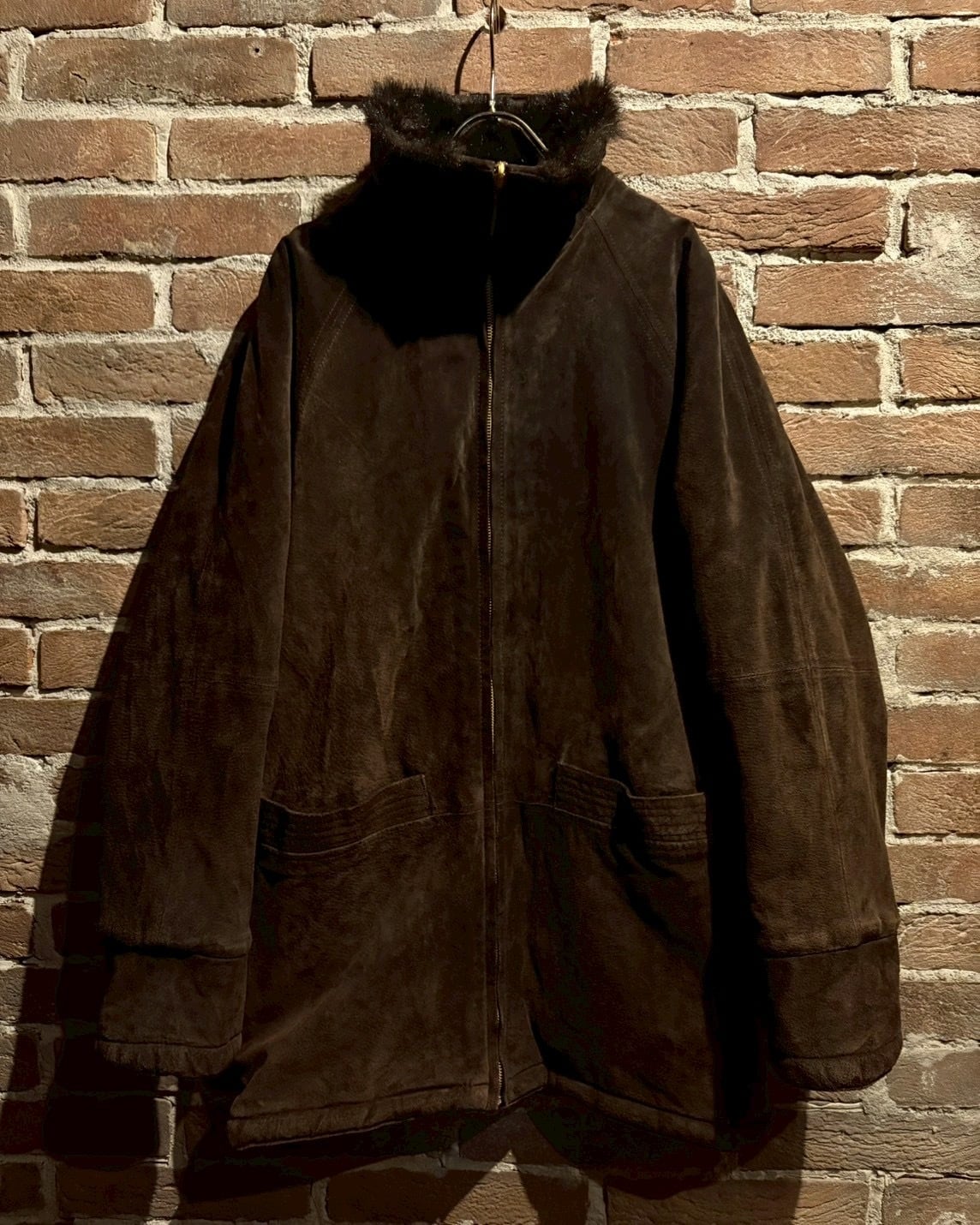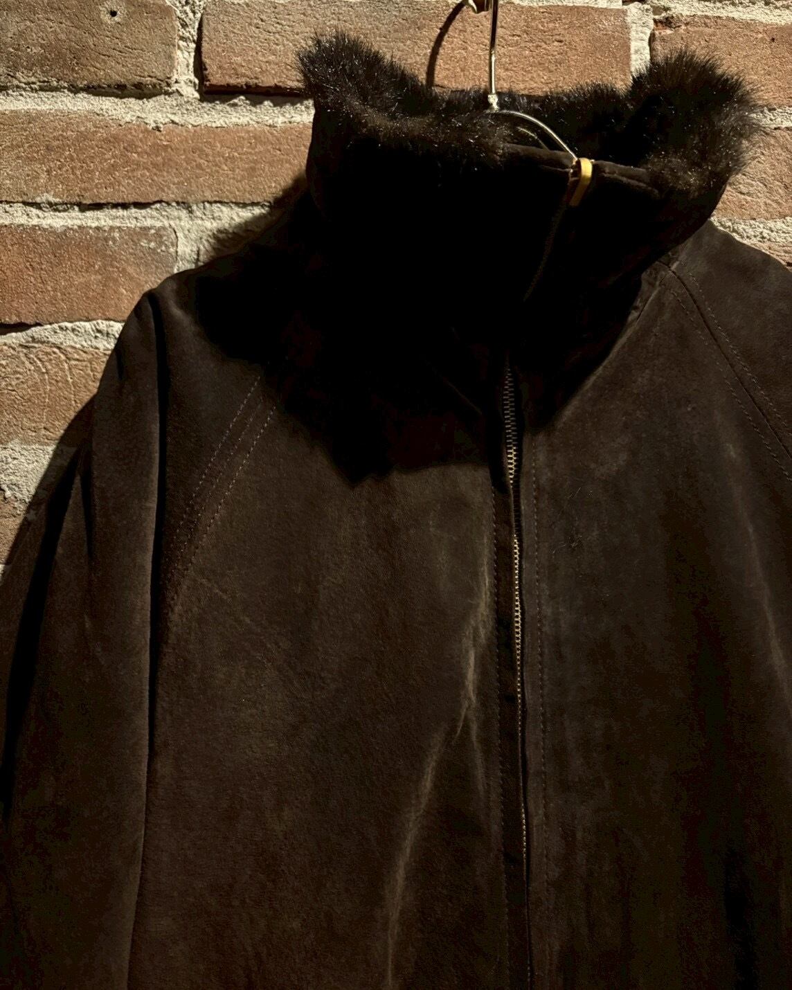 毛足の長いフェイクファーとブラウンのスエードレザーボディを組み合わせた、極めて稀少な両A面といっても差し支えないリバーシブル仕様のフルジップジャケット。
