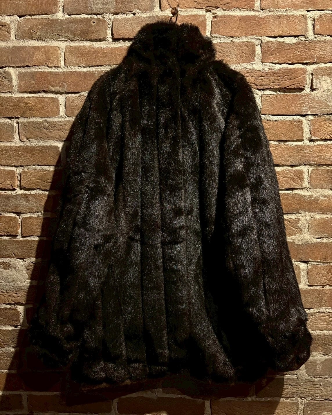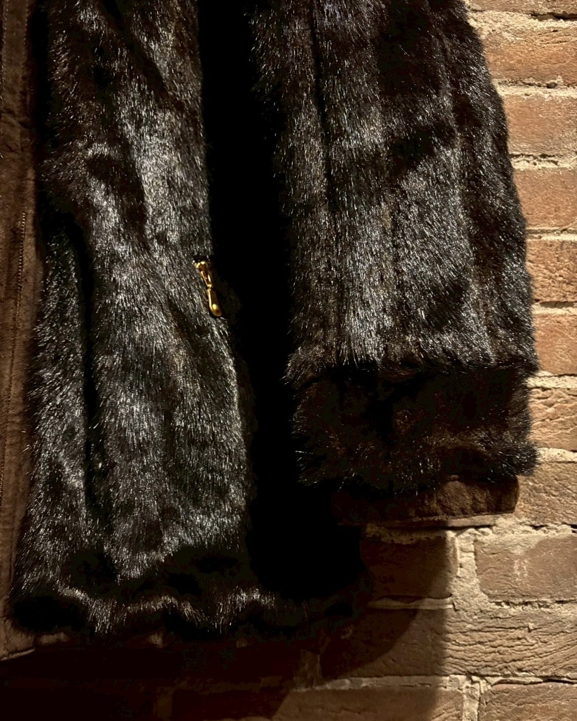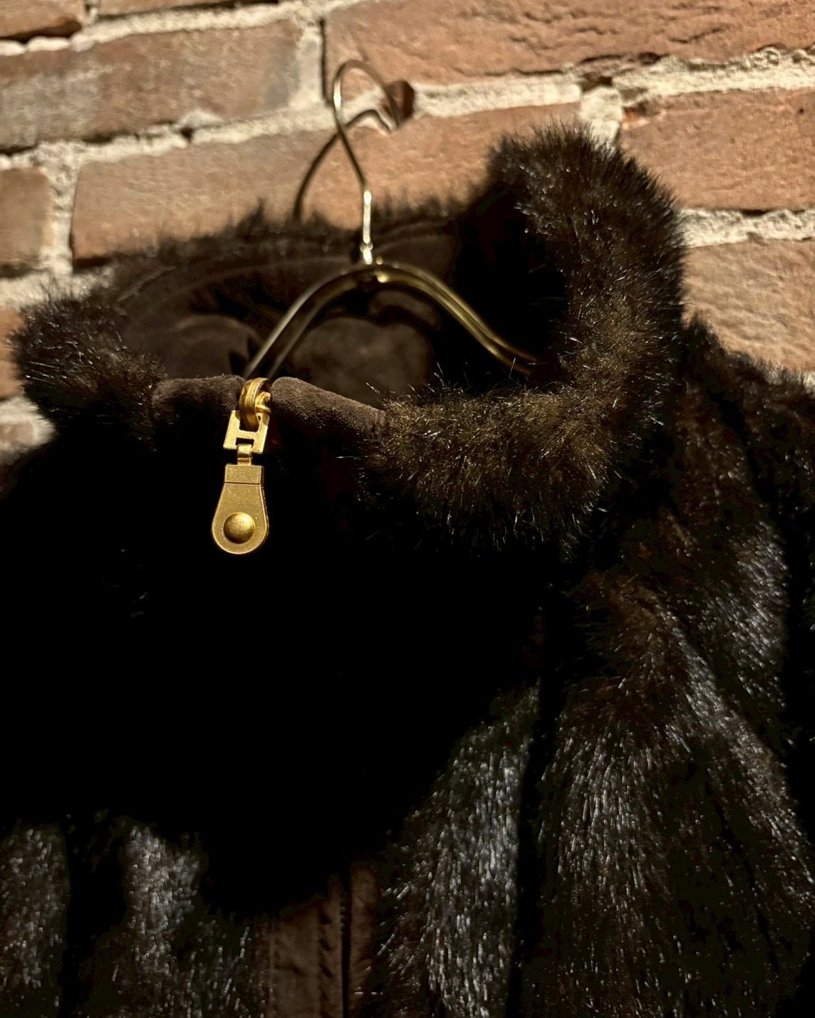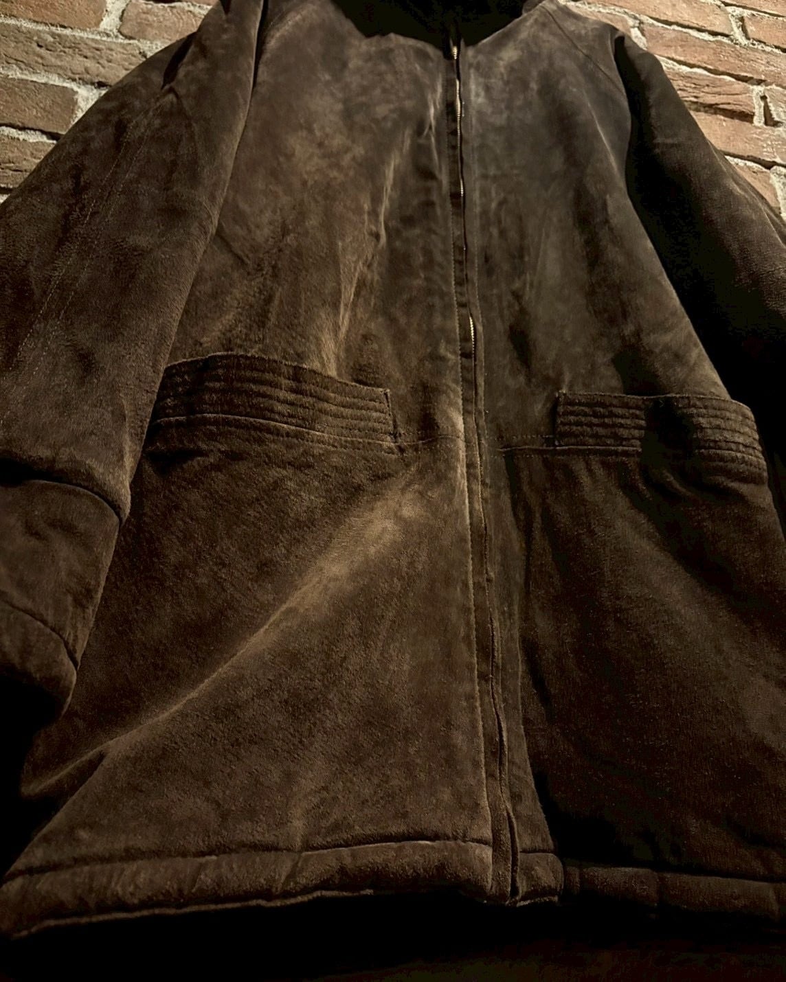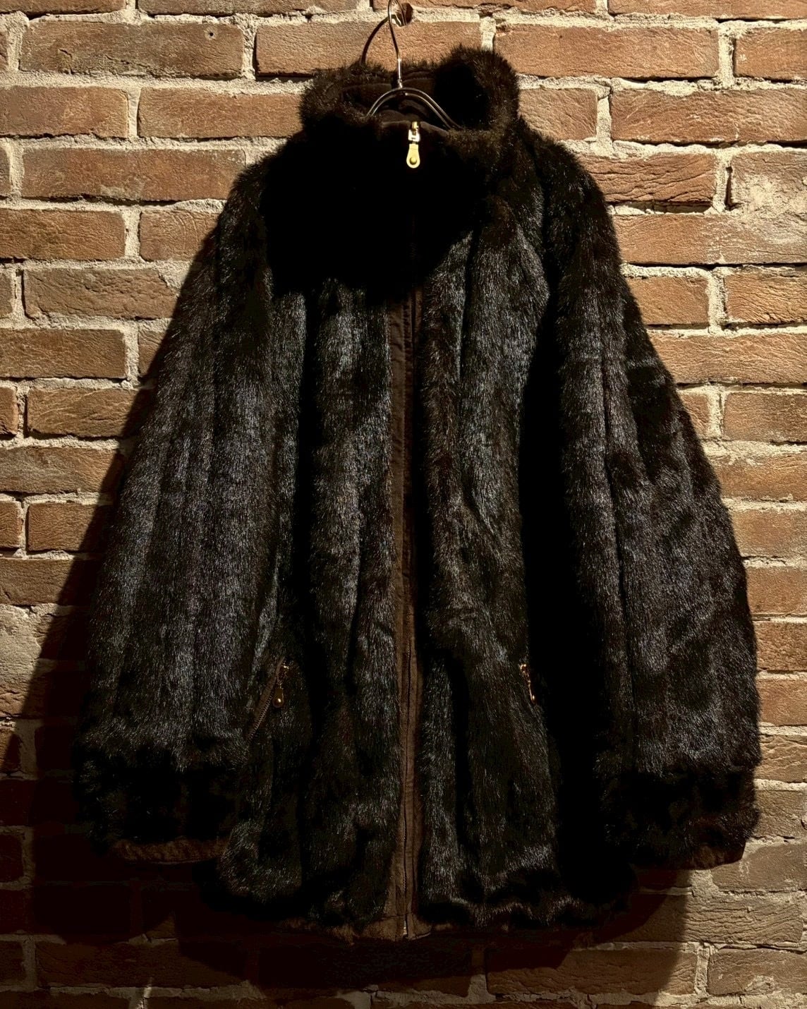 毛足の長いフェイクファーとブラウンのスエードレザーボディを組み合わせた、極めて稀少な両A面といっても差し支えないリバーシブル仕様のフルジップジャケット。