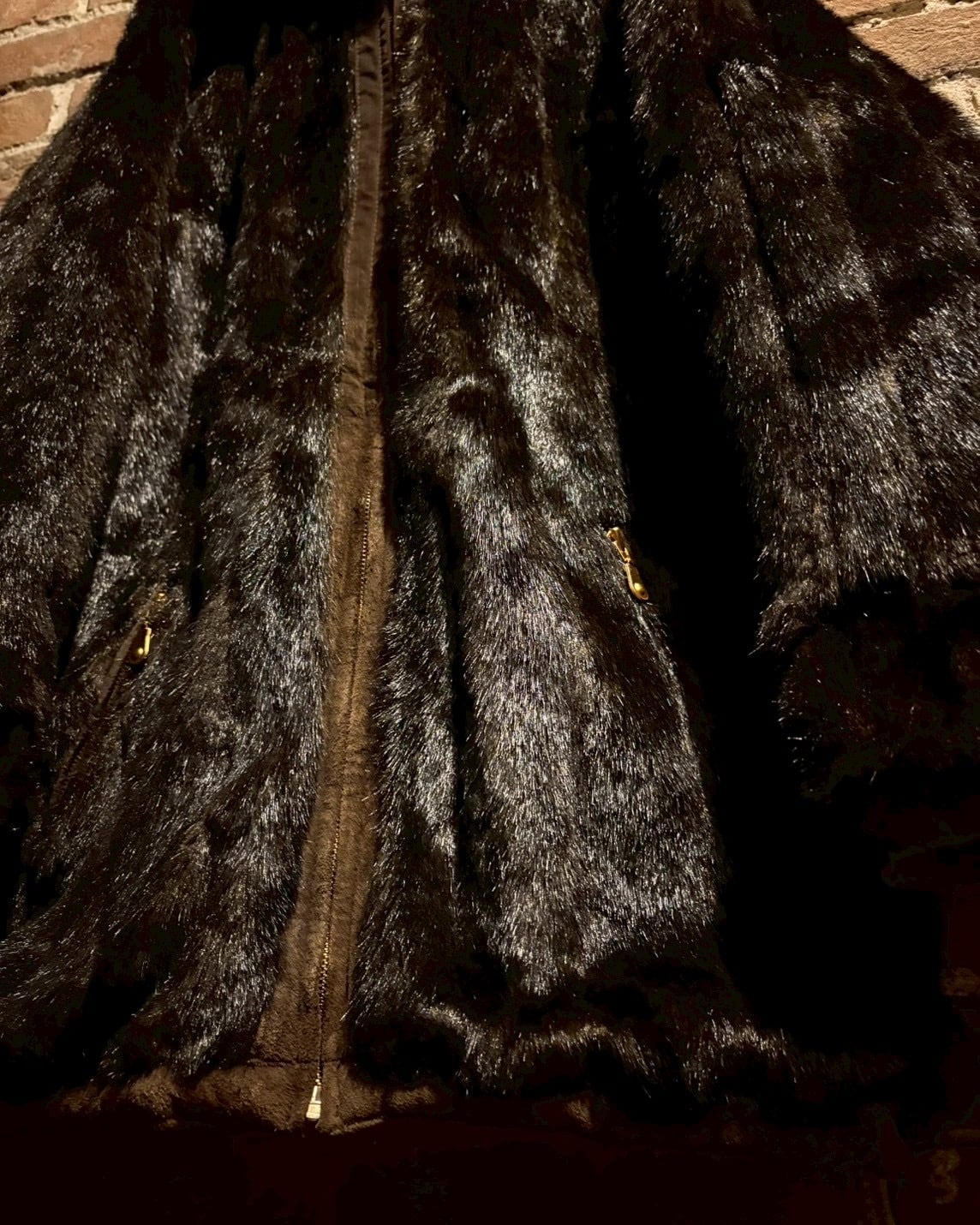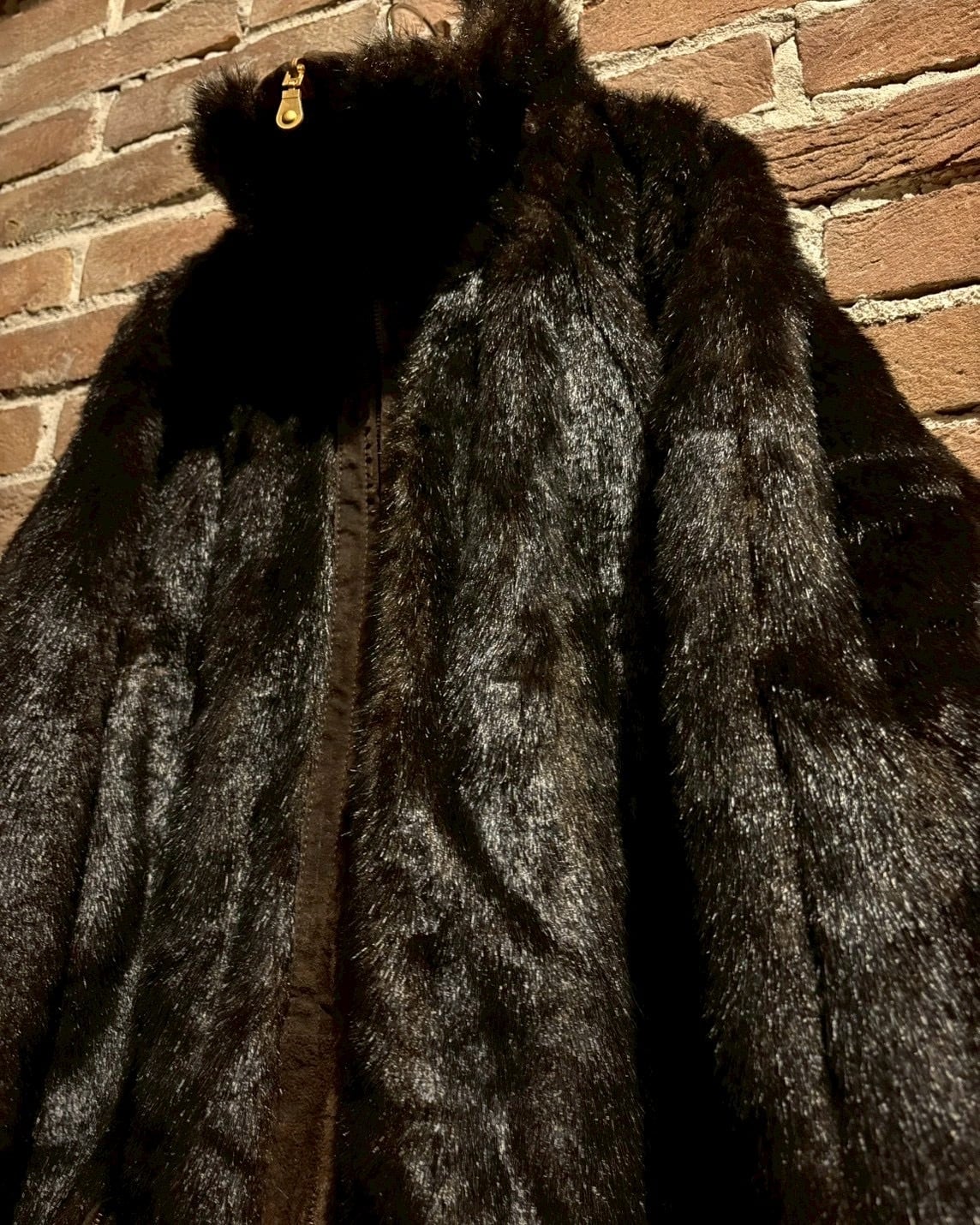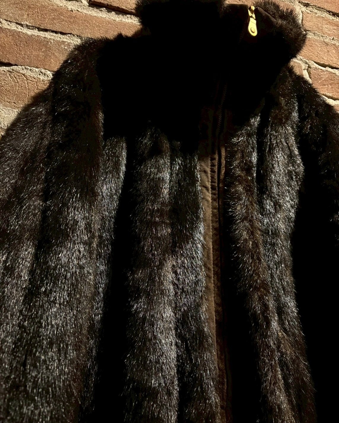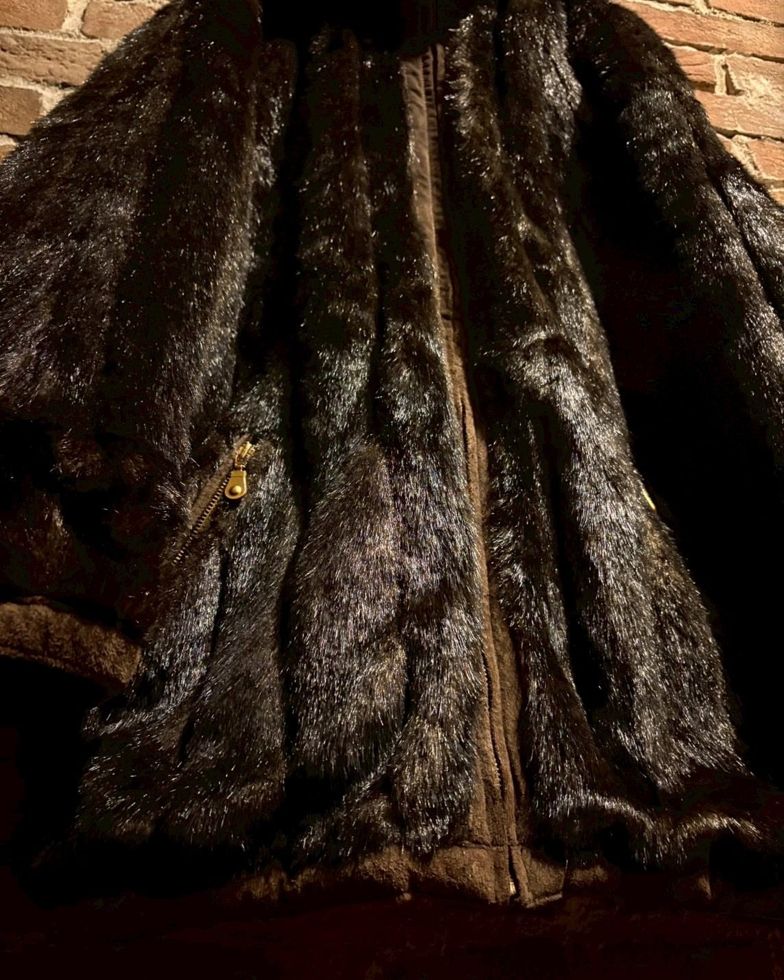 毛足の長いフェイクファーとブラウンのスエードレザーボディを組み合わせた、極めて稀少な両A面といっても差し支えないリバーシブル仕様のフルジップジャケット。