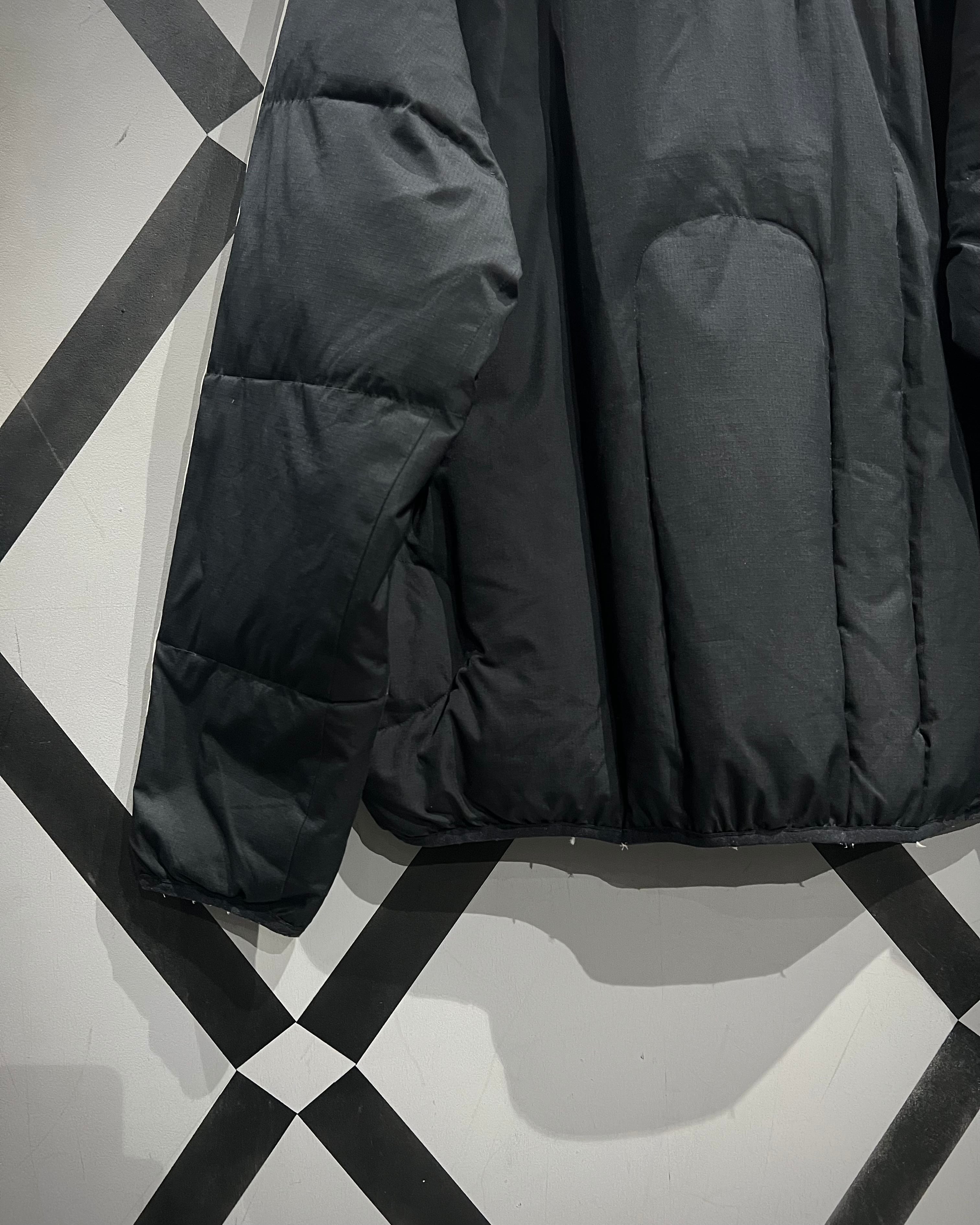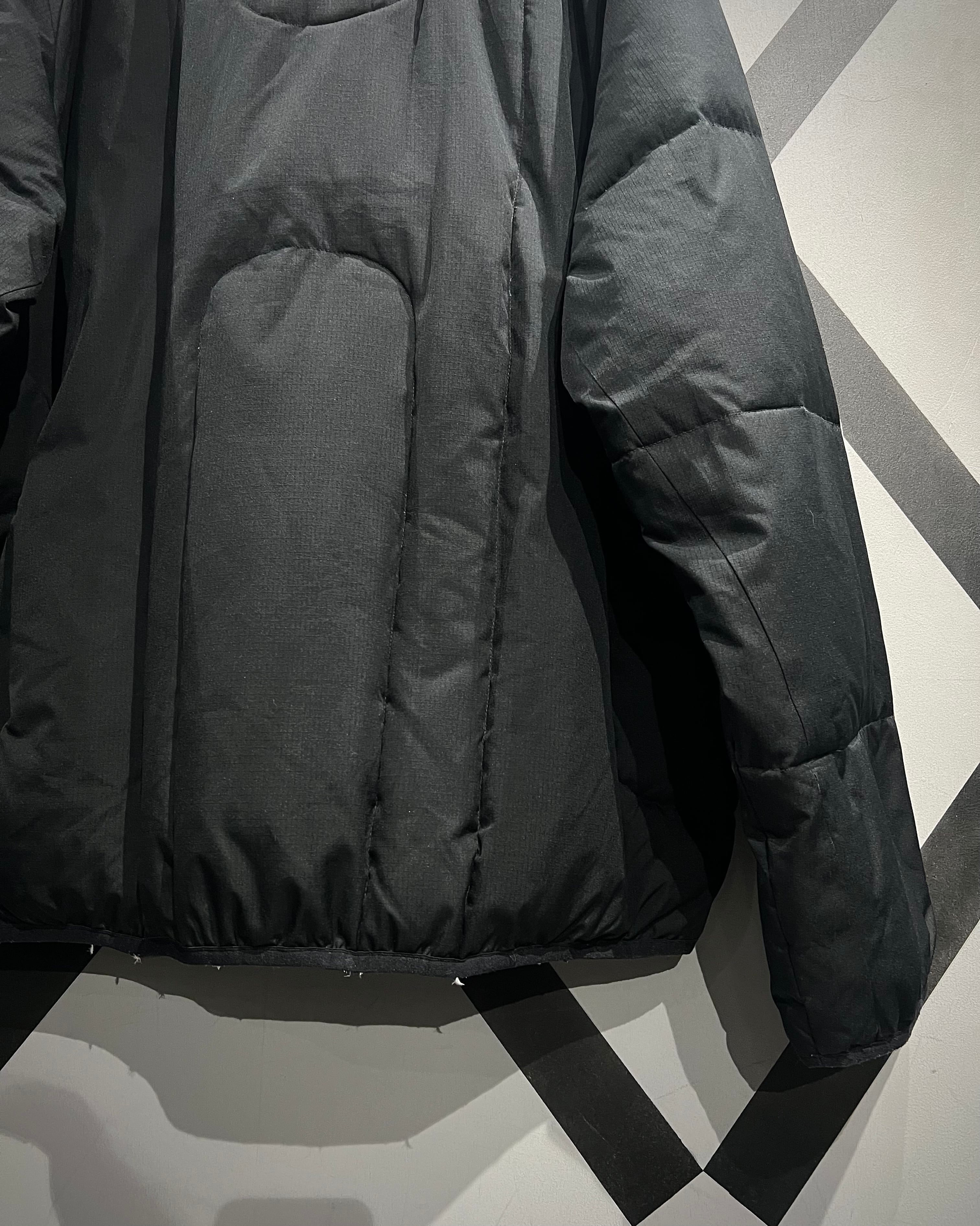 ボディはブラックを基調としたソリッドな配色。マットな質感のリップストップナイロンシェルに、程よいボリューム感のダウンを封入し、防寒性と軽快さを両立。