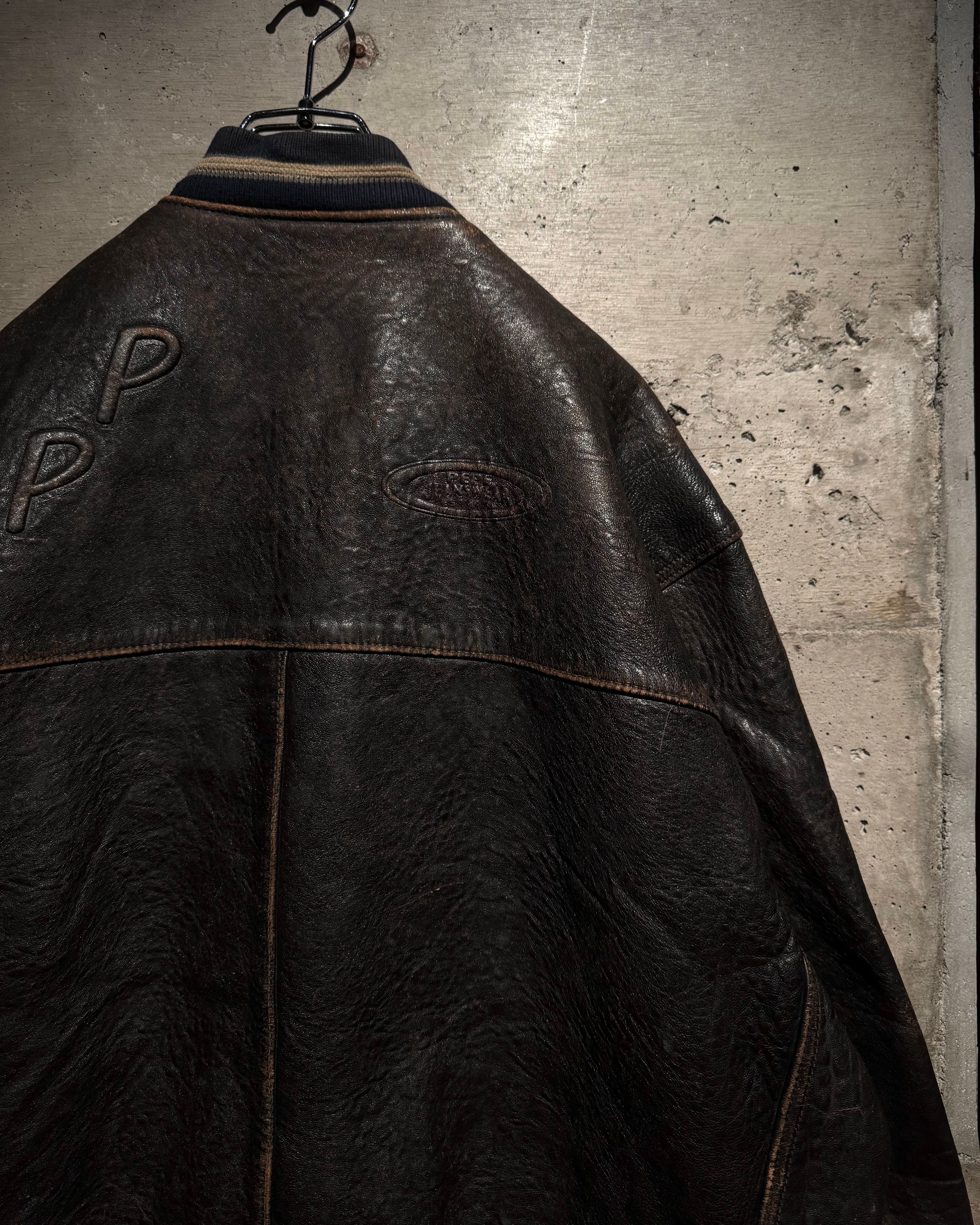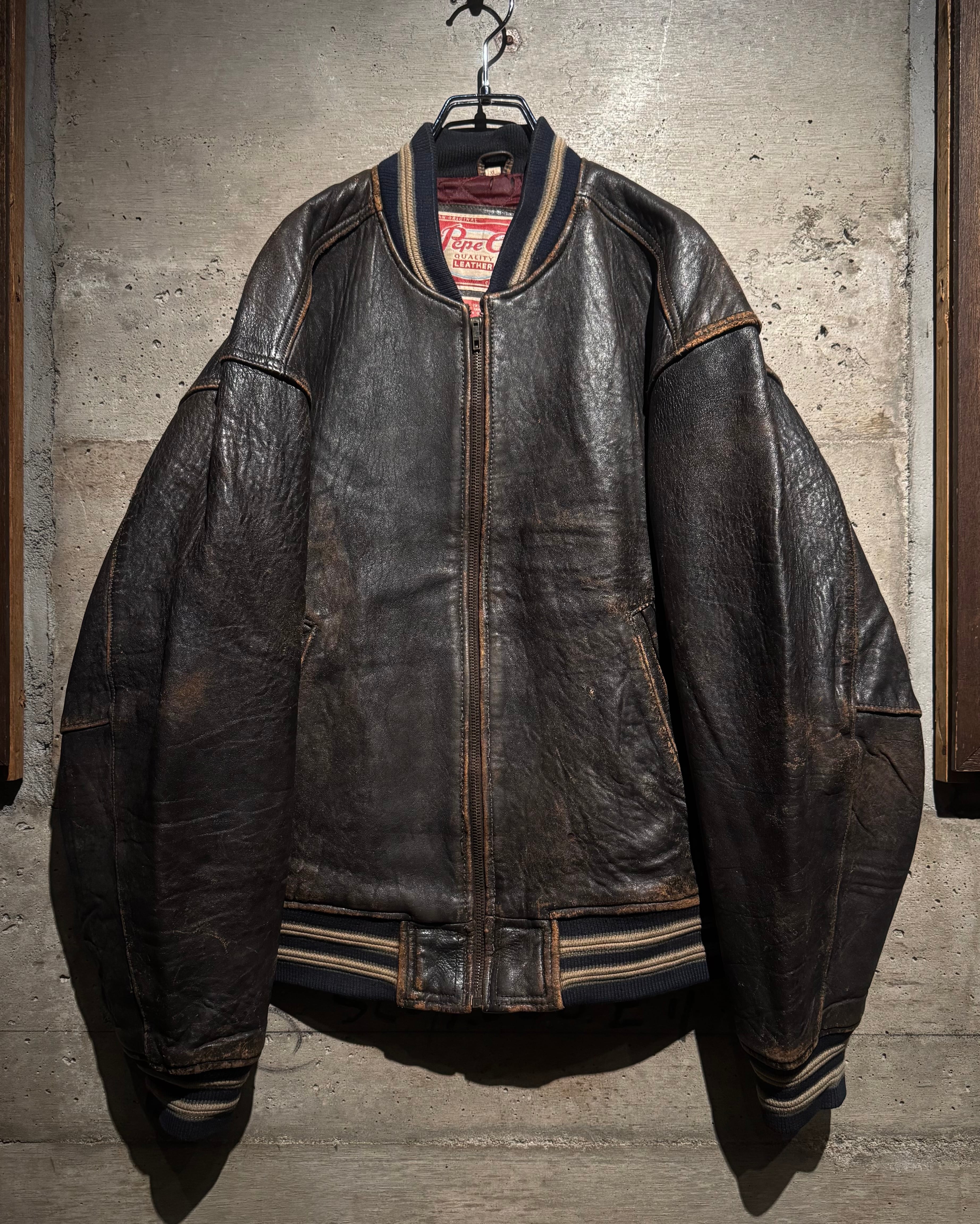 当店が強くセレクトしている一つでもある、レイブ、ストリート、B系のスタイルで根強い人気を誇ったロンドン発のストリートブランド“PEPE JEANS”より、レザーのバーシティジャケットの逸品。
