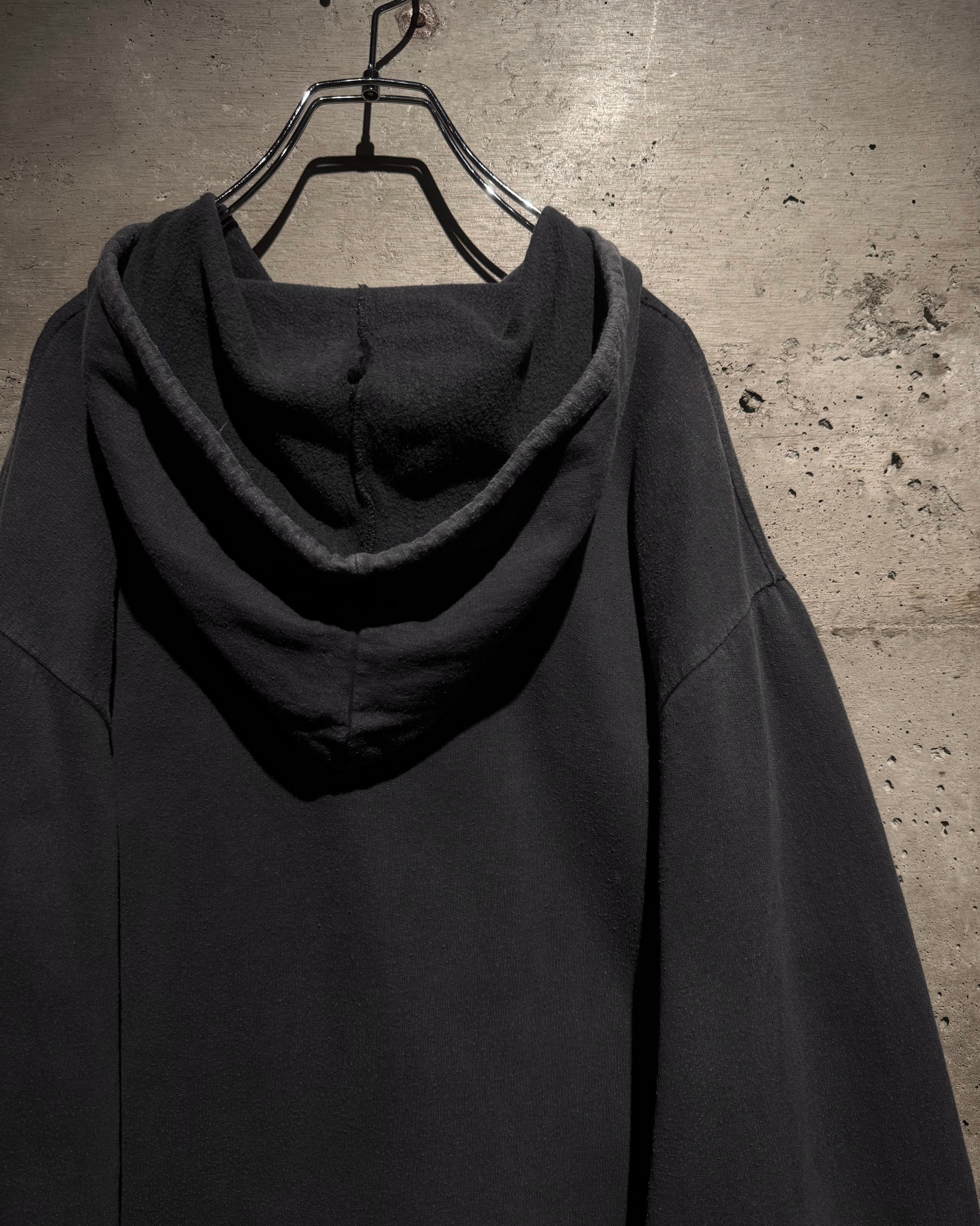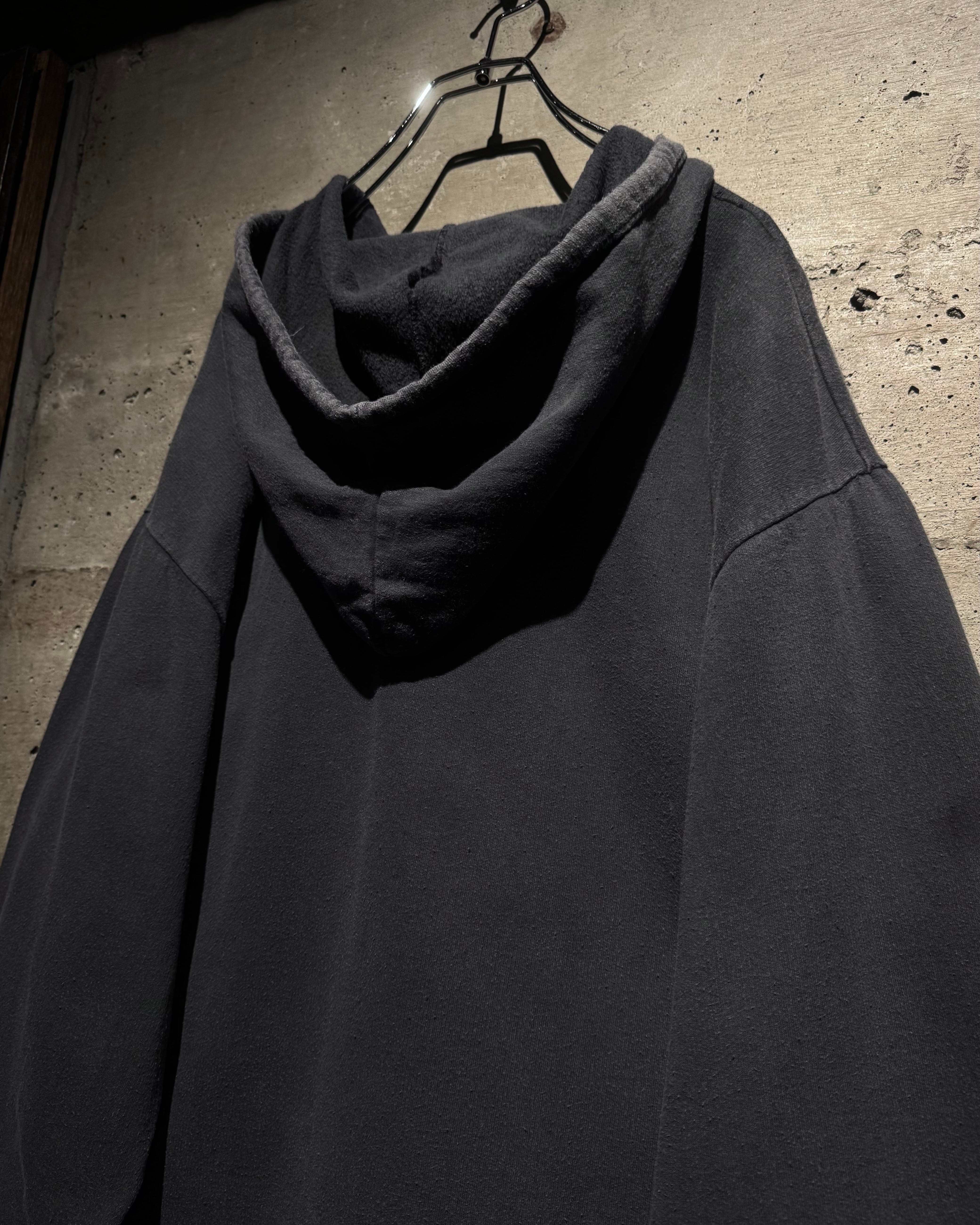 フェードしたブラックボディに掠れたプリントが重なり、経年変化ならではの奥行きある表情に。リブレス仕様の裾とルーズな身幅が生む落ち感のあるシルエットはユーロヴィンテージスウェットならではの着用感がありますね。