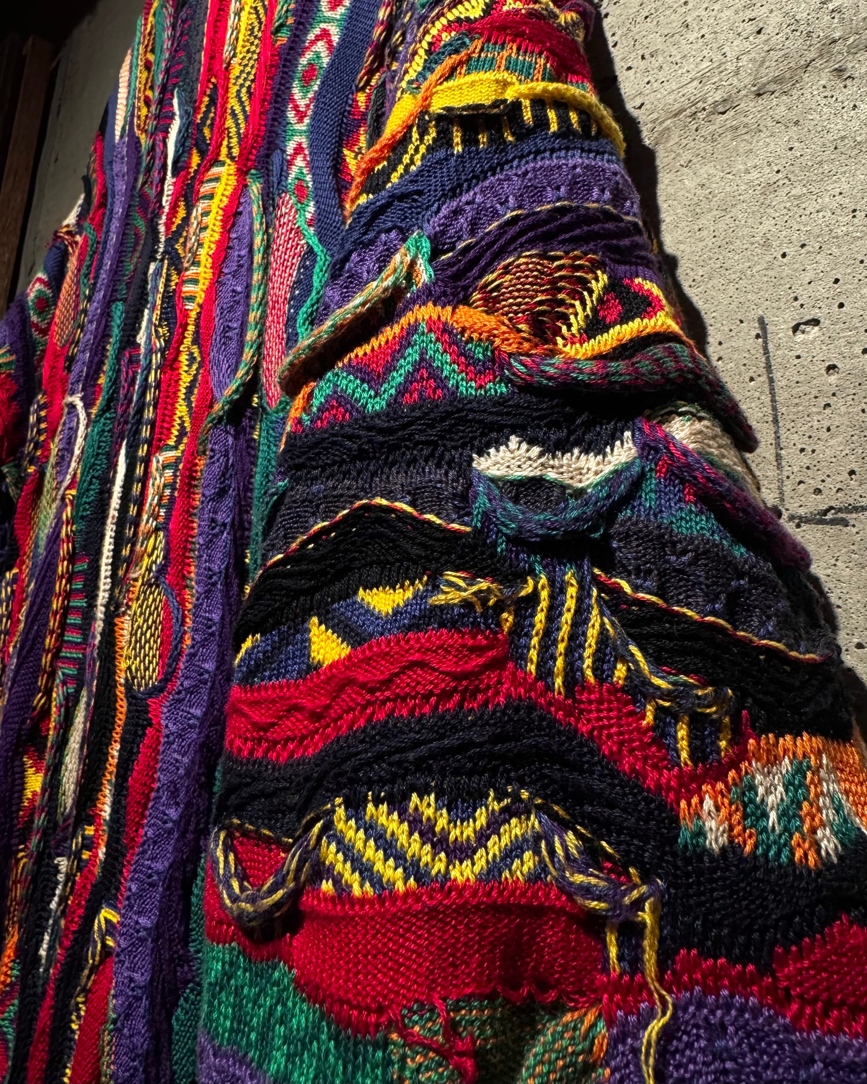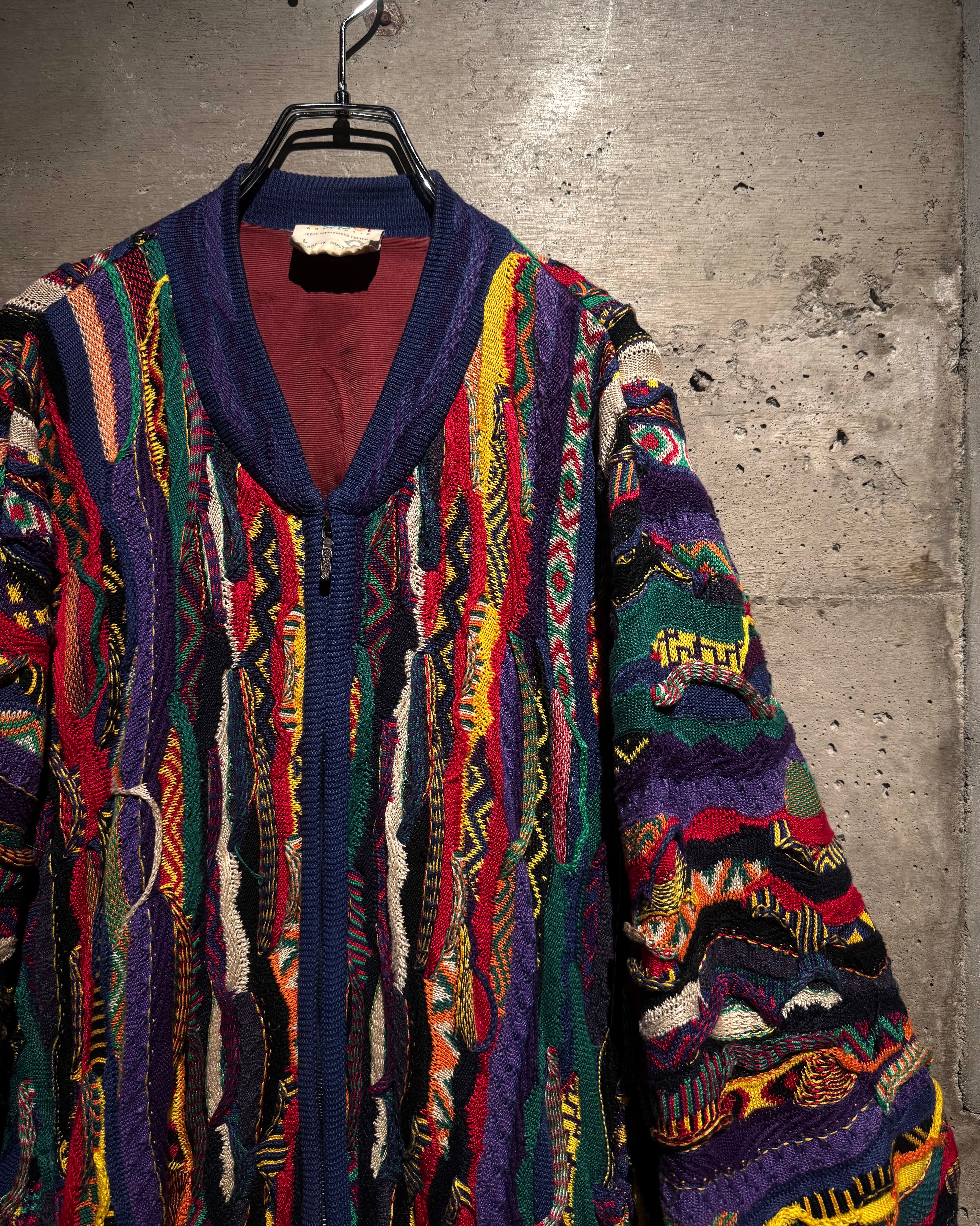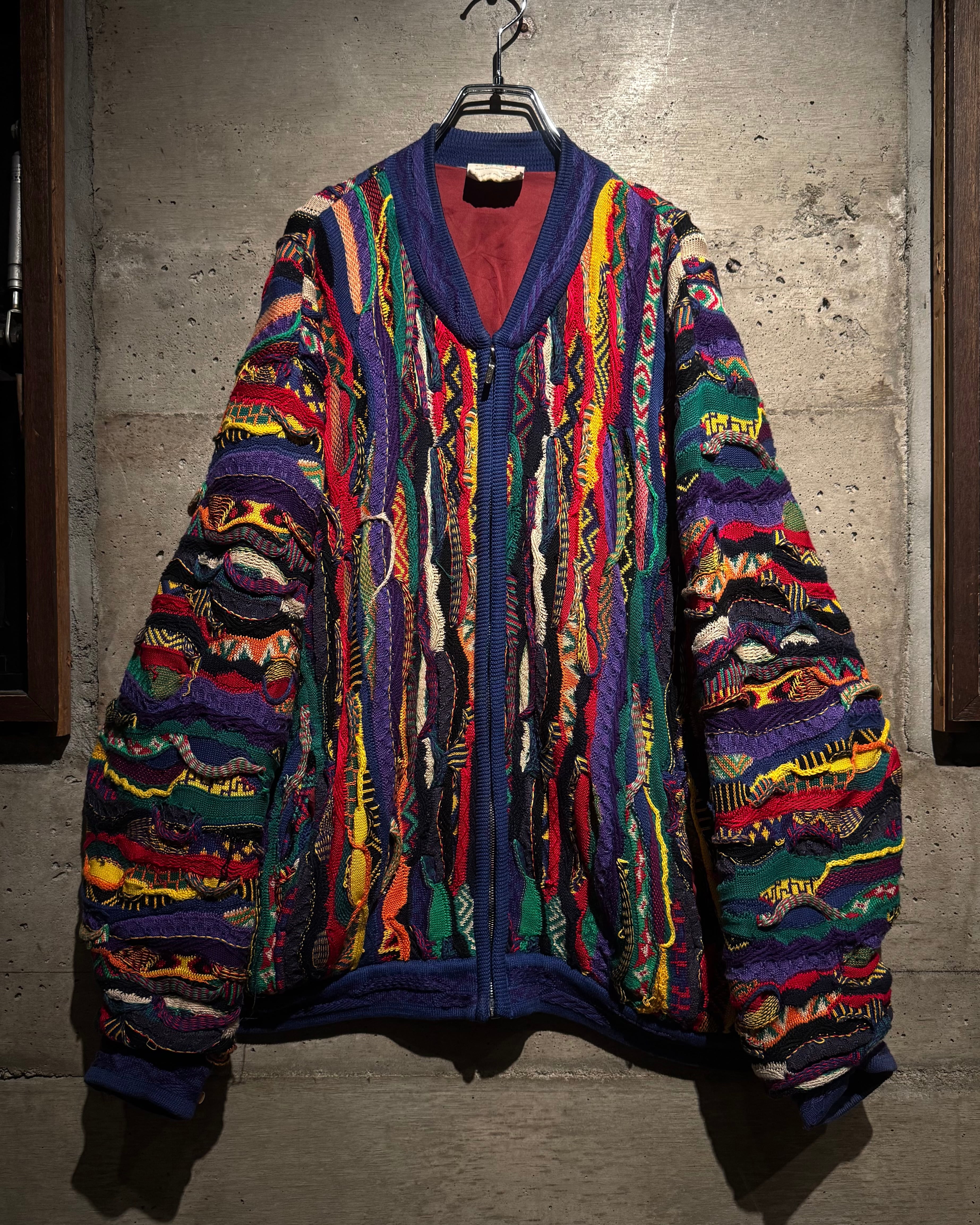 “COOGI”を象徴するマルチカラーリング。近年稀に見るオリジナルのカラーリングにプルオーバータイプより稀少なニットブルゾンの逸品。