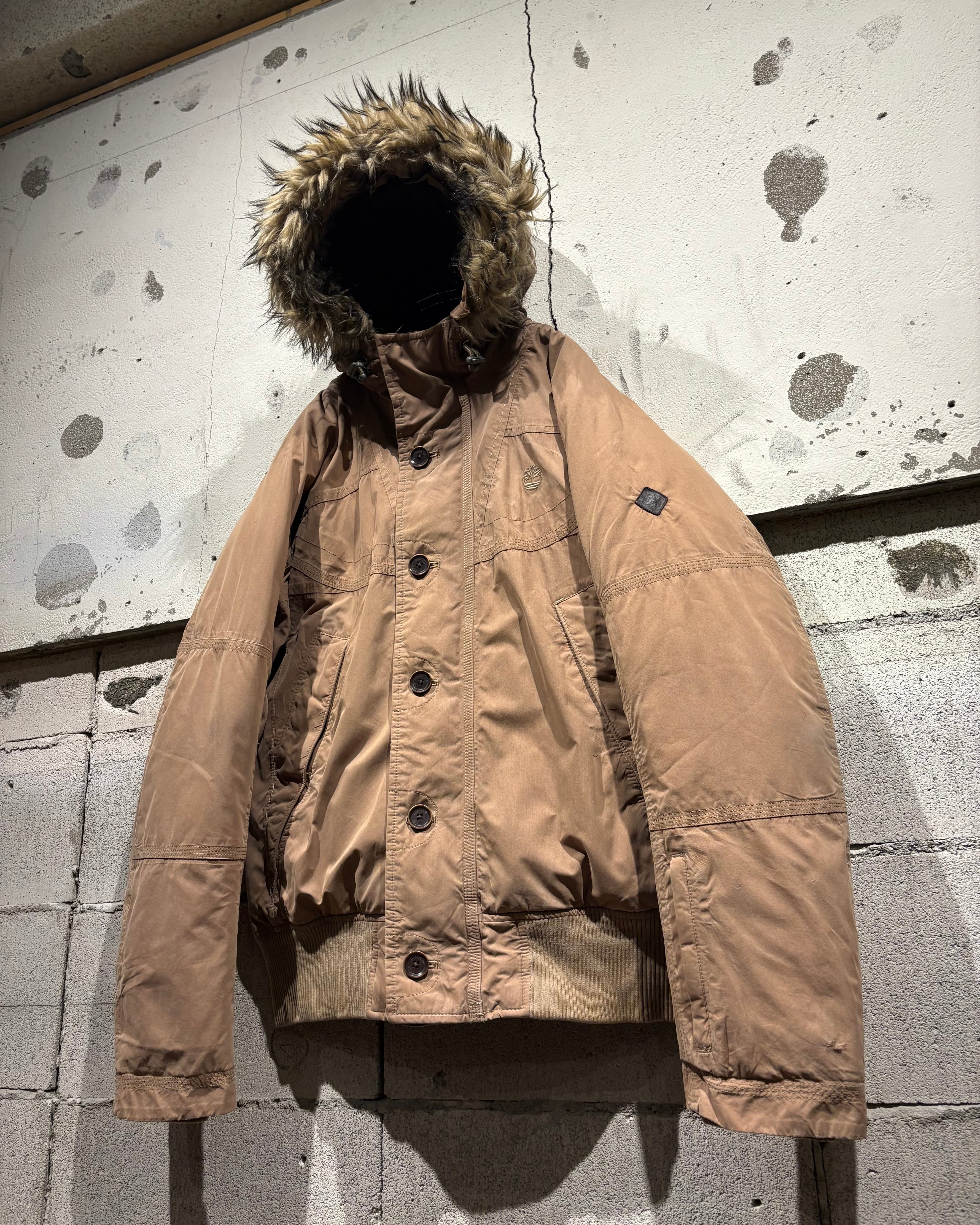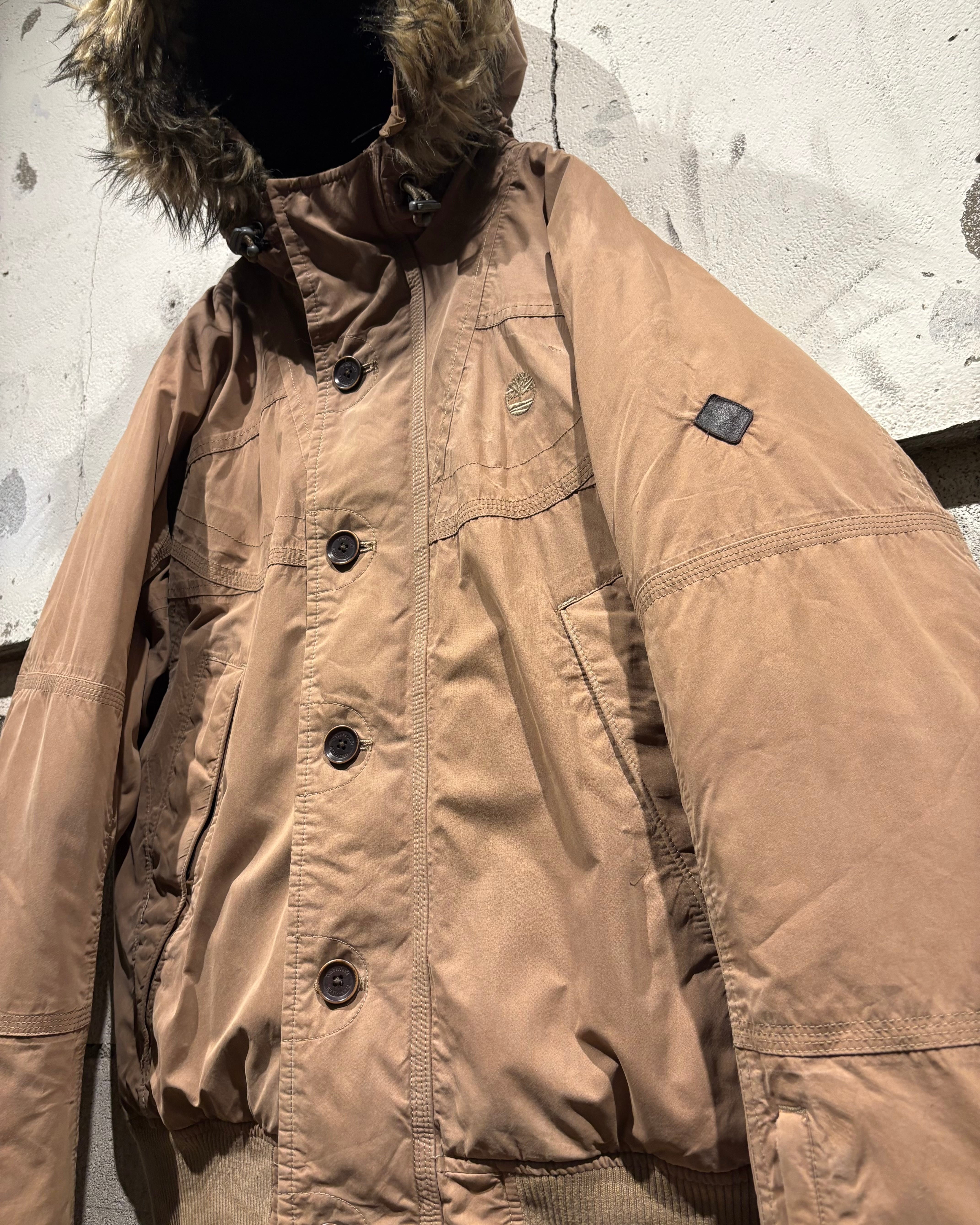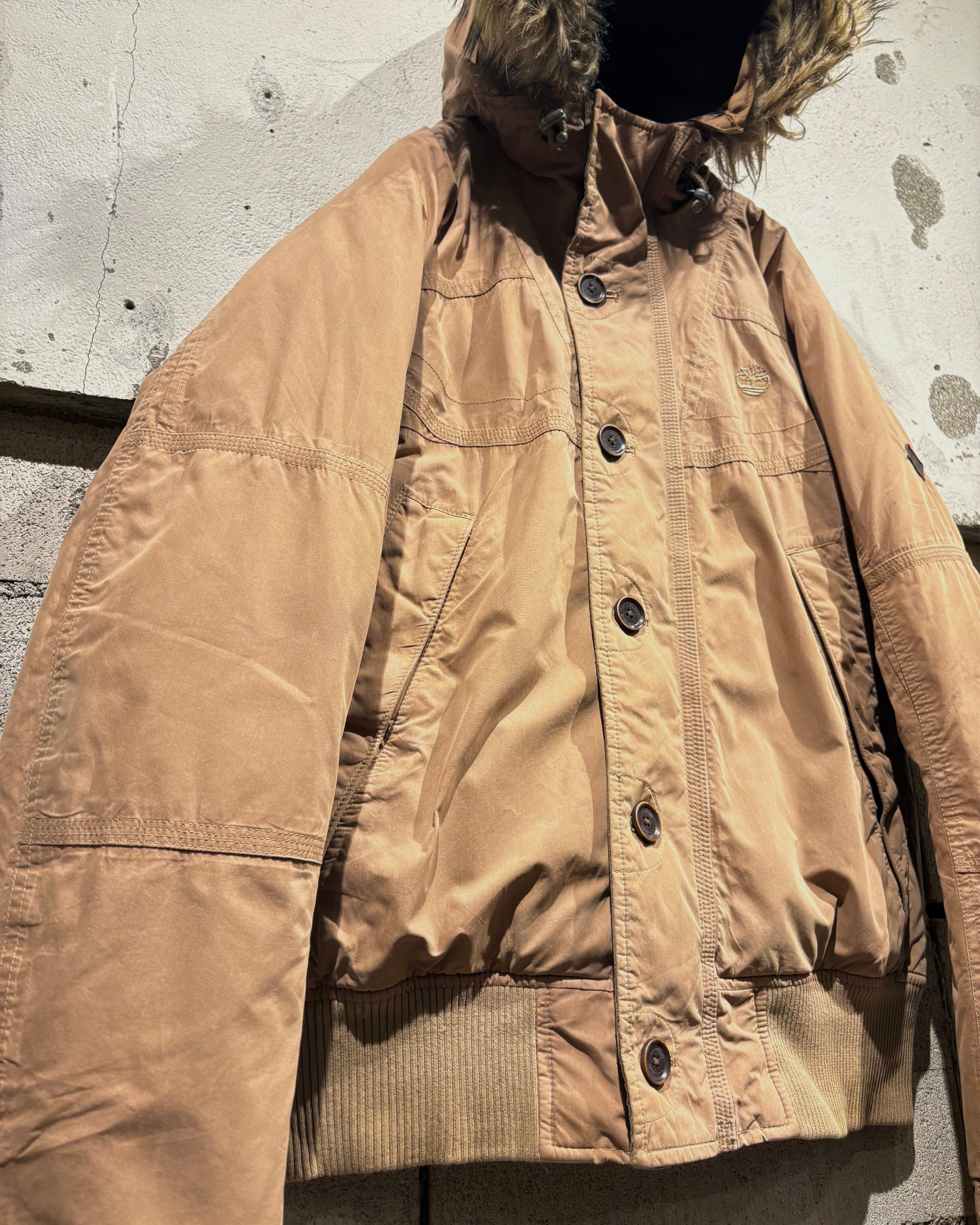 アウトドアのみならず、ストリートでも高い人気を誇る“Timberland”より、タフな背景を感じさせつつ、フライトジャケットをデザインソースにしたダウンジャケット。