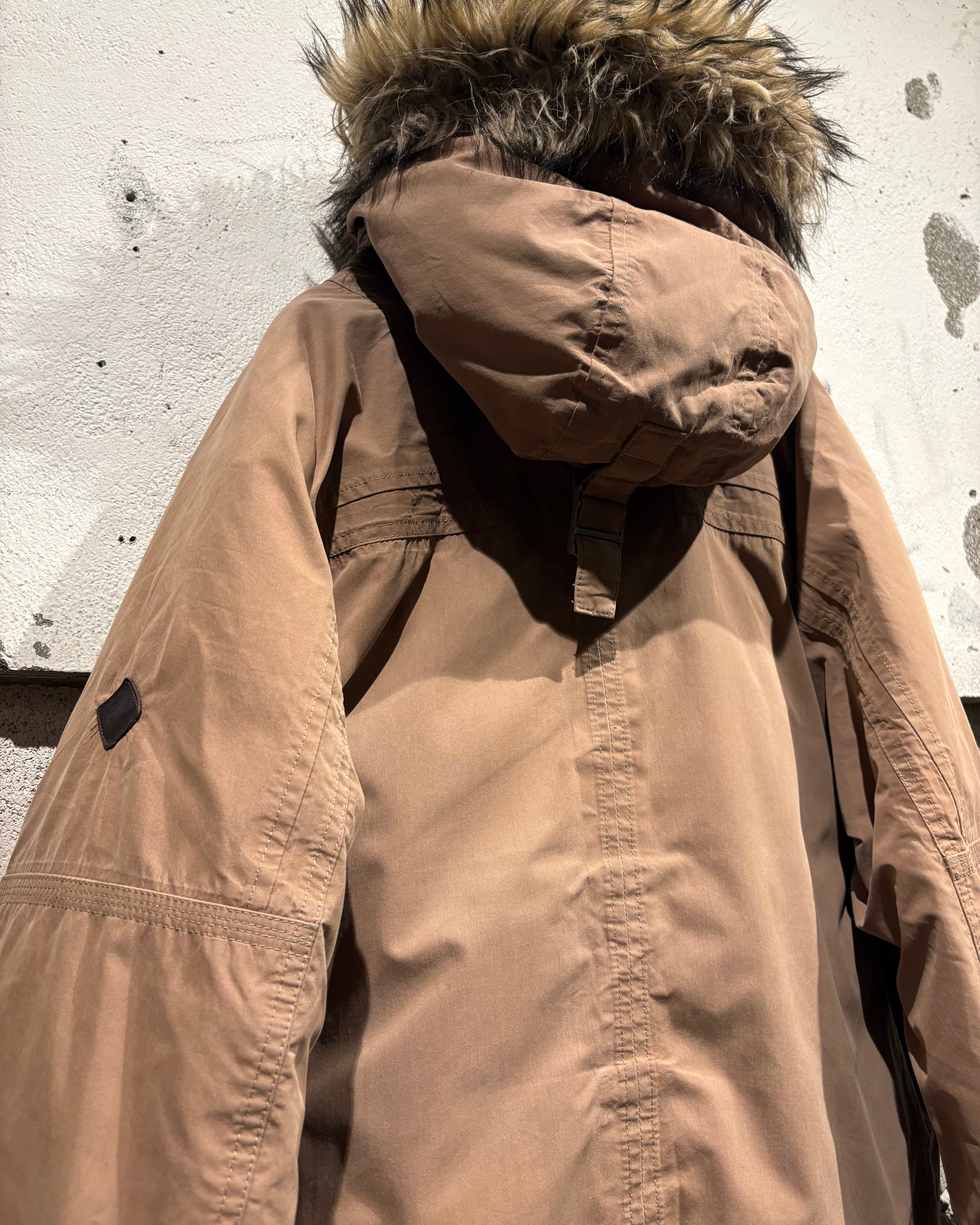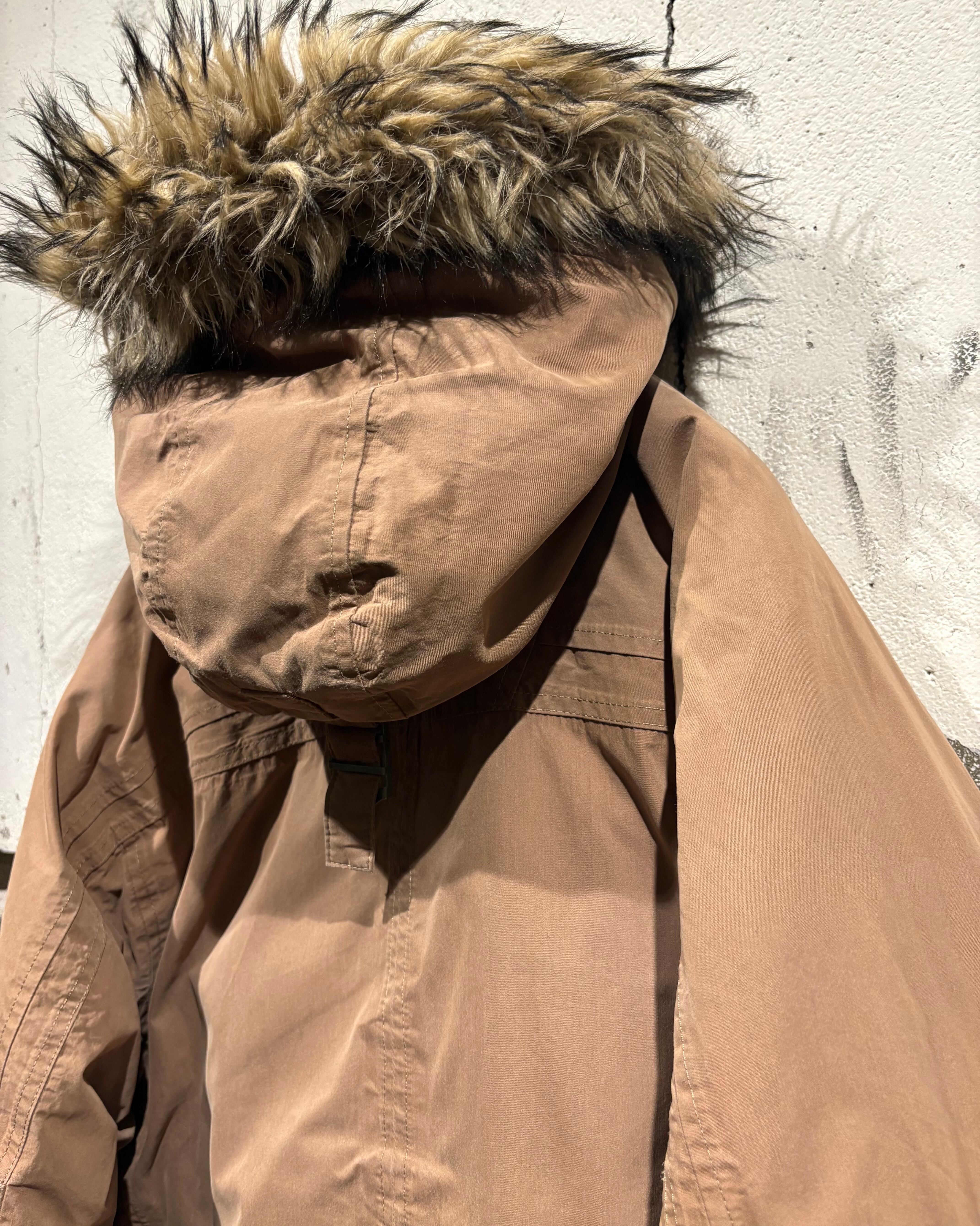 フロントやポケット、リブ仕様の裾など、ベルト付きのフードなどフライトジャケットを彷彿とさせるディテールを随所に配置。フード部のファーは取り外し可能で、ストリートなエッセンスを纏った絶妙なデザインバランスに仕上げられています。