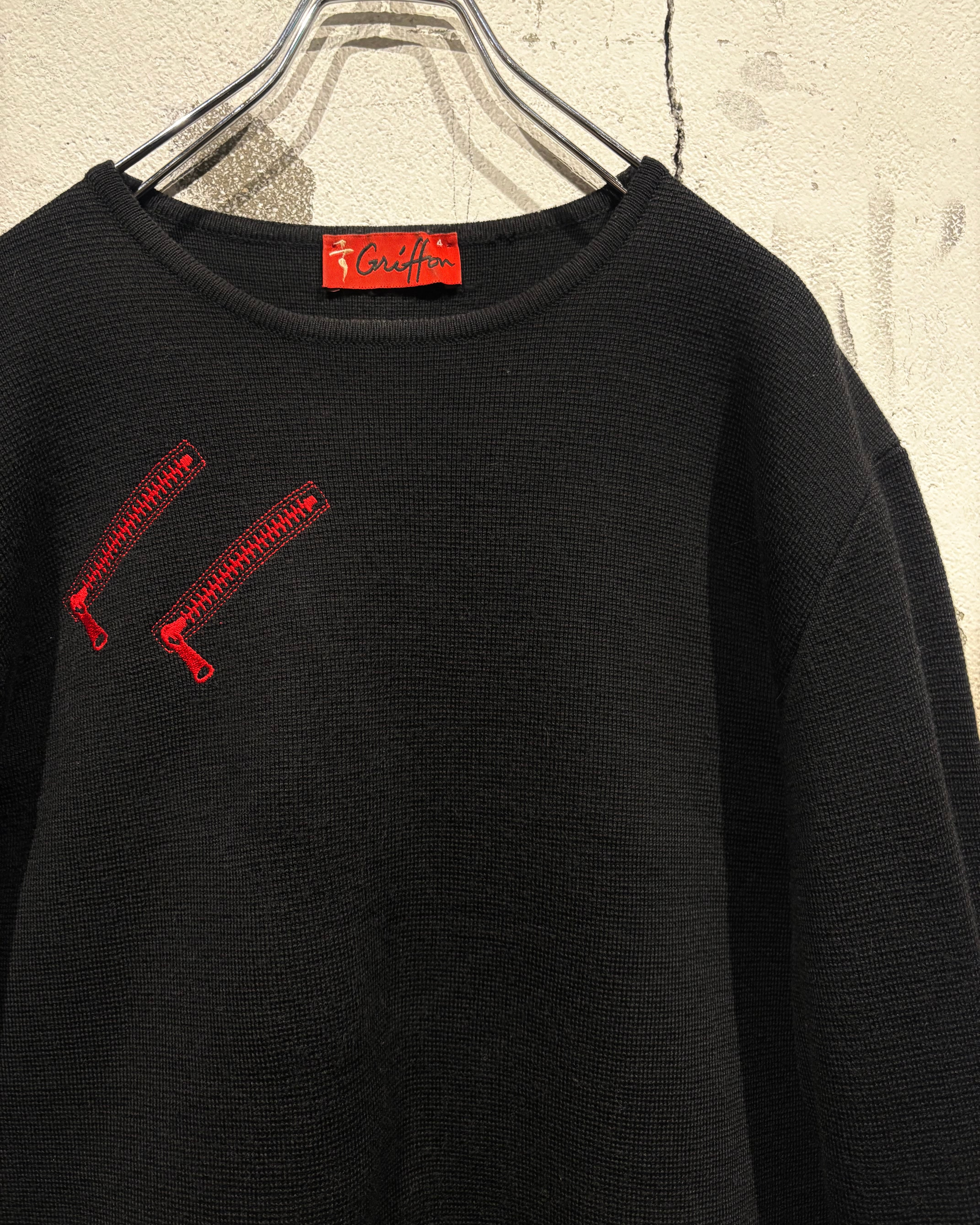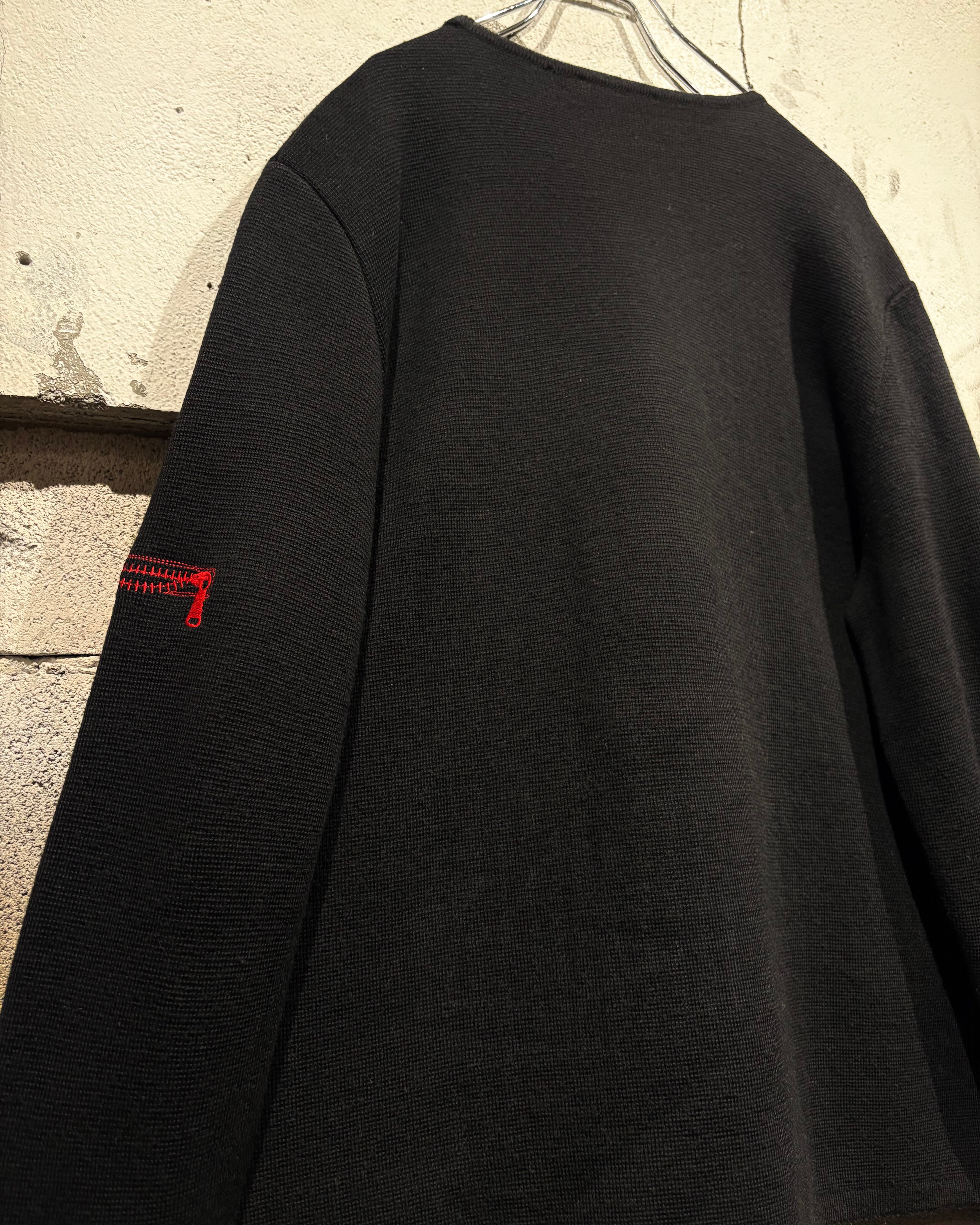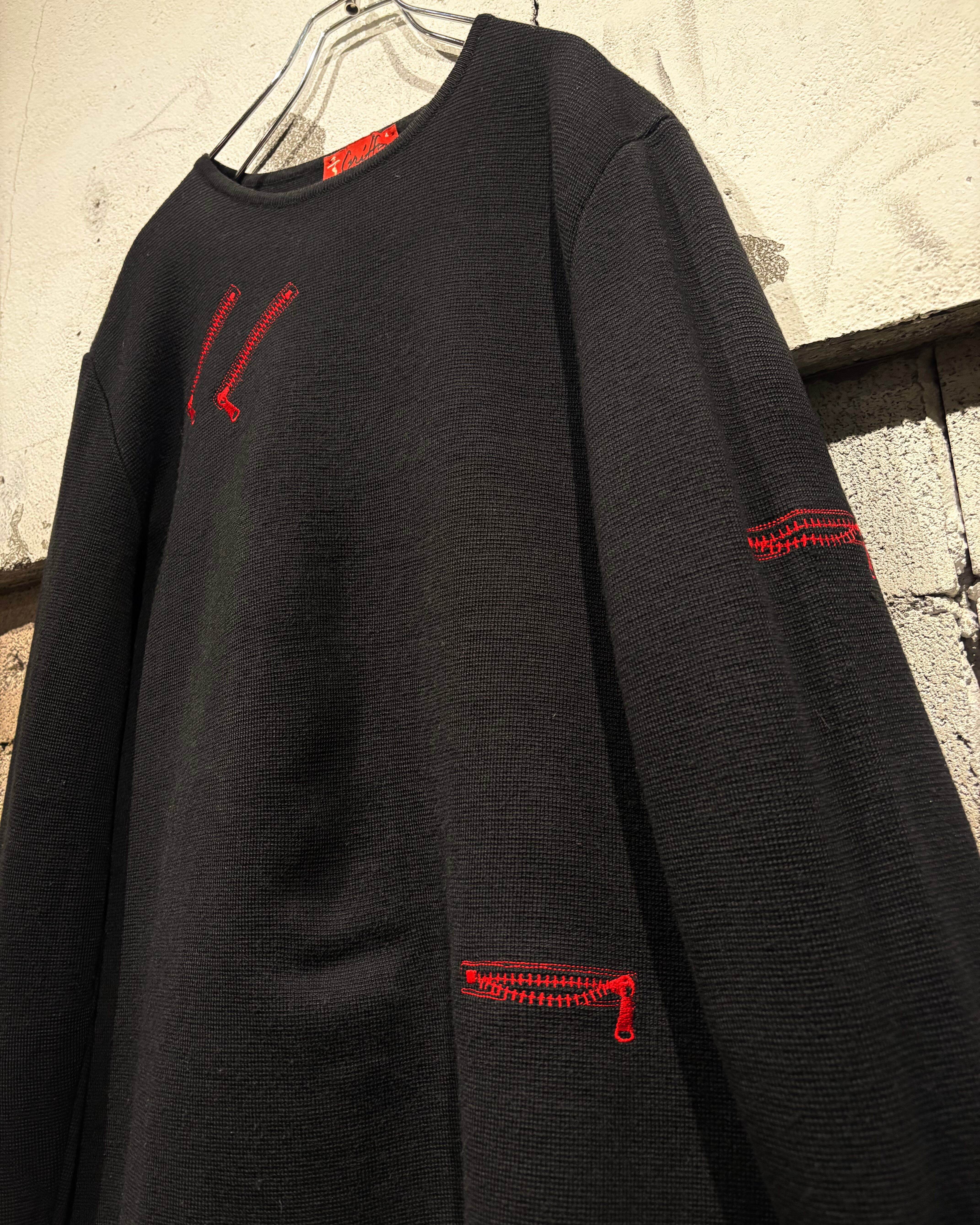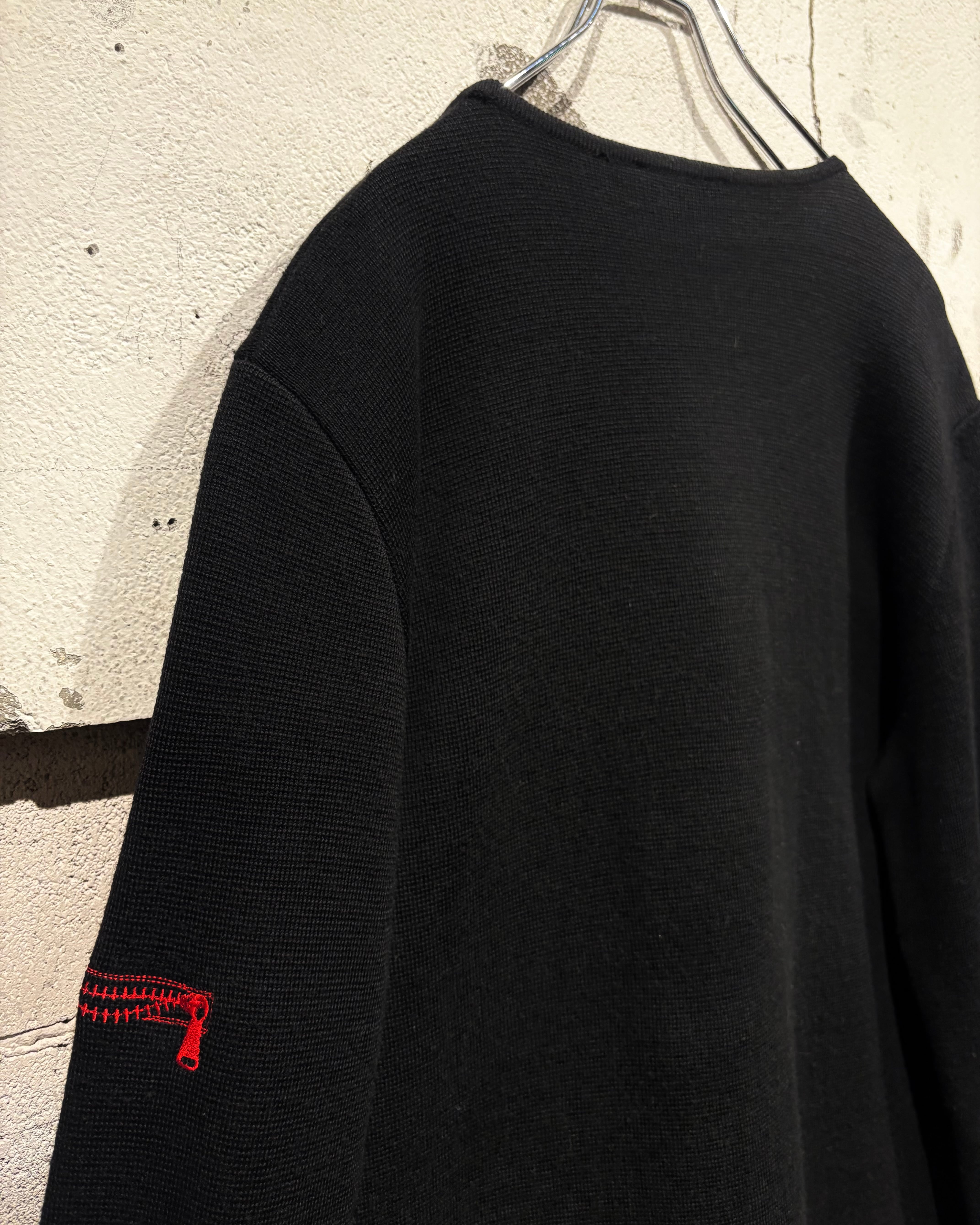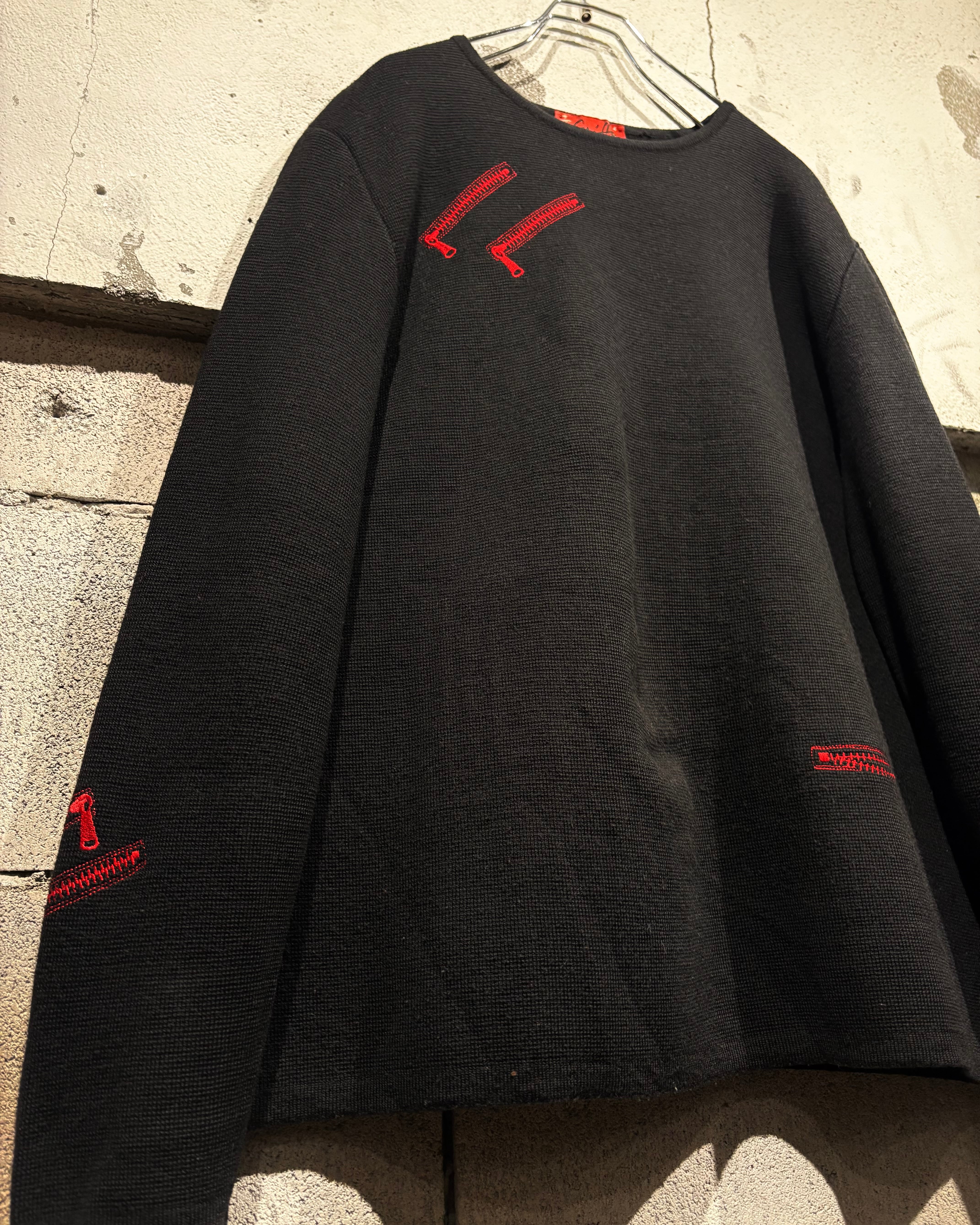 ブラックボディをベースに、遊び心のあるジップモチーフの刺繍を落とし込んだニット。