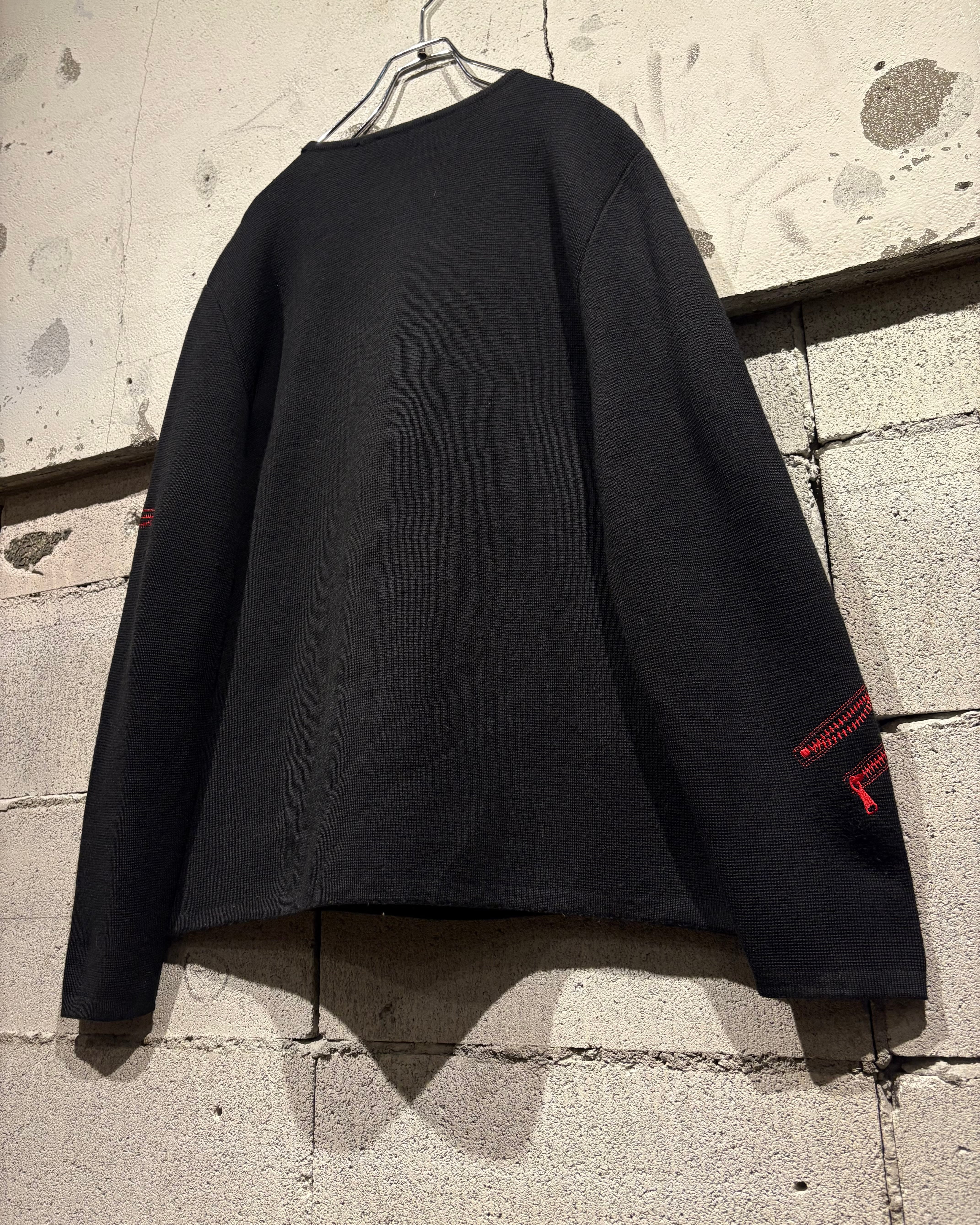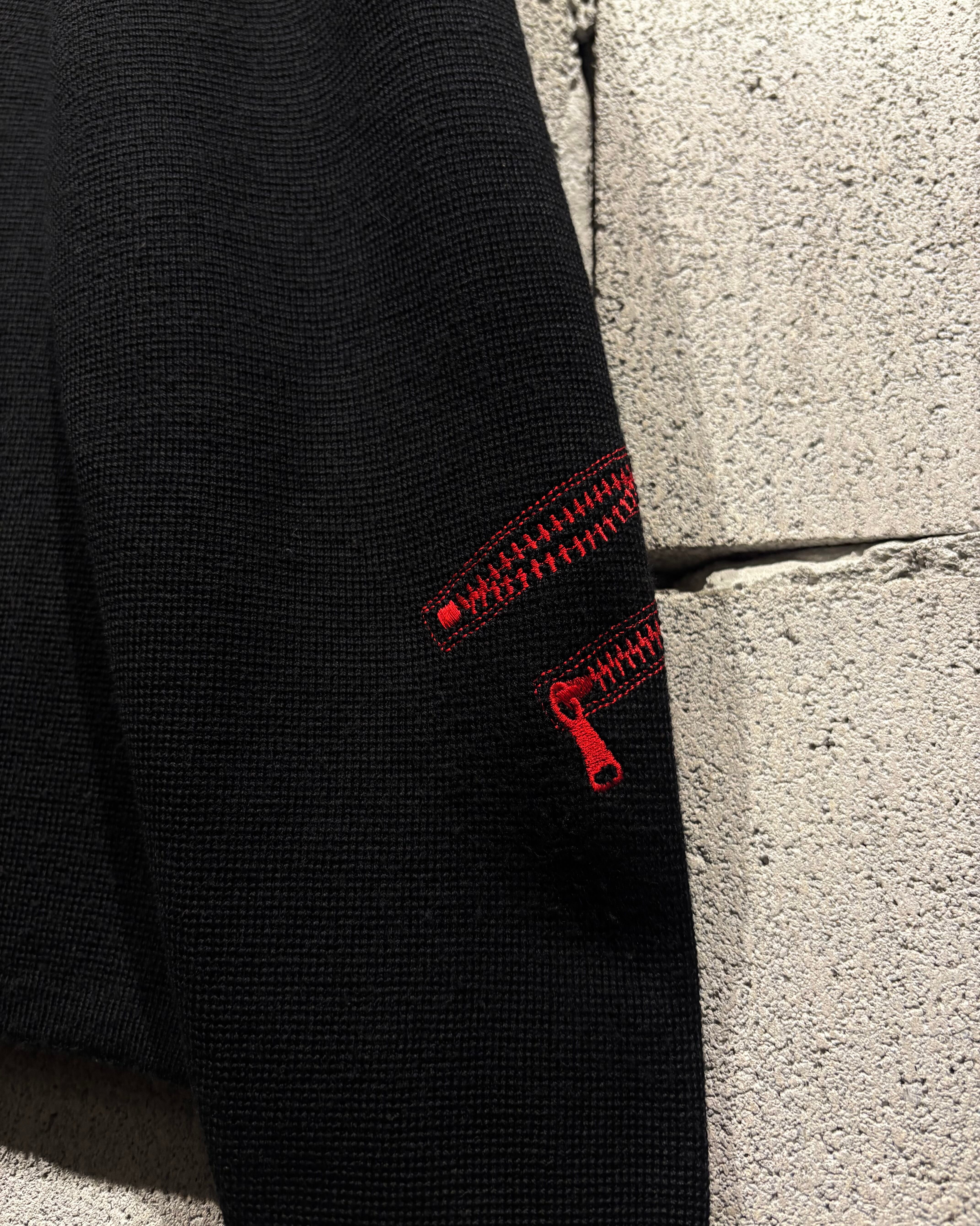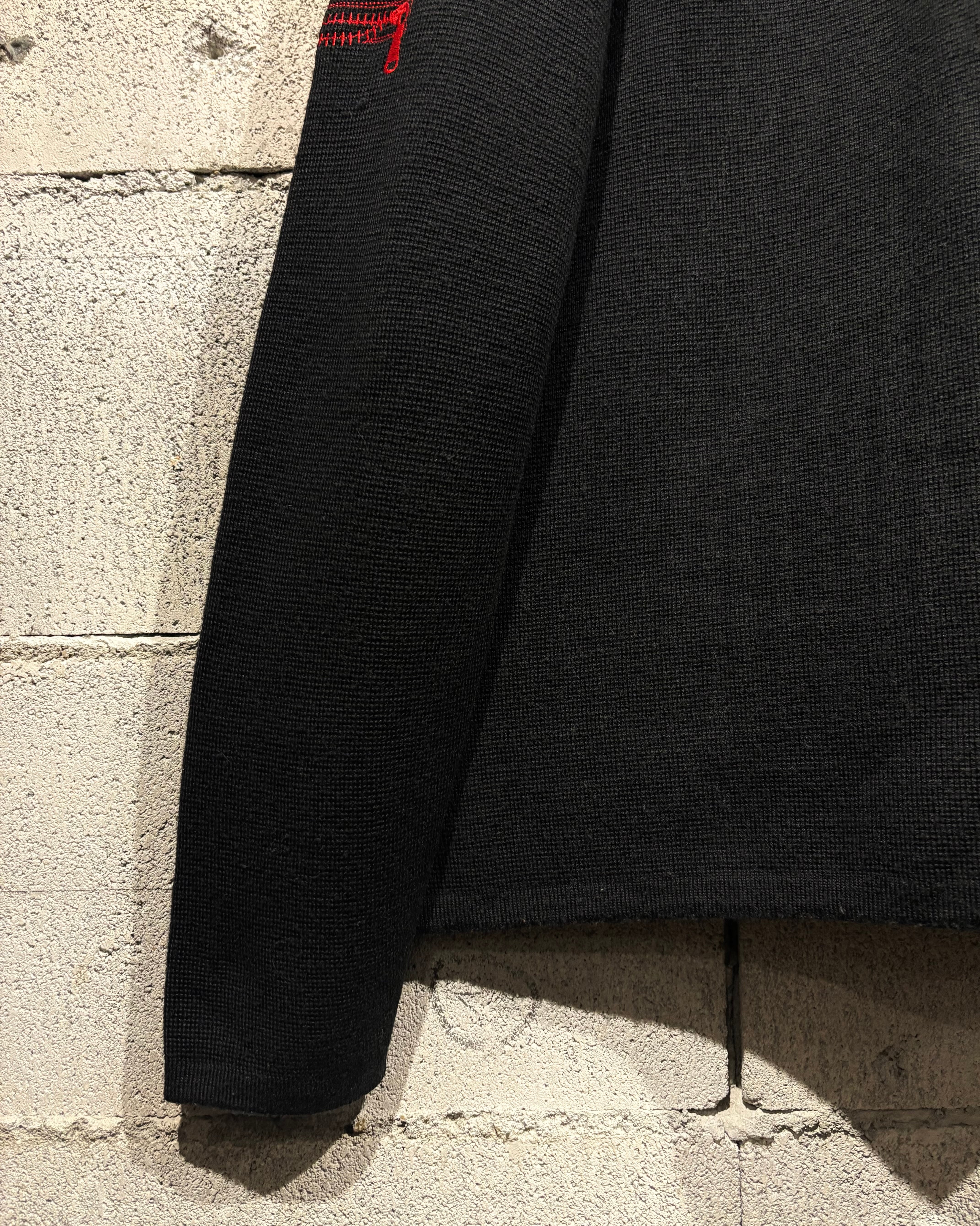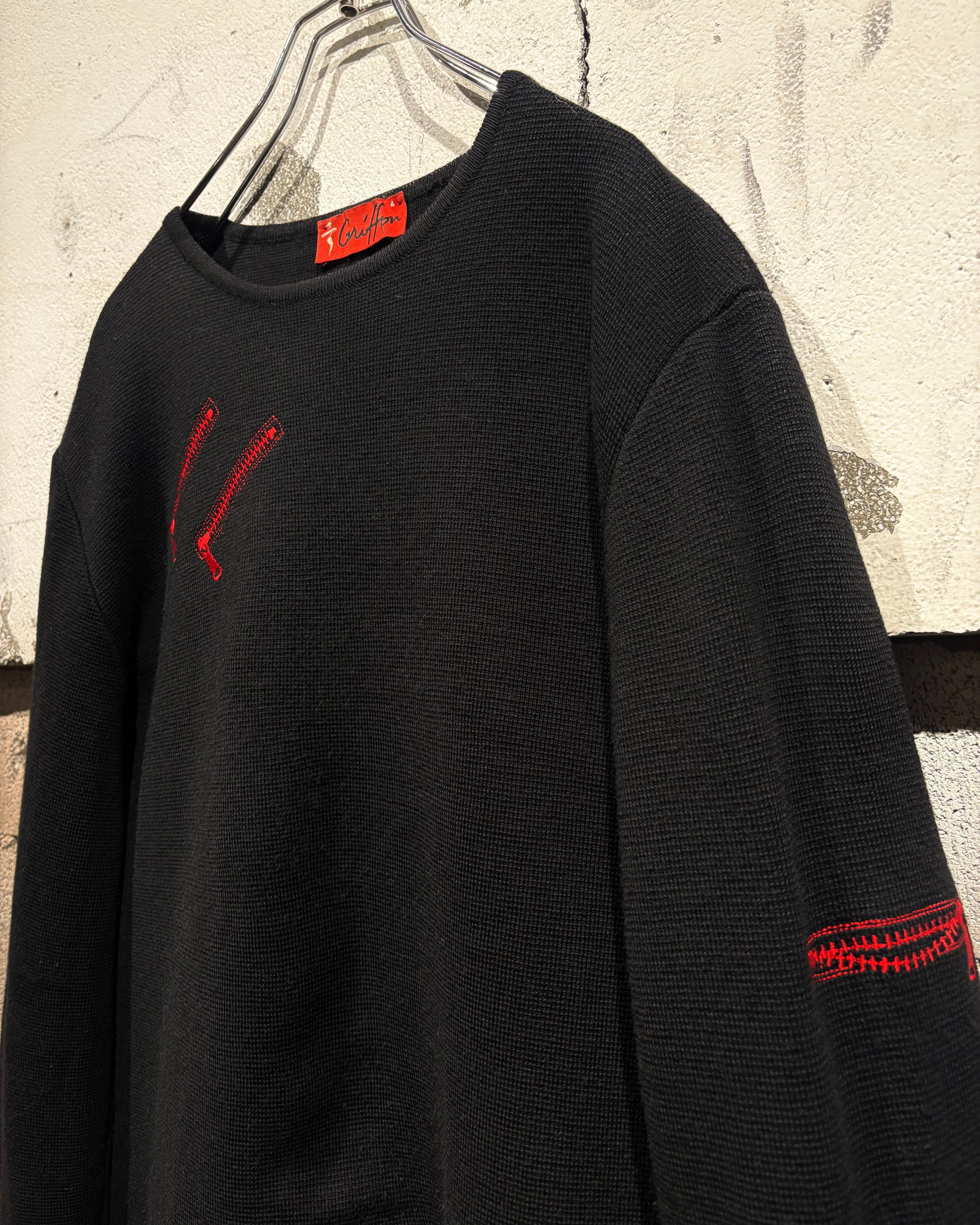 ブラックボディをベースに、遊び心のあるジップモチーフの刺繍を落とし込んだニット。