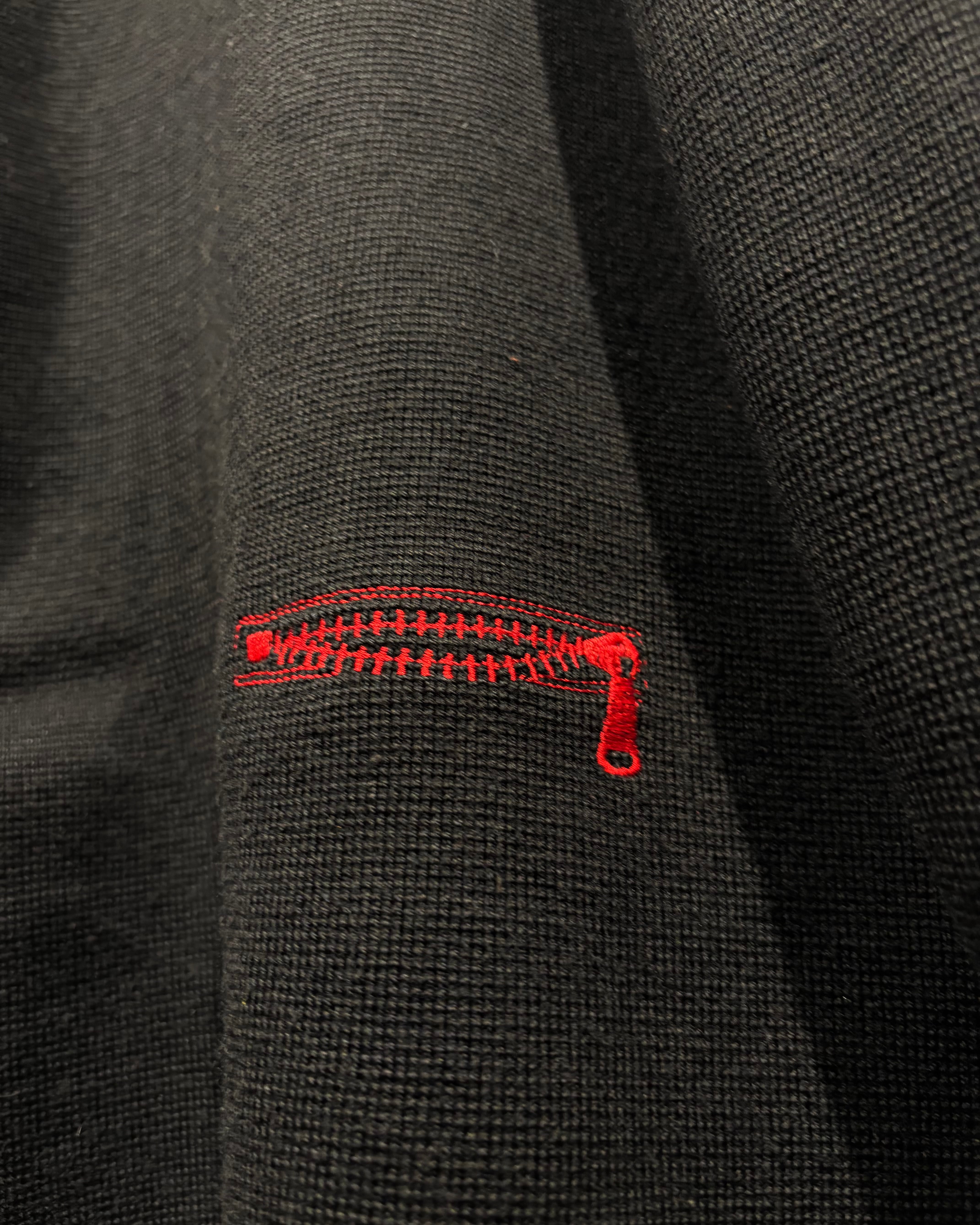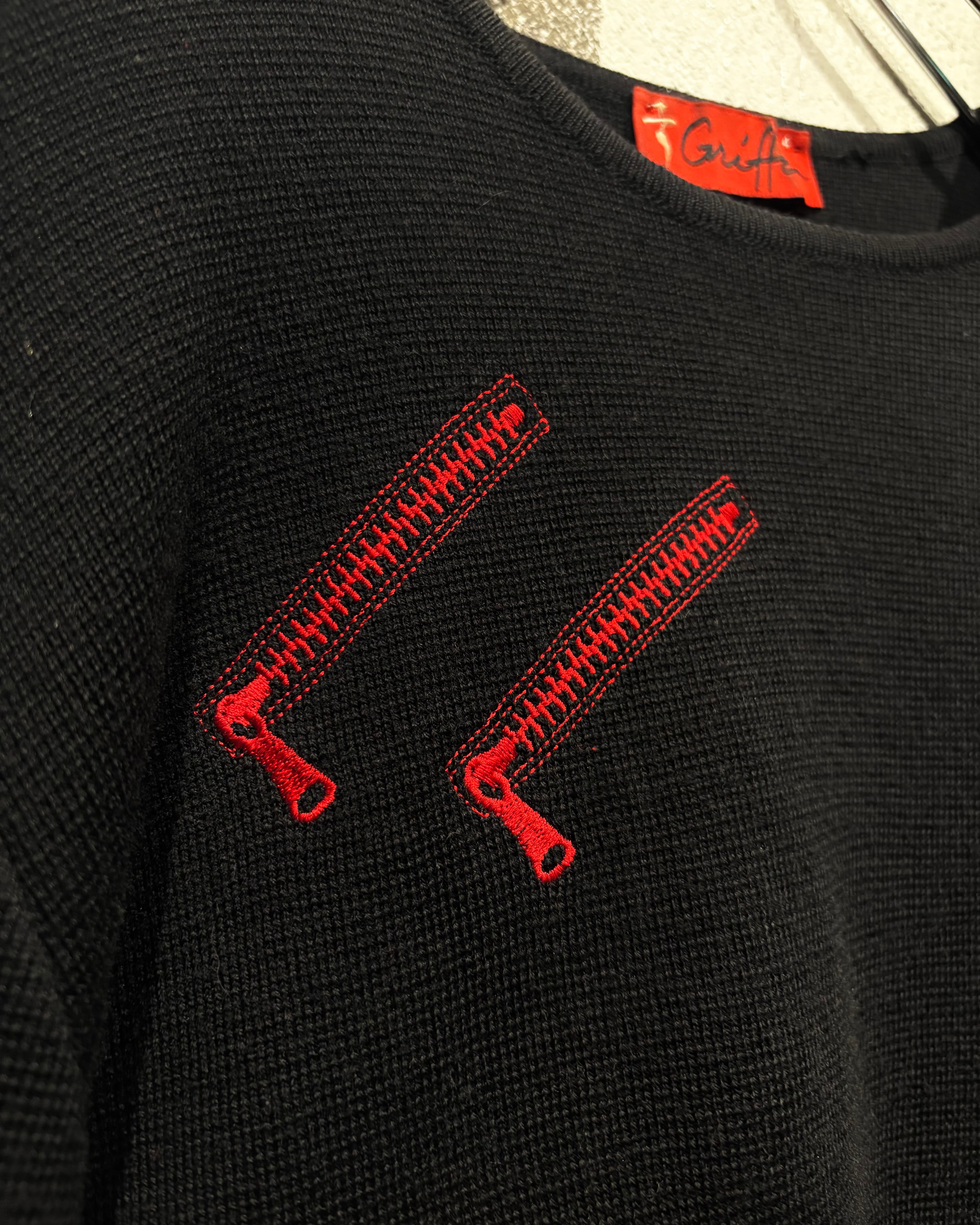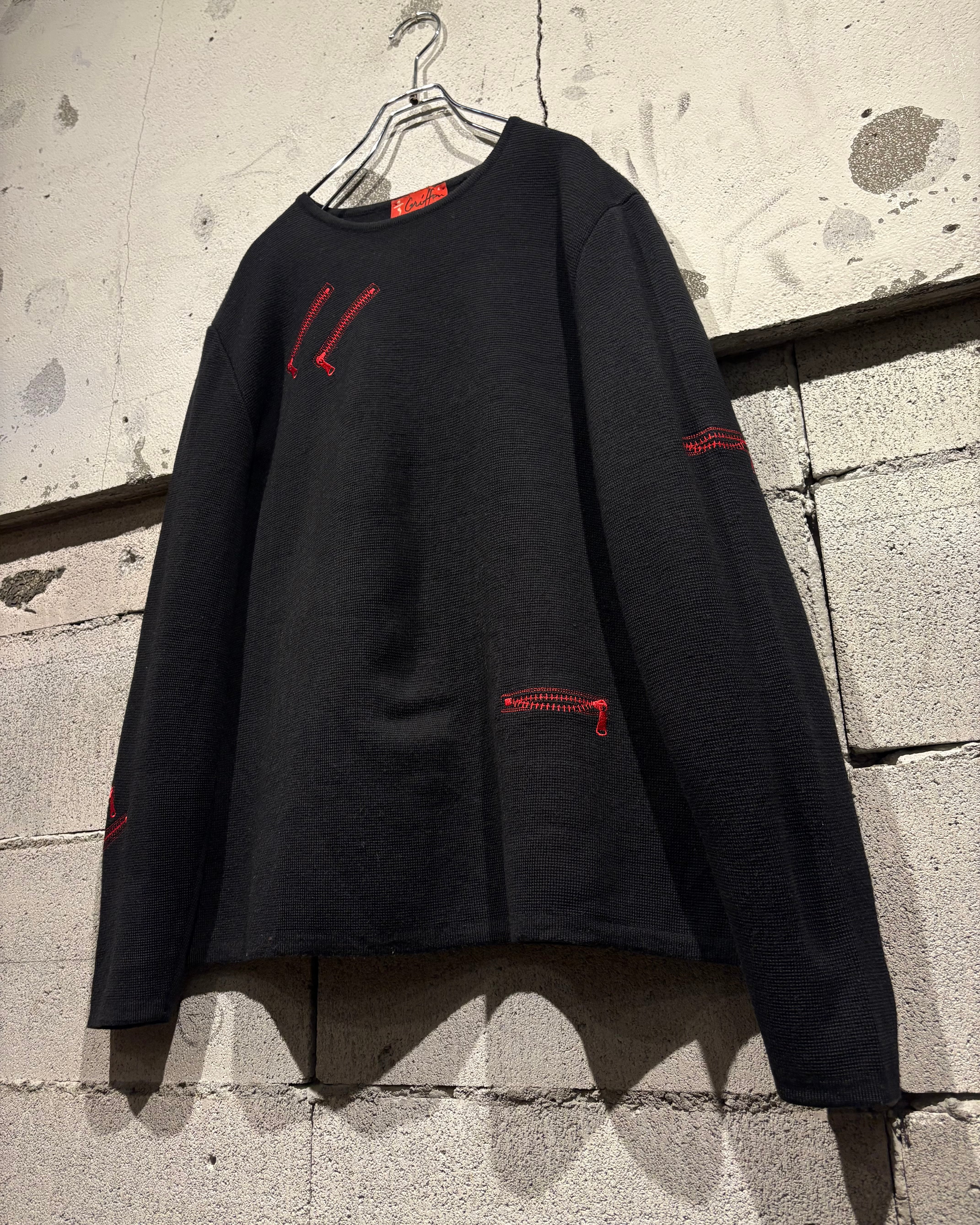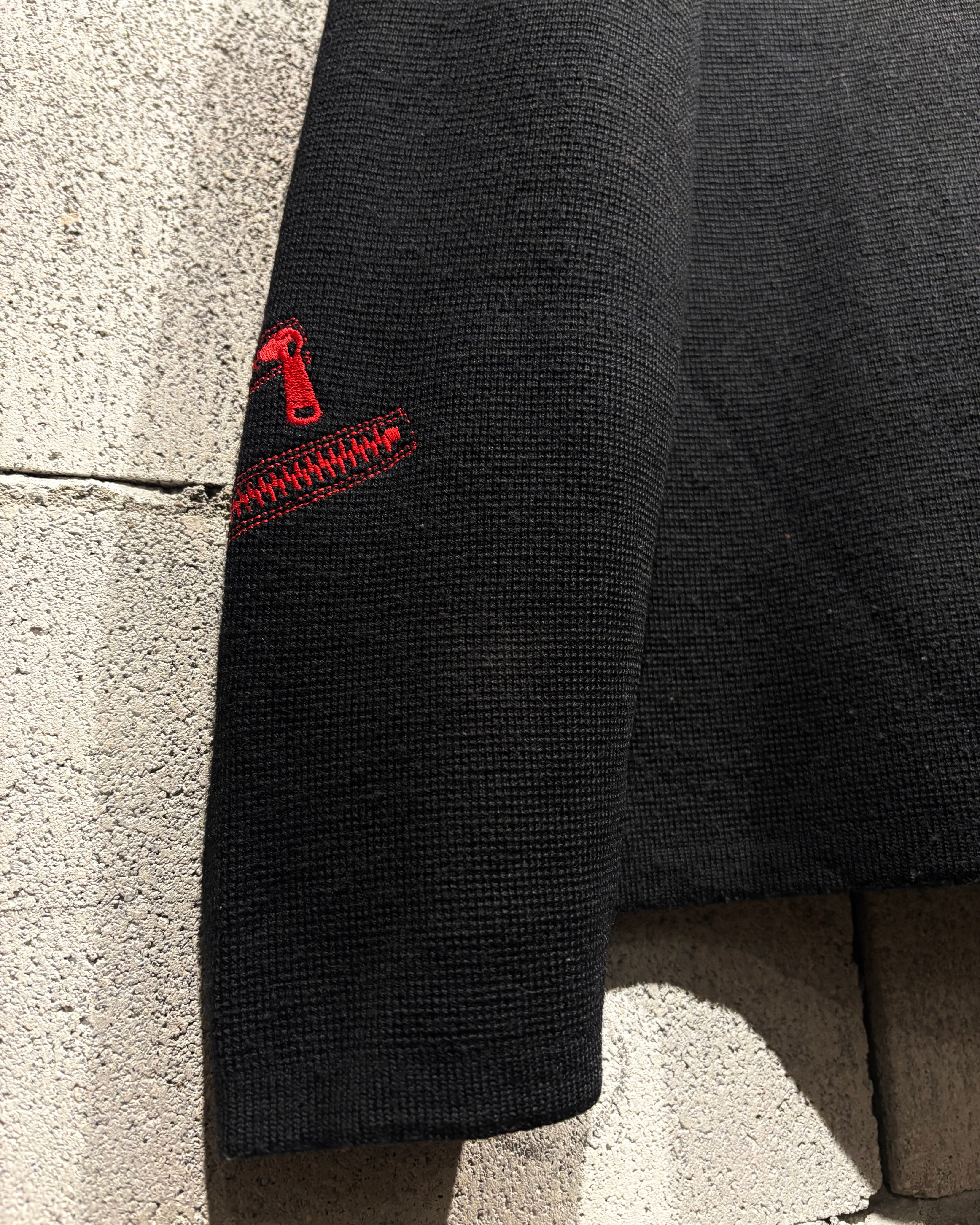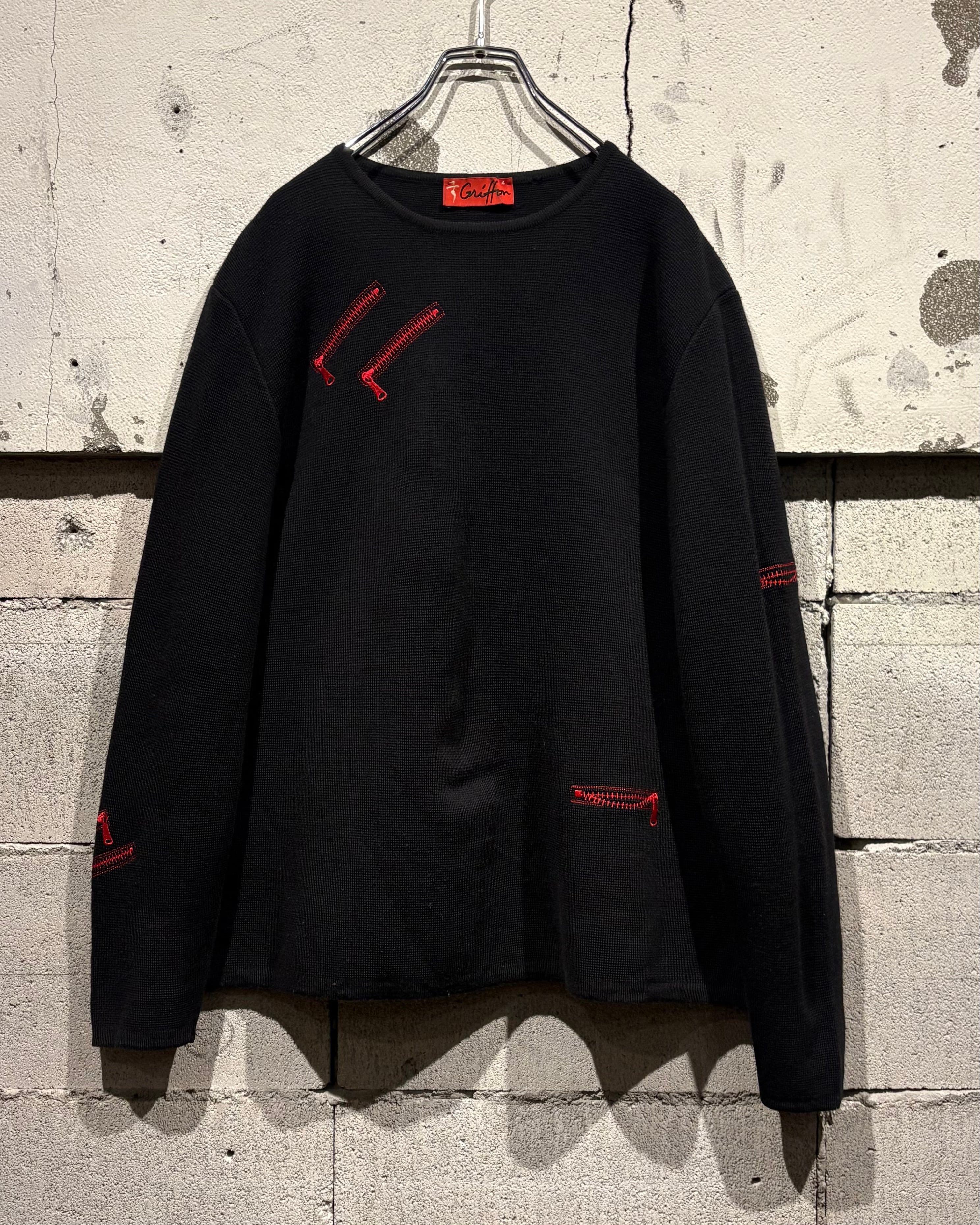 ブラックボディをベースに、遊び心のあるジップモチーフの刺繍を落とし込んだニット。