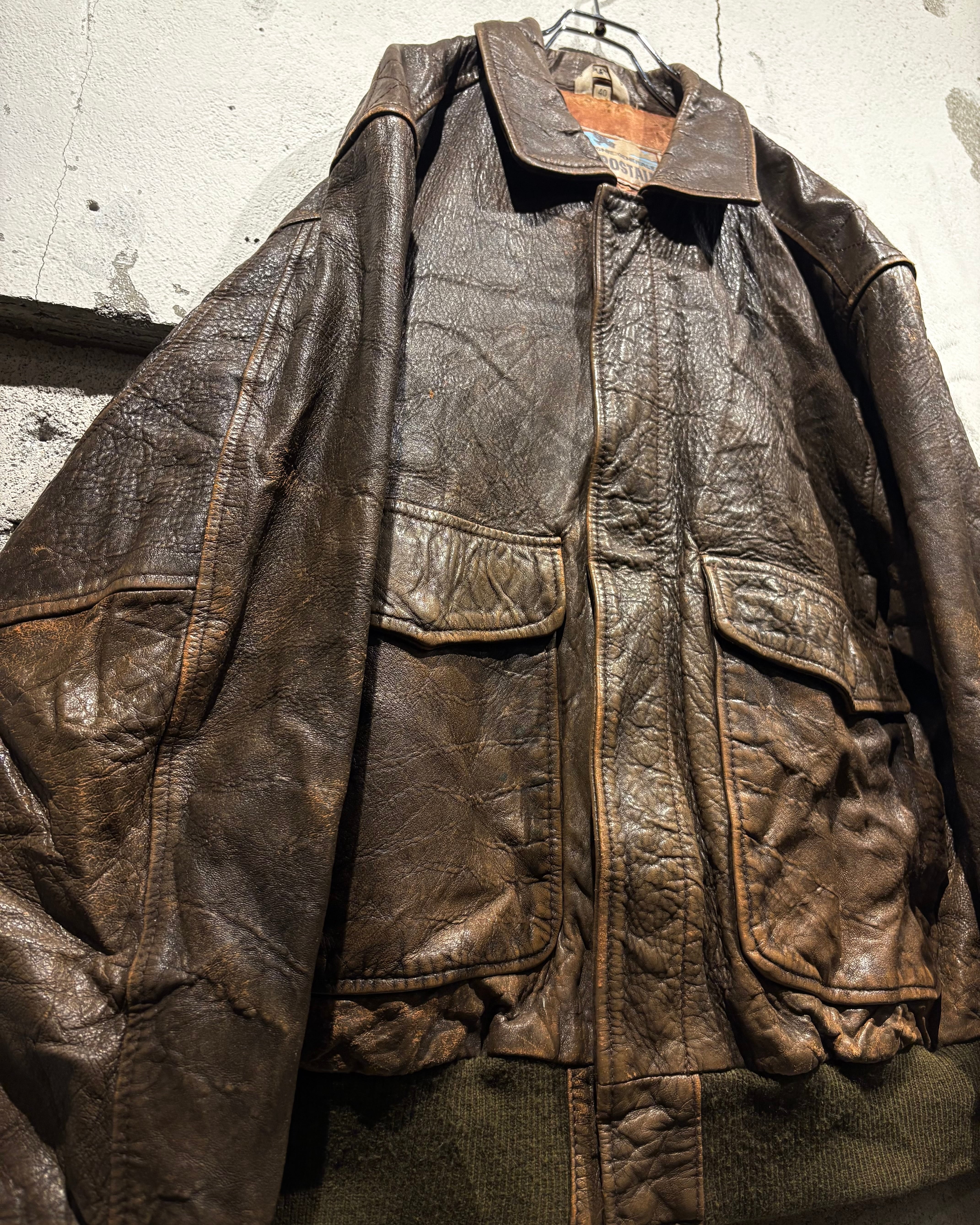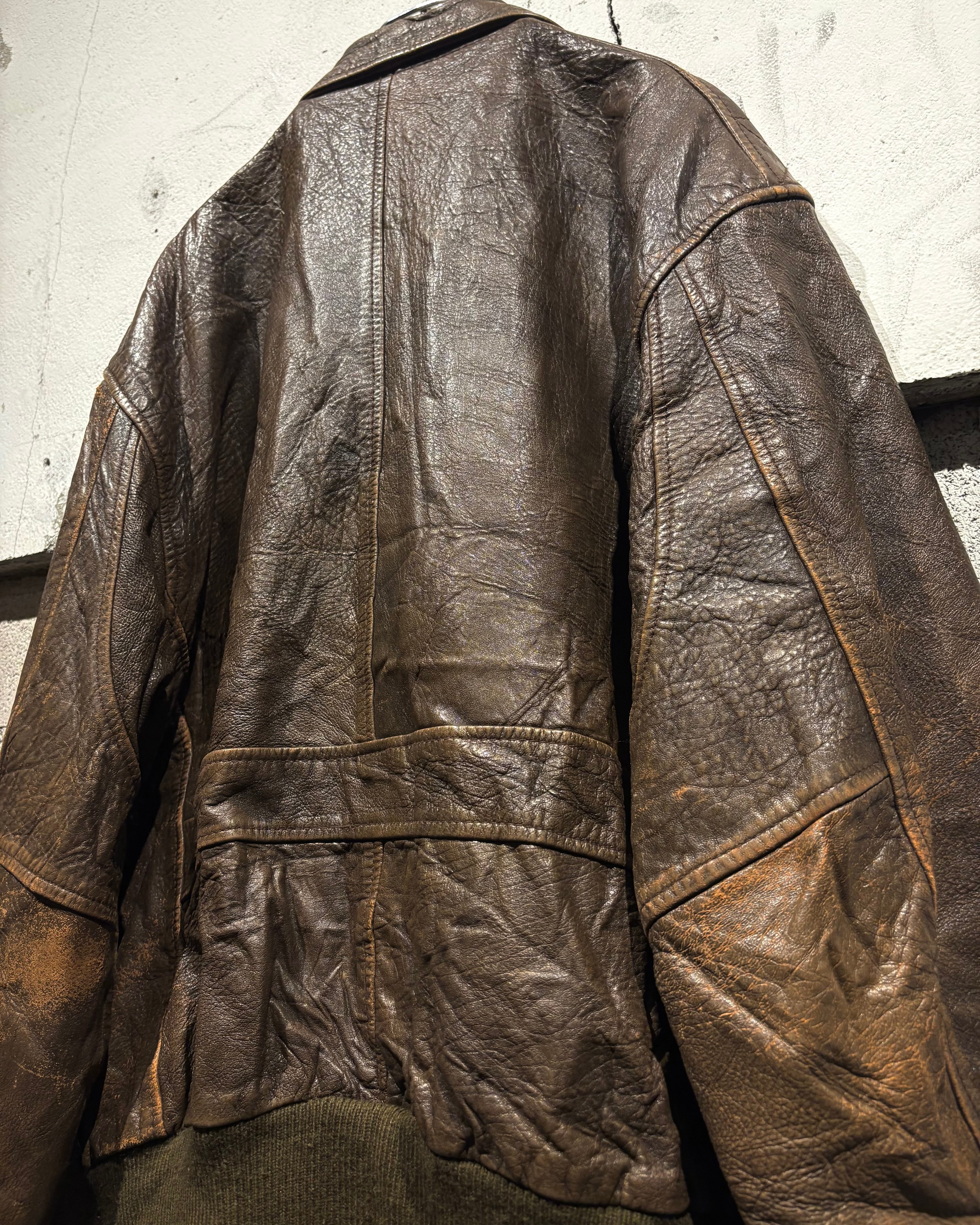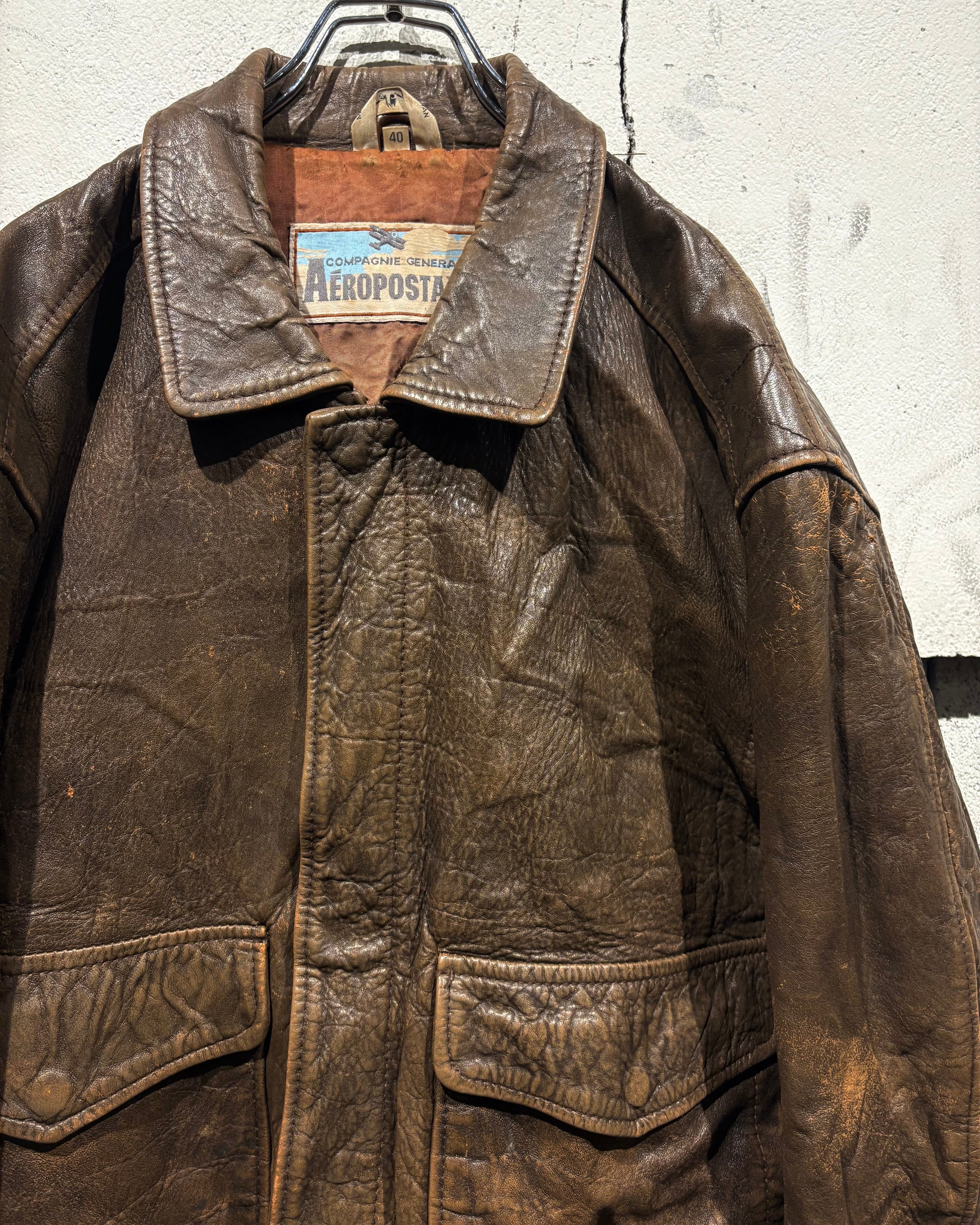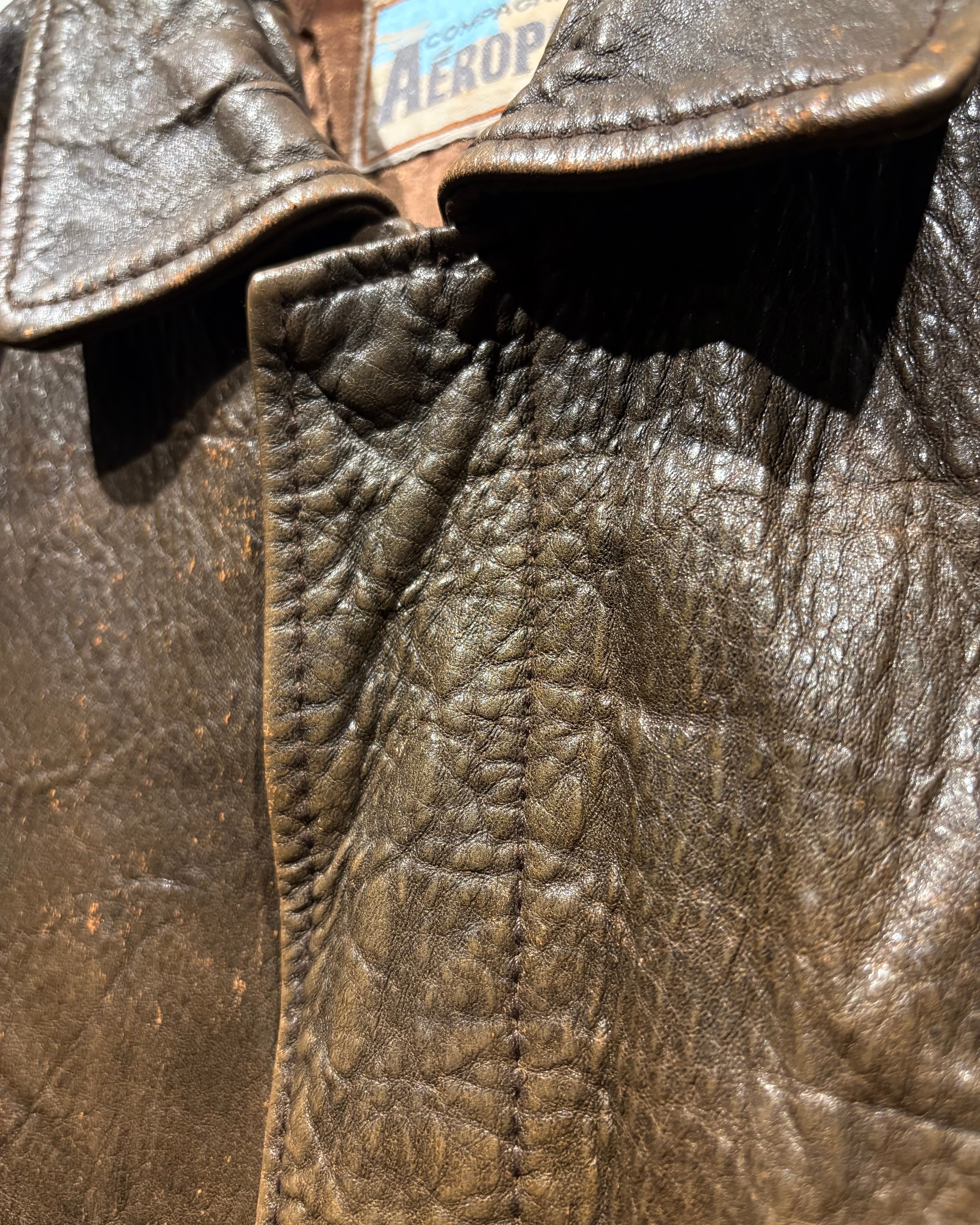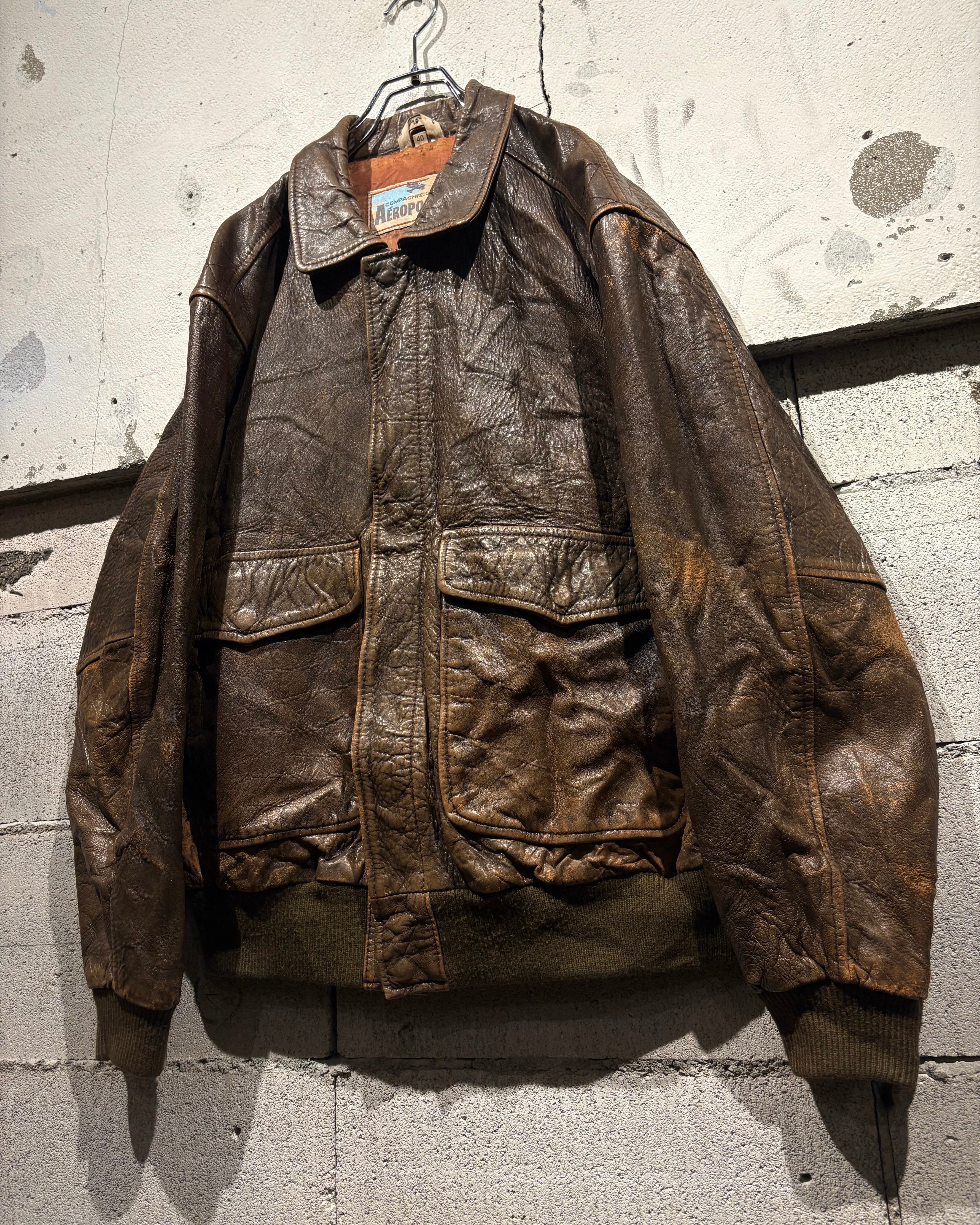 1987年、アメリカはニューヨーク発祥のブランド“Aeropostale“より、経年によるレザー特有のエイジングが味わい深く、艶やかな光沢が雰囲気を漂わせる、フライトジャケットの代表格であるA-2タイプのレザージャケット。