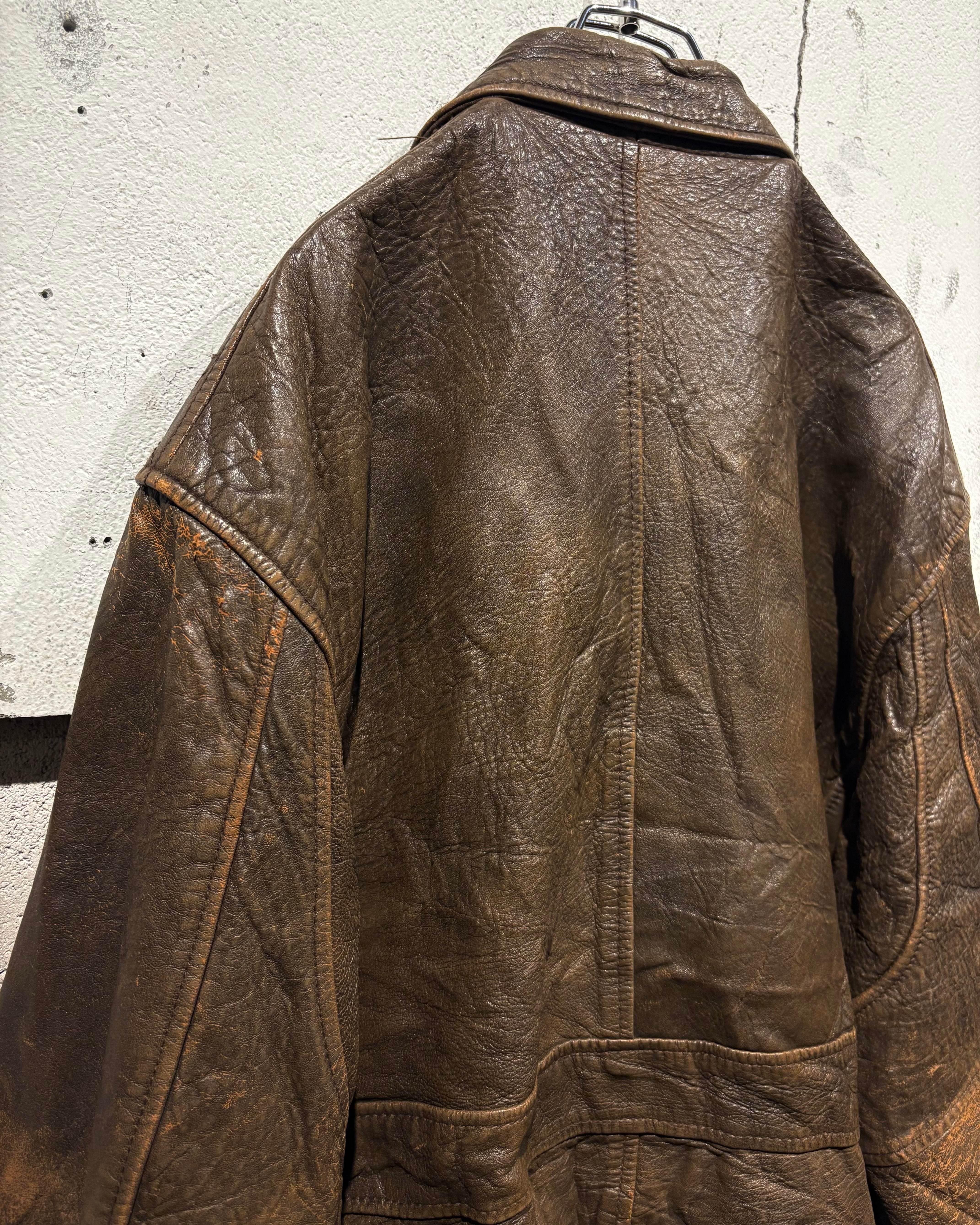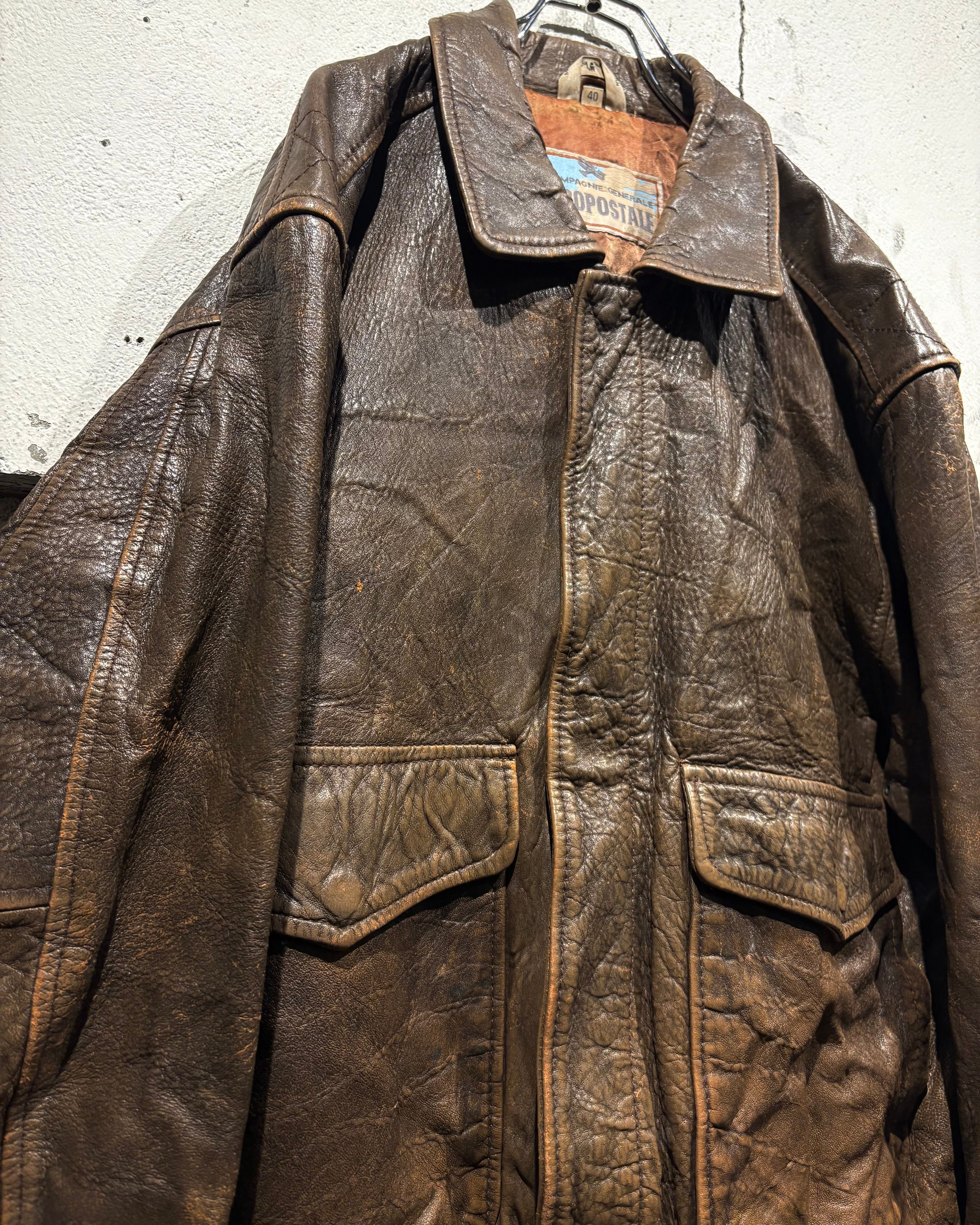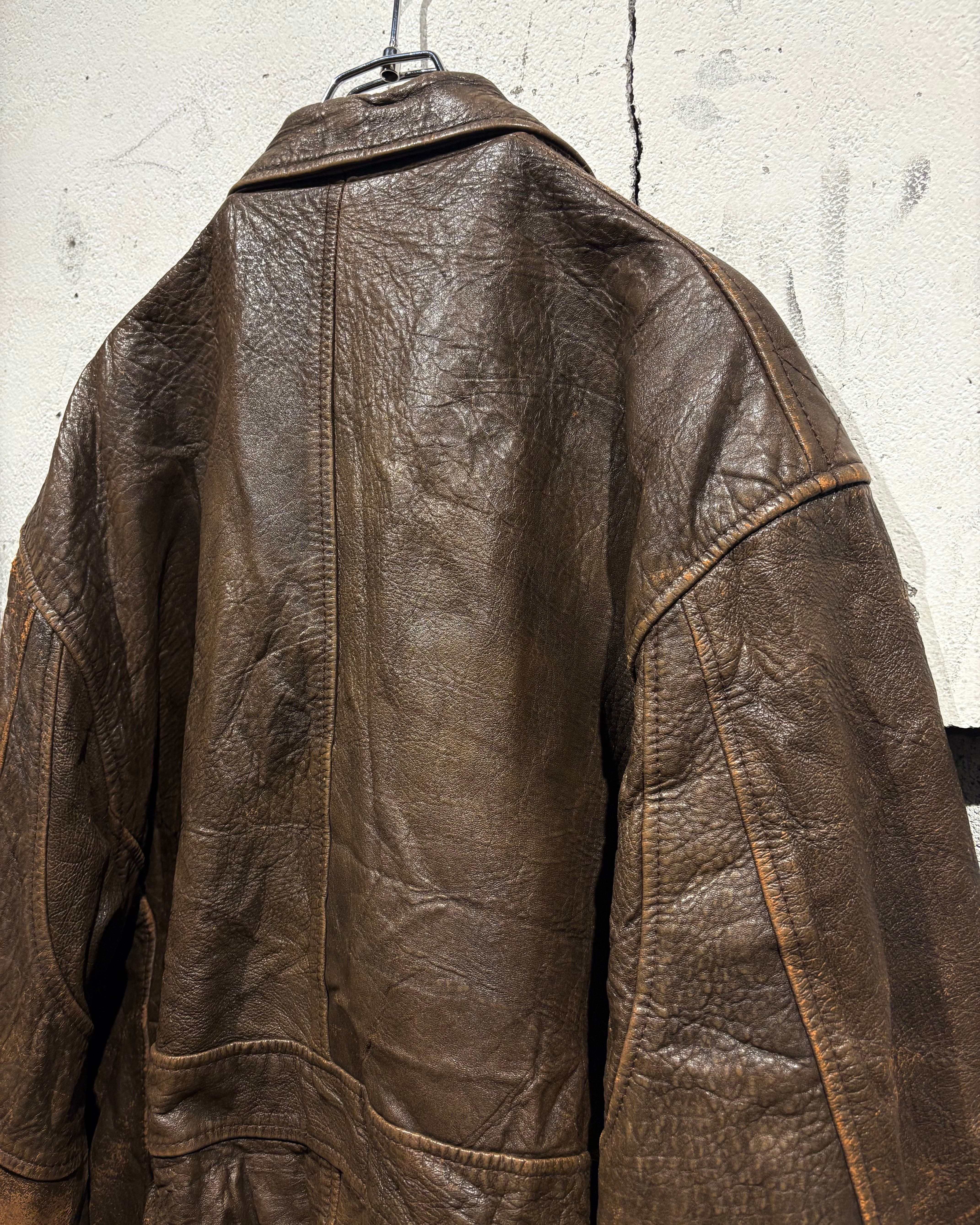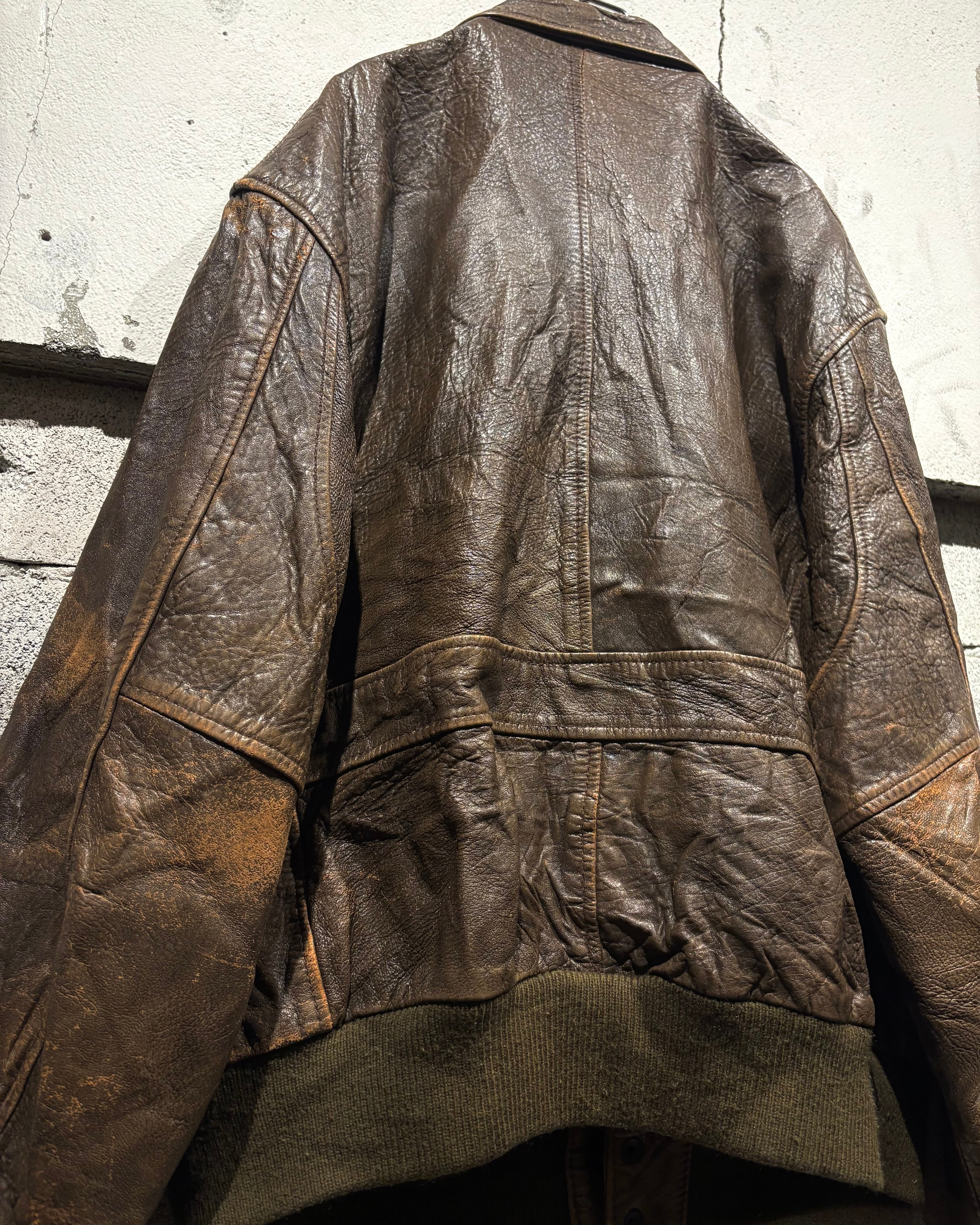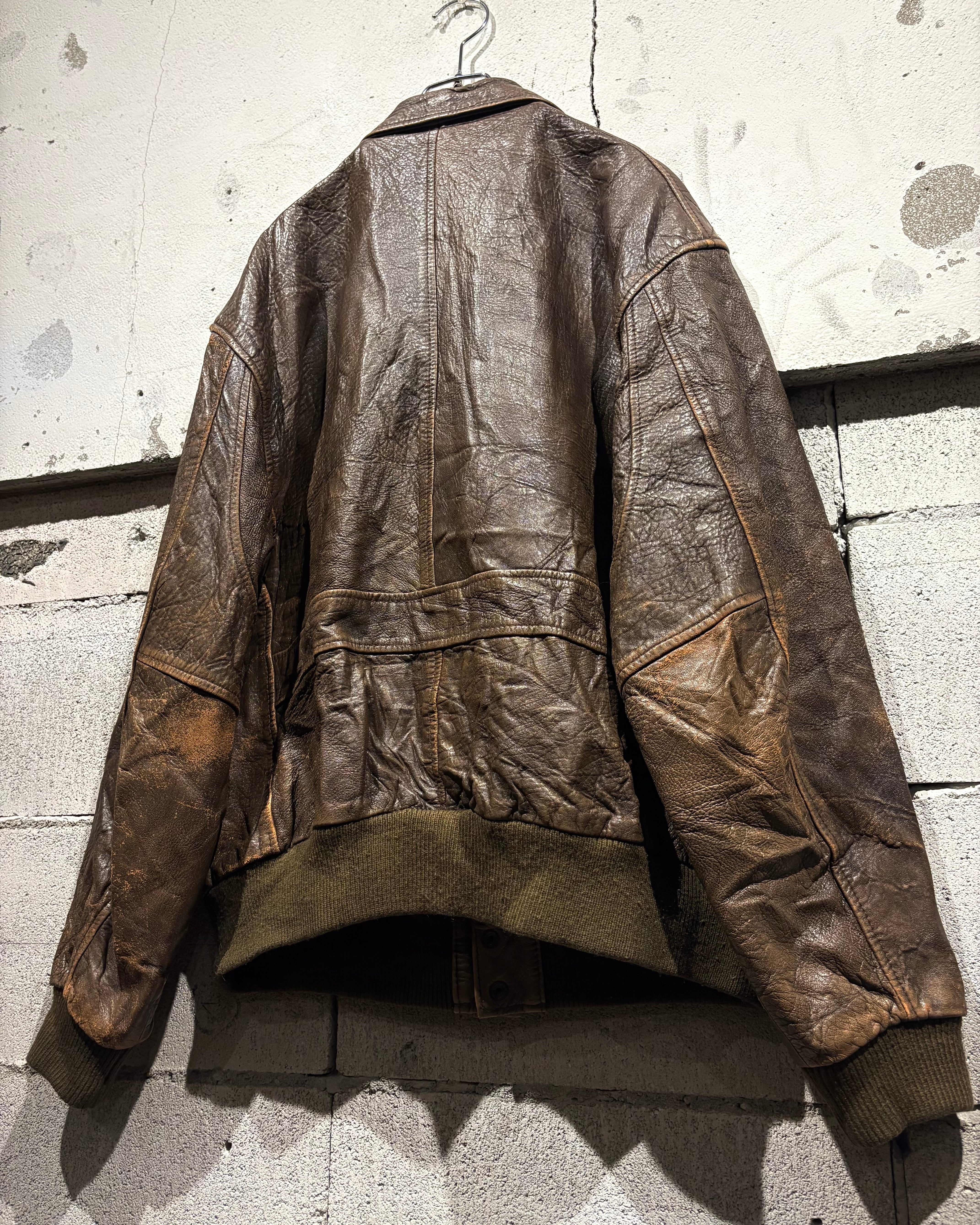 1987年、アメリカはニューヨーク発祥のブランド“Aeropostale“より、経年によるレザー特有のエイジングが味わい深く、艶やかな光沢が雰囲気を漂わせる、フライトジャケットの代表格であるA-2タイプのレザージャケット。