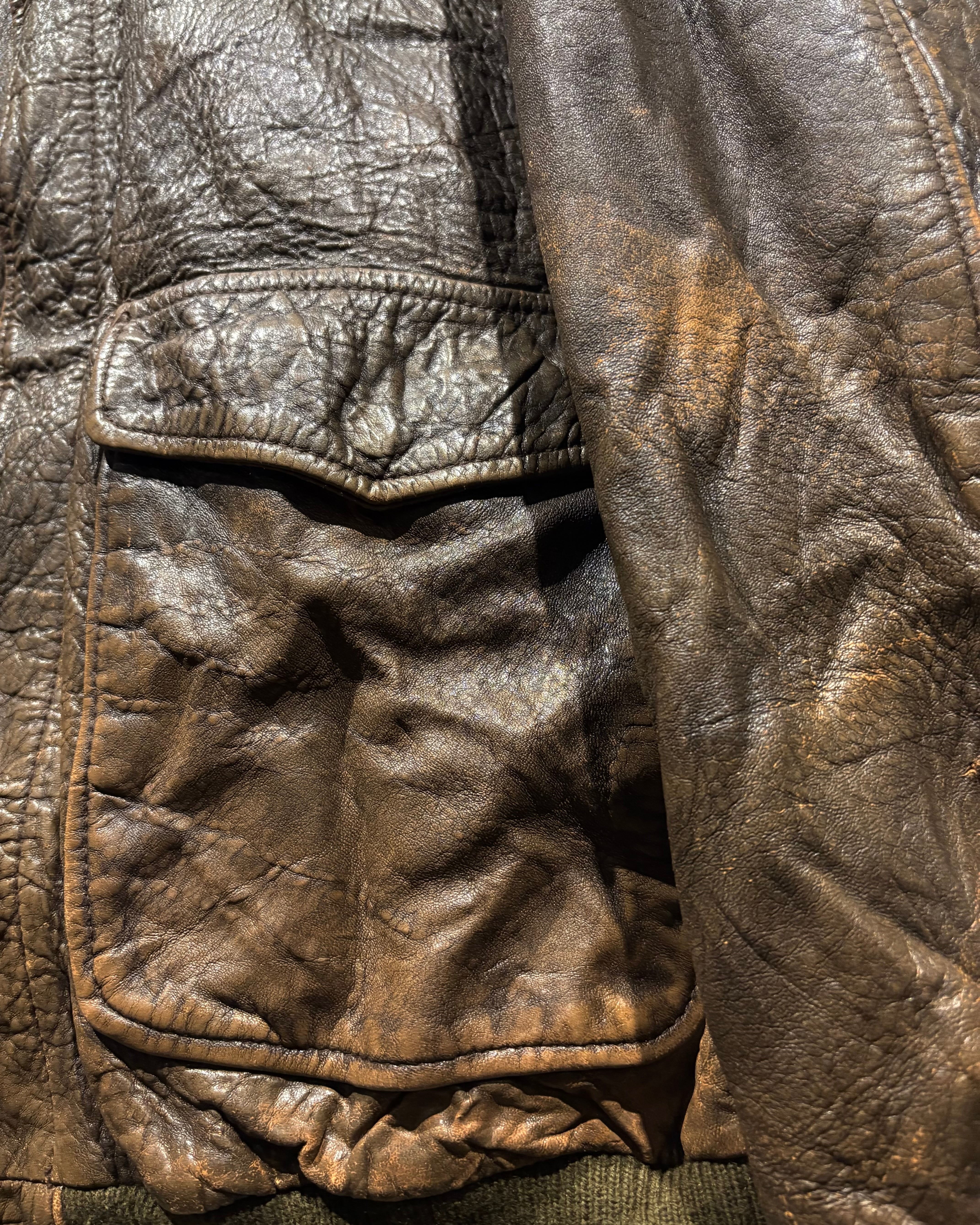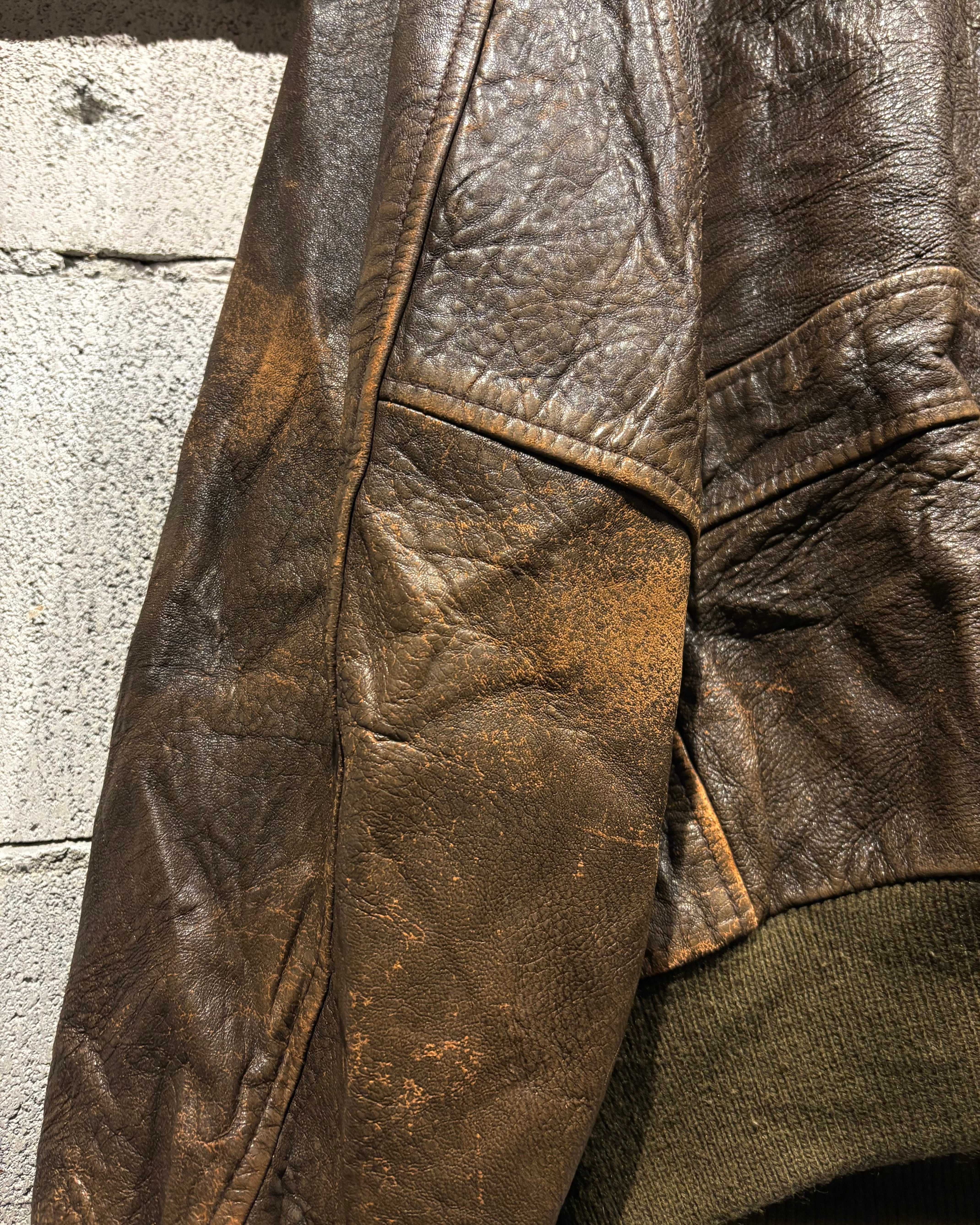フライトジャケットの定番、A-2ジャケットを落とし込んだレザージャケット。この型ならではのデザインはそのままに、USEDならではの表情を楽しめる逸品です。