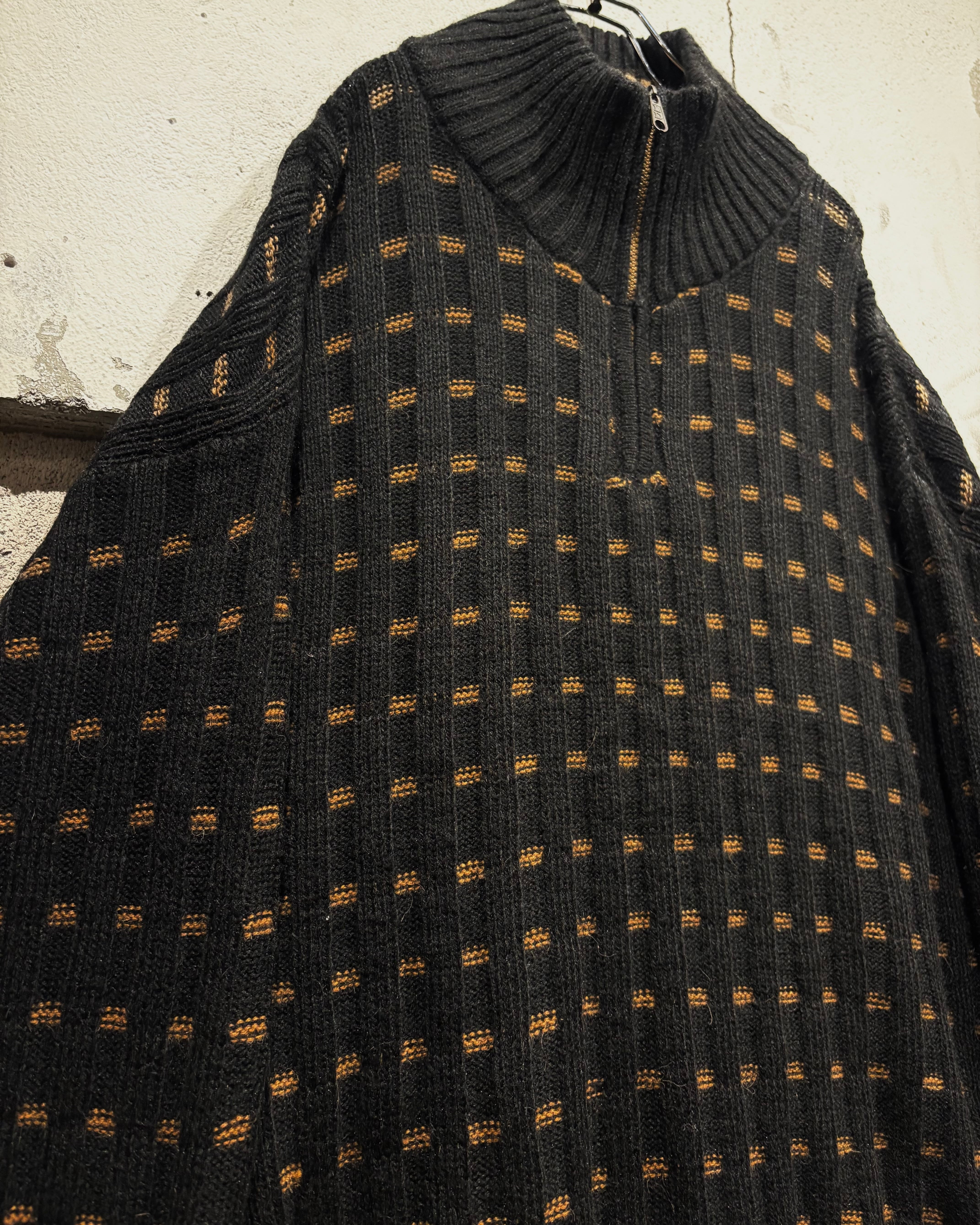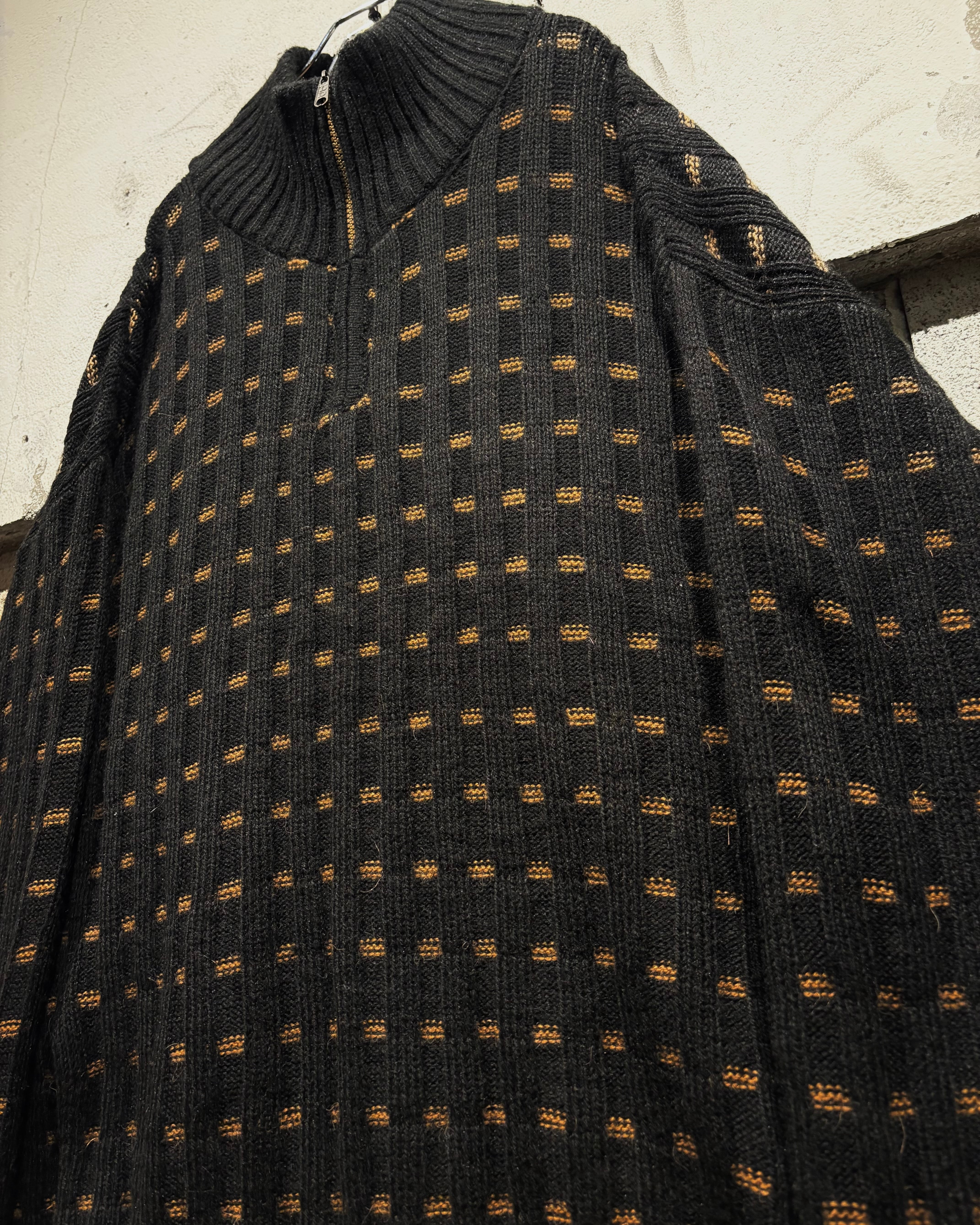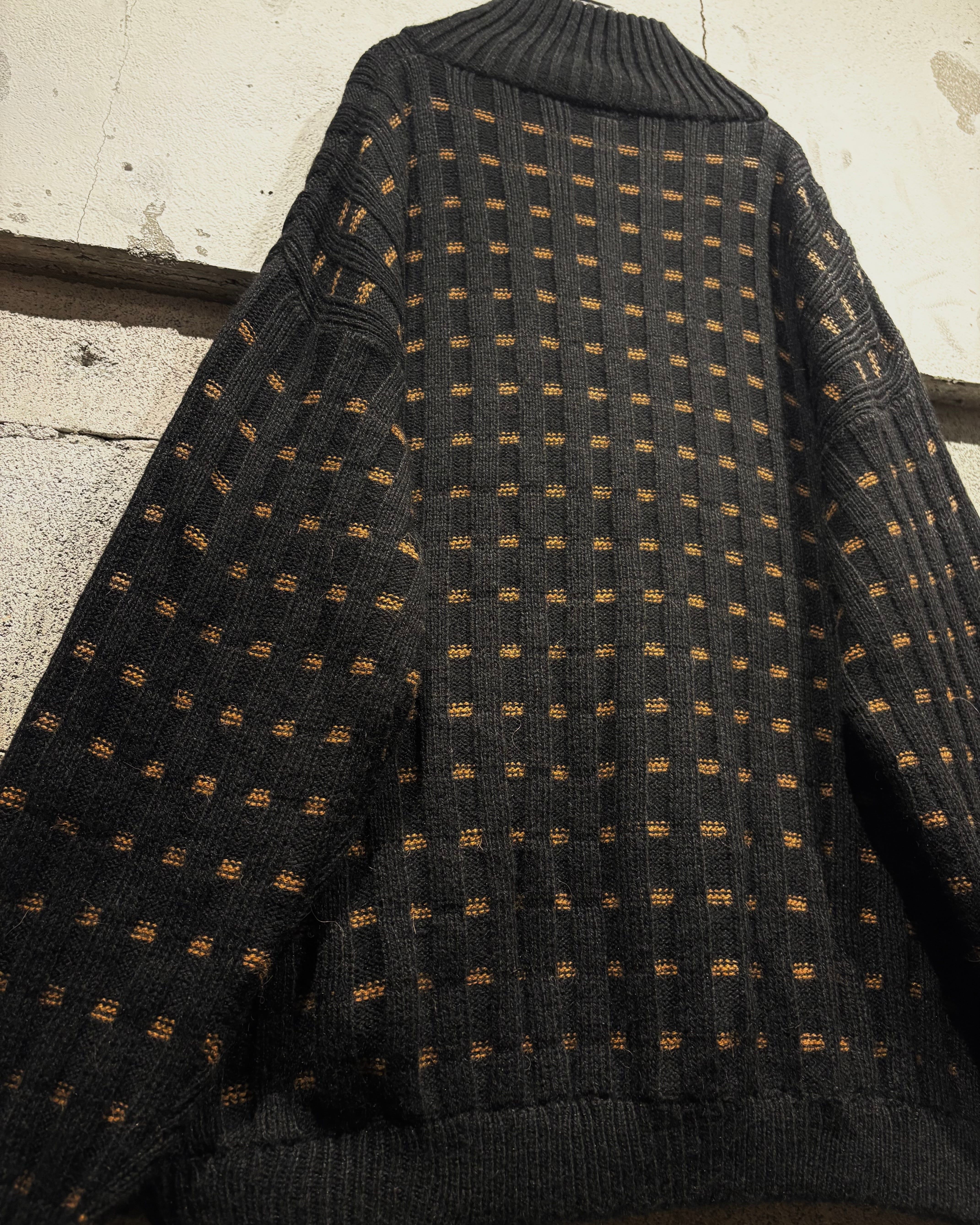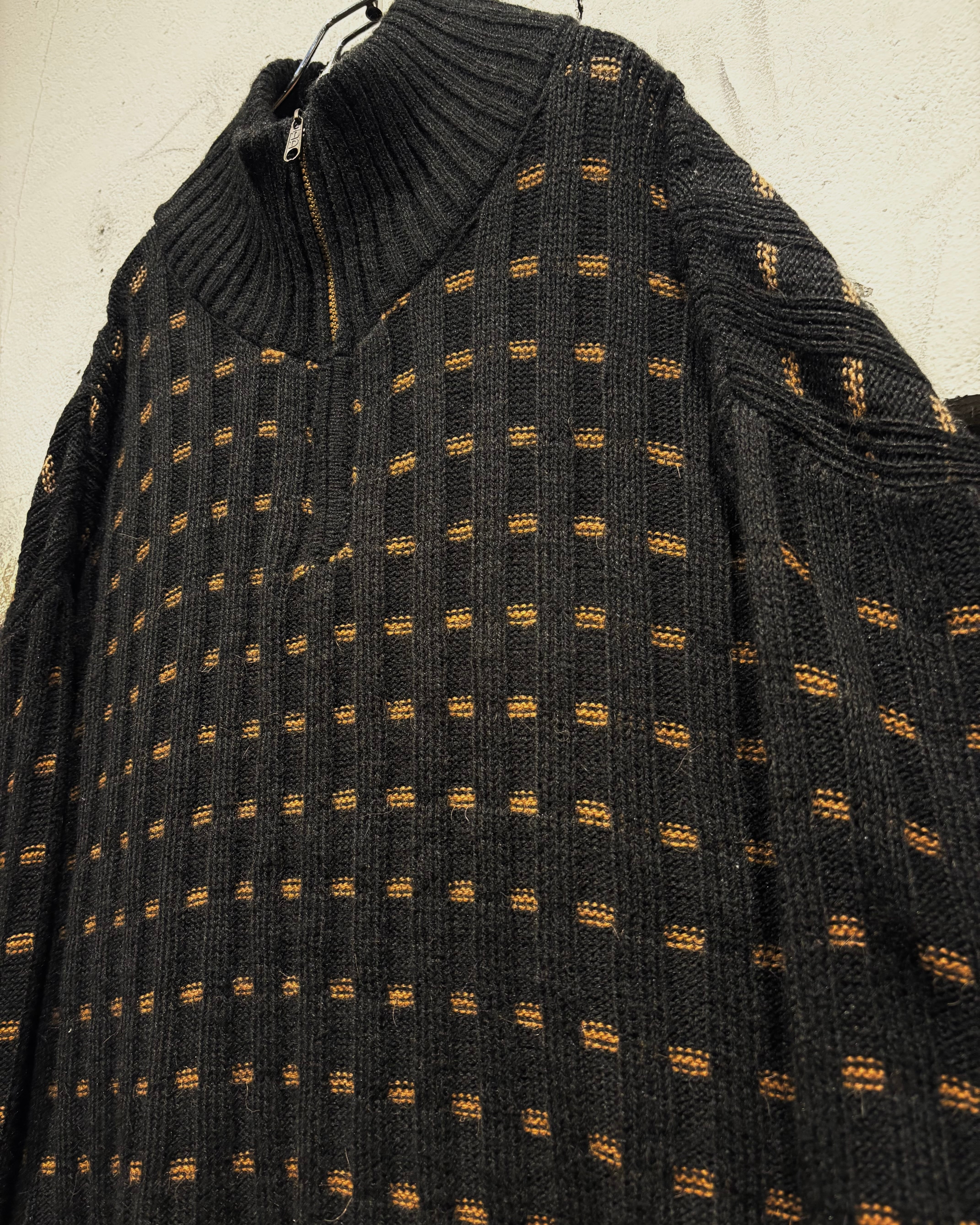 ブラックを基調とした落ち着いた佇まいの中に、編みの表情でしっかりと個性を宿したハーフジップニット。