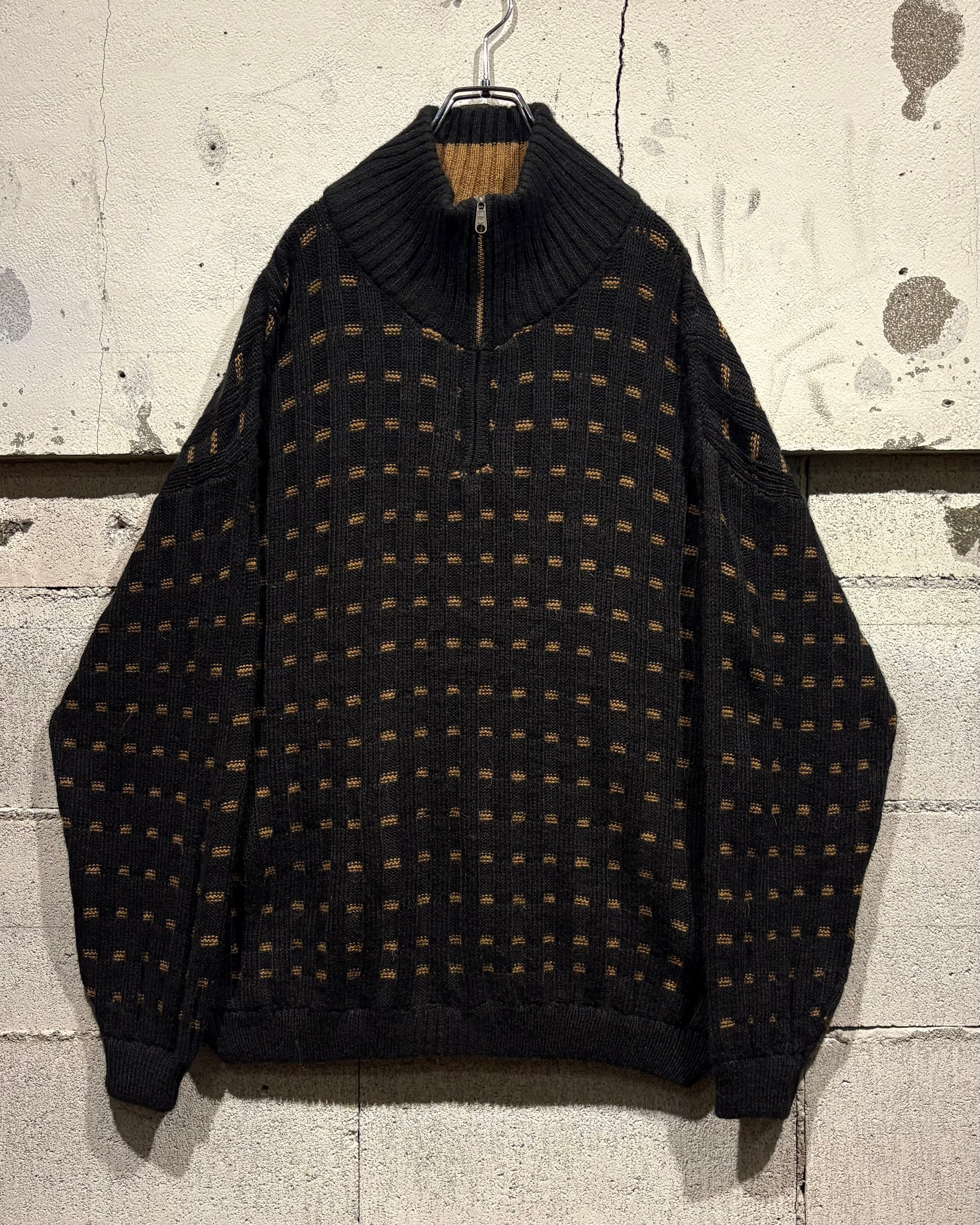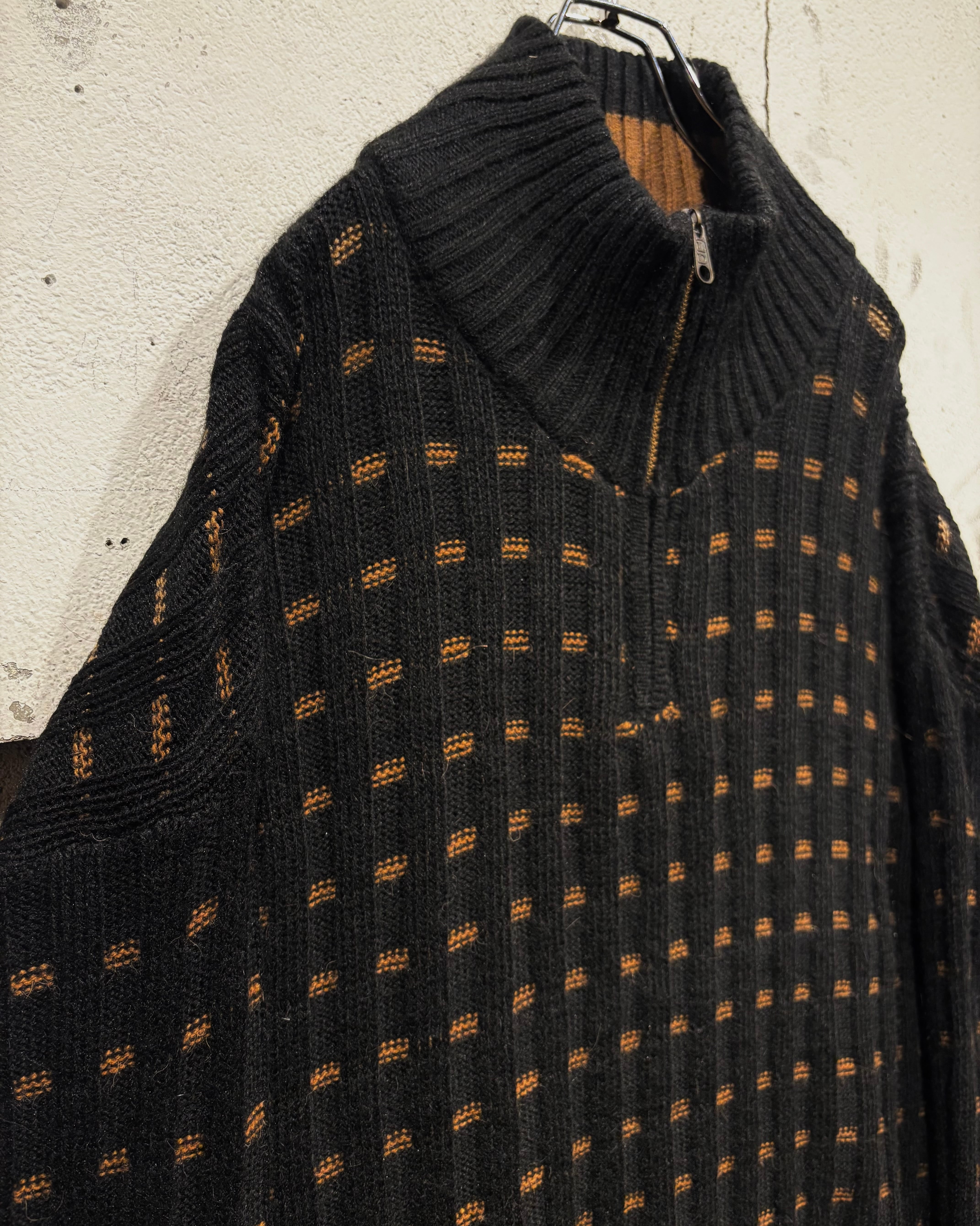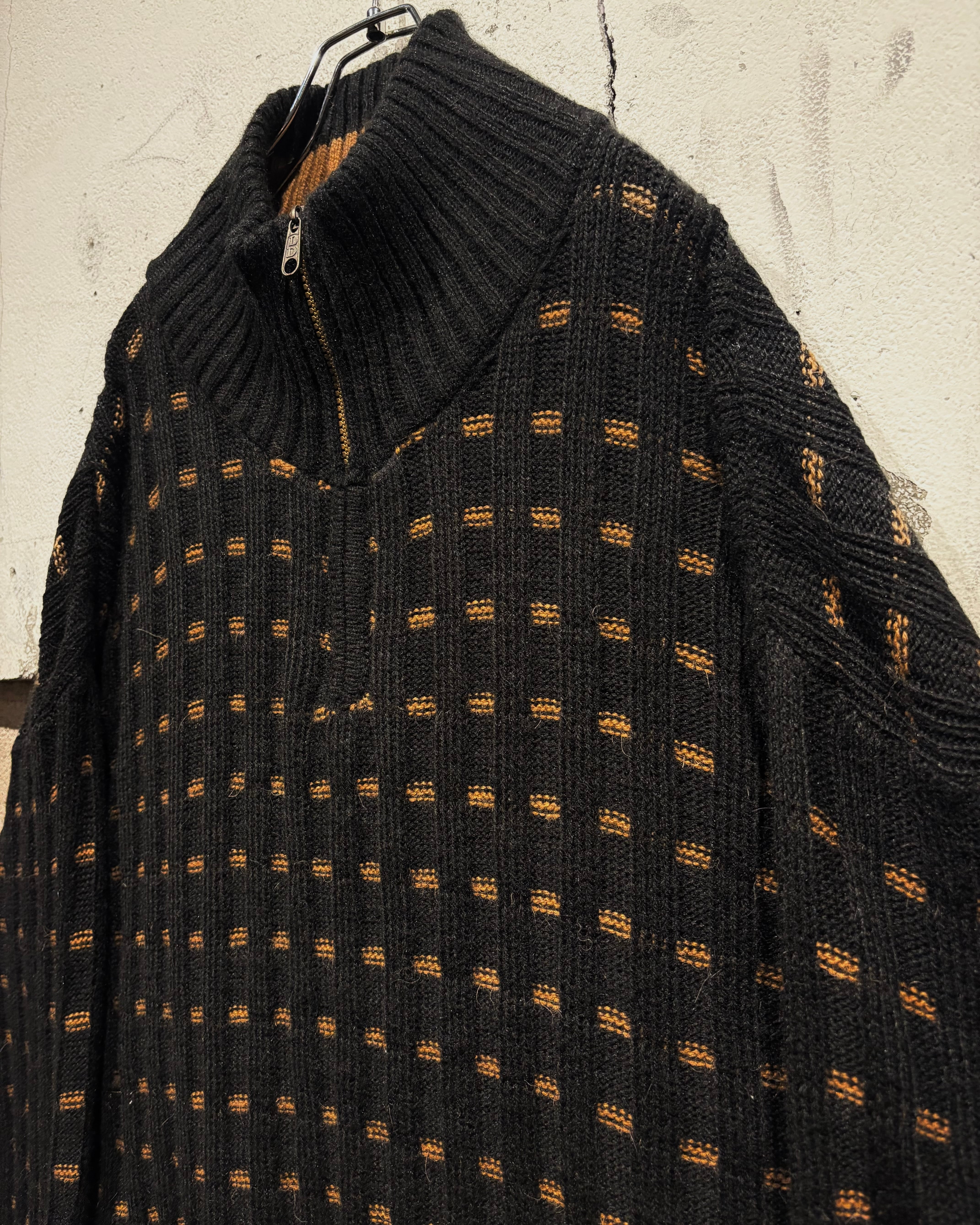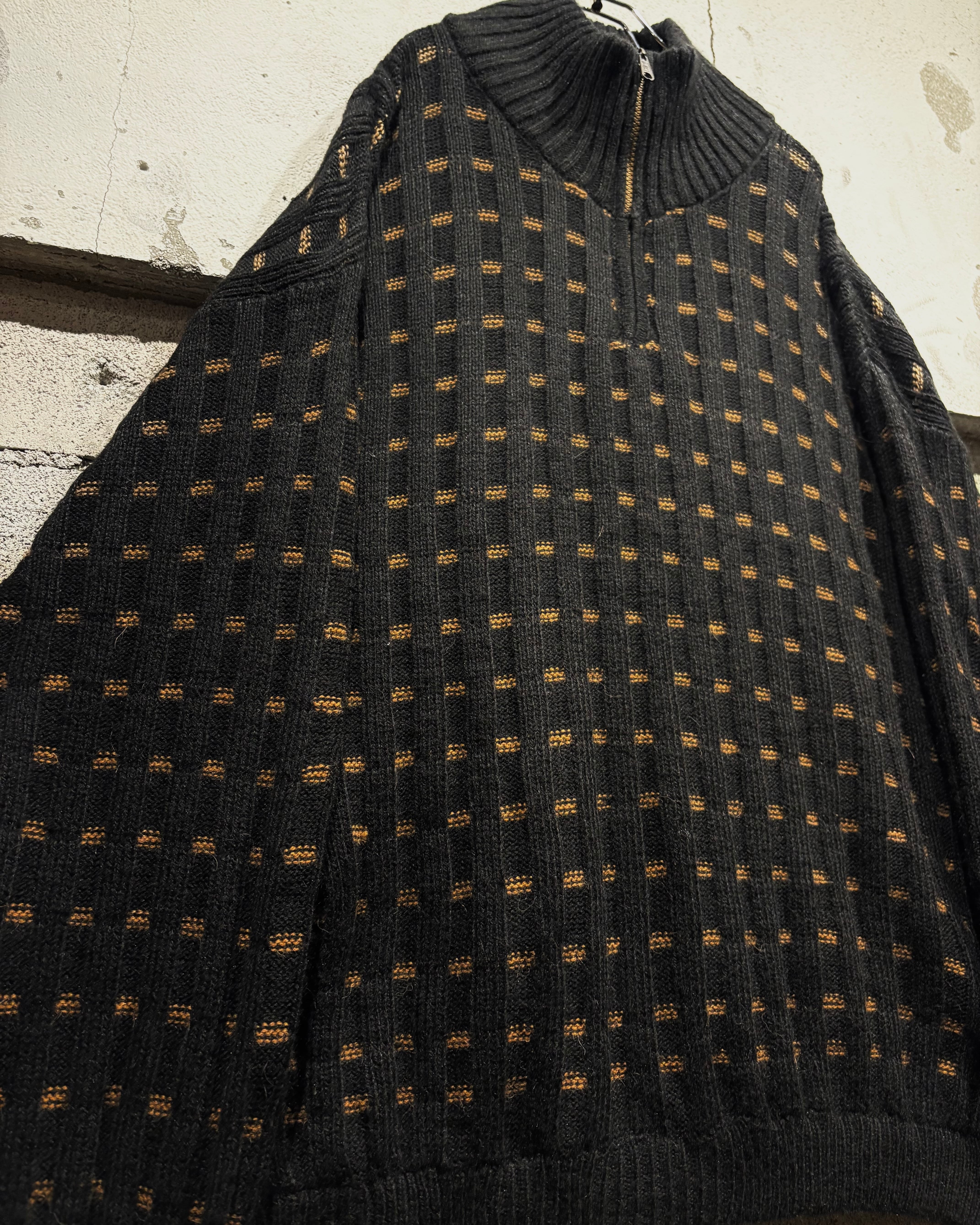 ブラックを基調とした落ち着いた佇まいの中に、編みの表情でしっかりと個性を宿したハーフジップニット。