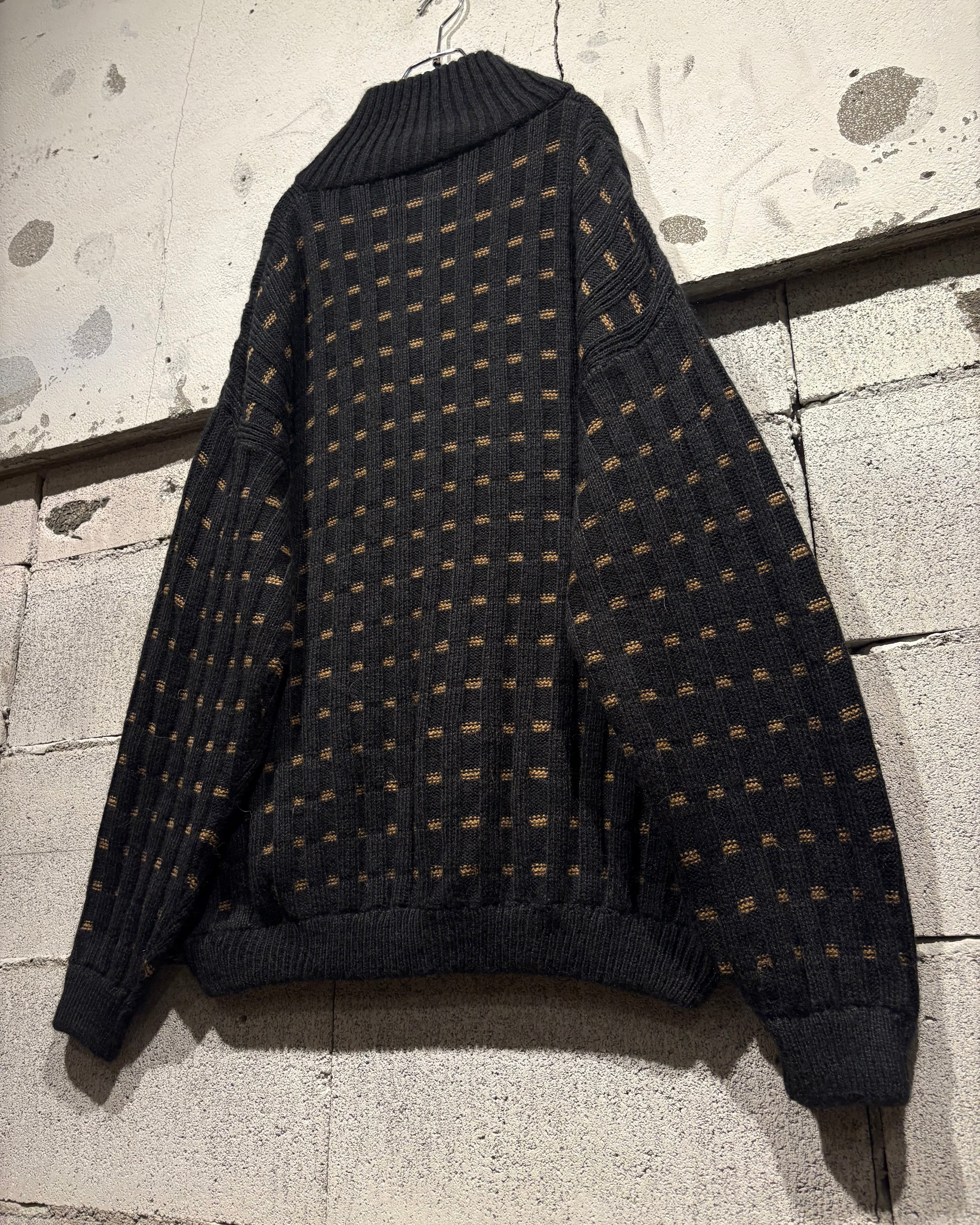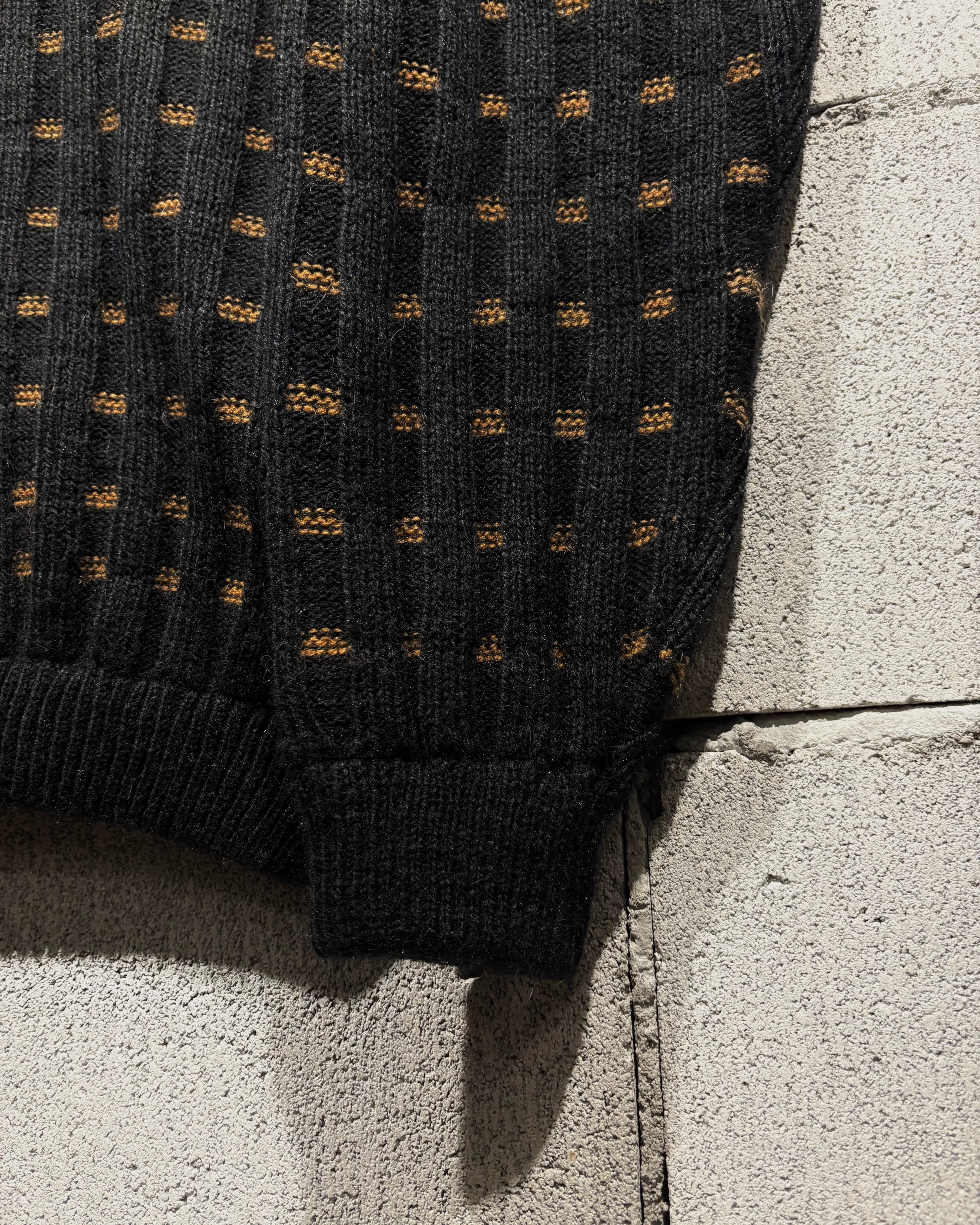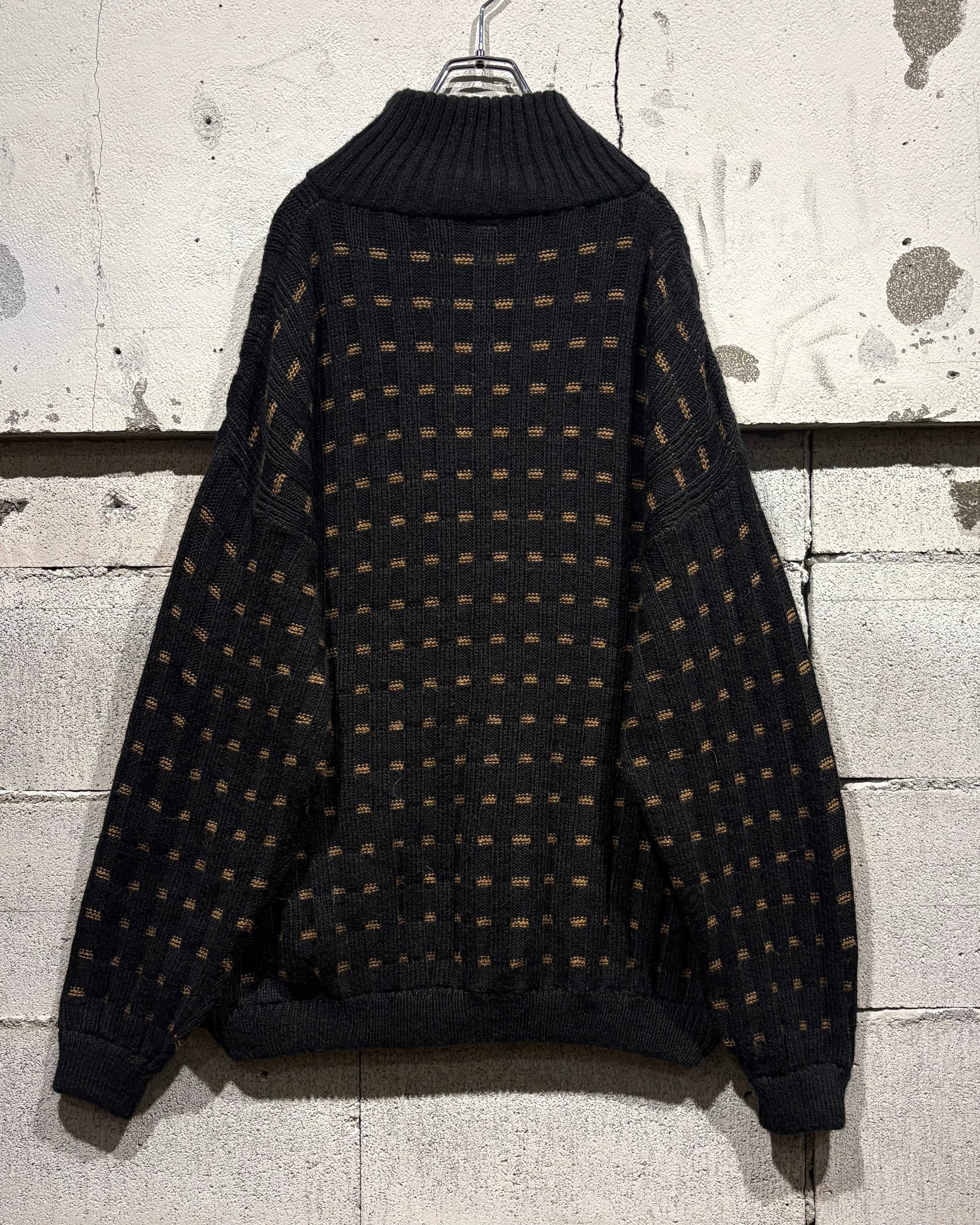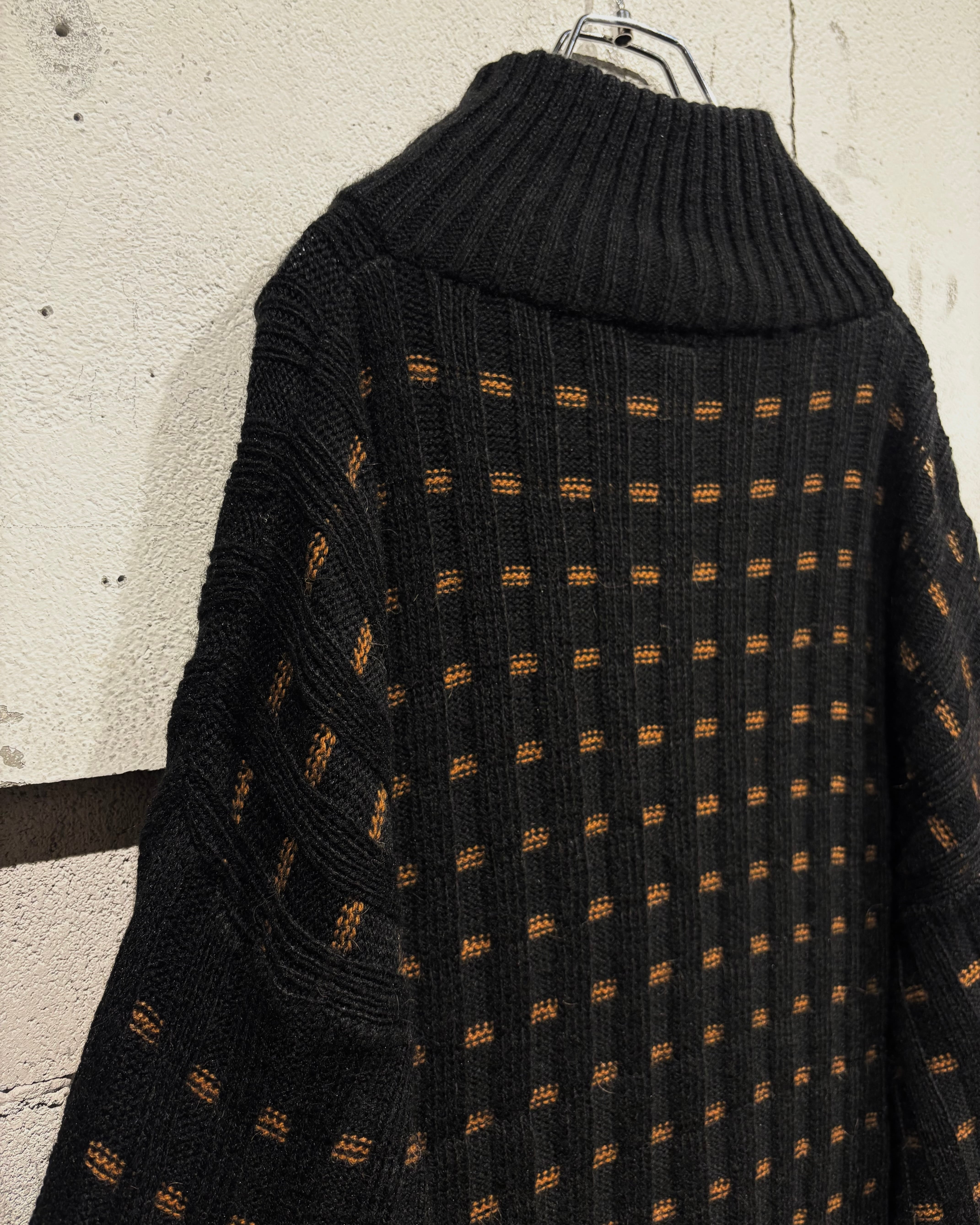 ブラックを基調とした落ち着いた佇まいの中に、編みの表情でしっかりと個性を宿したハーフジップニット。