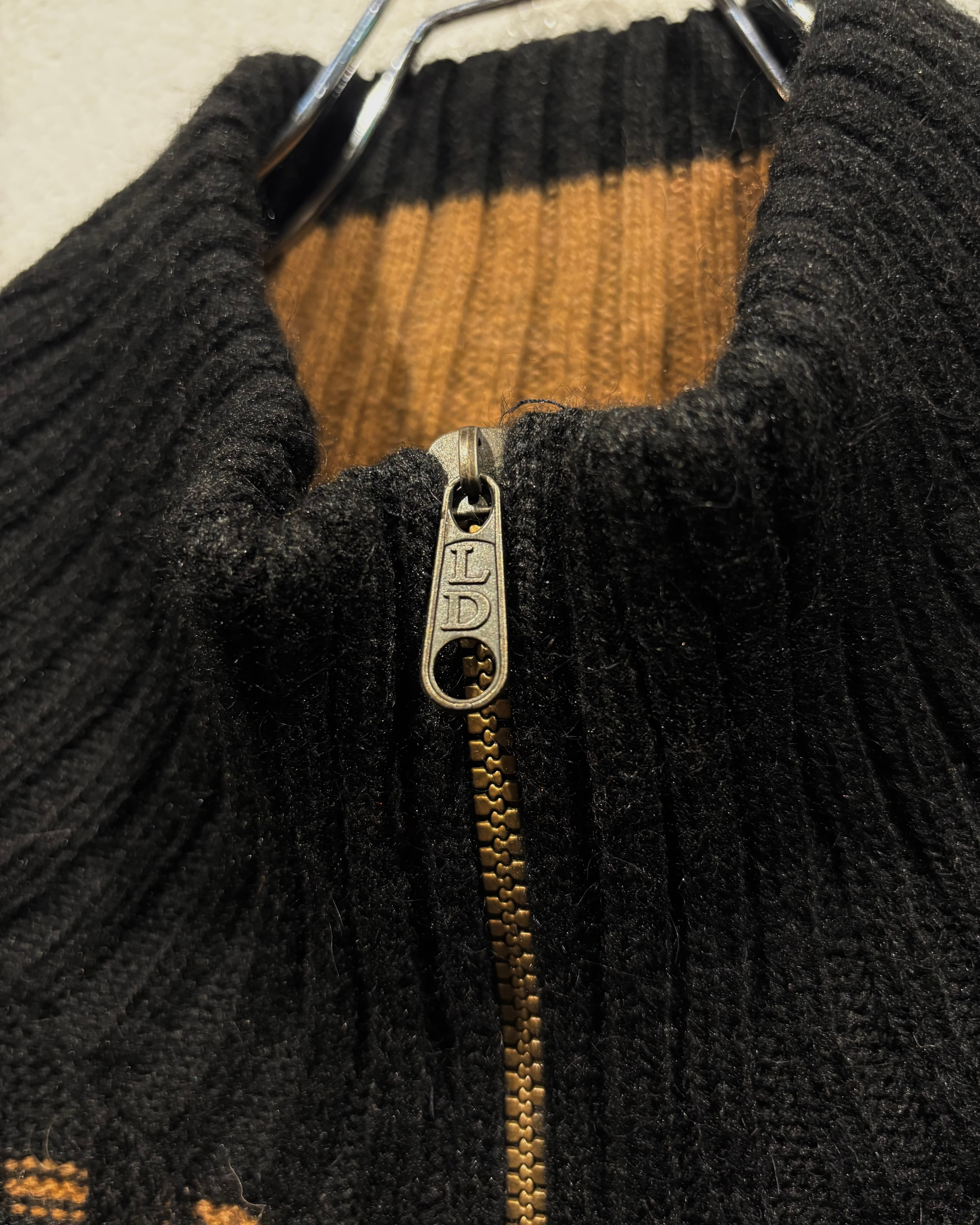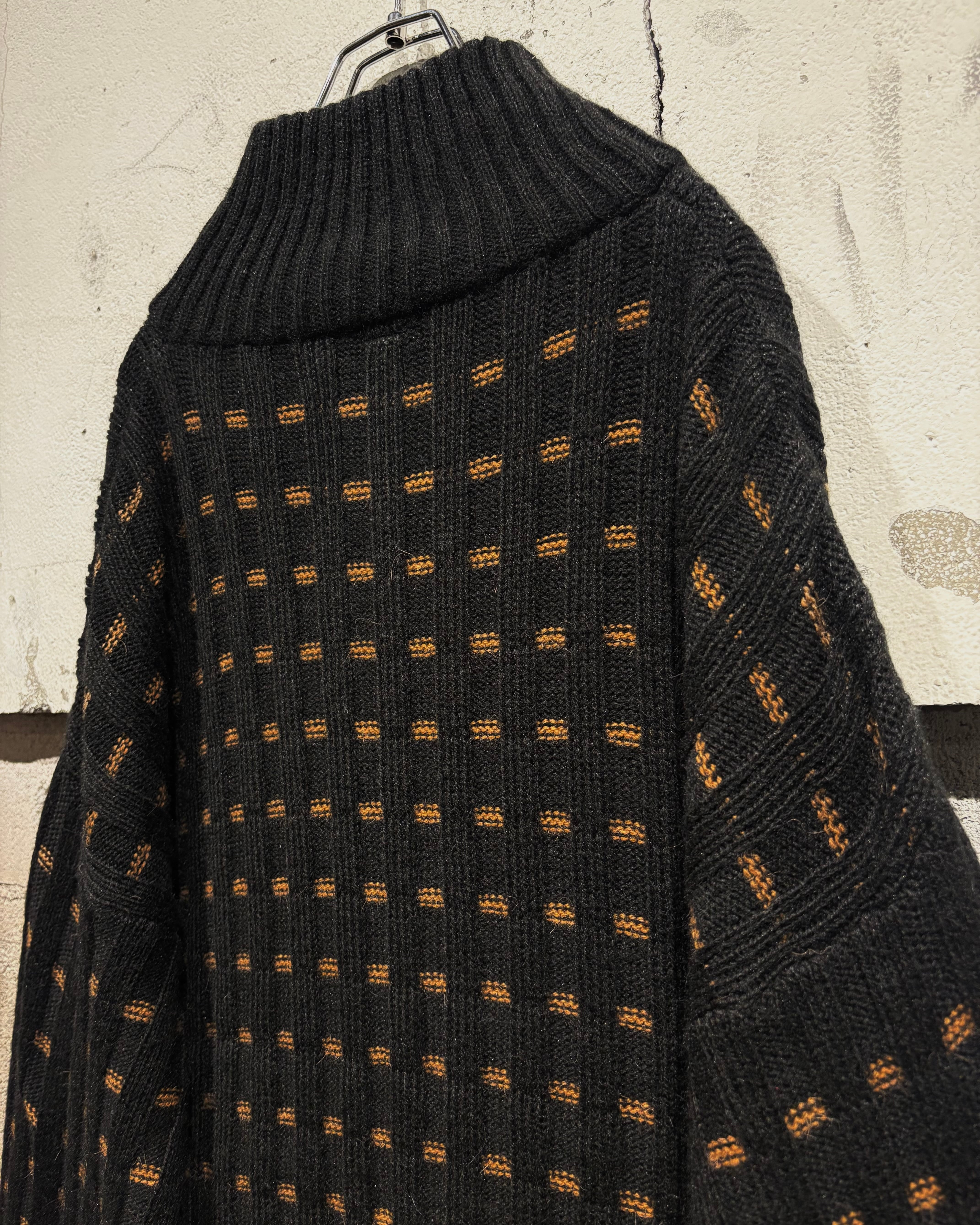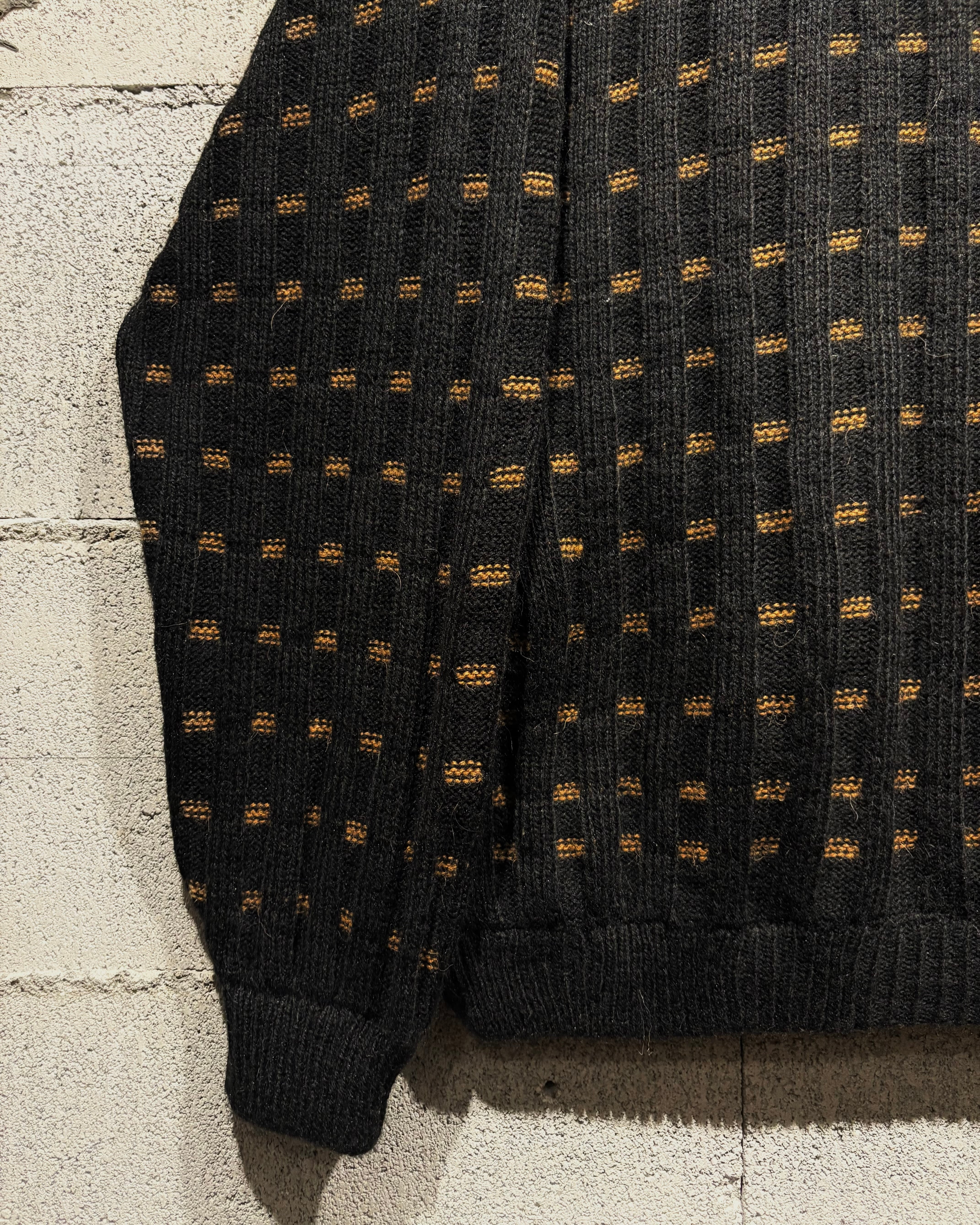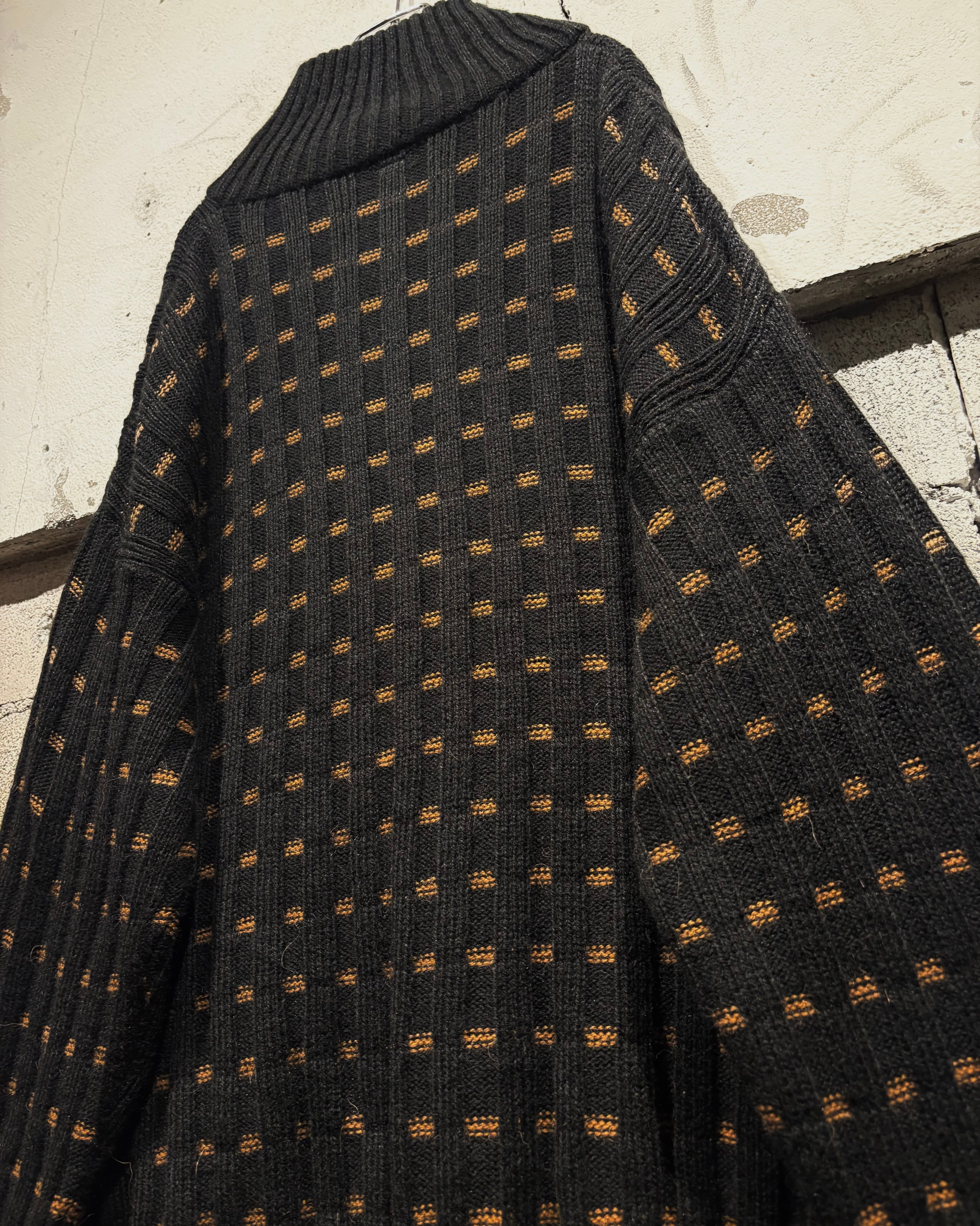 ブラックを基調とした落ち着いた佇まいの中に、編みの表情でしっかりと個性を宿したハーフジップニット。