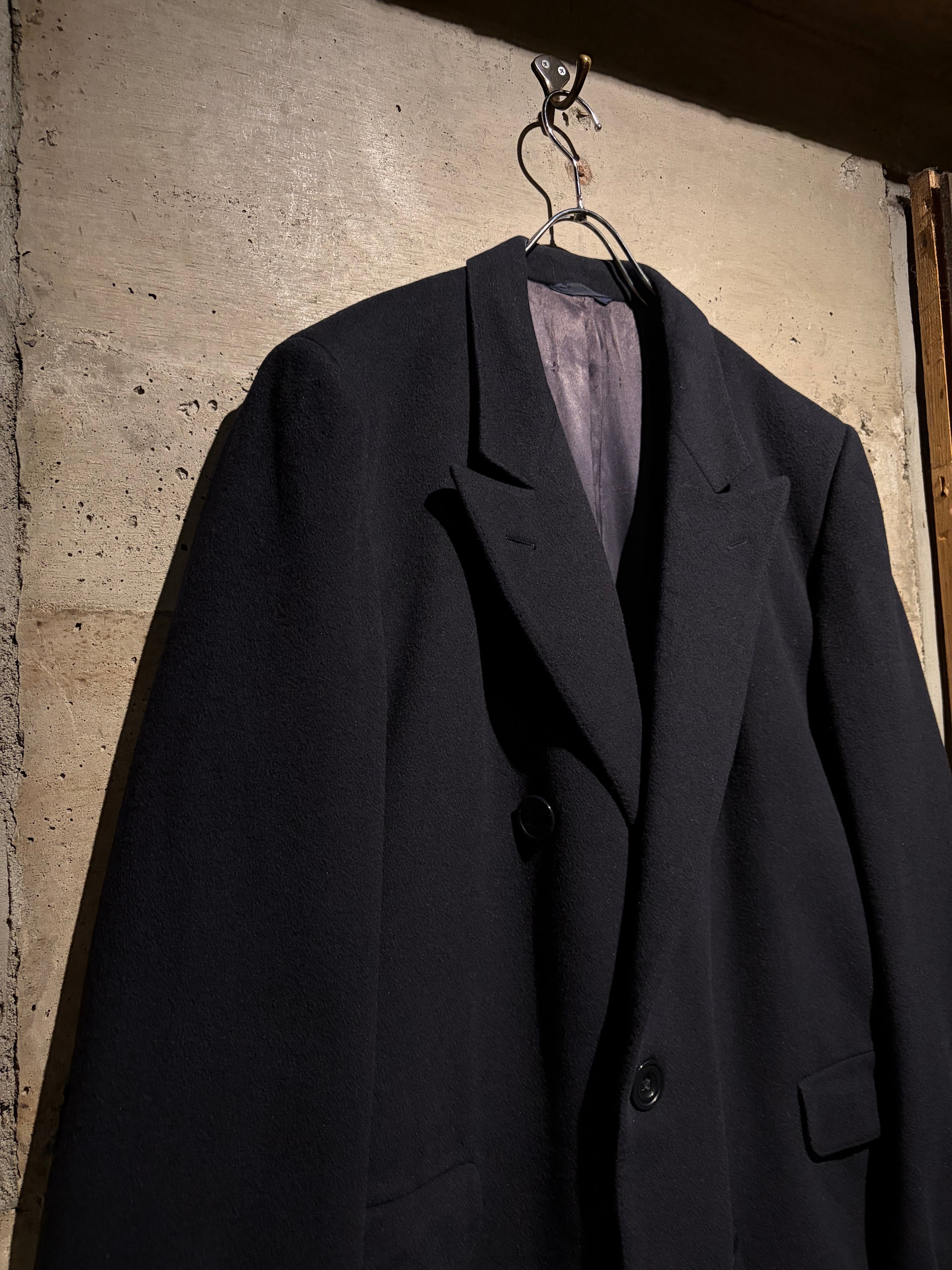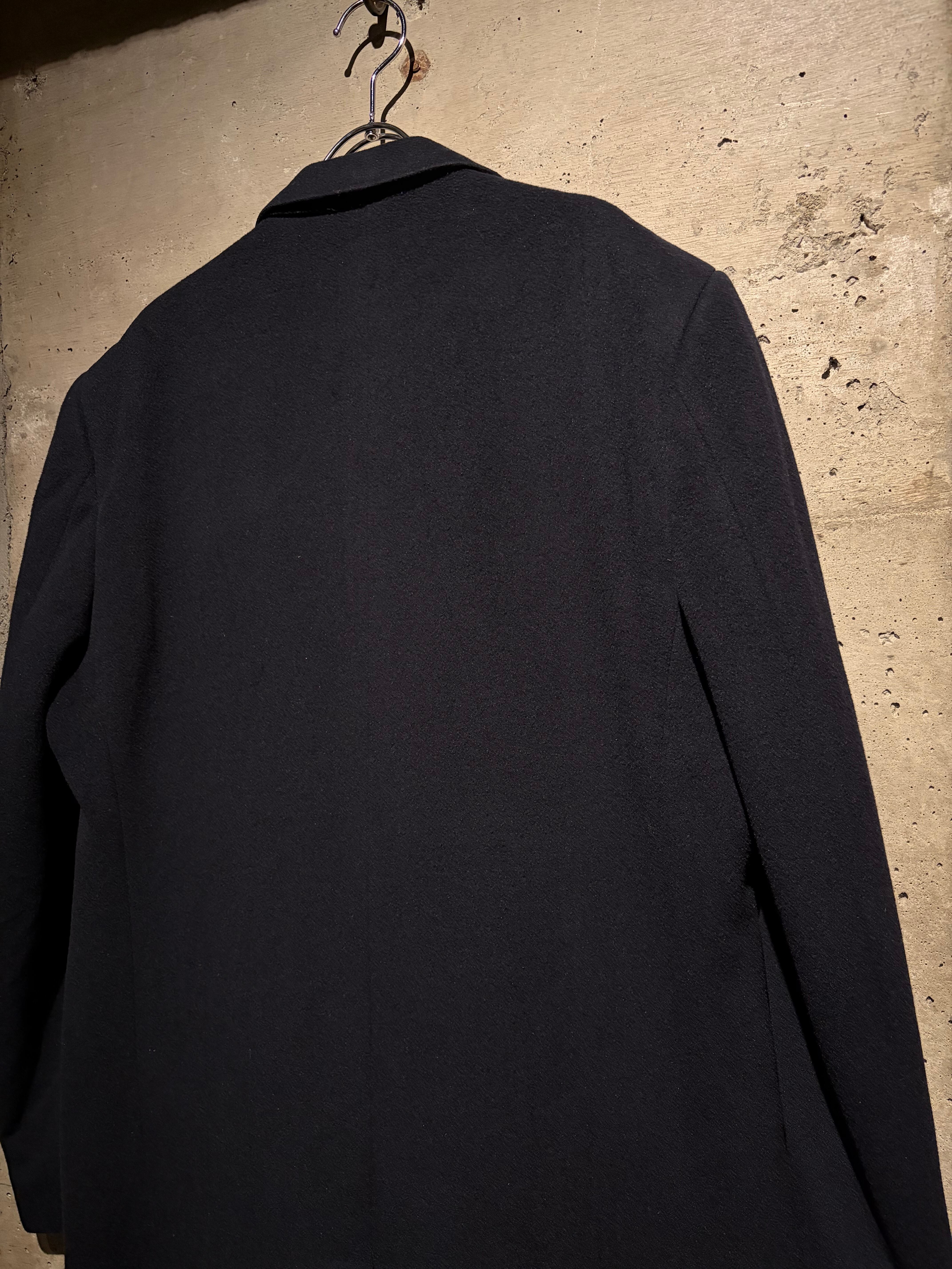 きめ細かな起毛感としっかりとした肉感を兼ね備えた、上質なウール素材を用いたボディと、奥行きのあるネイビーカラーが高級感を漂わせる1着。手に取った瞬間に伝わる密度と重みがあり、ブランドのクオリティをしっかりと肌で感じられます。