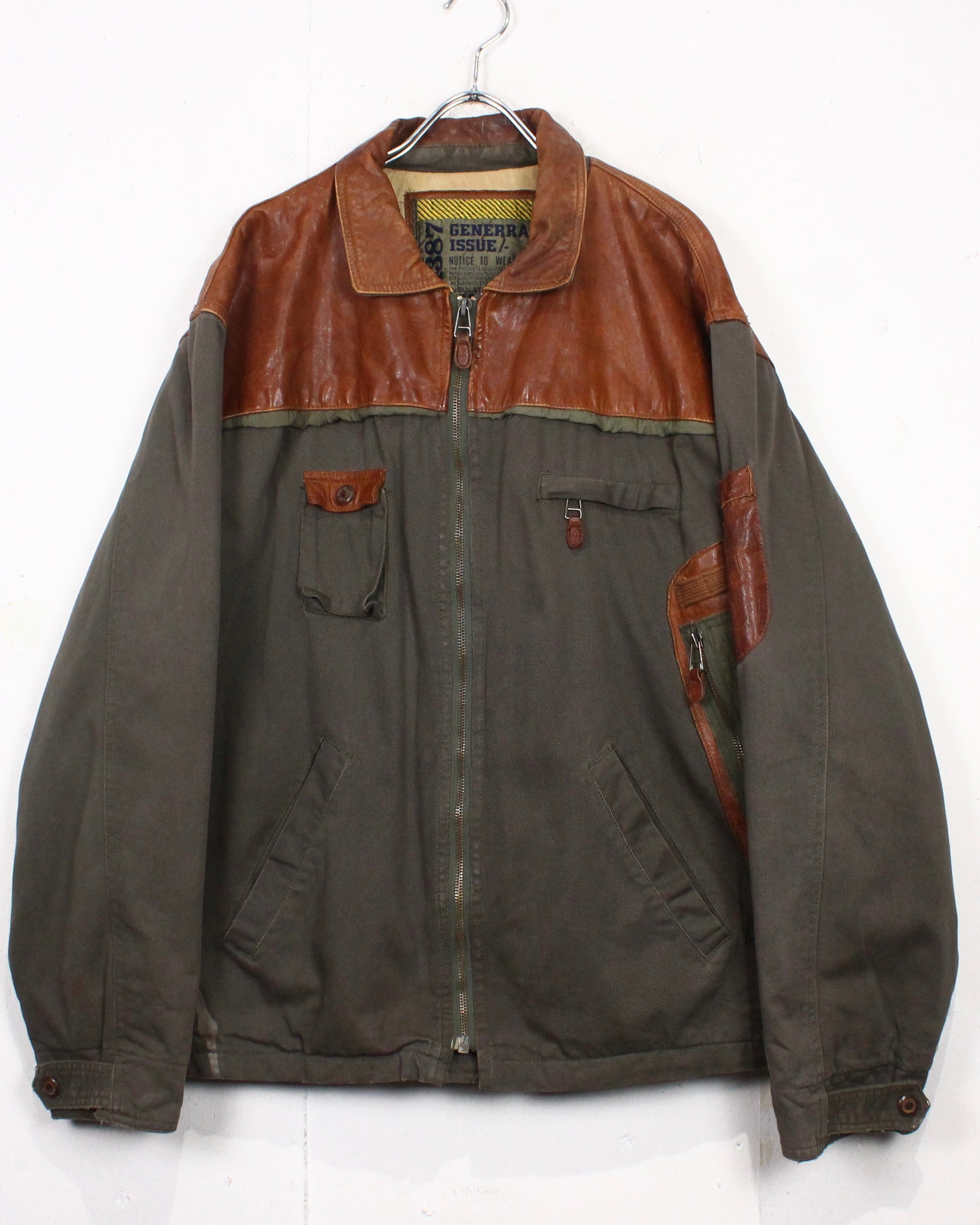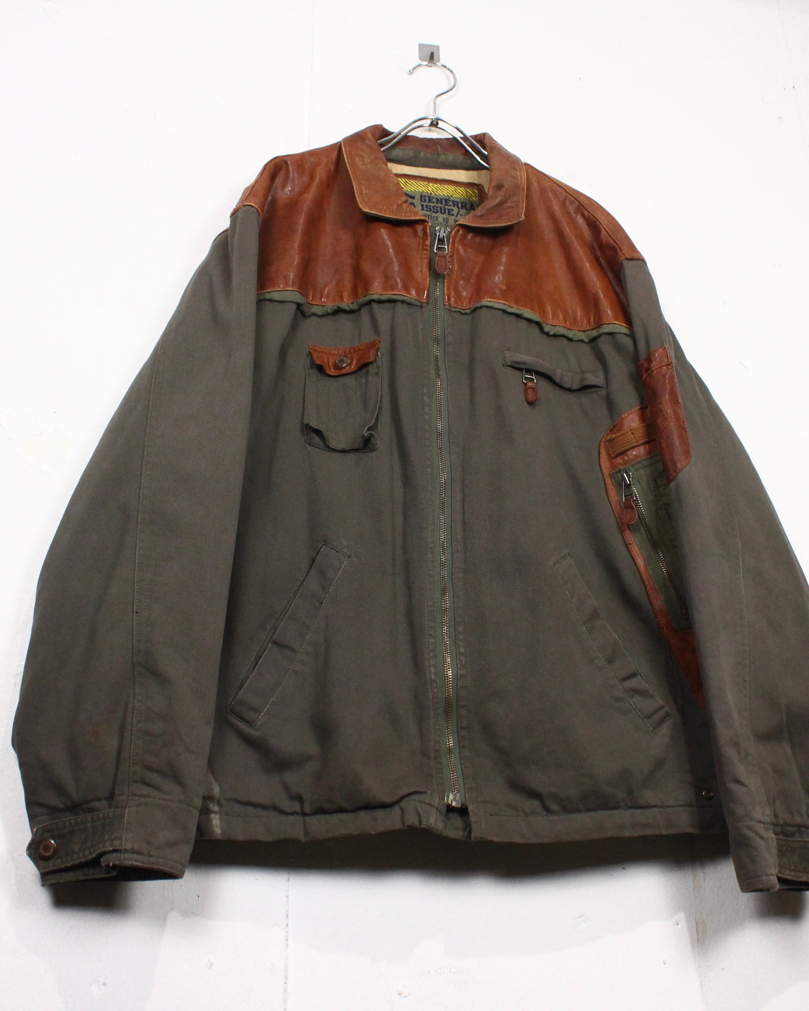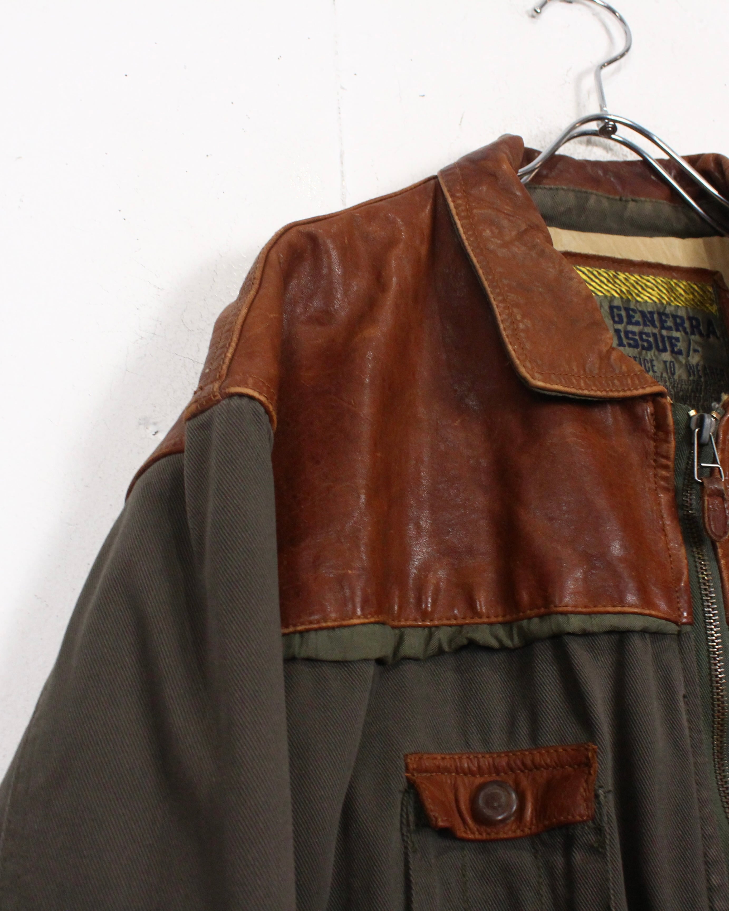 カジュアルを代表する隠れた名ブランド"GENERRA"よりツイル素材をベースに、要所へレザーを切り替えた、異素材の掛け合わせが際立つジャケット。
