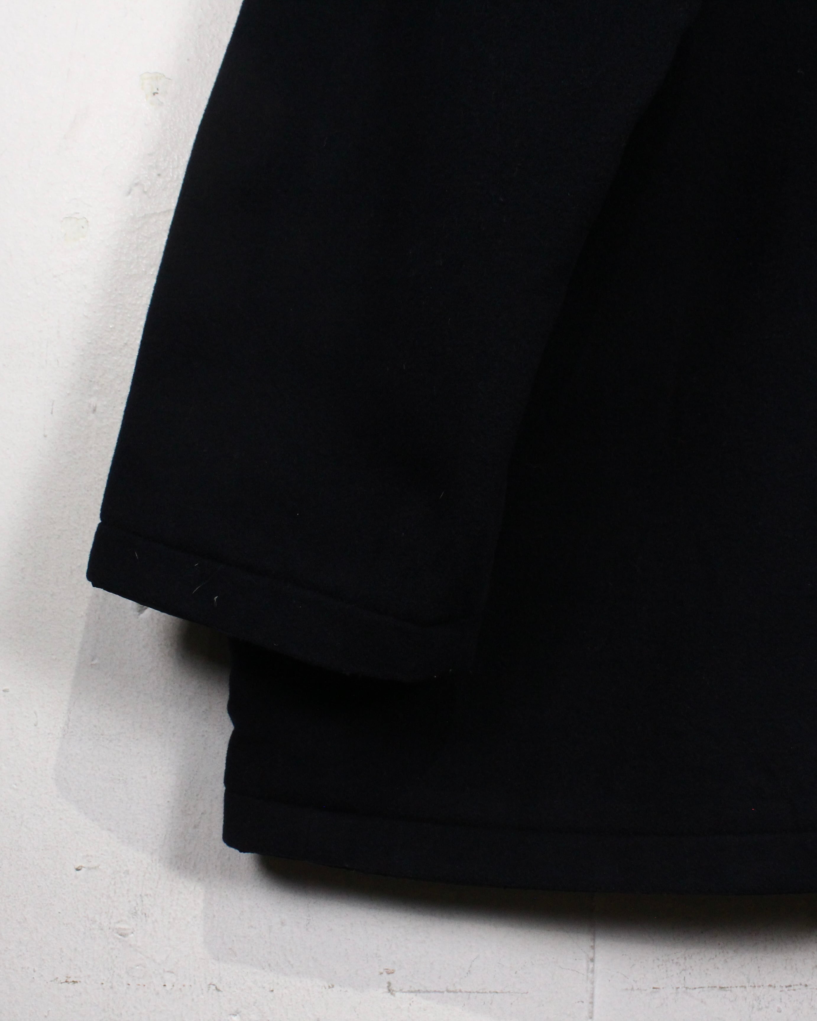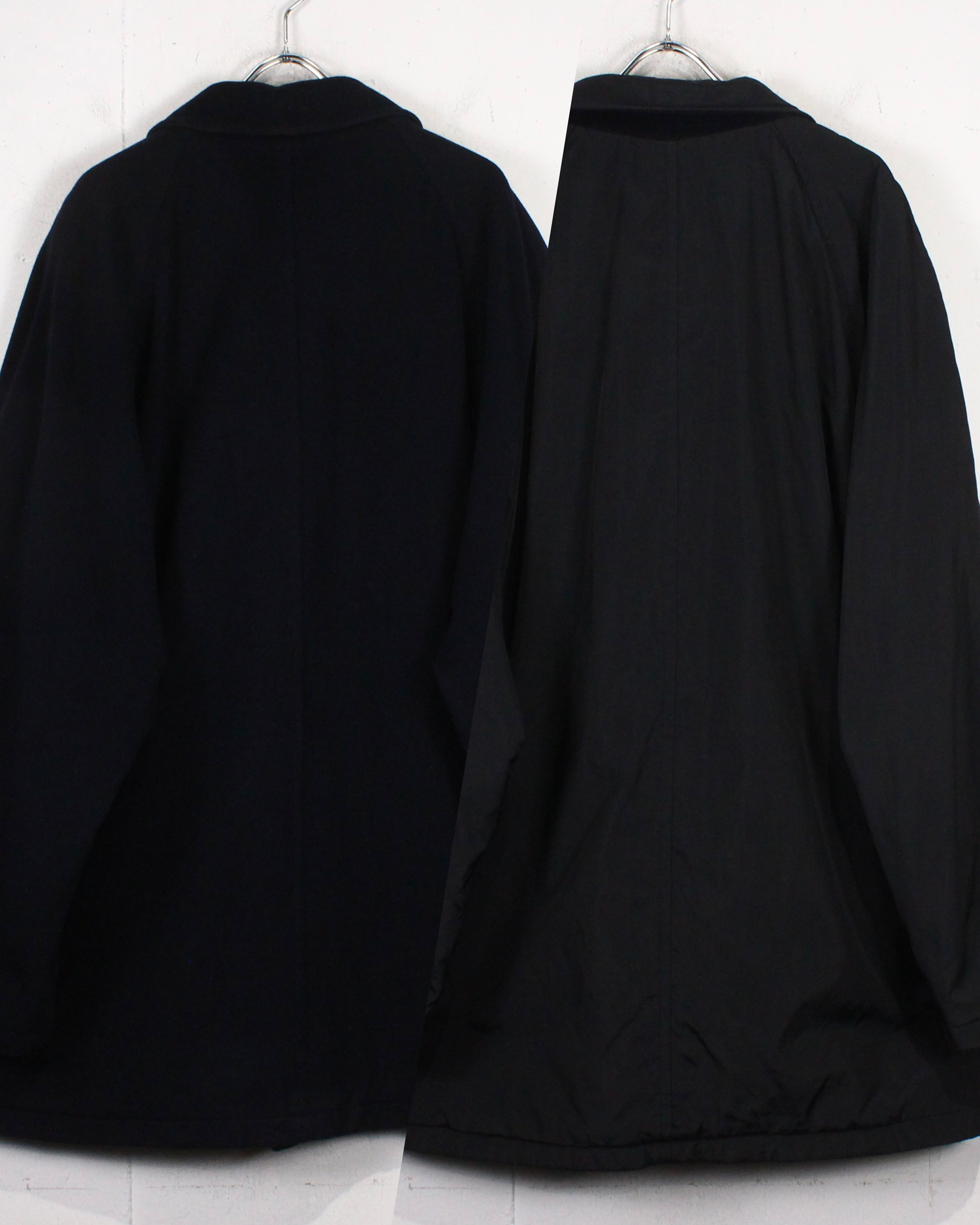 表裏で表情を切り替えるウール×ナイロン混のボディは、ウール面では起毛感のある落ち着いたマットブラック、ナイロン面では軽やかでシャープな印象を演出。素材のコントラストが奥行きを生み、袖を通した瞬間に質の良さが伝わるかと。