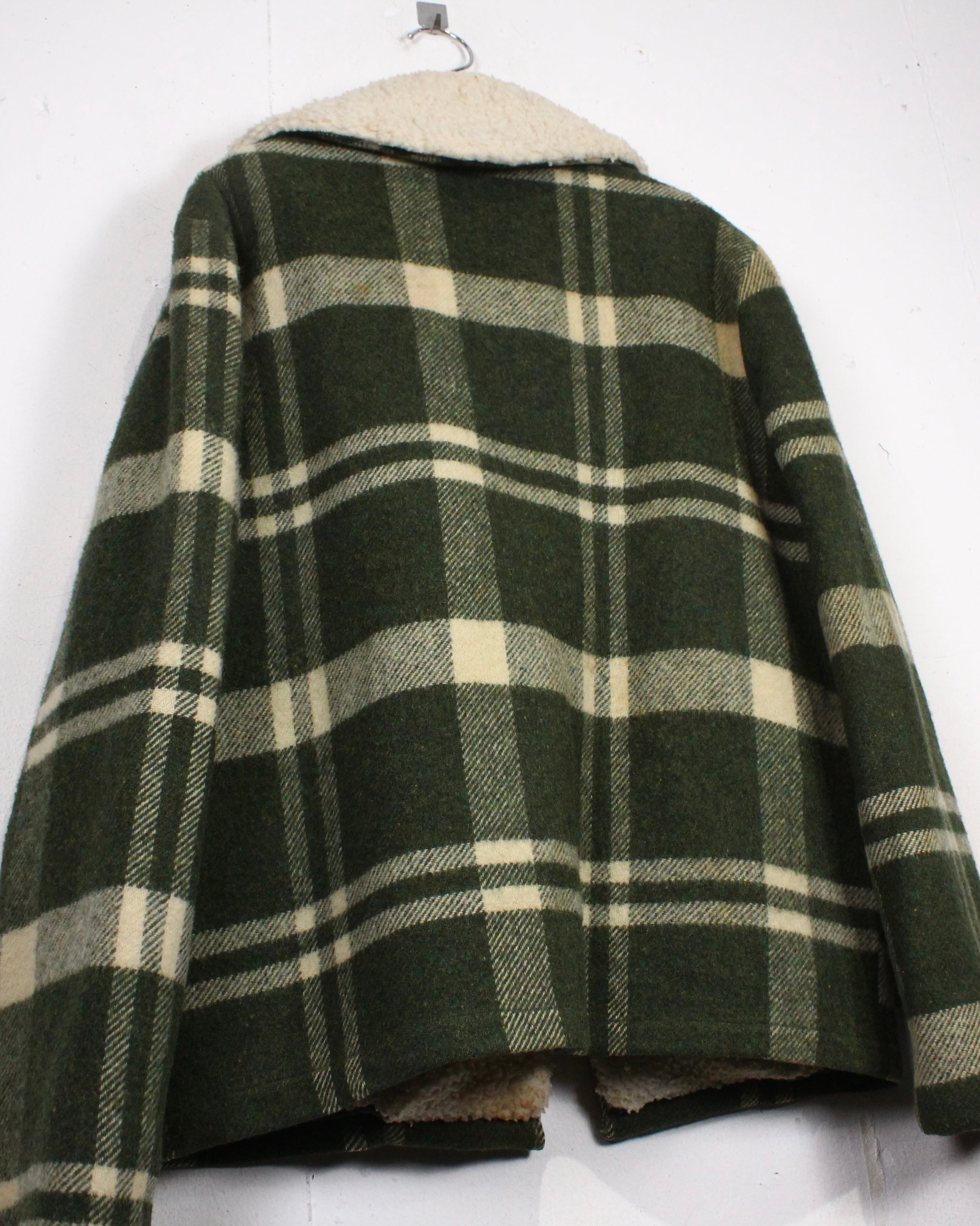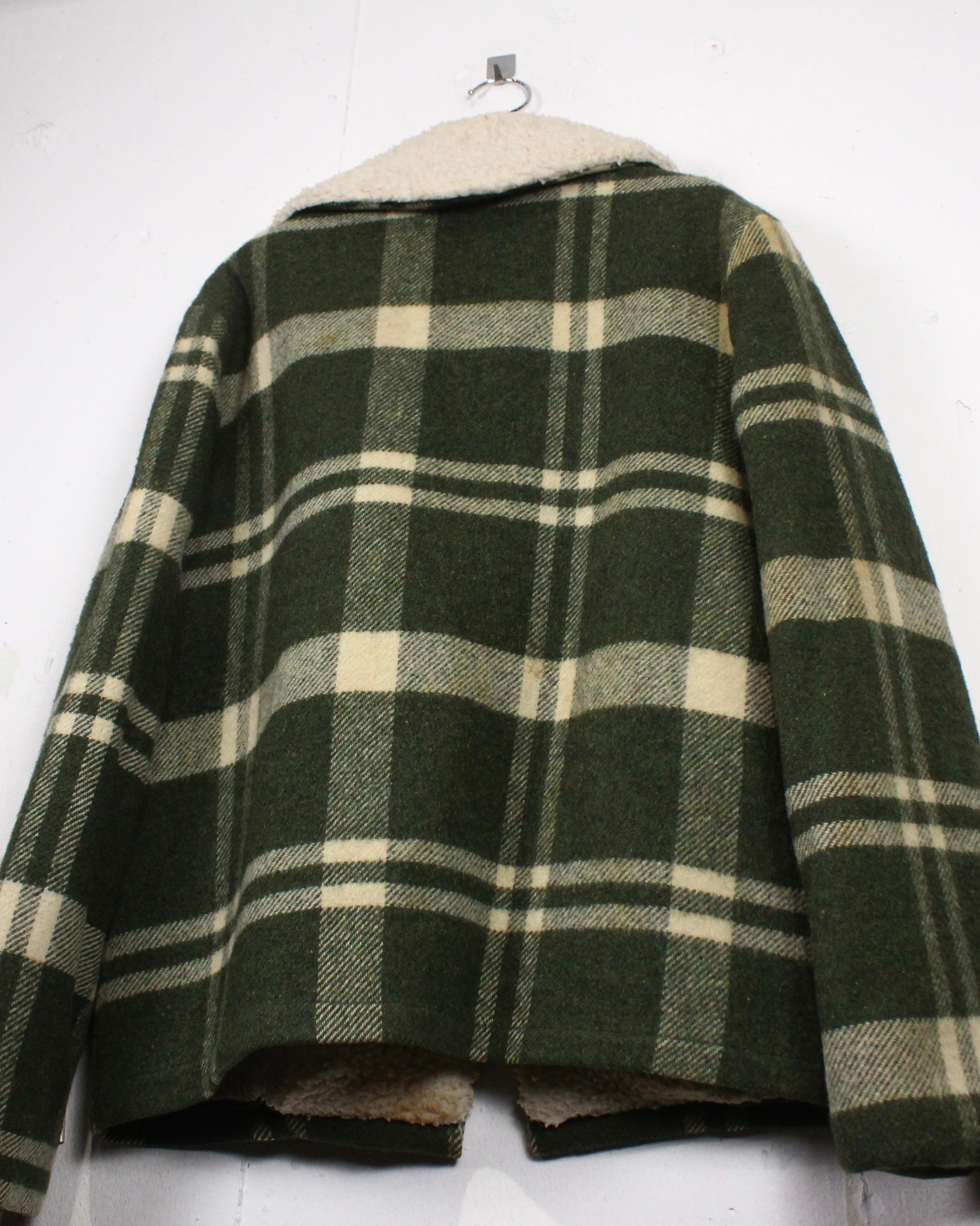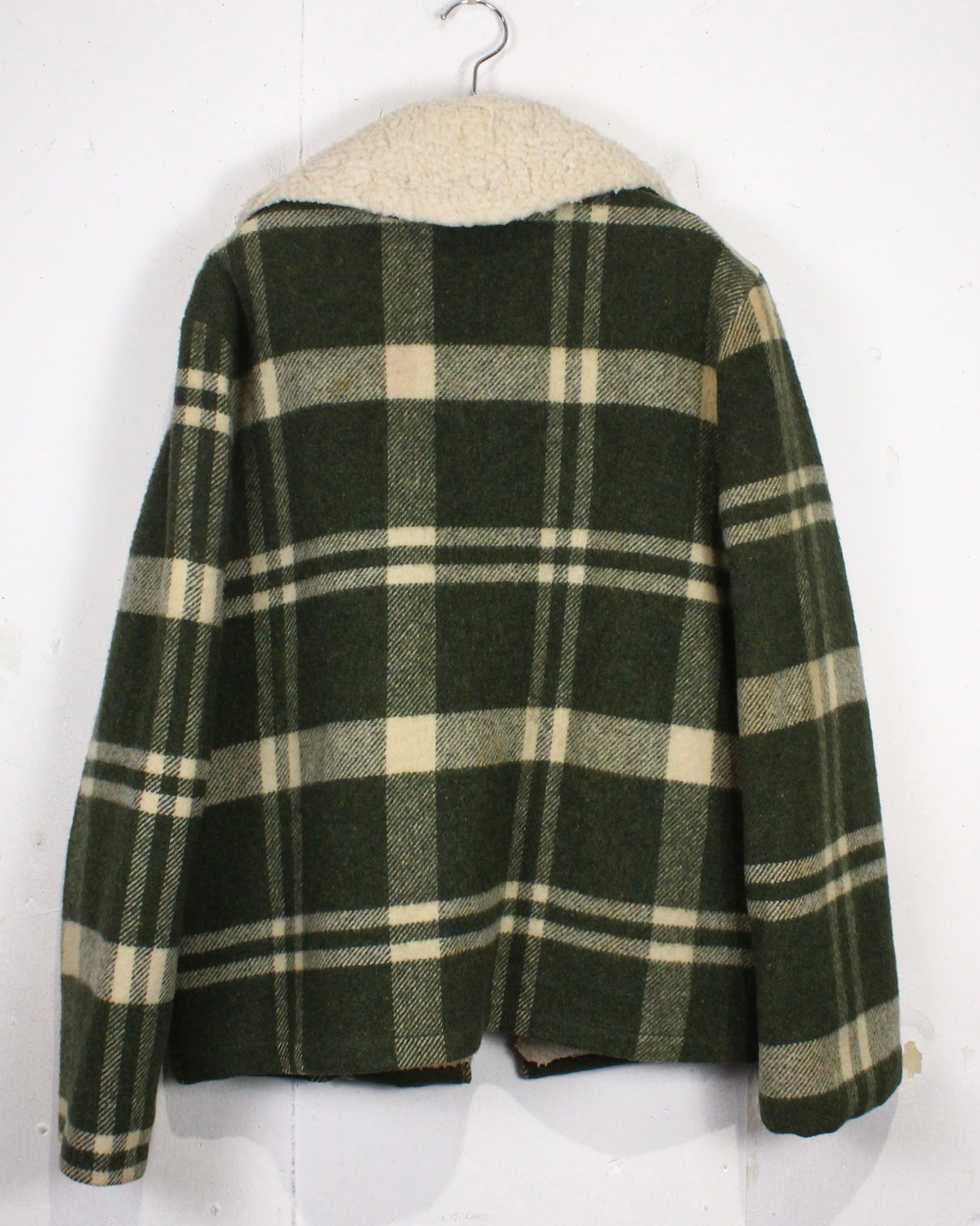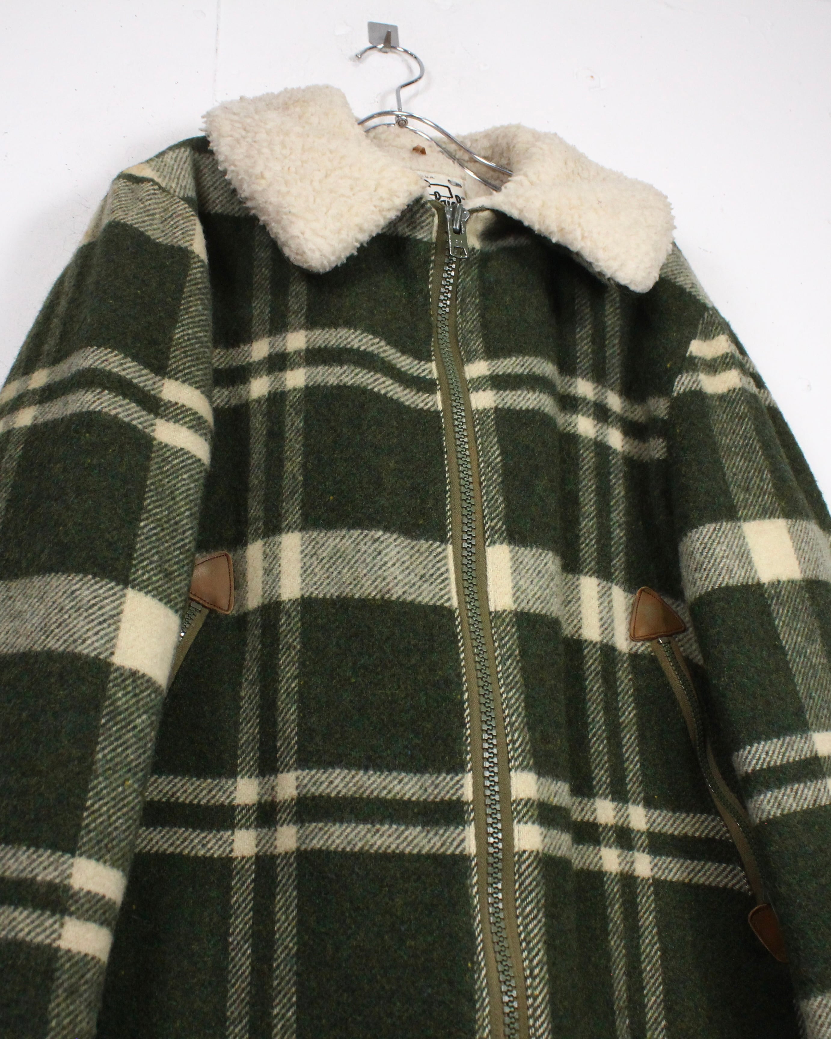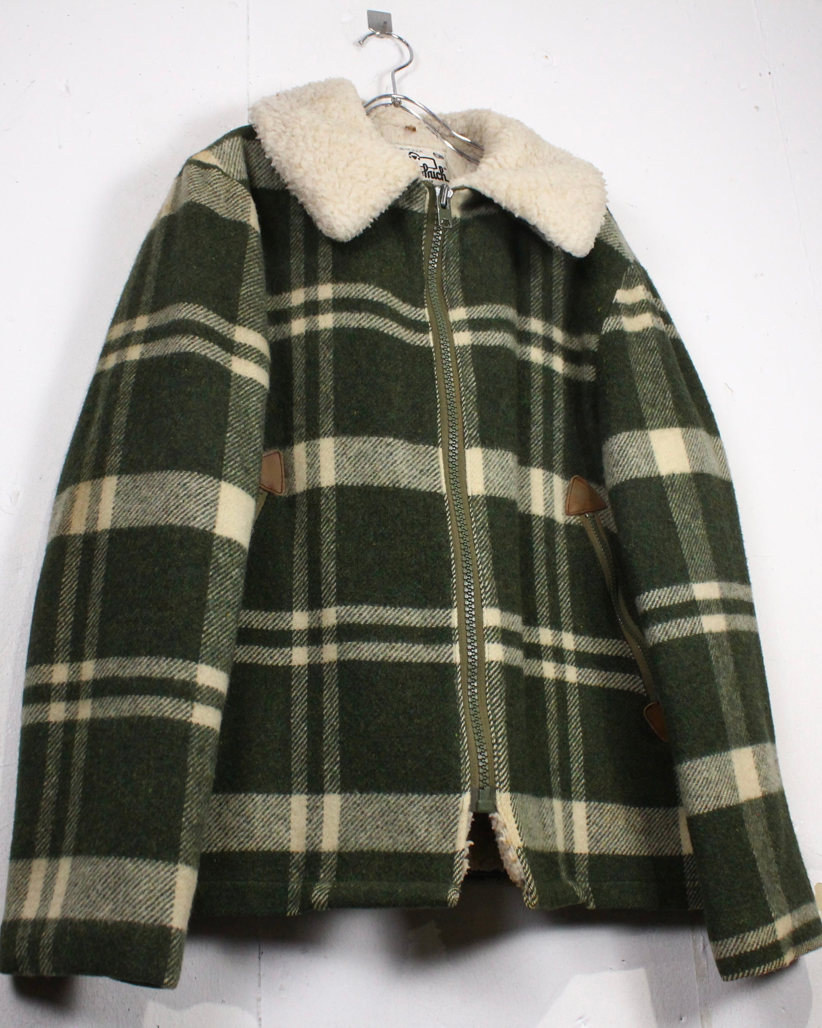 ボディにはしっかりとした肉感のあるウール素材を使用。起毛感のある表情と深みのあるグリーンベースのチェック柄が、ヴィンテージらしい温もりと落ち着いた存在感を演出します。