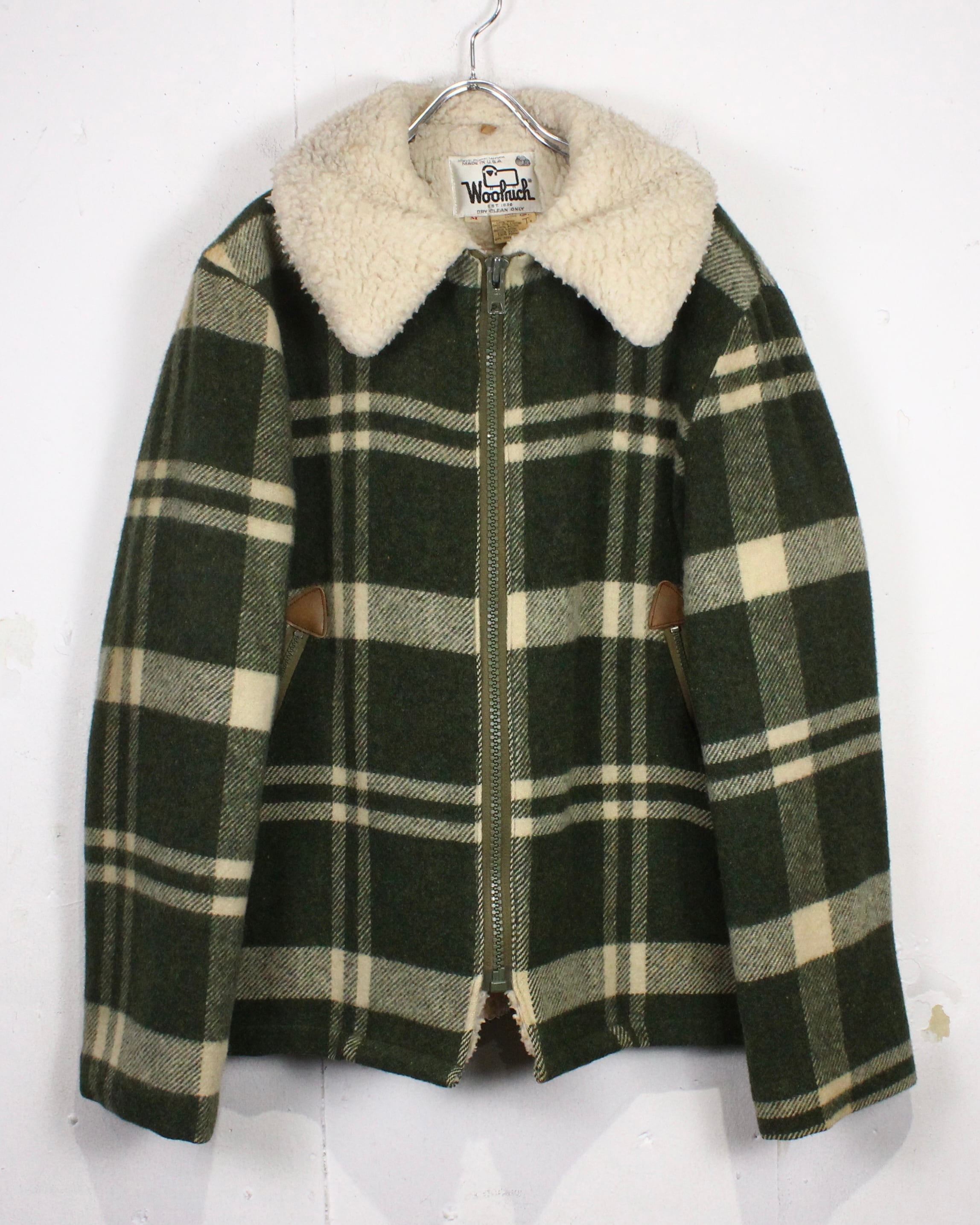フロントはジップ仕様で着脱もスムーズ。ポケット周りにはレザー補強が施されており、実用性と耐久性を兼ね備えたディテールワークもWoolrichらしいポイント。