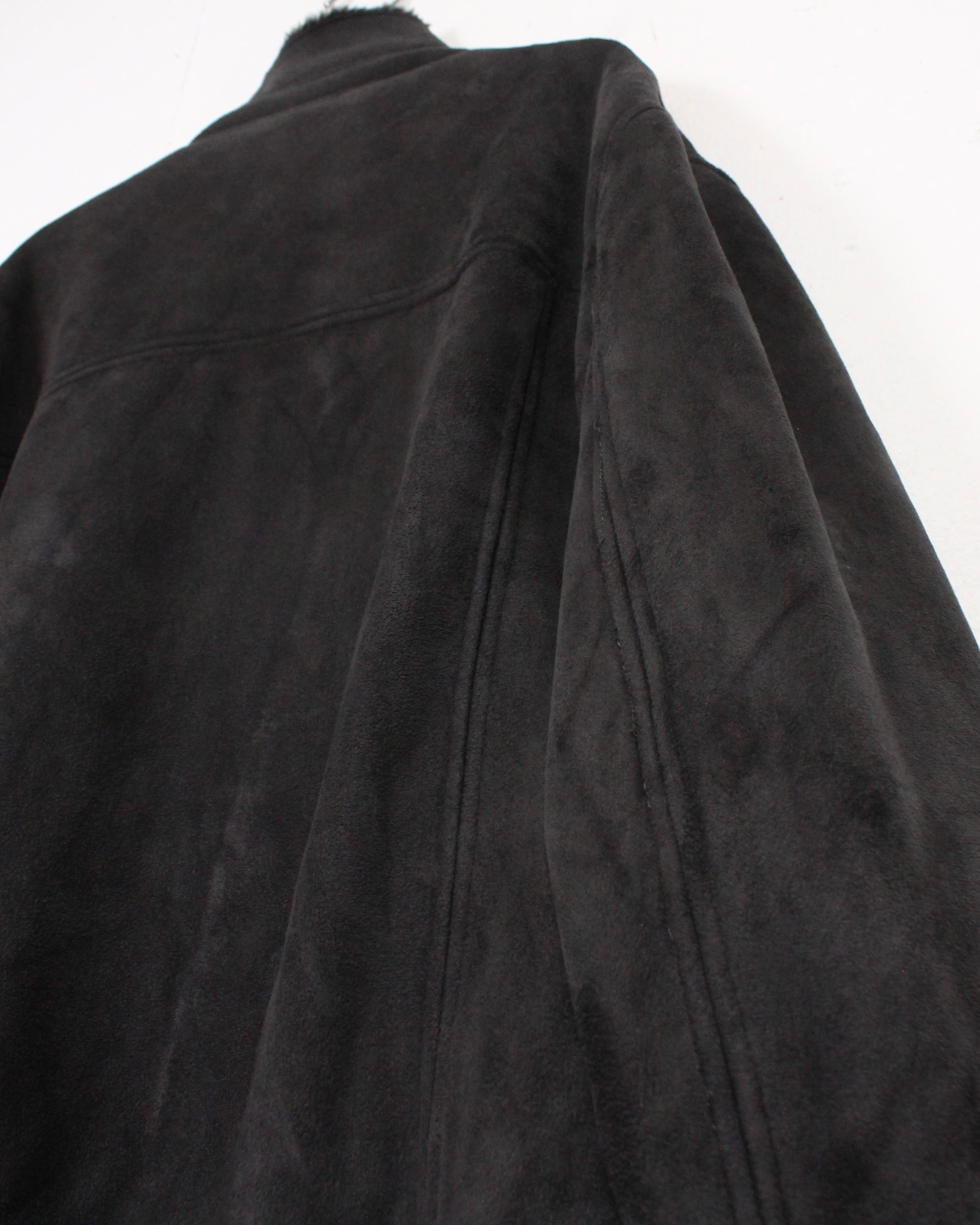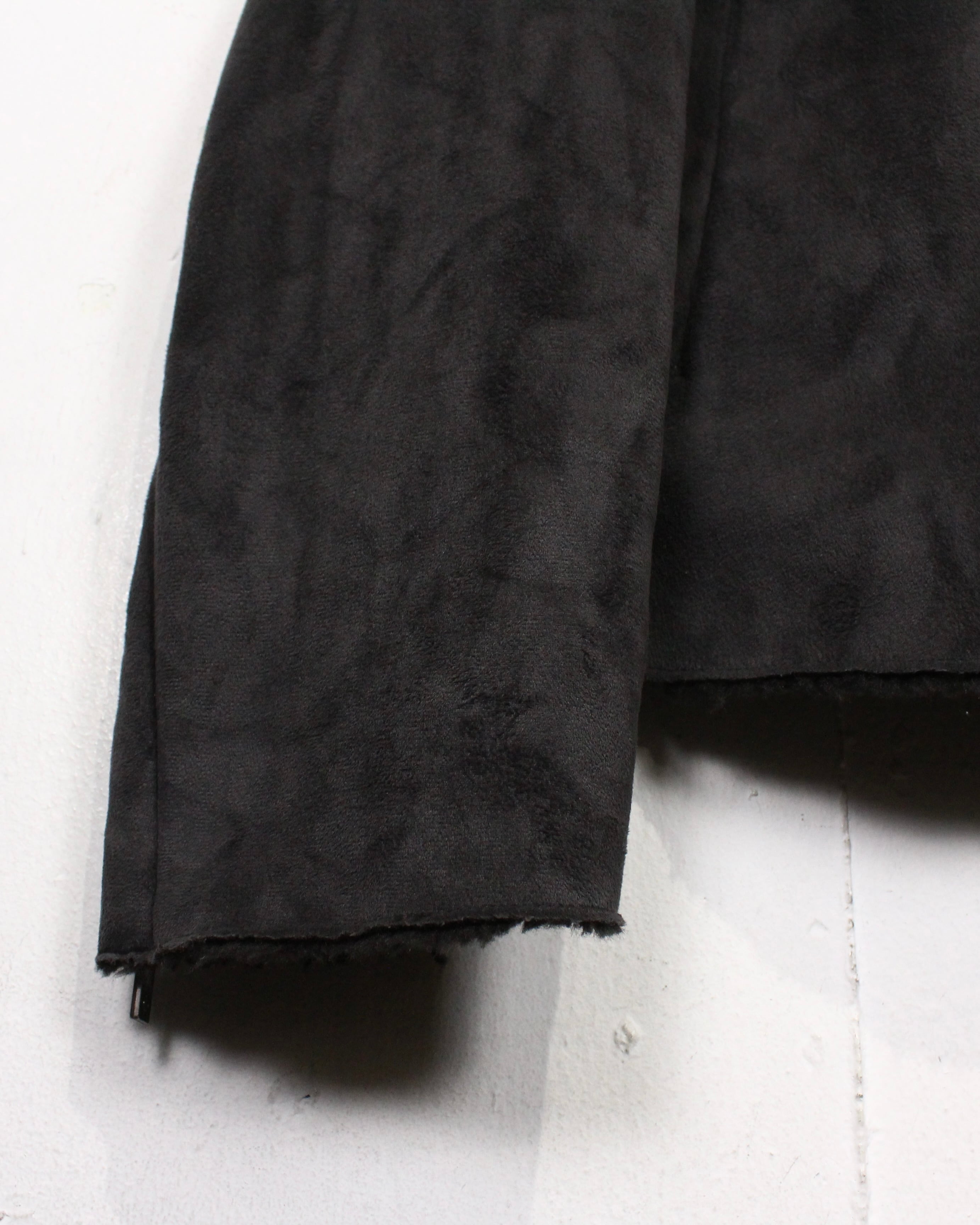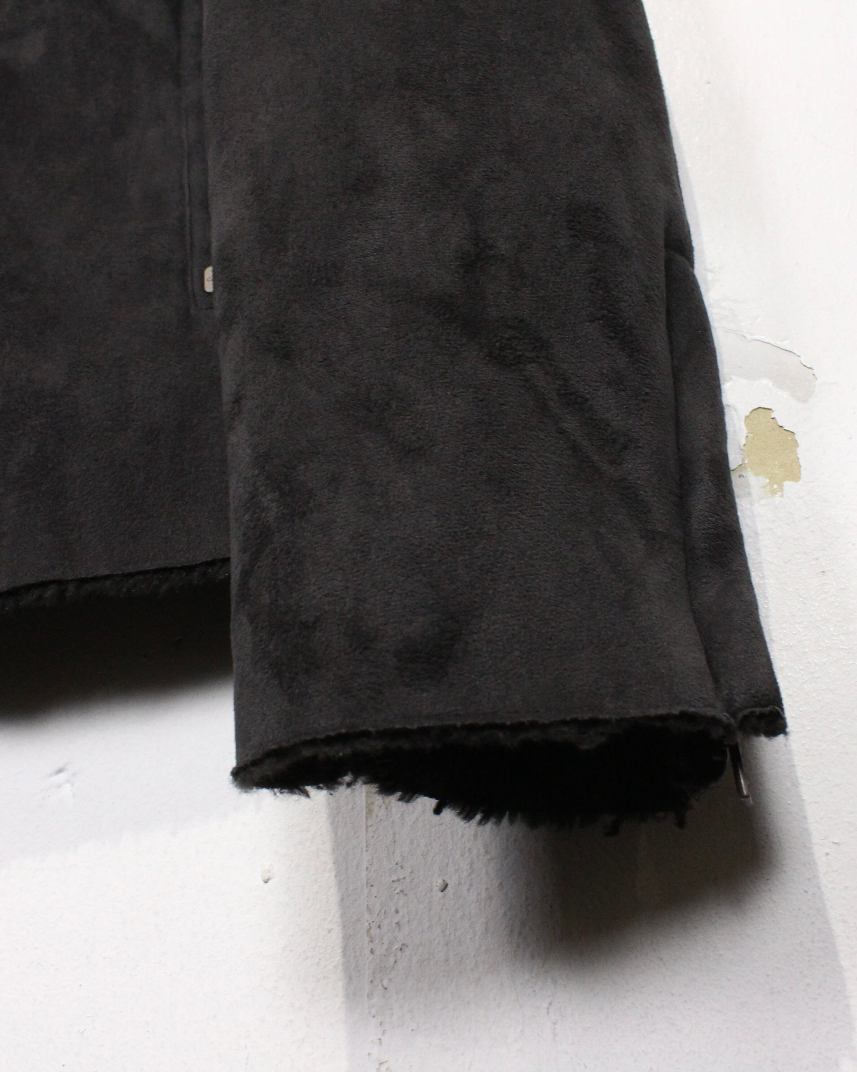 ボディには肉感のあるフェイクムートン素材を採用。マットで落ち着いたブラックトーンに、しっとりとした起毛感が重なり、視覚的にも触感的にも奥行きのある表情を見せてくれます。