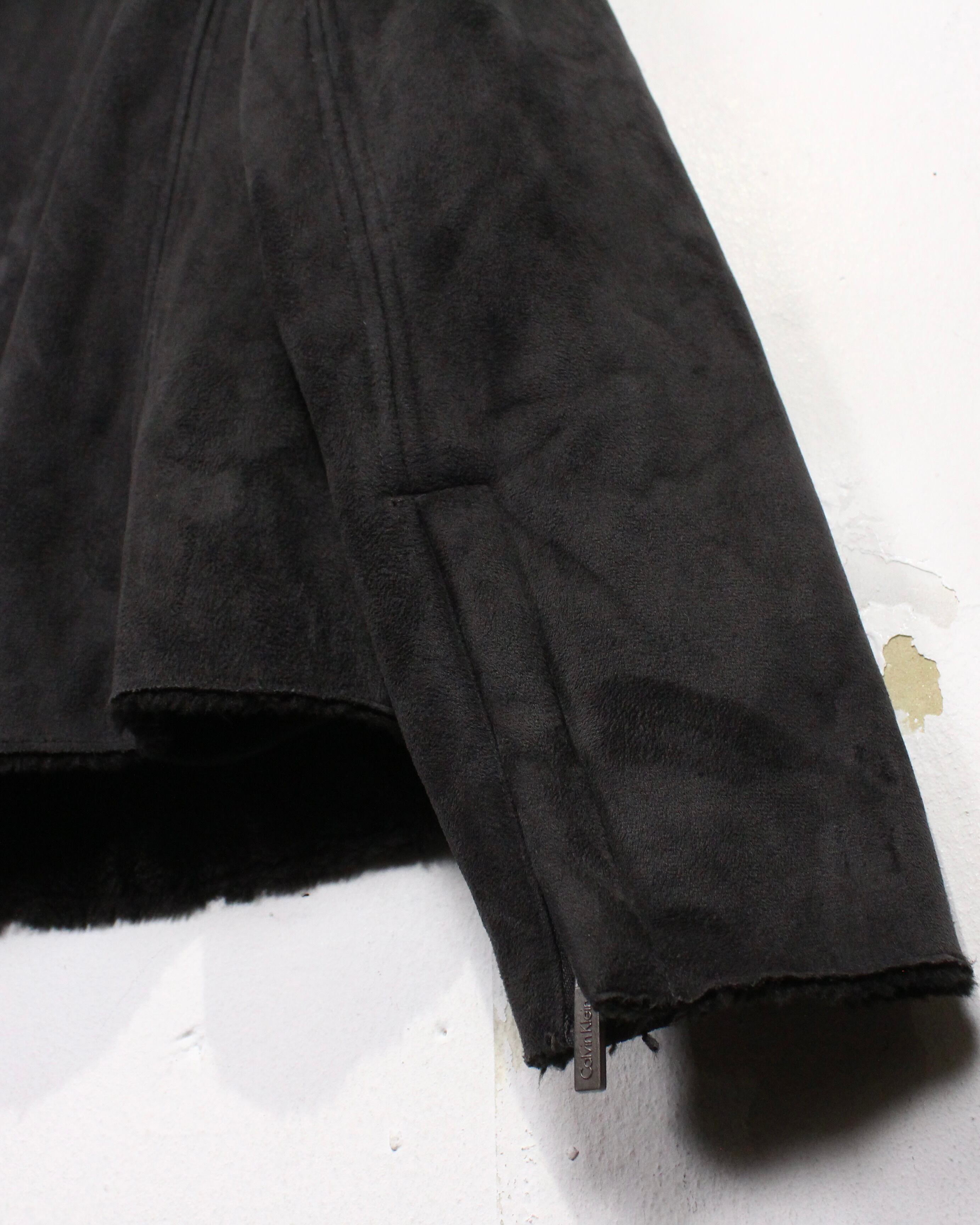 “Calvin Klein”ならではの素材選びと洗練されたバランスが際立つ、フェイクムートンジャケットの逸品です。