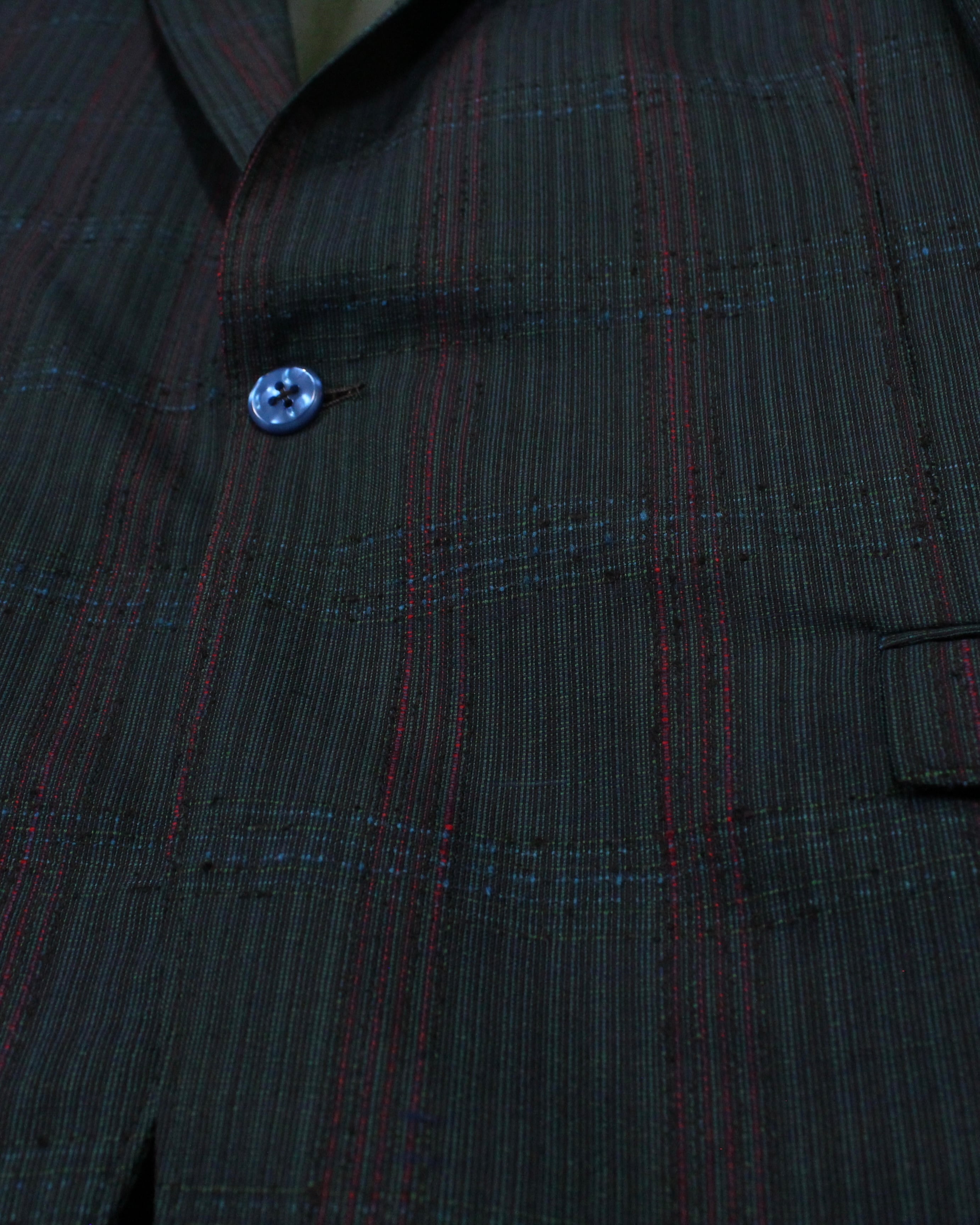 フロントはシングル仕様で、ラペルは程よい幅感。パターンも秀逸で、着用時のシルエットも抜群◎
