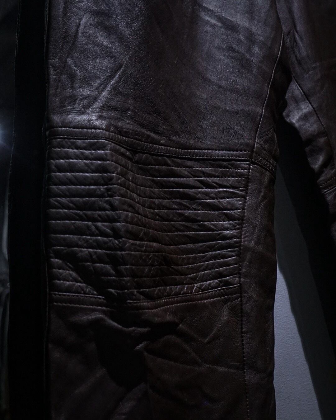 モーターサイクルウェアをデザインソースに落とし込んだ、無骨さと機能美を兼ね備えた80年代ヨーロッパ製のレザーパンツ。