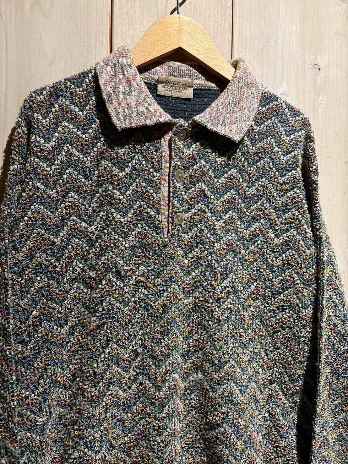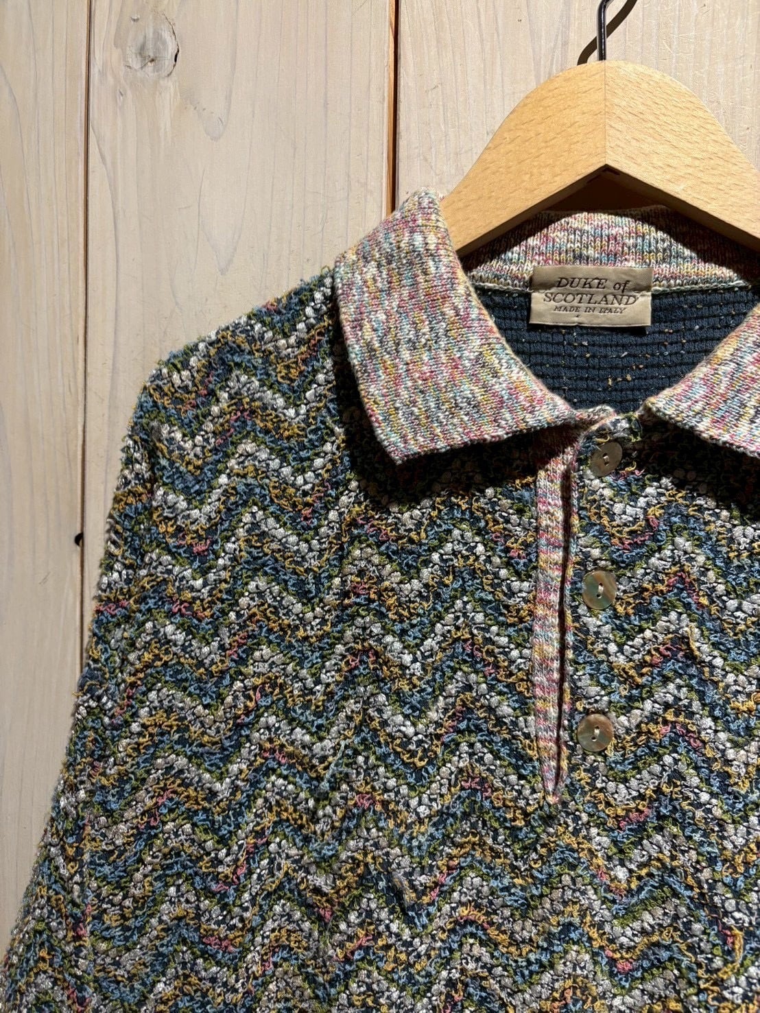 ミックス感のある多色使いが目を引く、表情豊かなニットポロ。