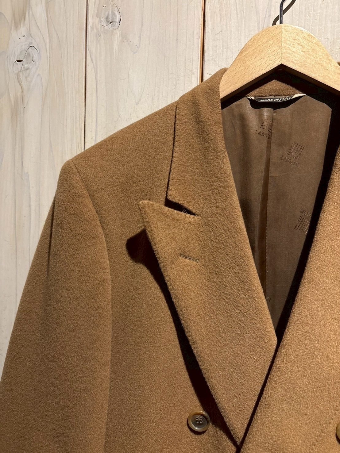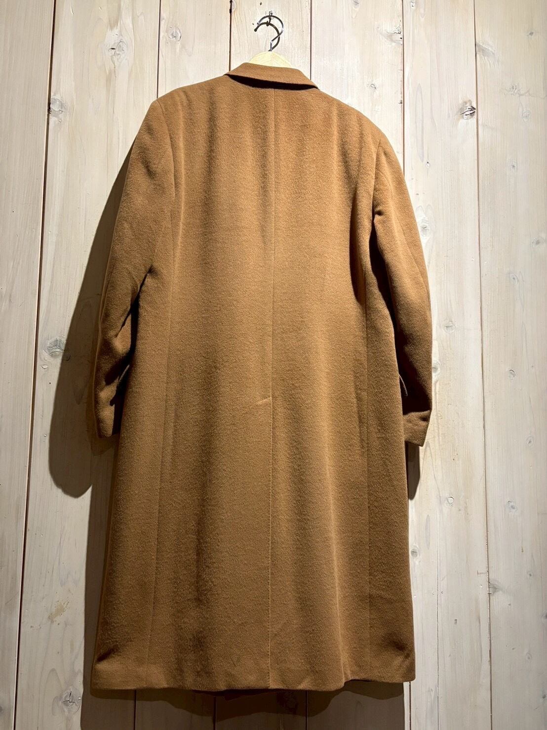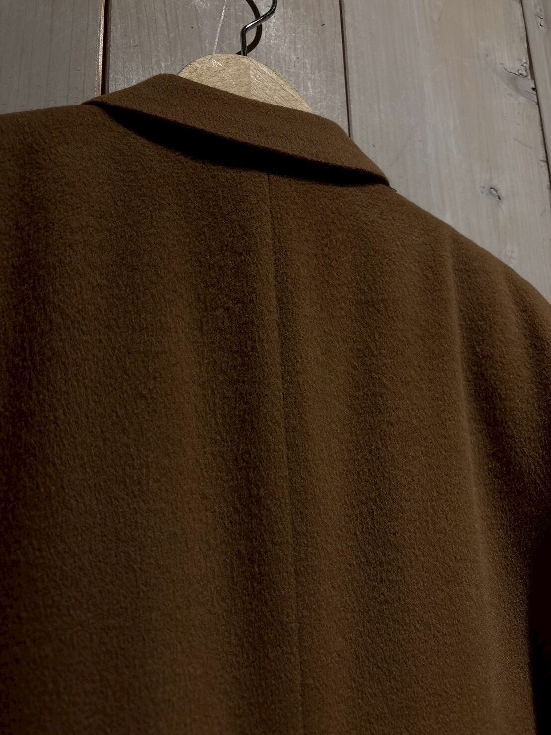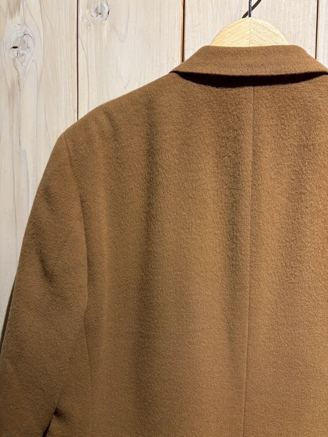 しっとりとした起毛感を備えたウールボディはキャメルブラウンの柔らかな色味が印象的で、軽やかさの中にしっかりとした肉感があり、羽織った瞬間に分かる品の良さがあります。