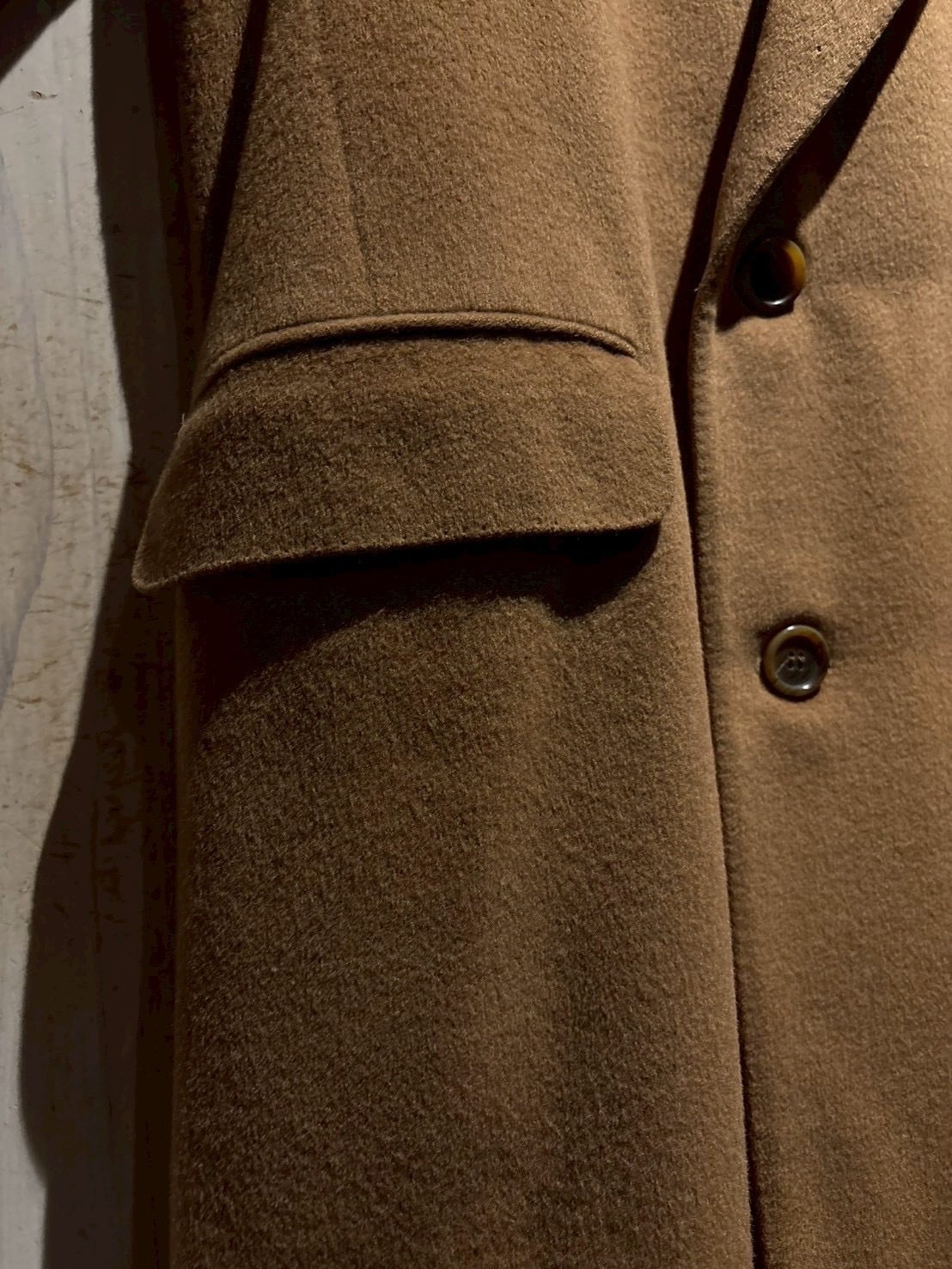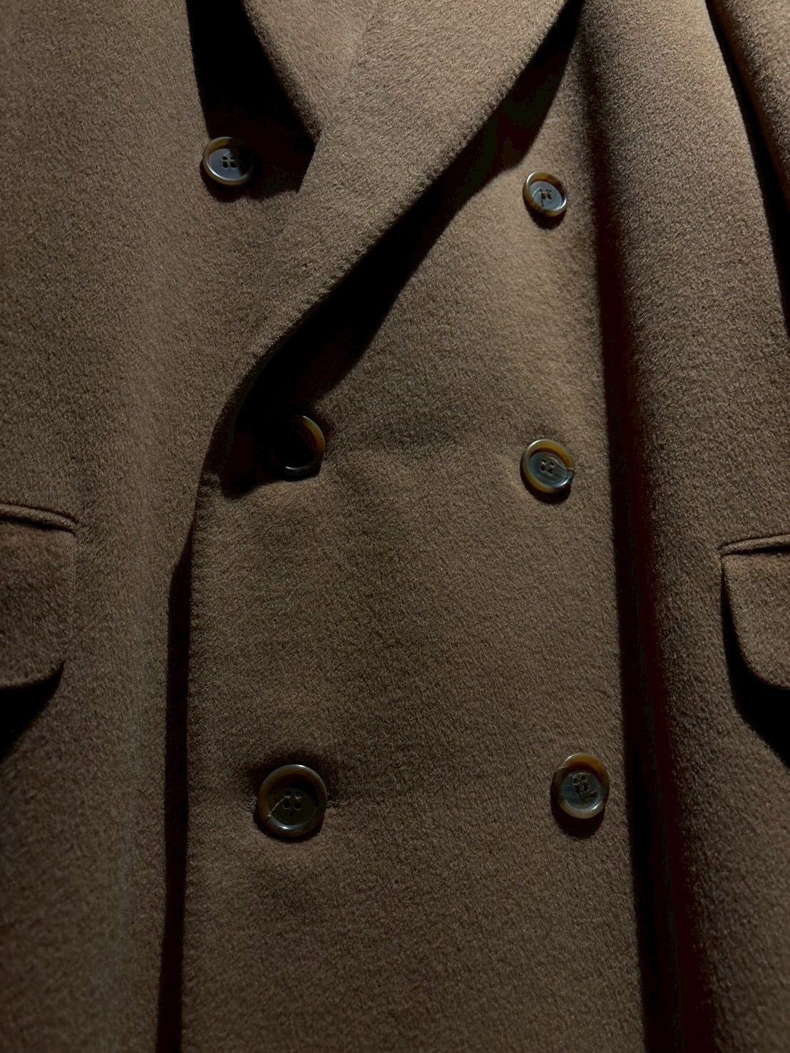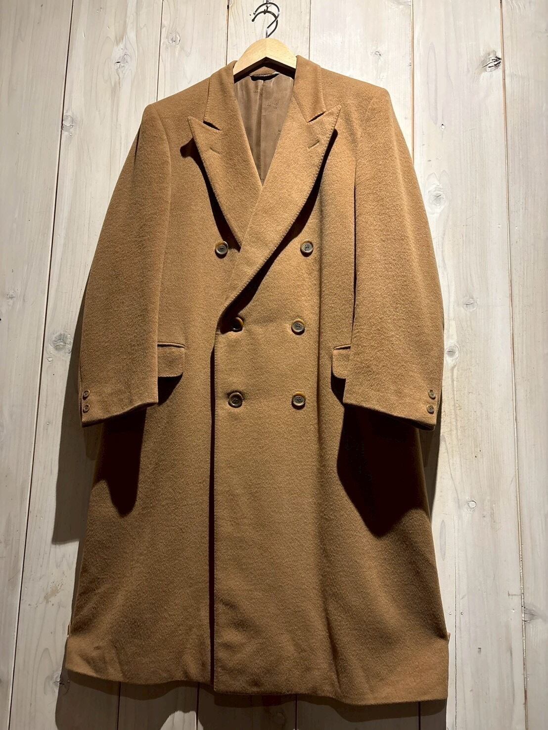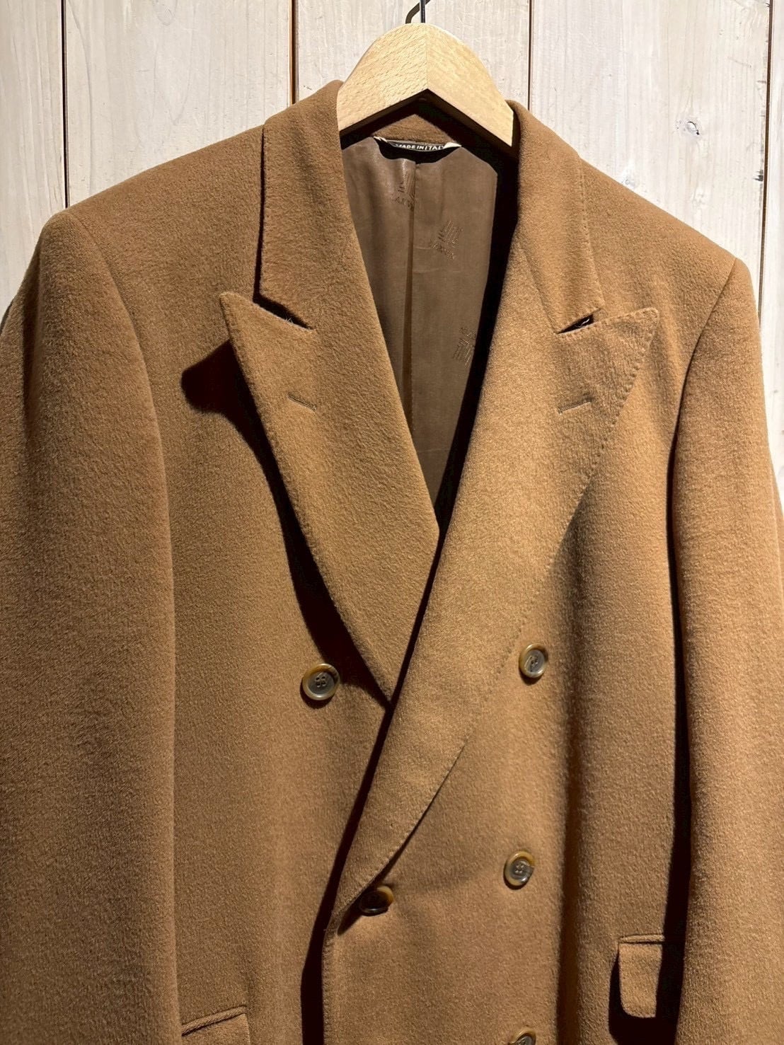 しっとりとした起毛感を備えたウールボディはキャメルブラウンの柔らかな色味が印象的で、軽やかさの中にしっかりとした肉感があり、羽織った瞬間に分かる品の良さがあります。
