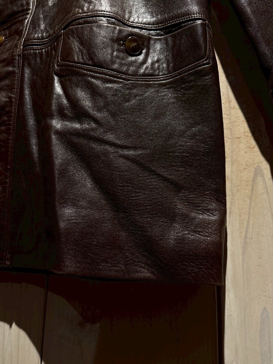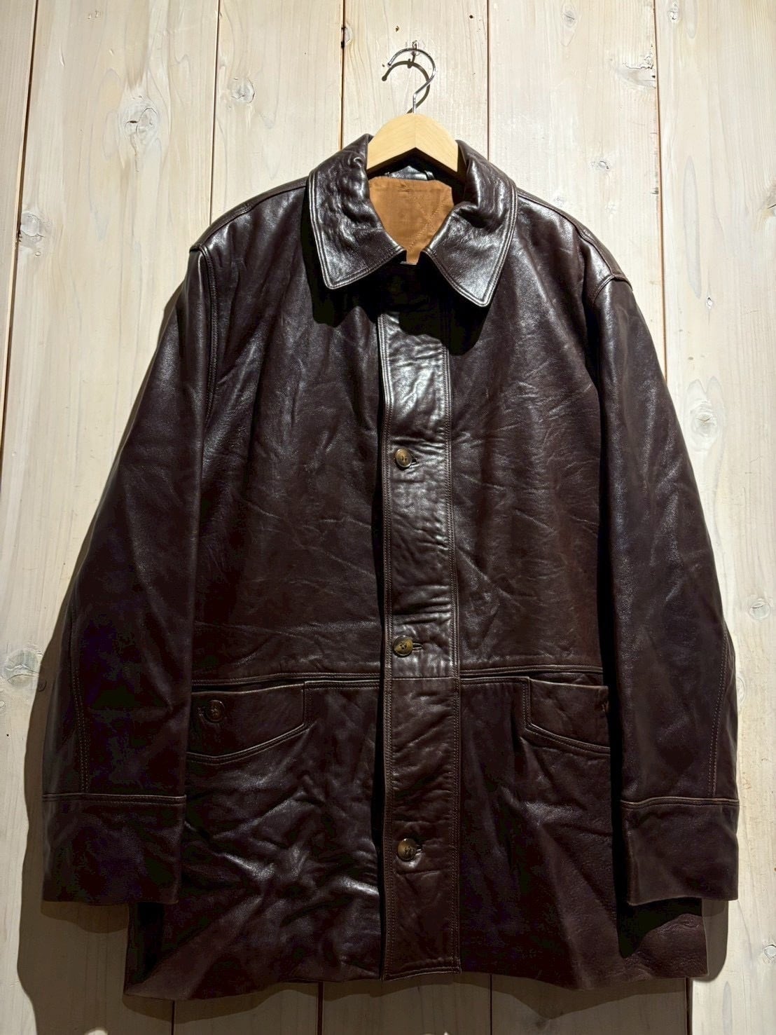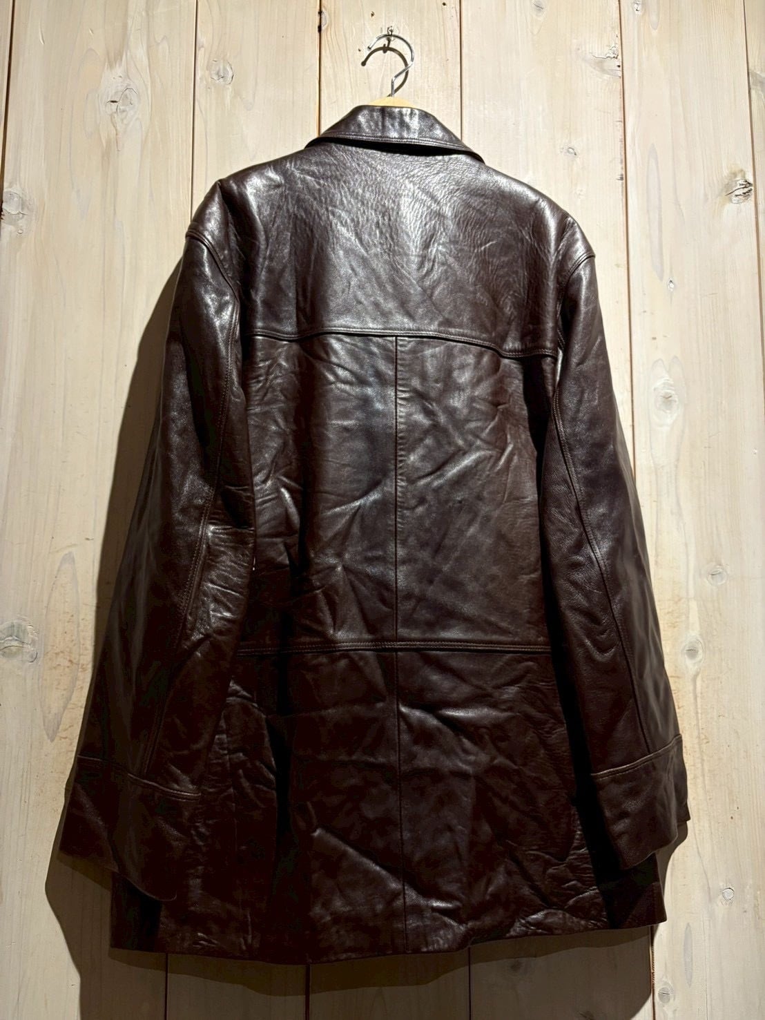 しっとりとした艶を湛えたダークブラウンレザーを用いた、80'sユーロ物レザーカバーオールジャケット。