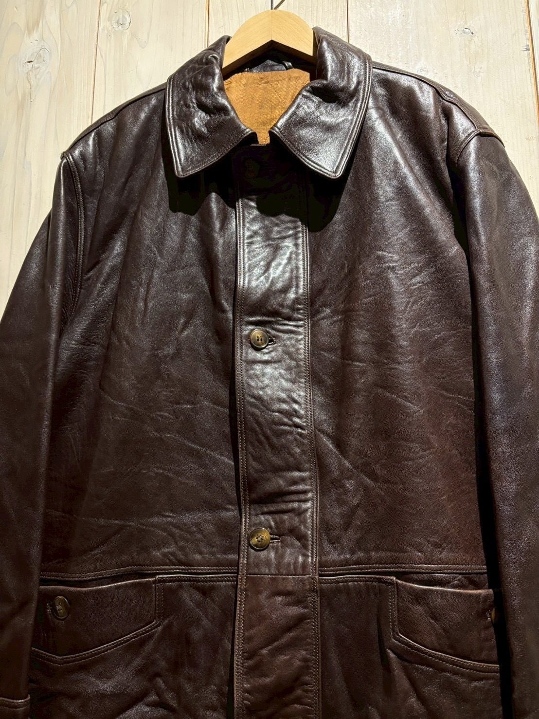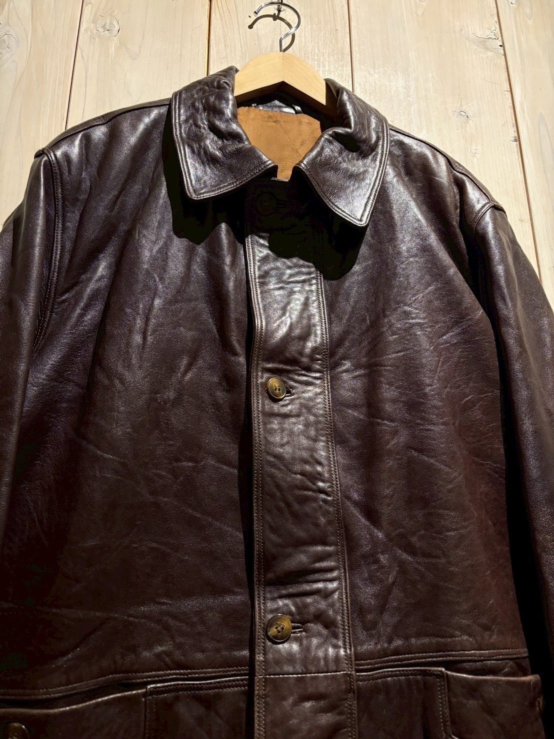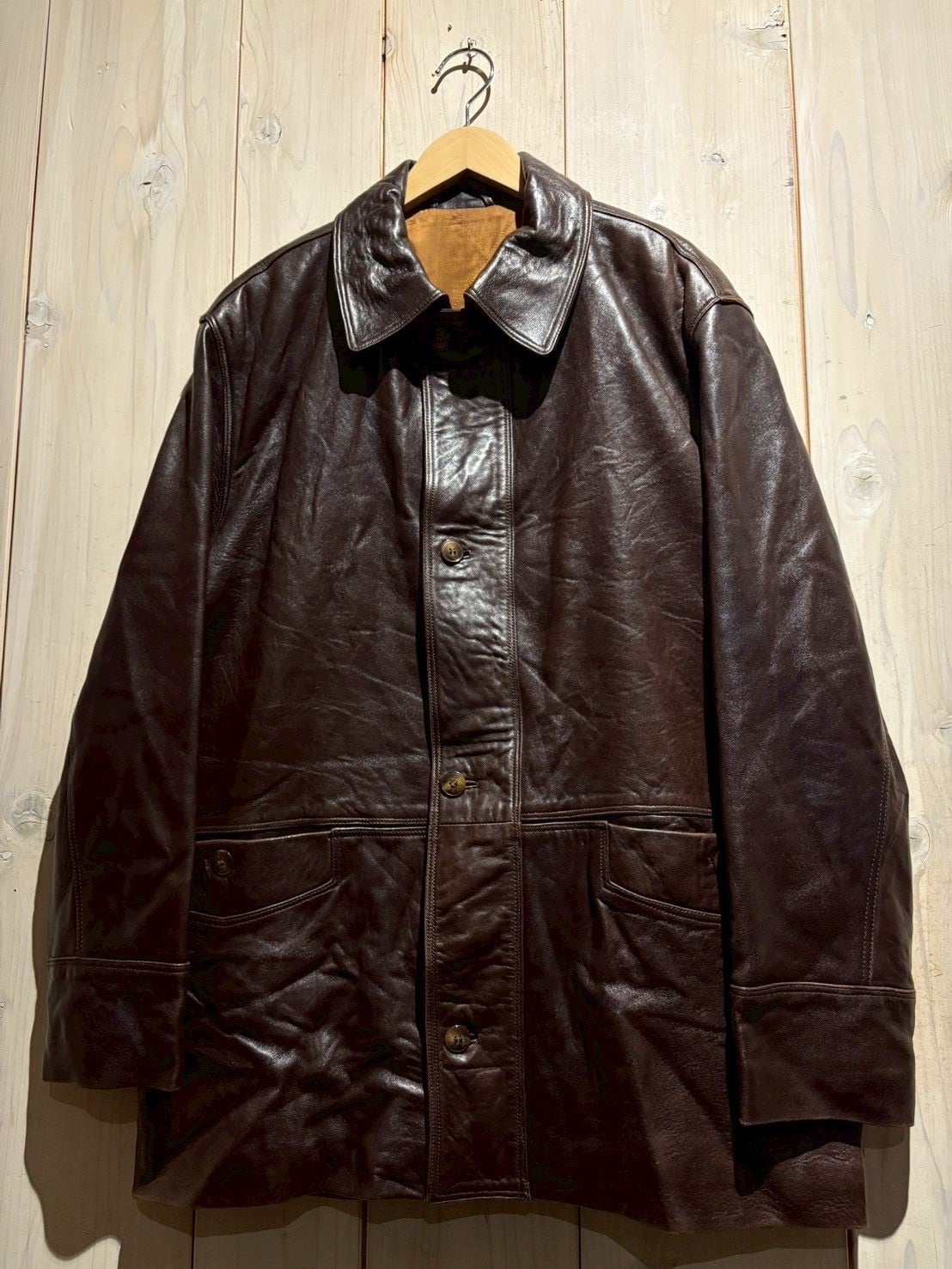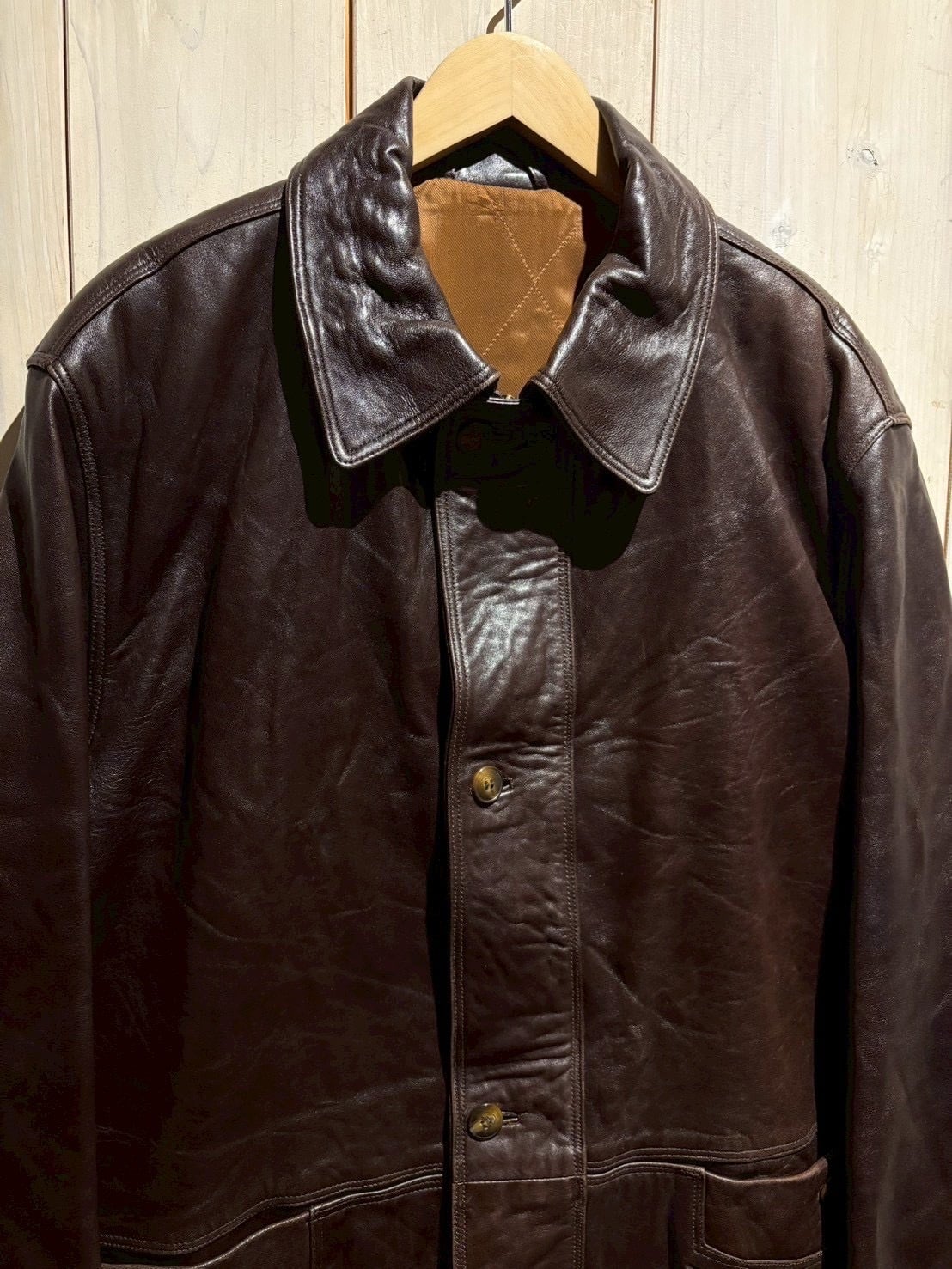 しっとりとした艶を湛えたダークブラウンレザーを用いた、80'sユーロ物レザーカバーオールジャケット。