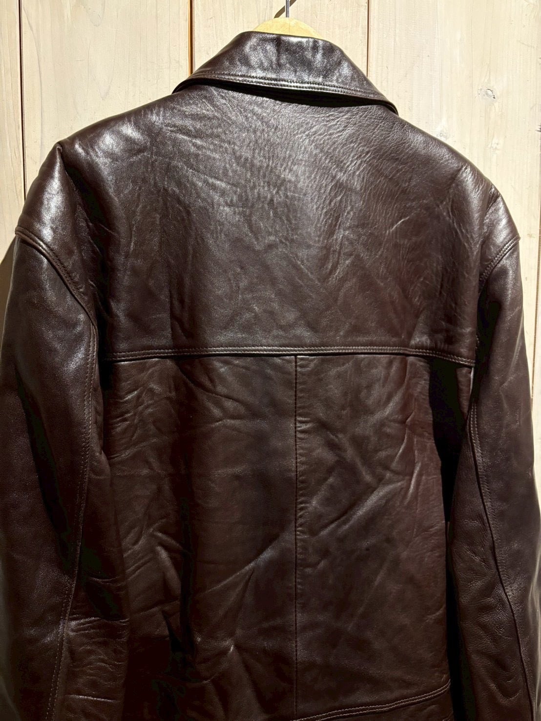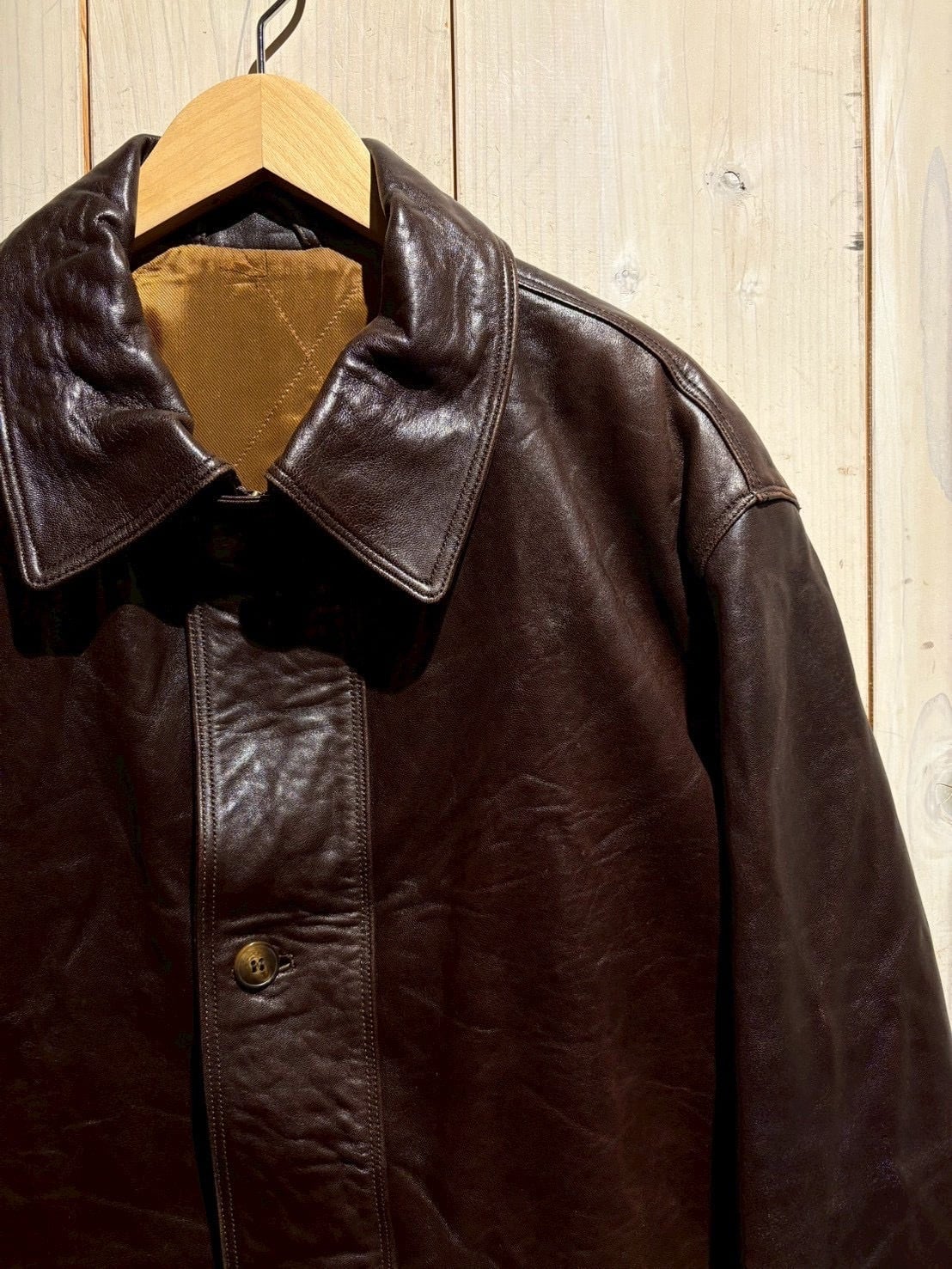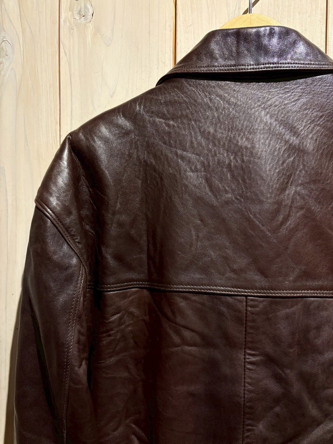 素材の表情、色気のあるブラウン、美しいフォルム。レザーそのものの良さもしっかりと感じられる、上質な1着です。